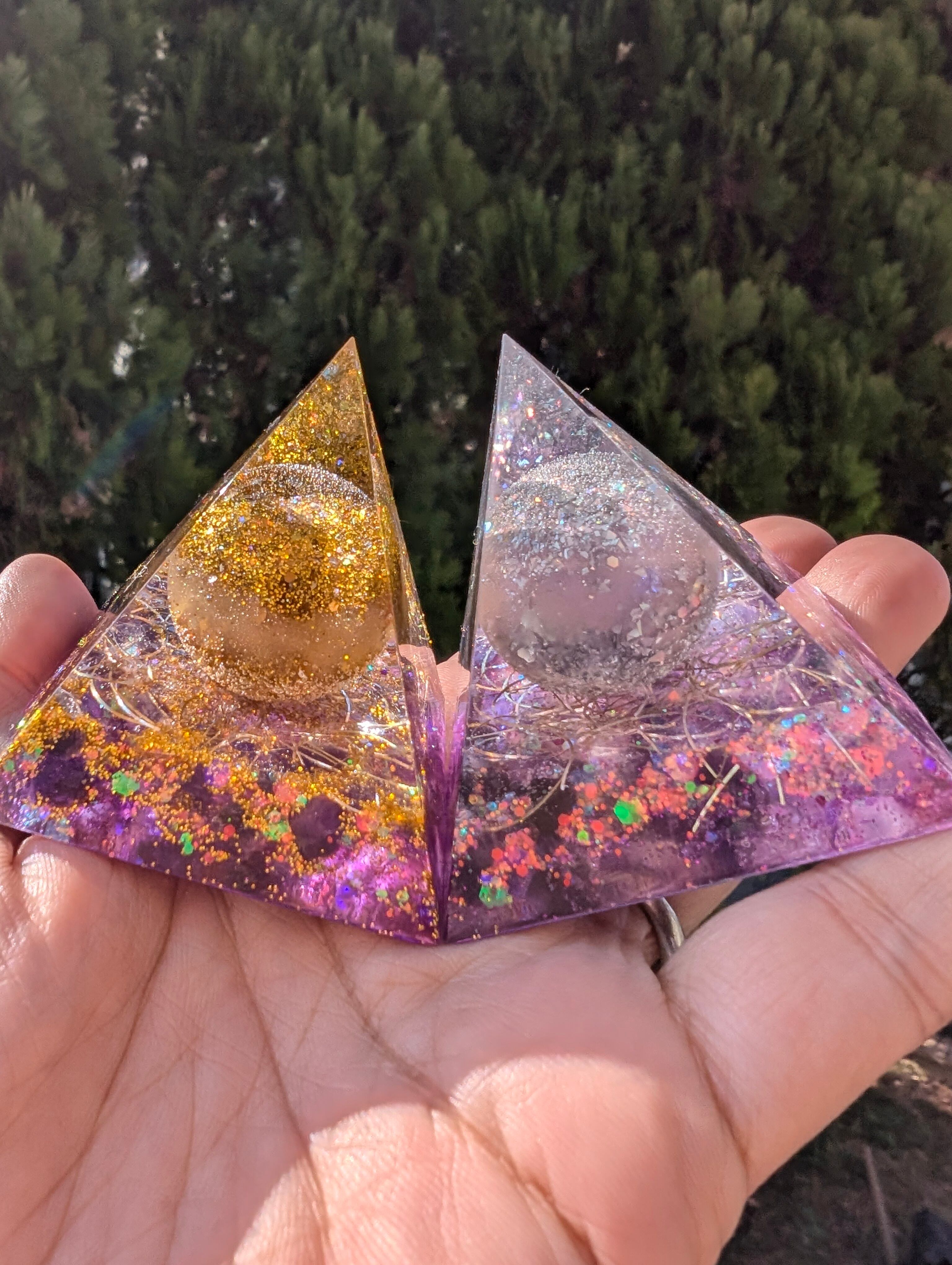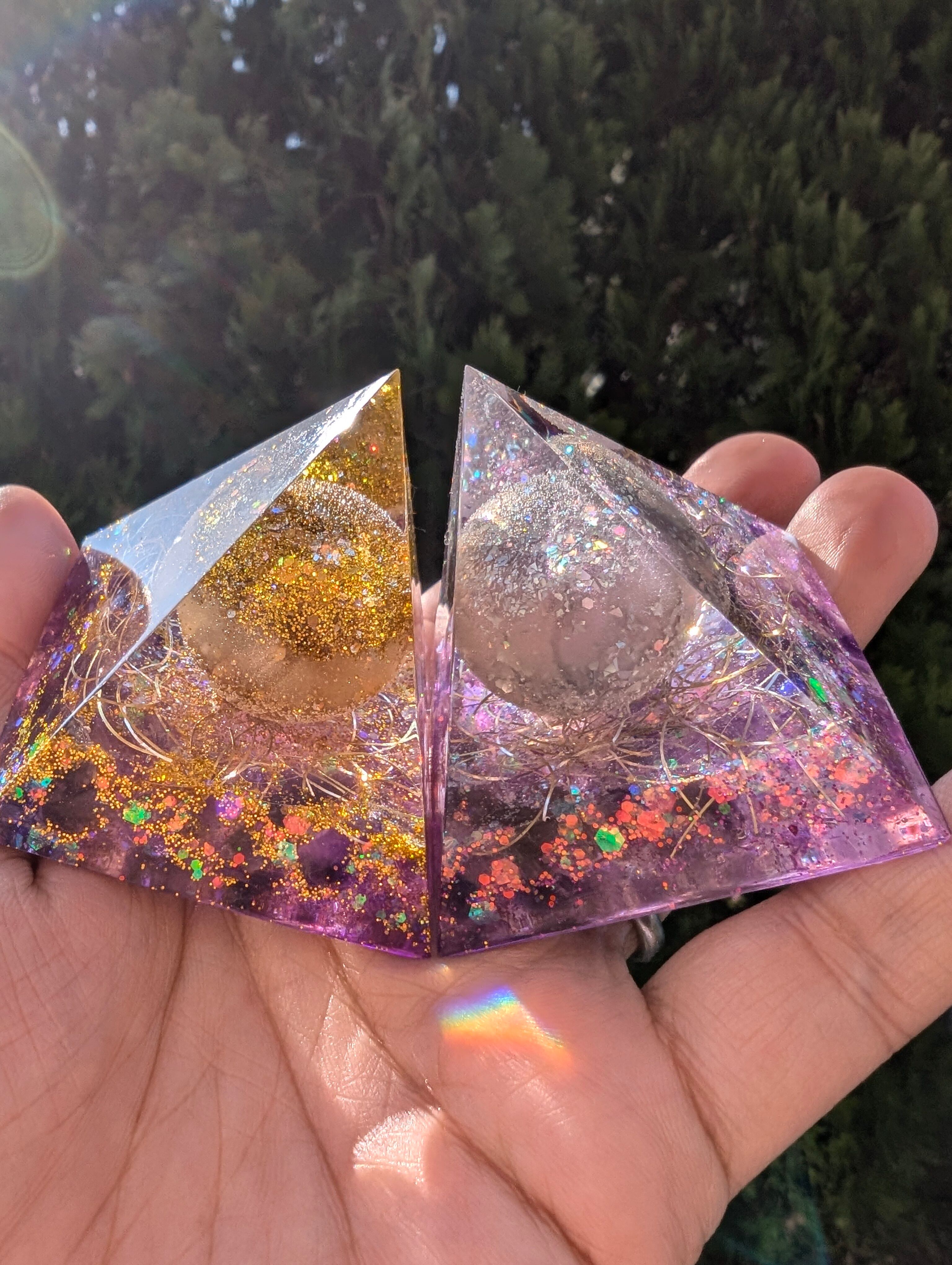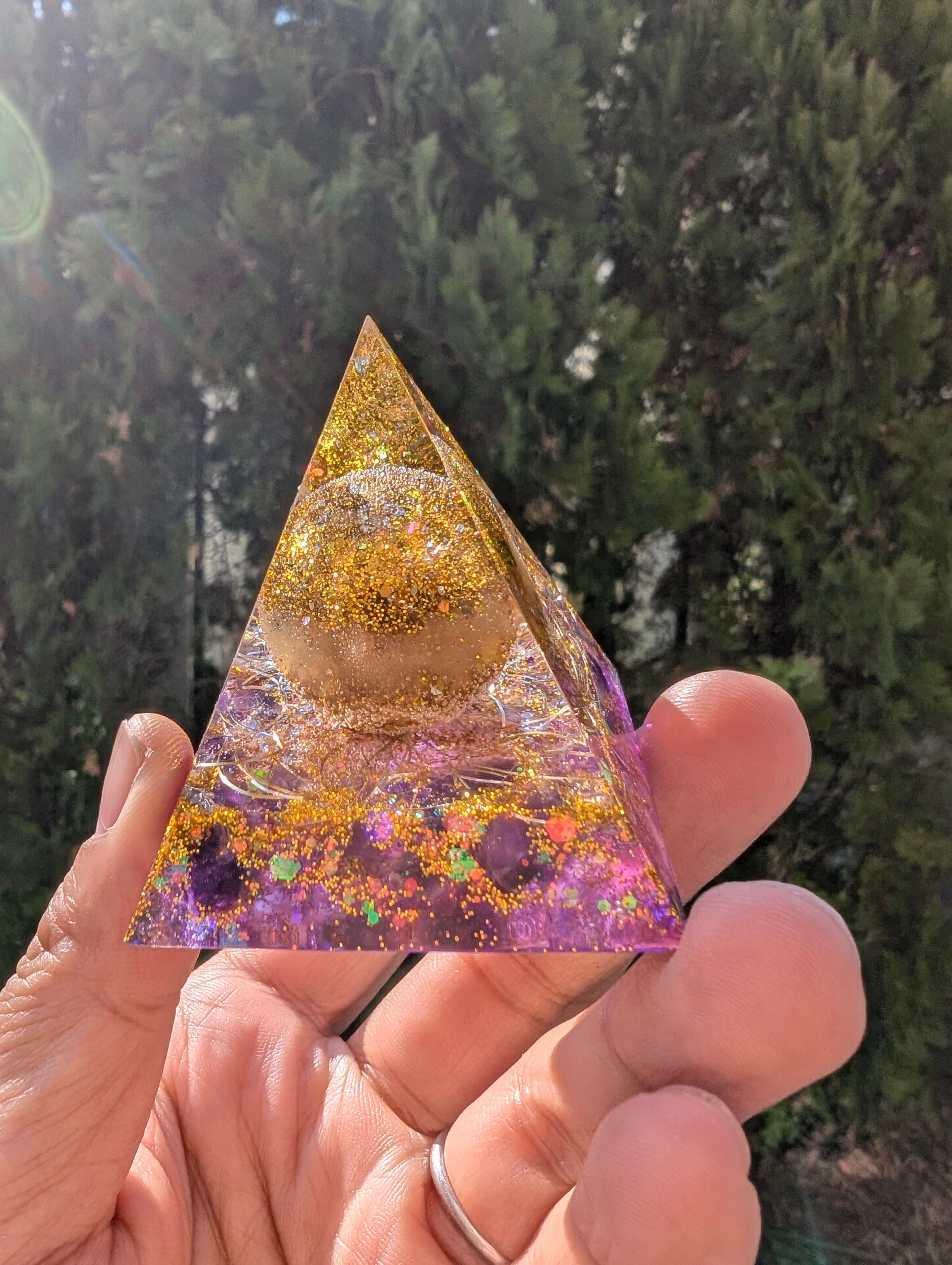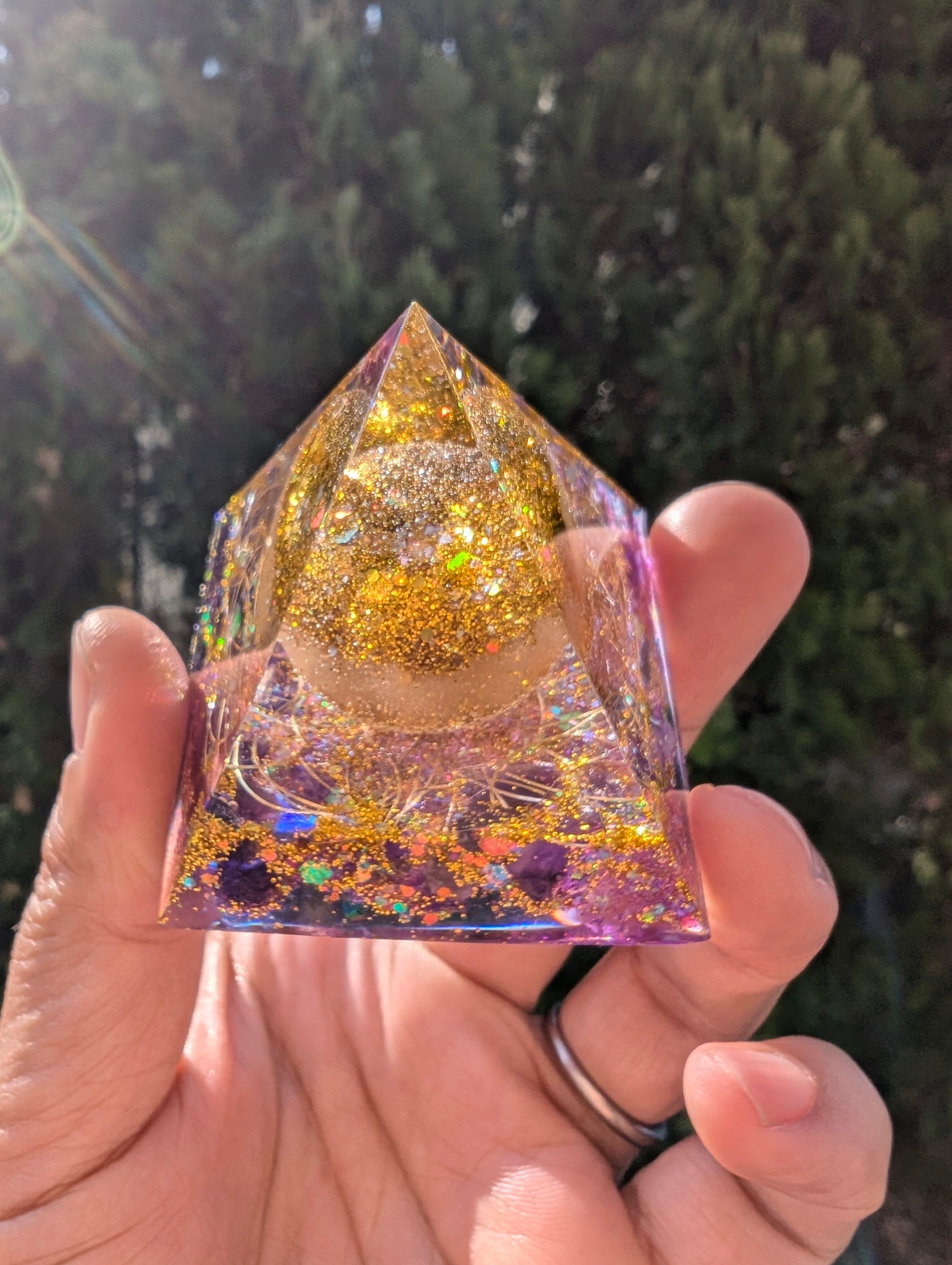 力強さ、みなぎるエネルギー、慈悲深さを感じる作品になっています!金色と銀色のエネルギー体を封印しました。