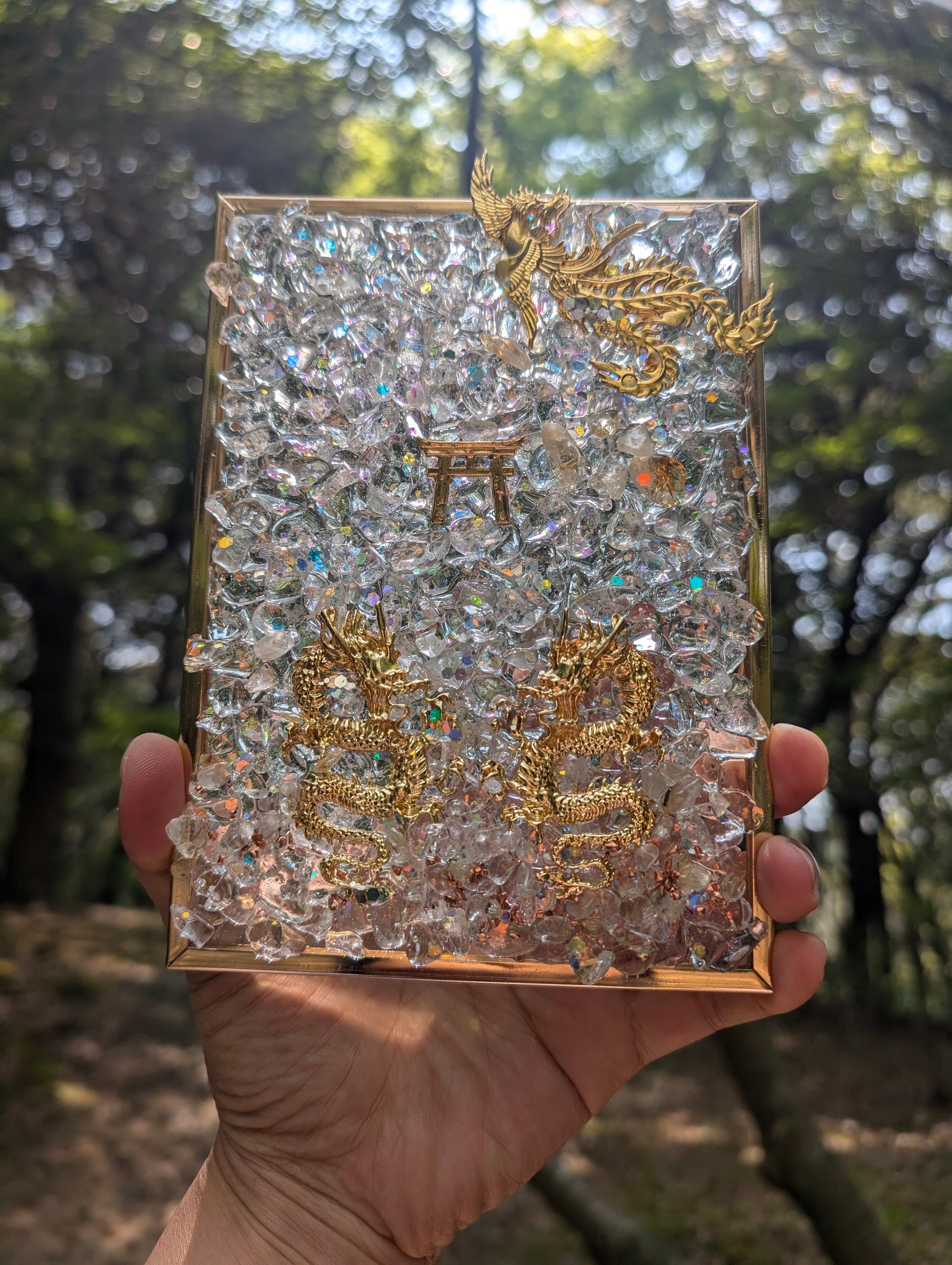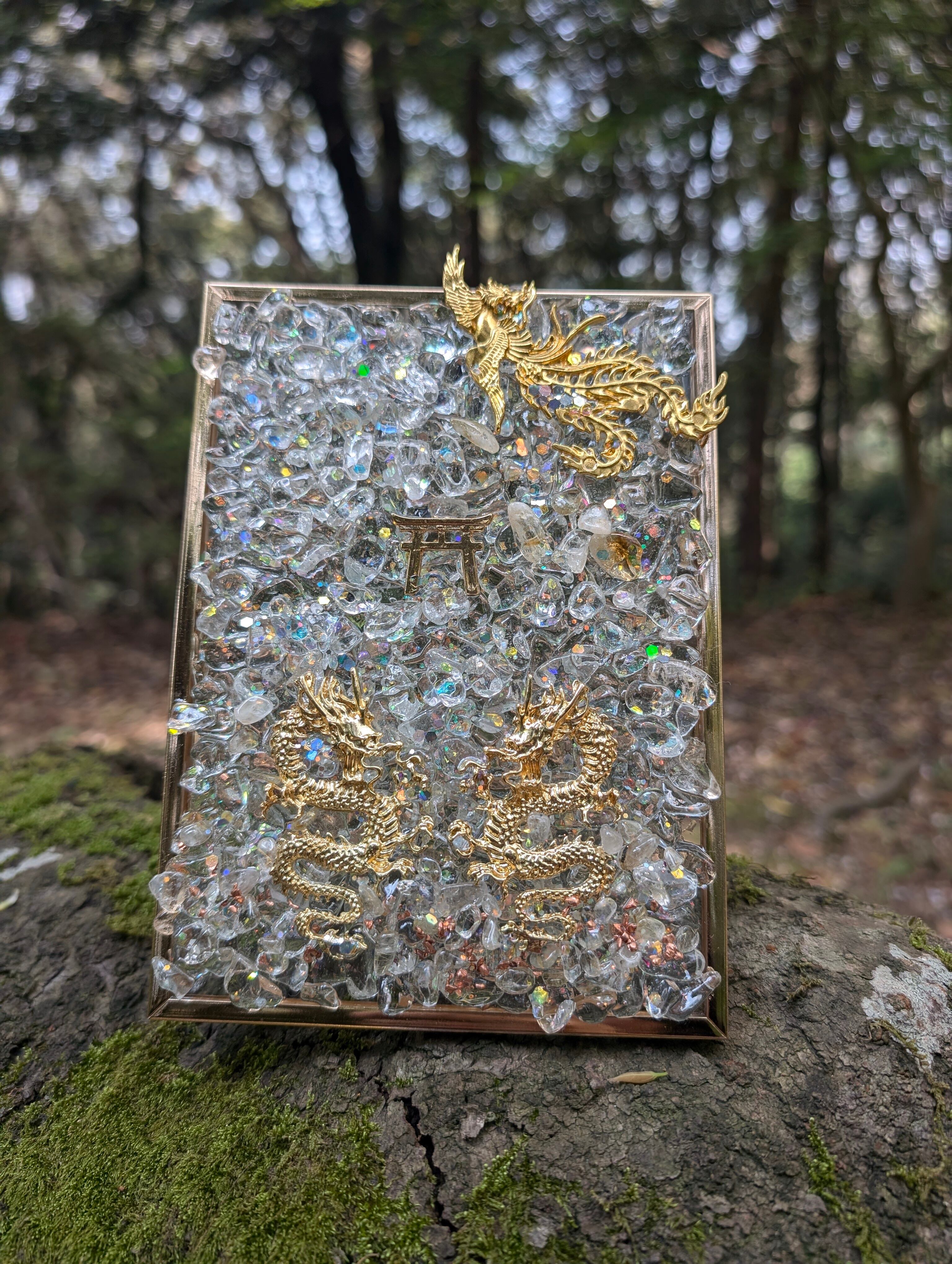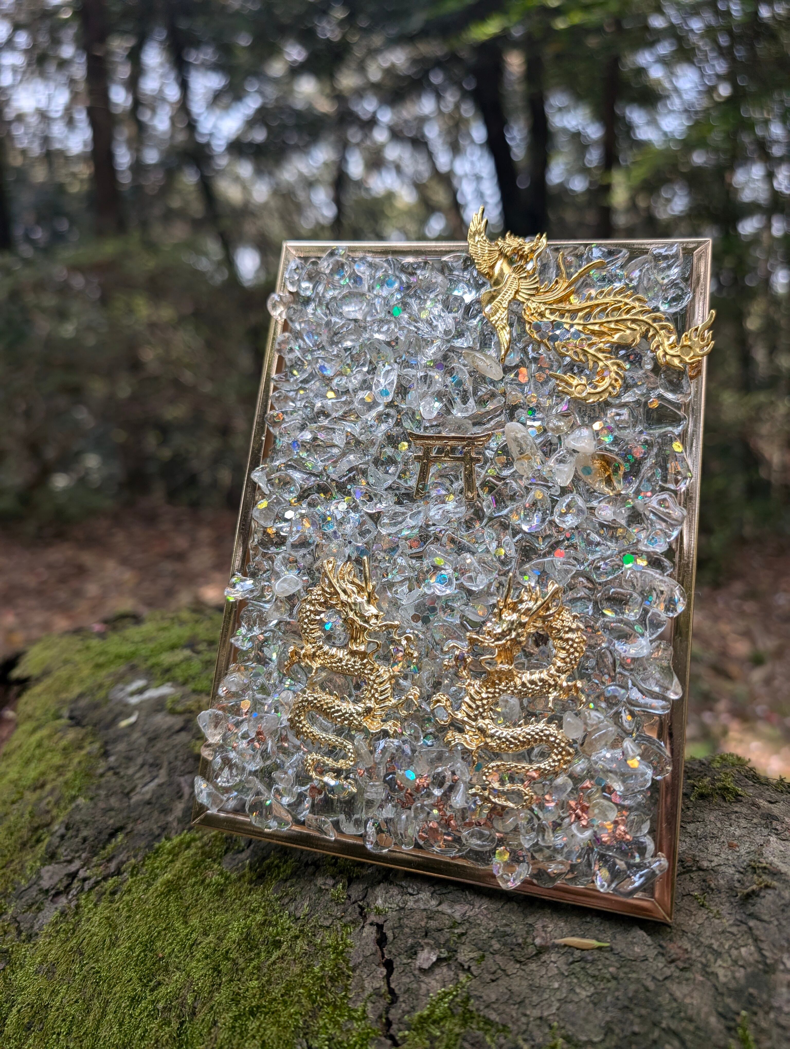 こちらは、鳳凰と龍のスタンドオルゴナイトです✨中央部に鳥居を置きました。