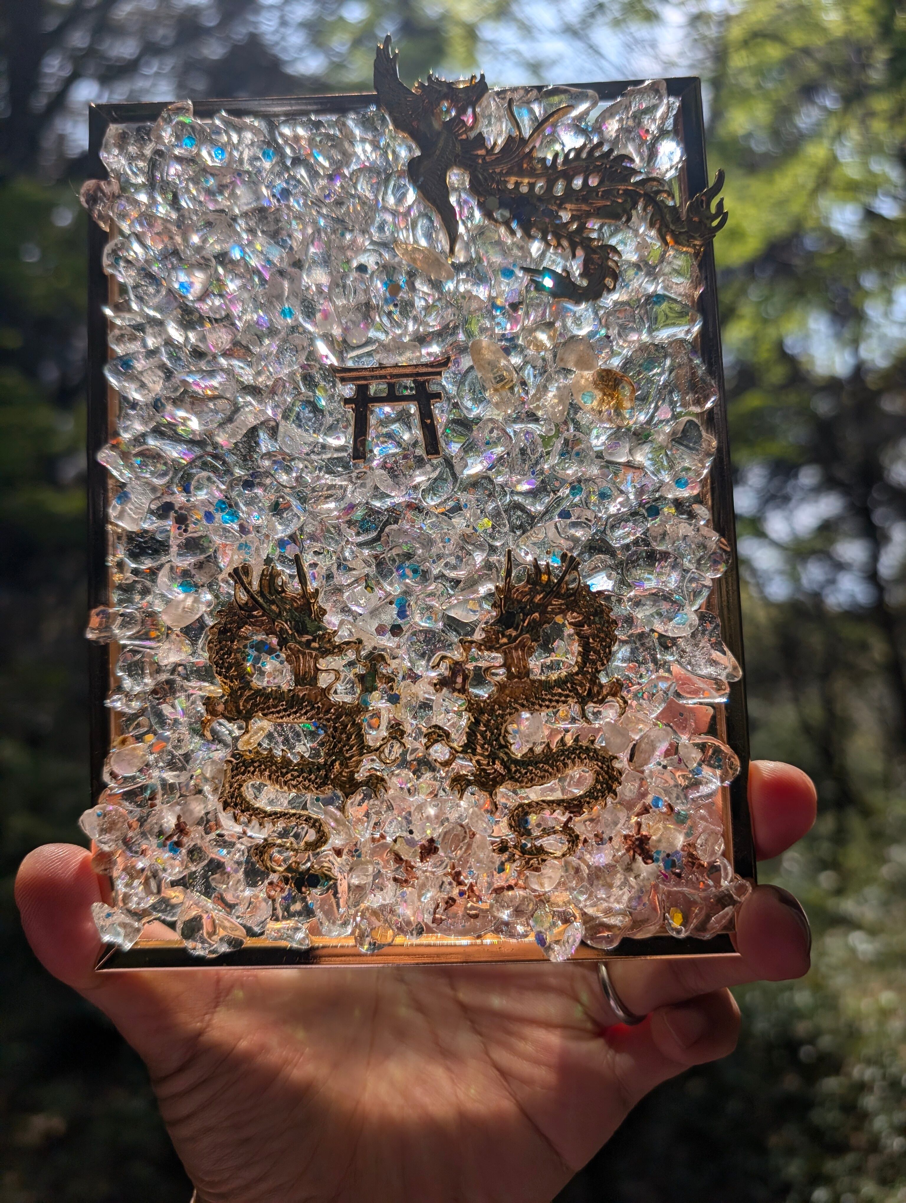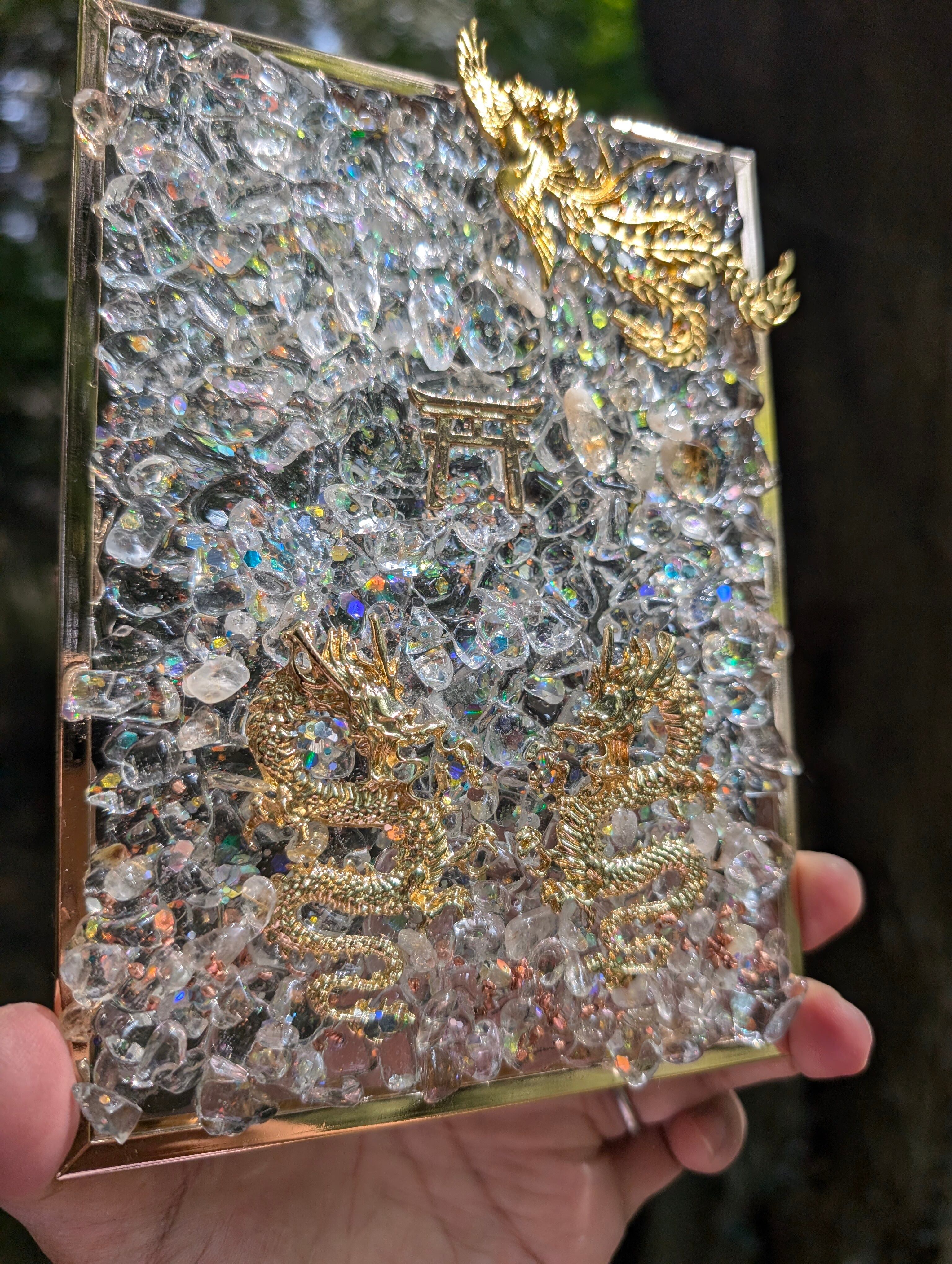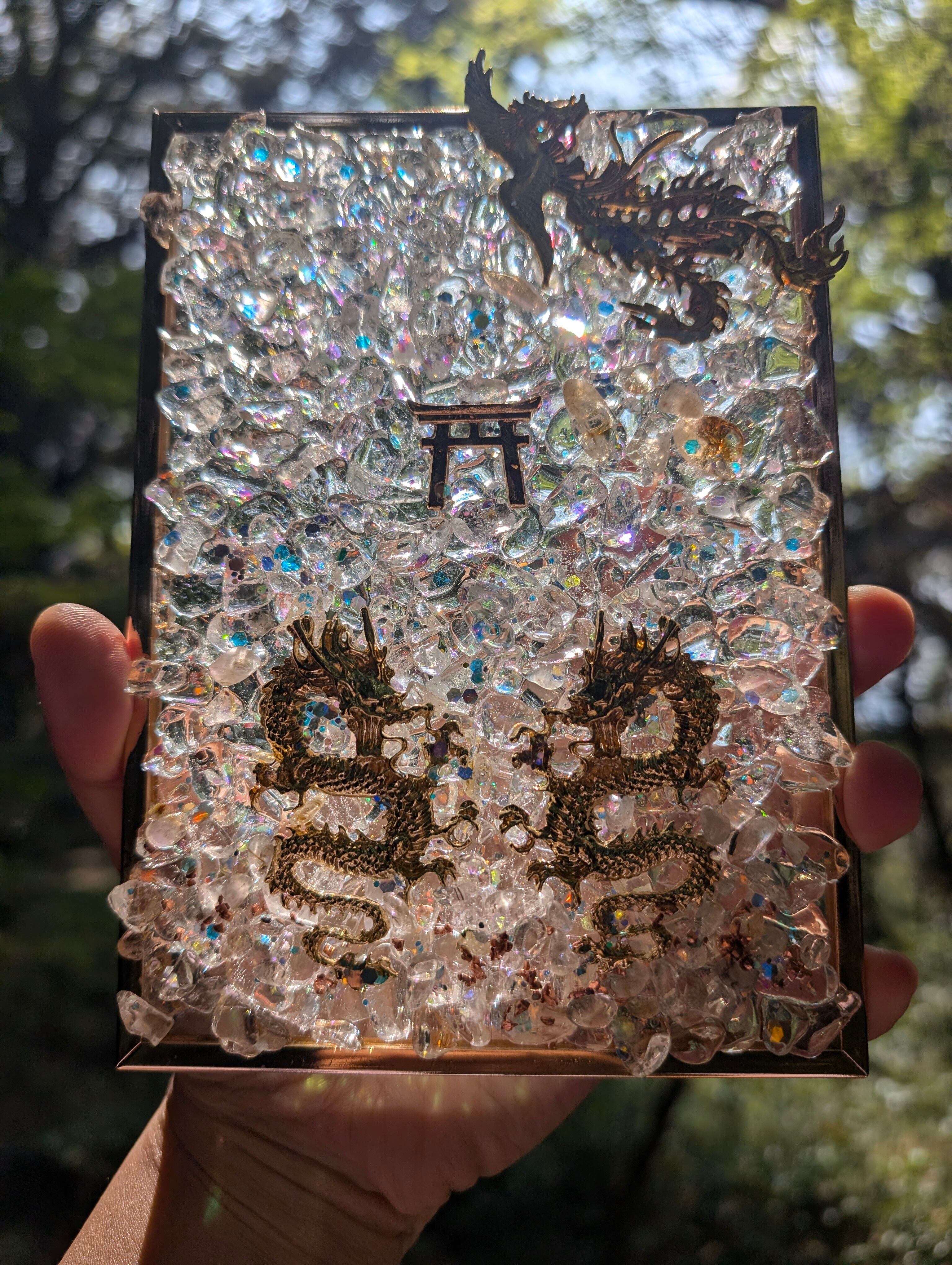 こちらは、鳳凰と龍のスタンドオルゴナイトです✨中央部に鳥居を置きました。