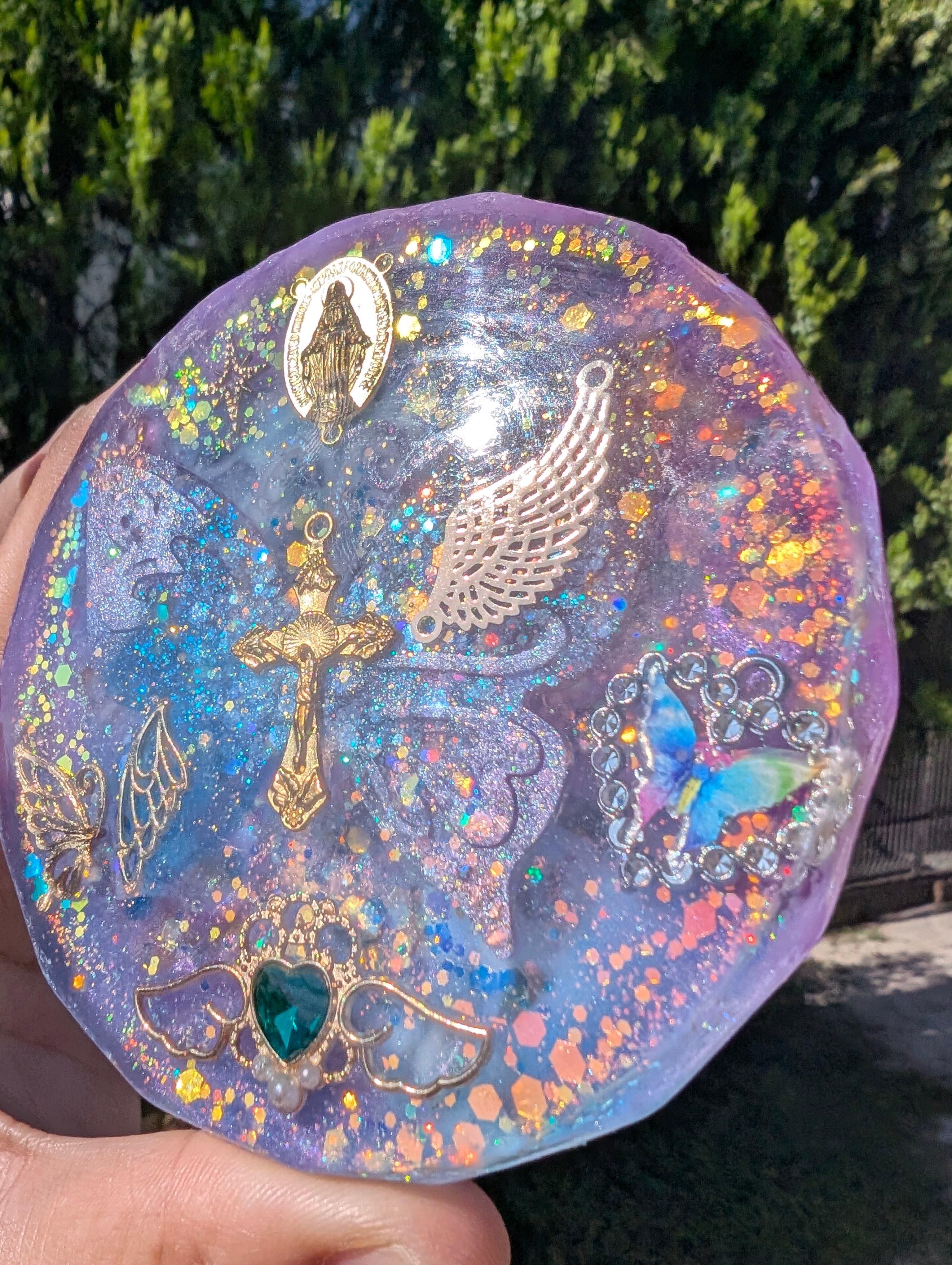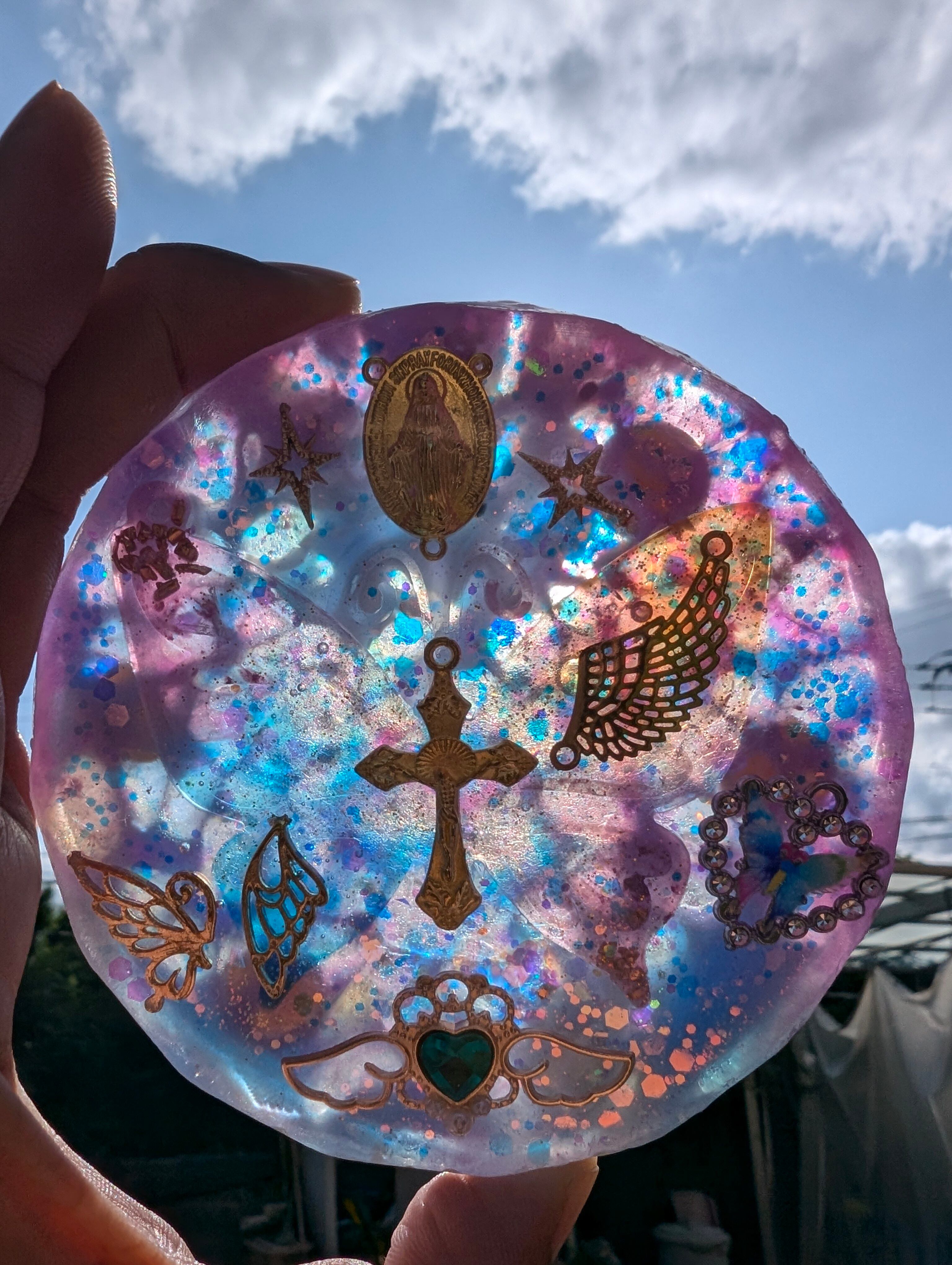 こちら、奇跡を起こすカトリックの巡礼地ルルドの泉の聖水が入ったプレートオルゴナイトです♥