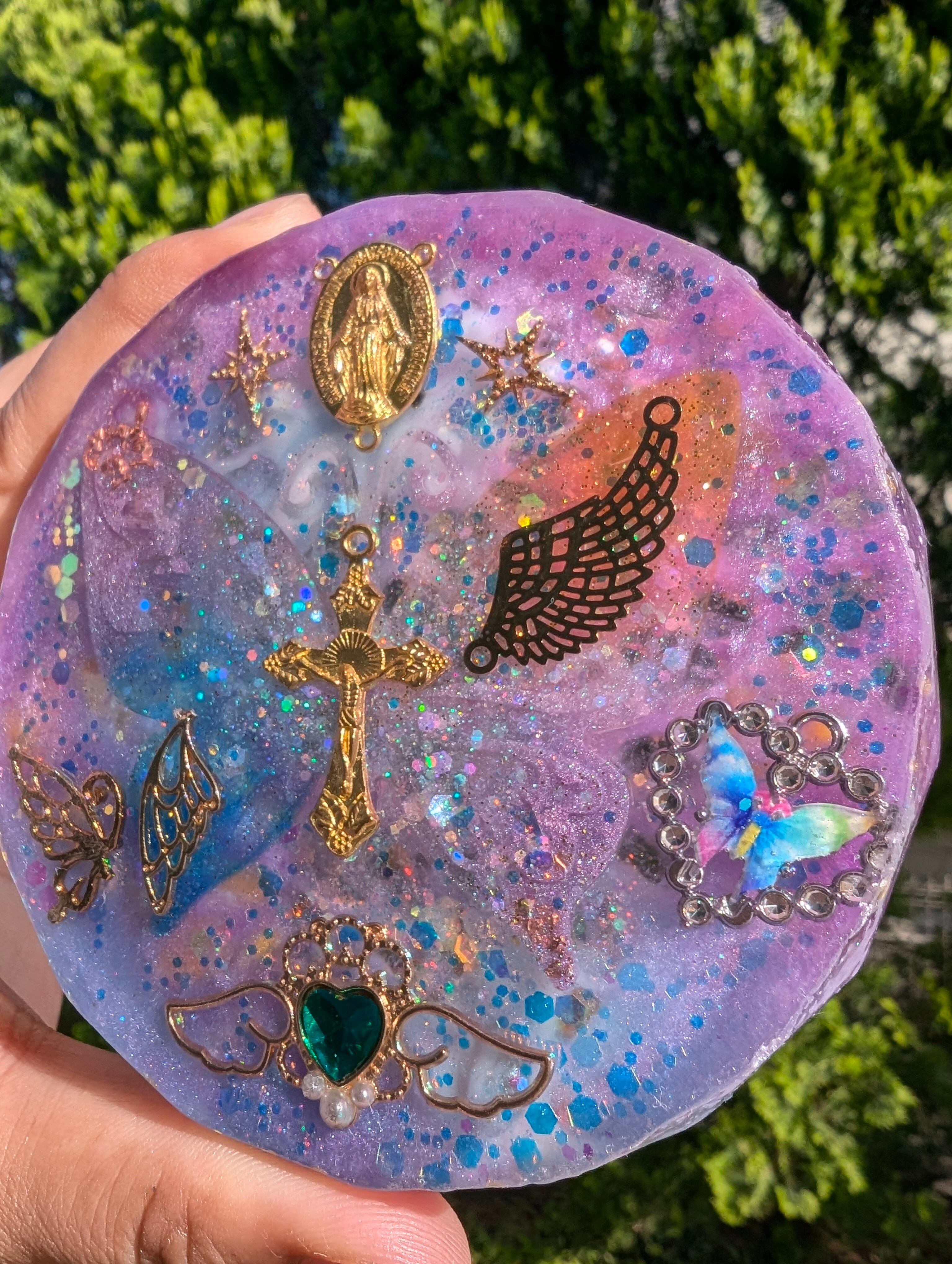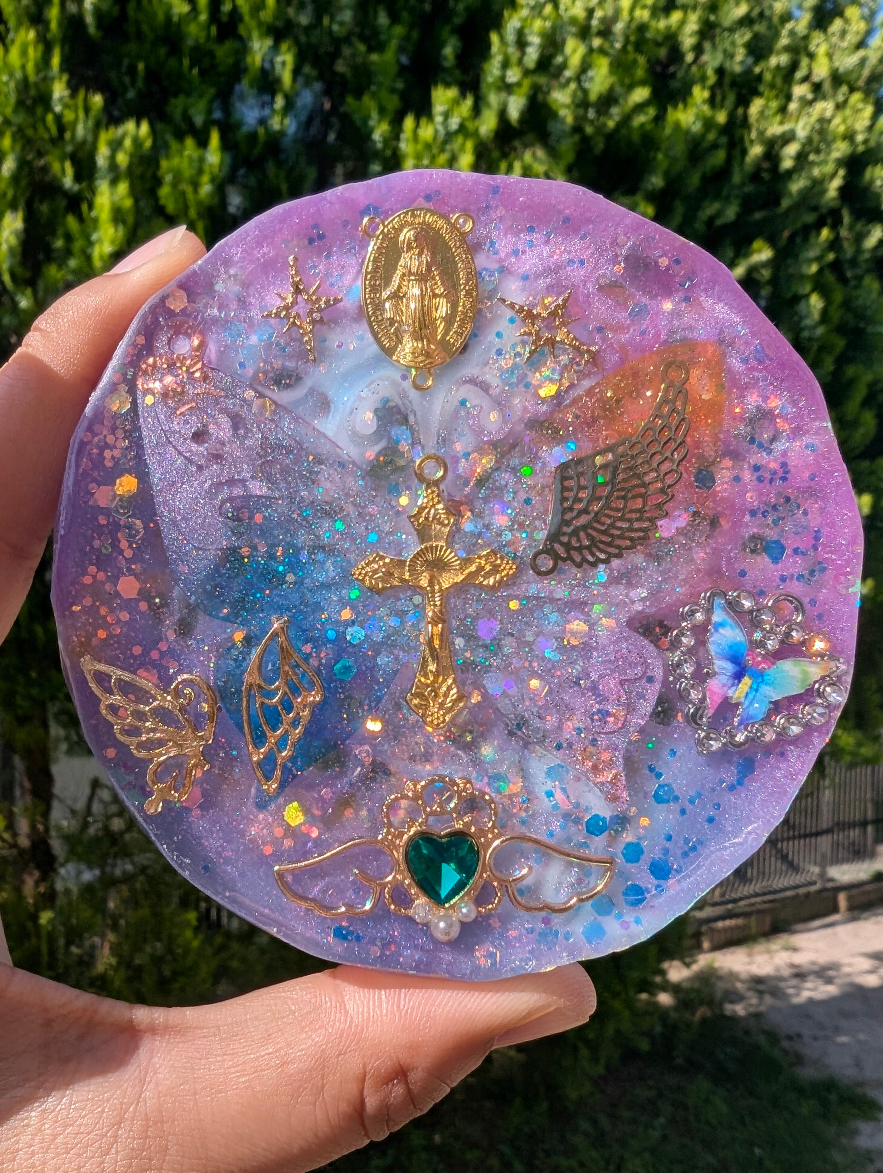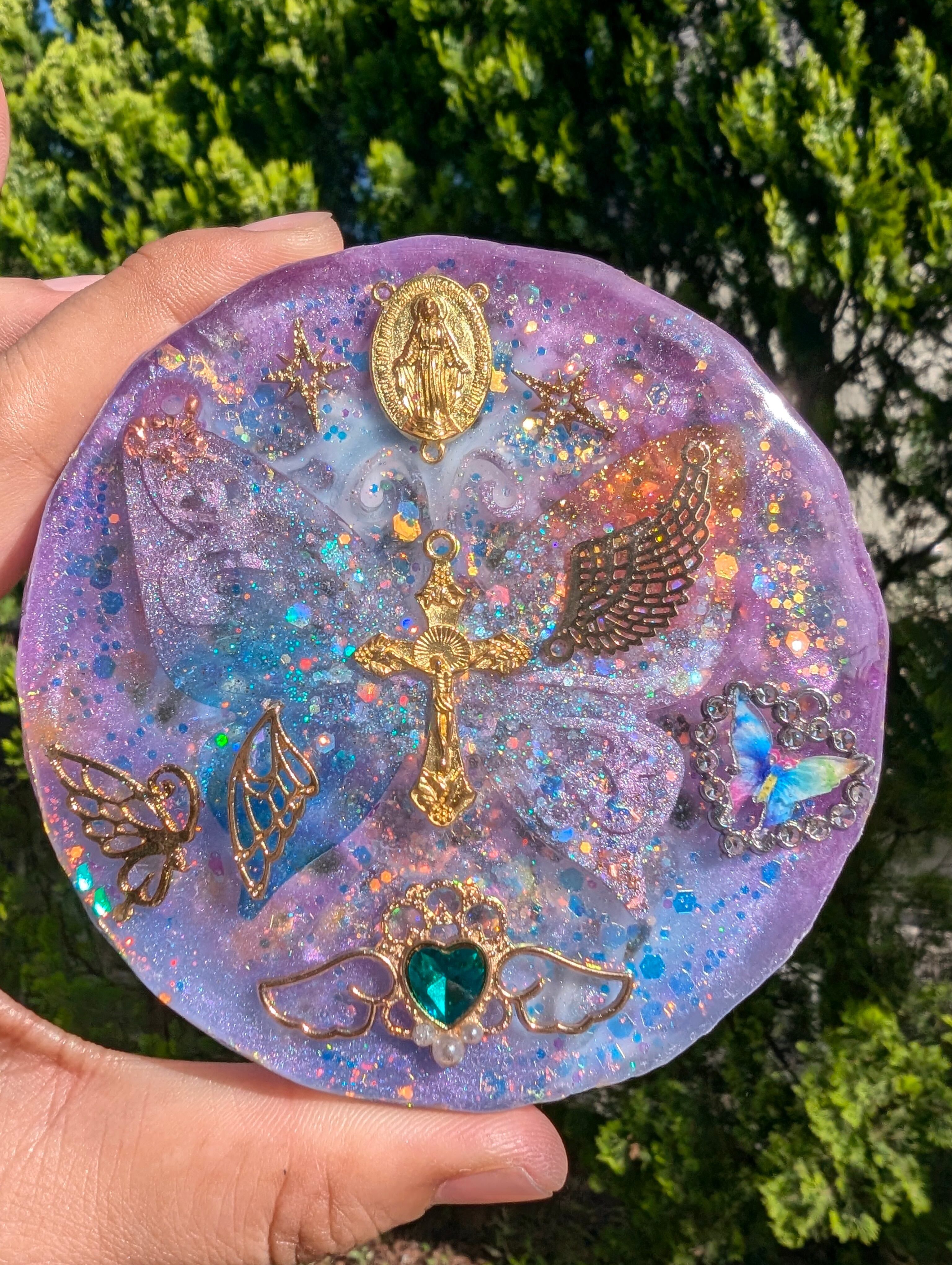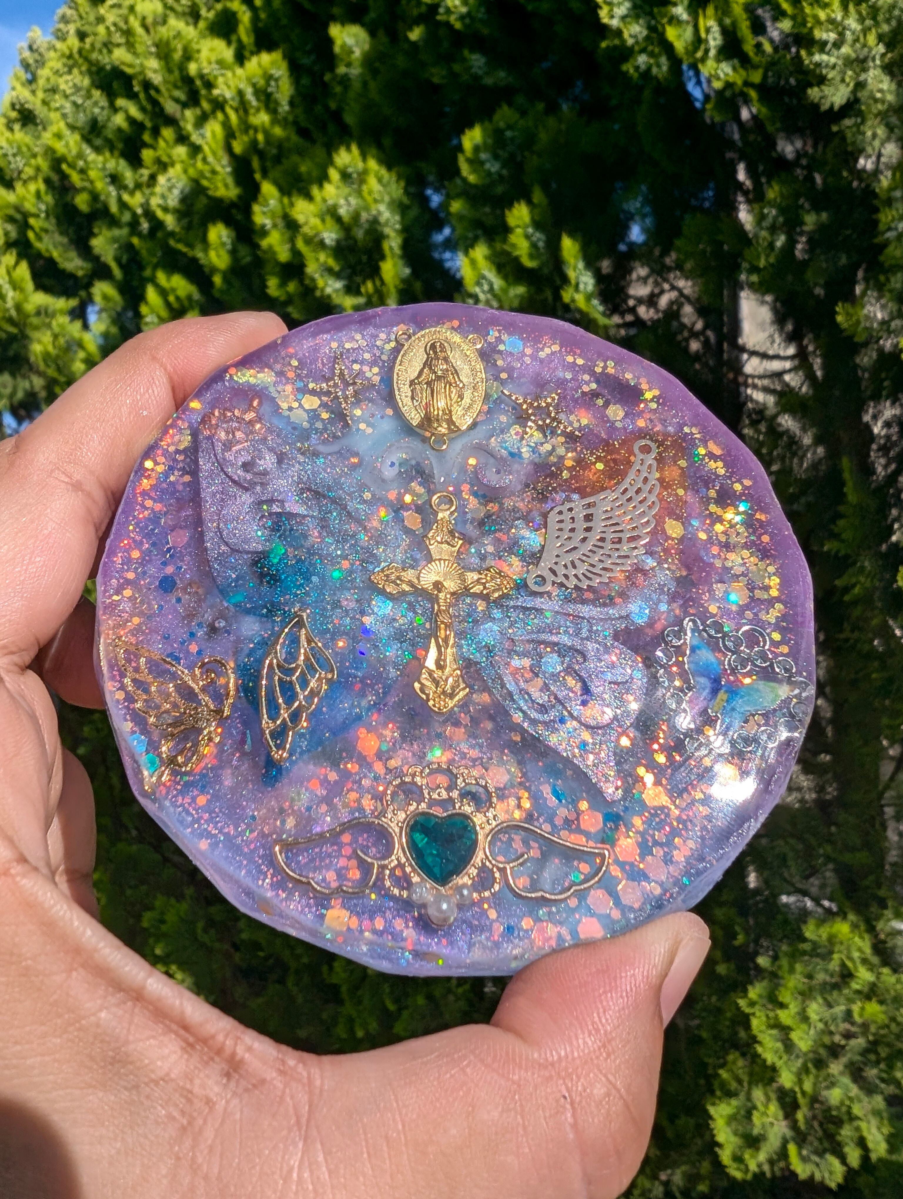 大きなオルゴナイトで作った蝶々が入り、変化変容を意味しています。