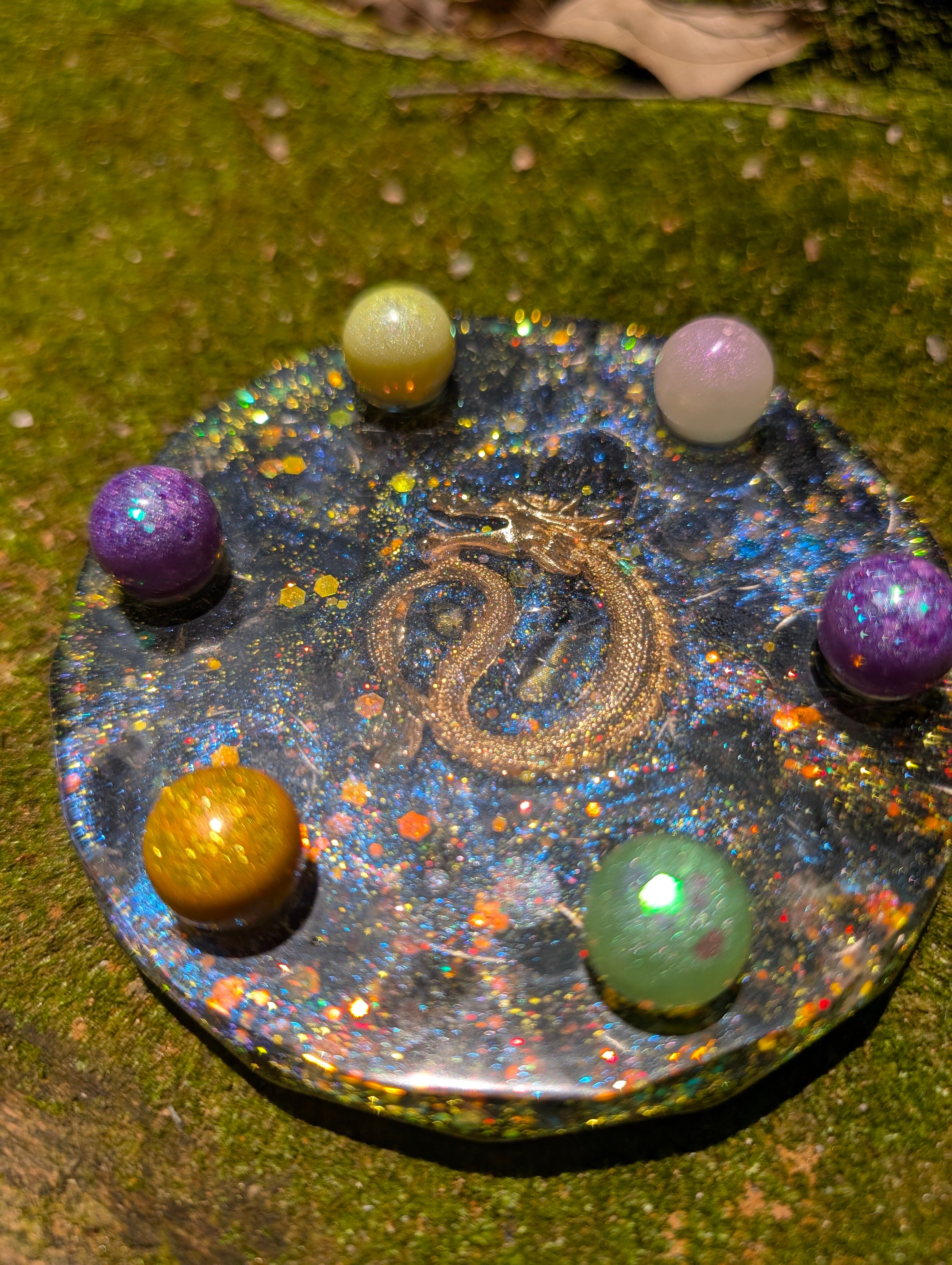 専用②宇宙と繋がる✨ギベオン隕石と宮古島EM麻炭入り四神龍の龍体文字のオルゴナイト