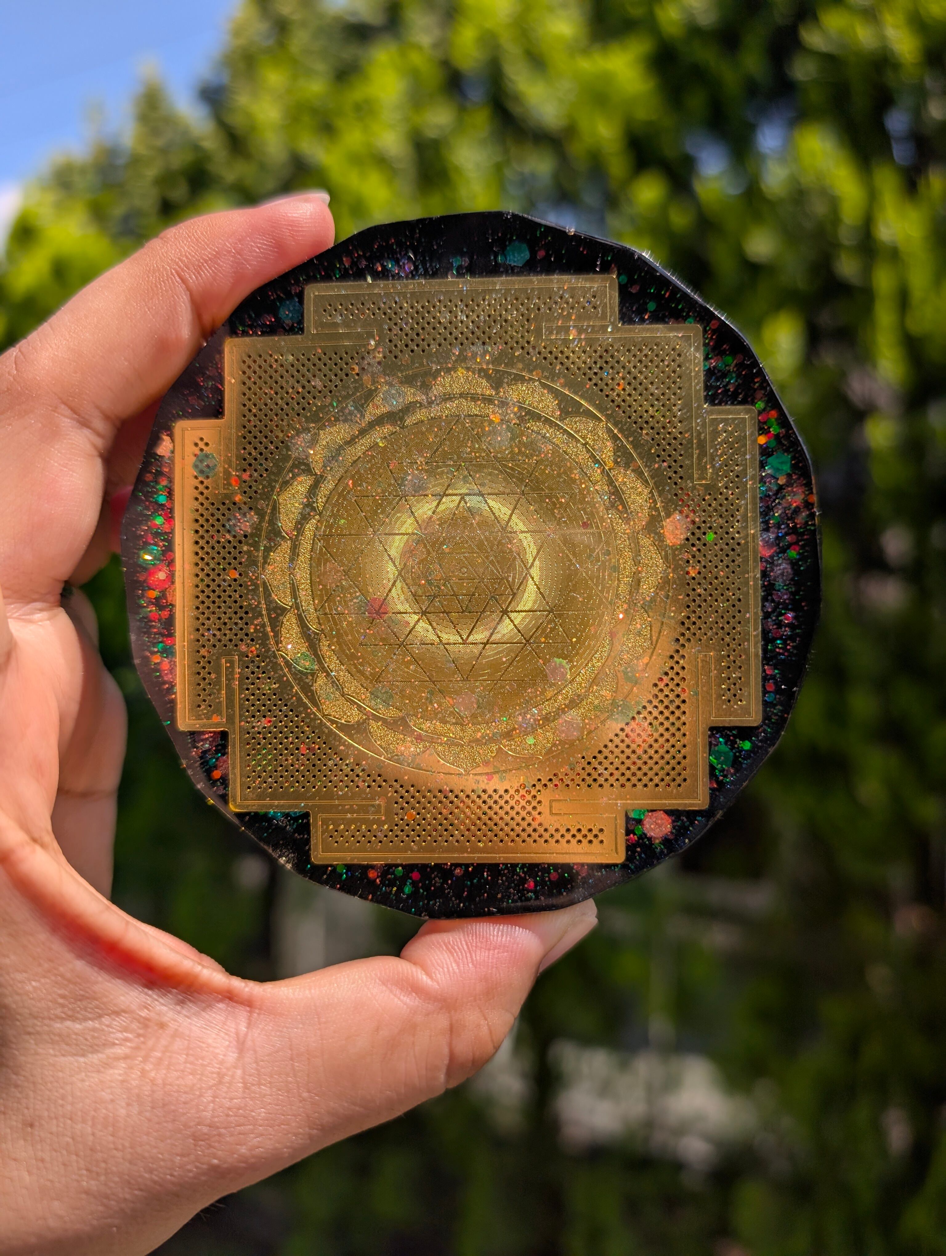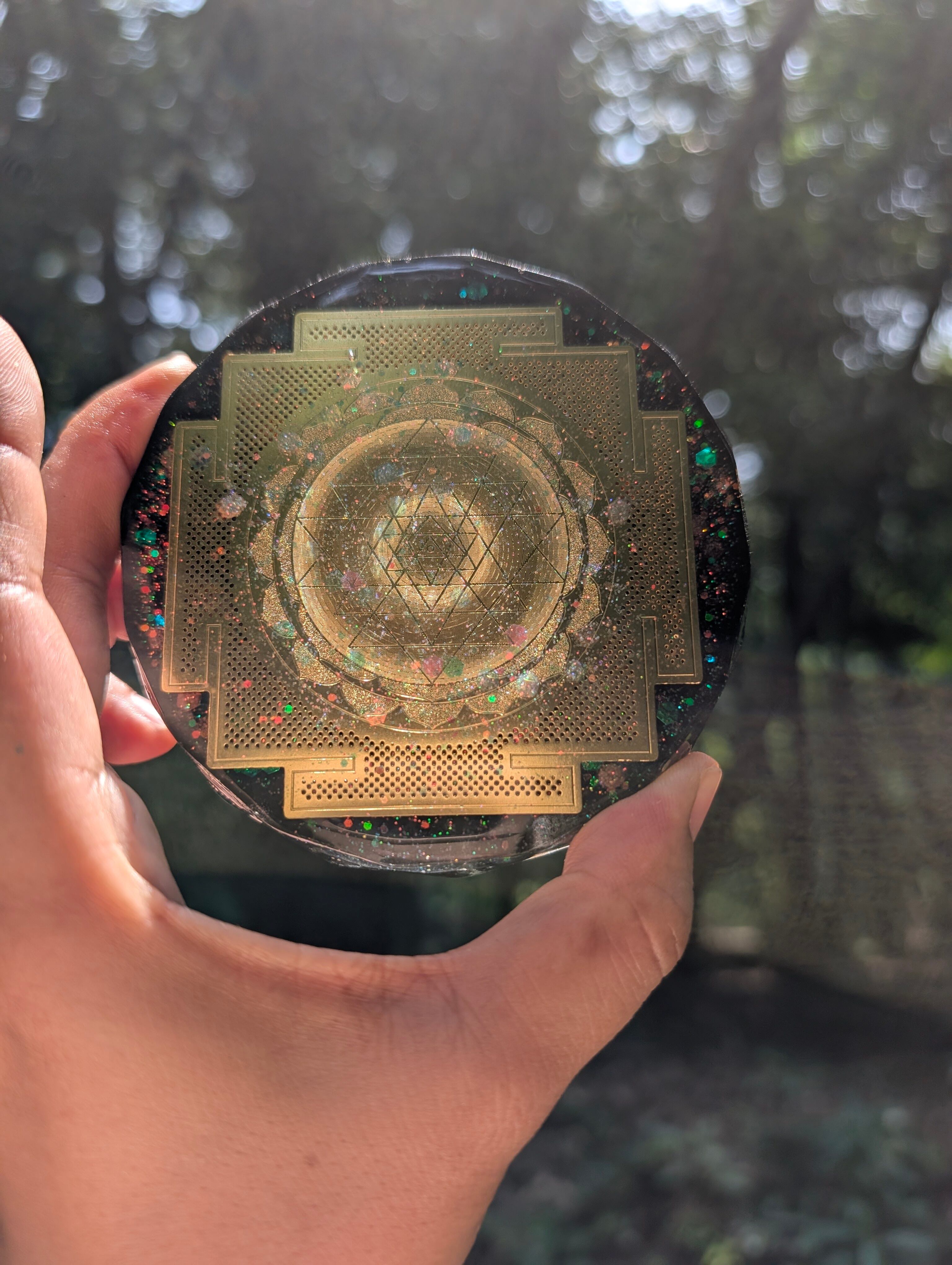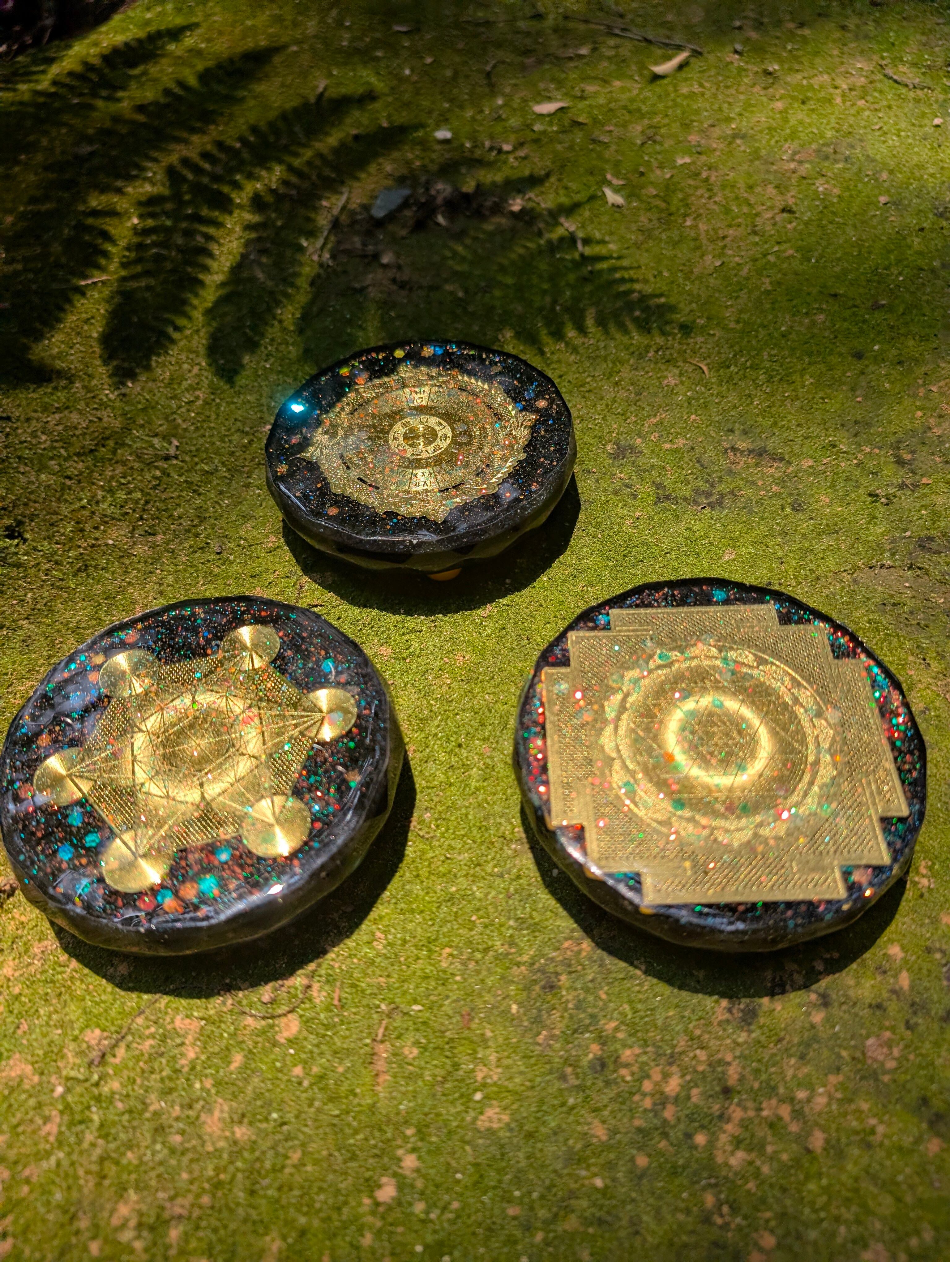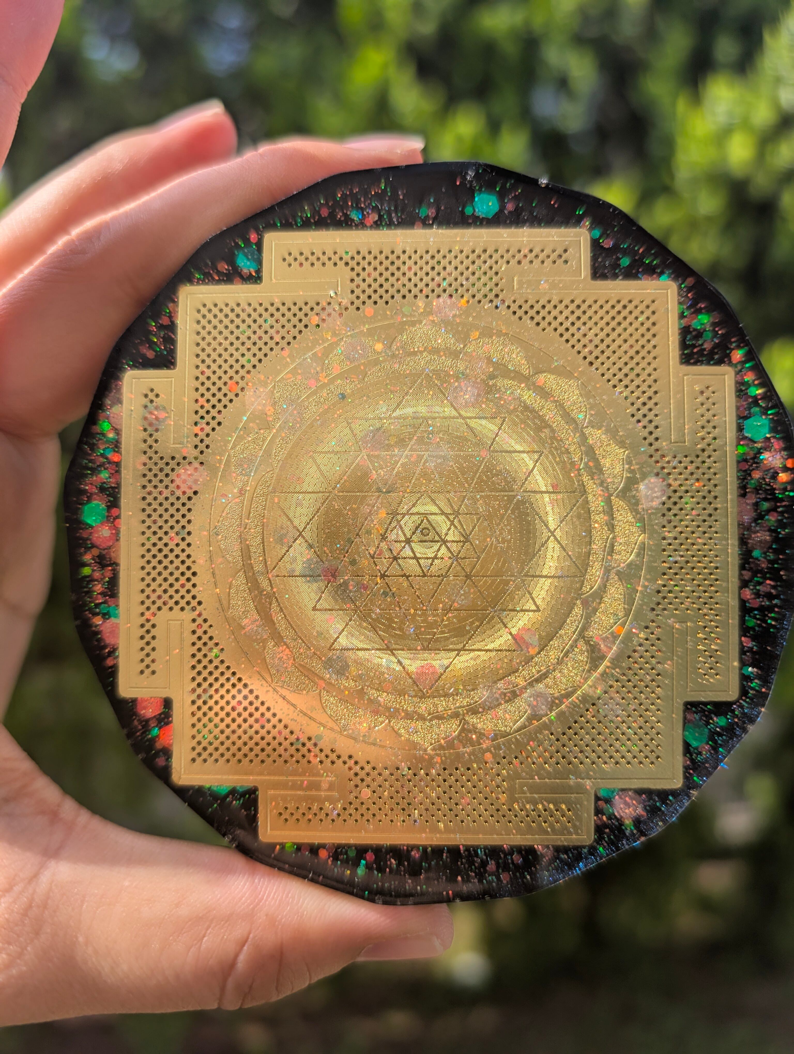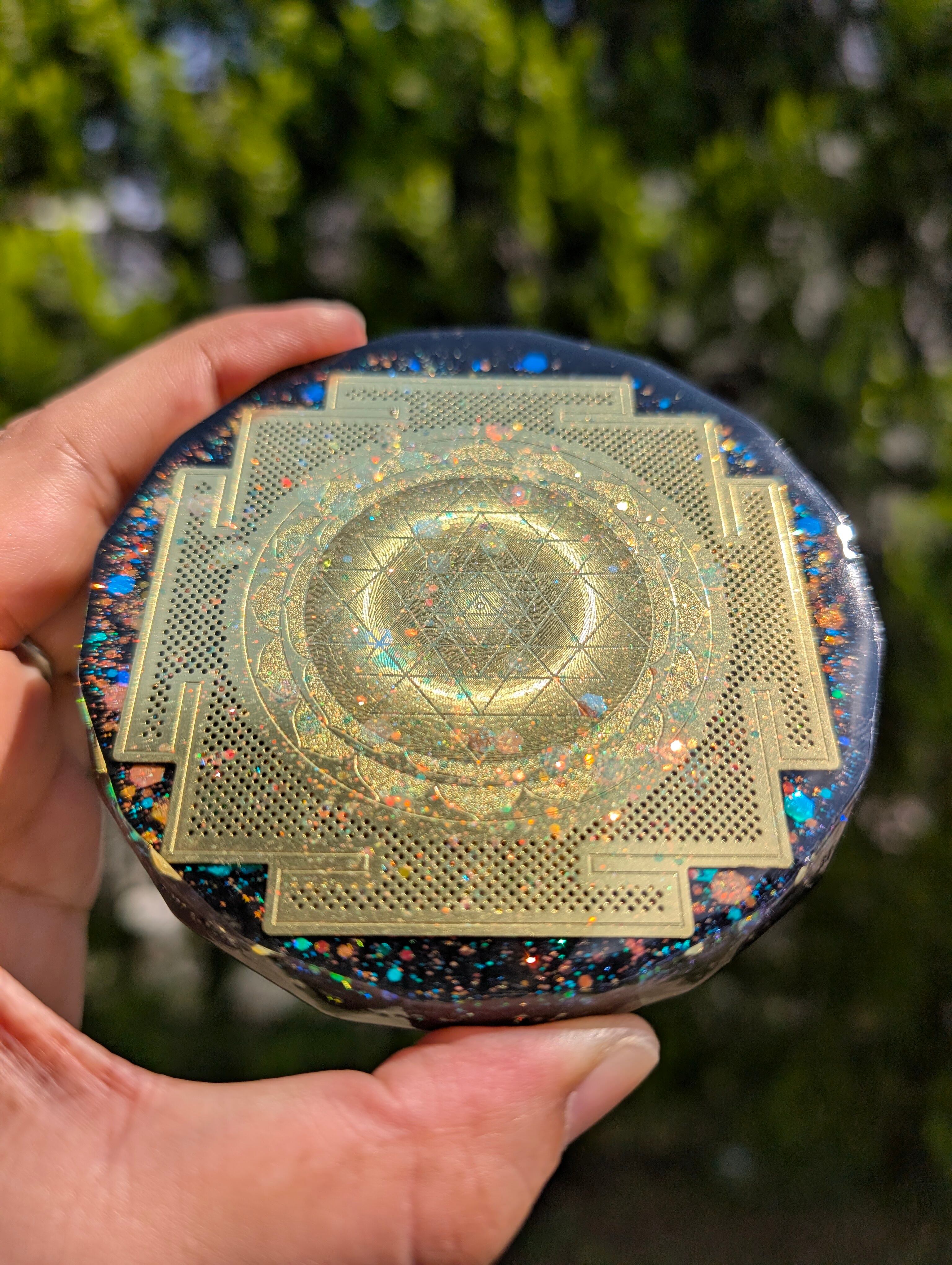 古代神聖幾何学ヤントラの宇宙と繋がる高波動のオルゴナイトが完成しました✨