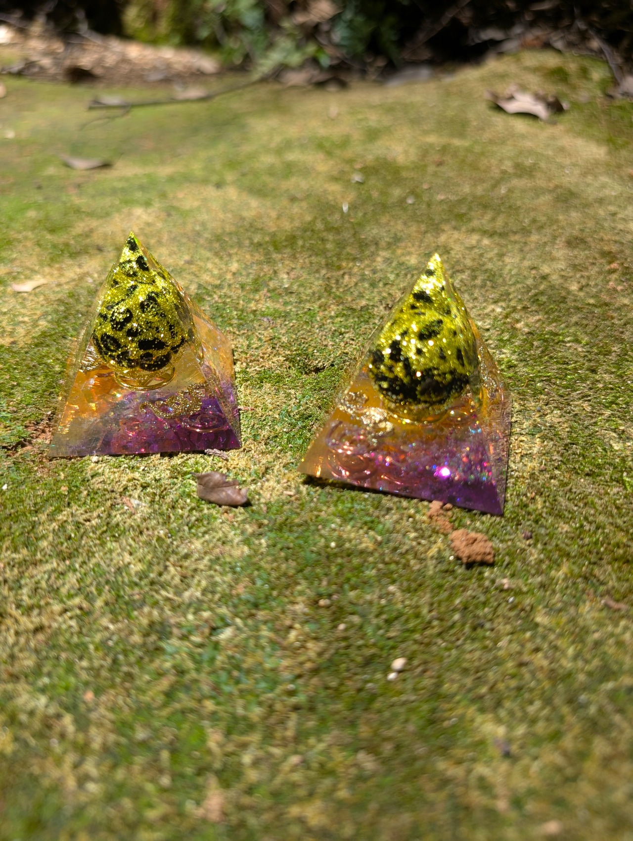 モリオンで作った結界のエネルギーの丸玉オルゴナイト。あなたに飛んできた不要なエネルギーを祓い返します!丸玉の下には五芒星を封入。