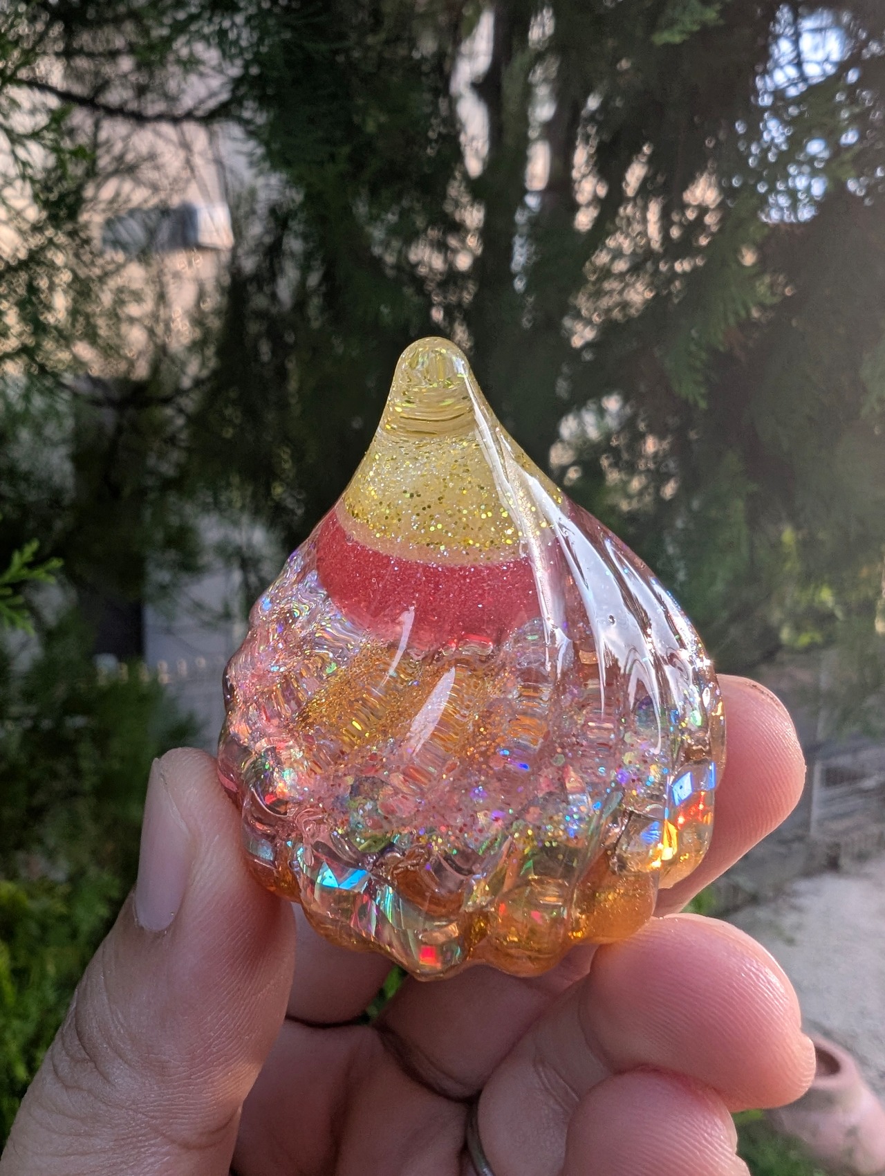 こちらは、弁財天様のエネルギーを込めた、黄金に輝く盛り塩オルゴナイトです。