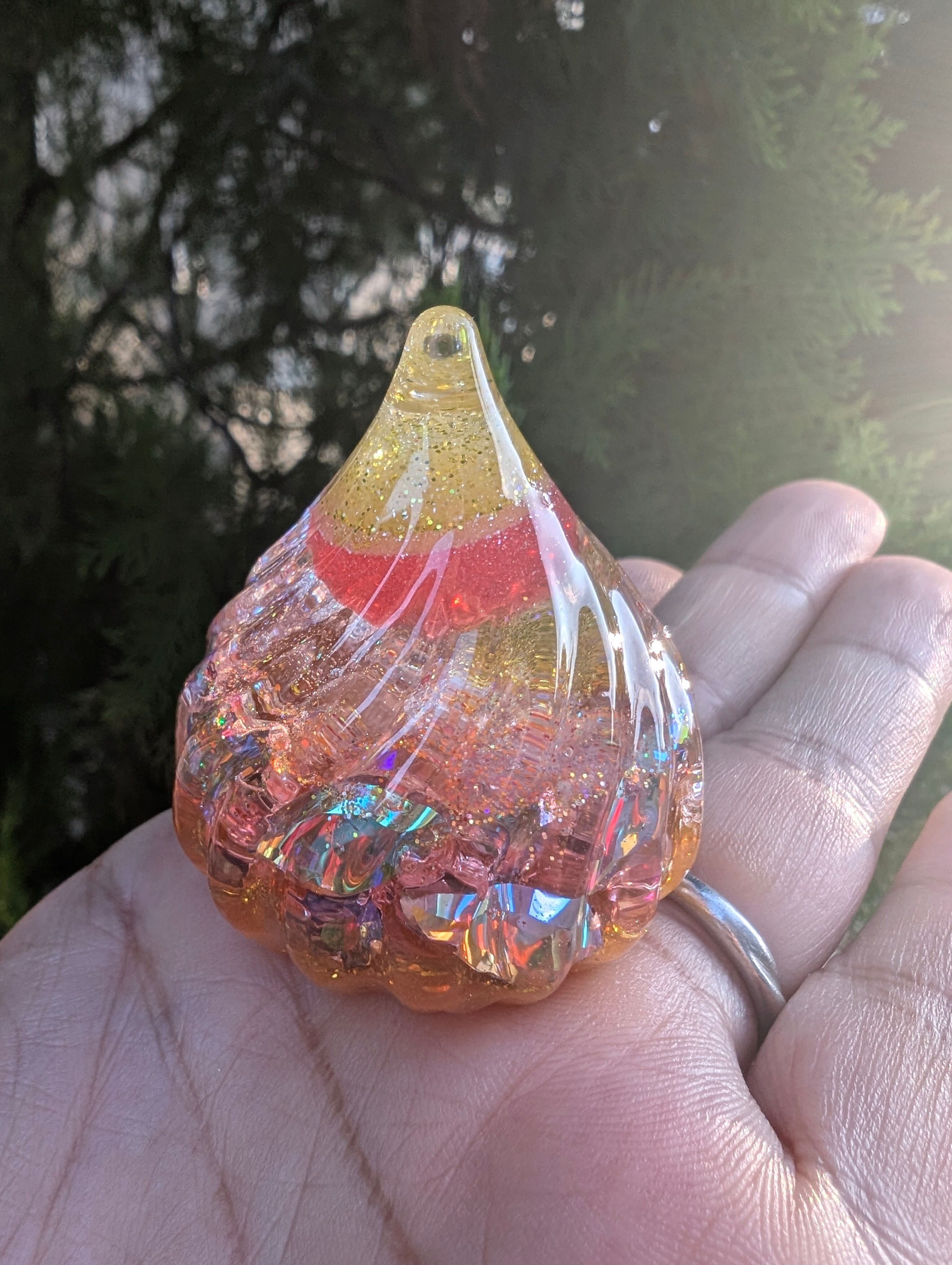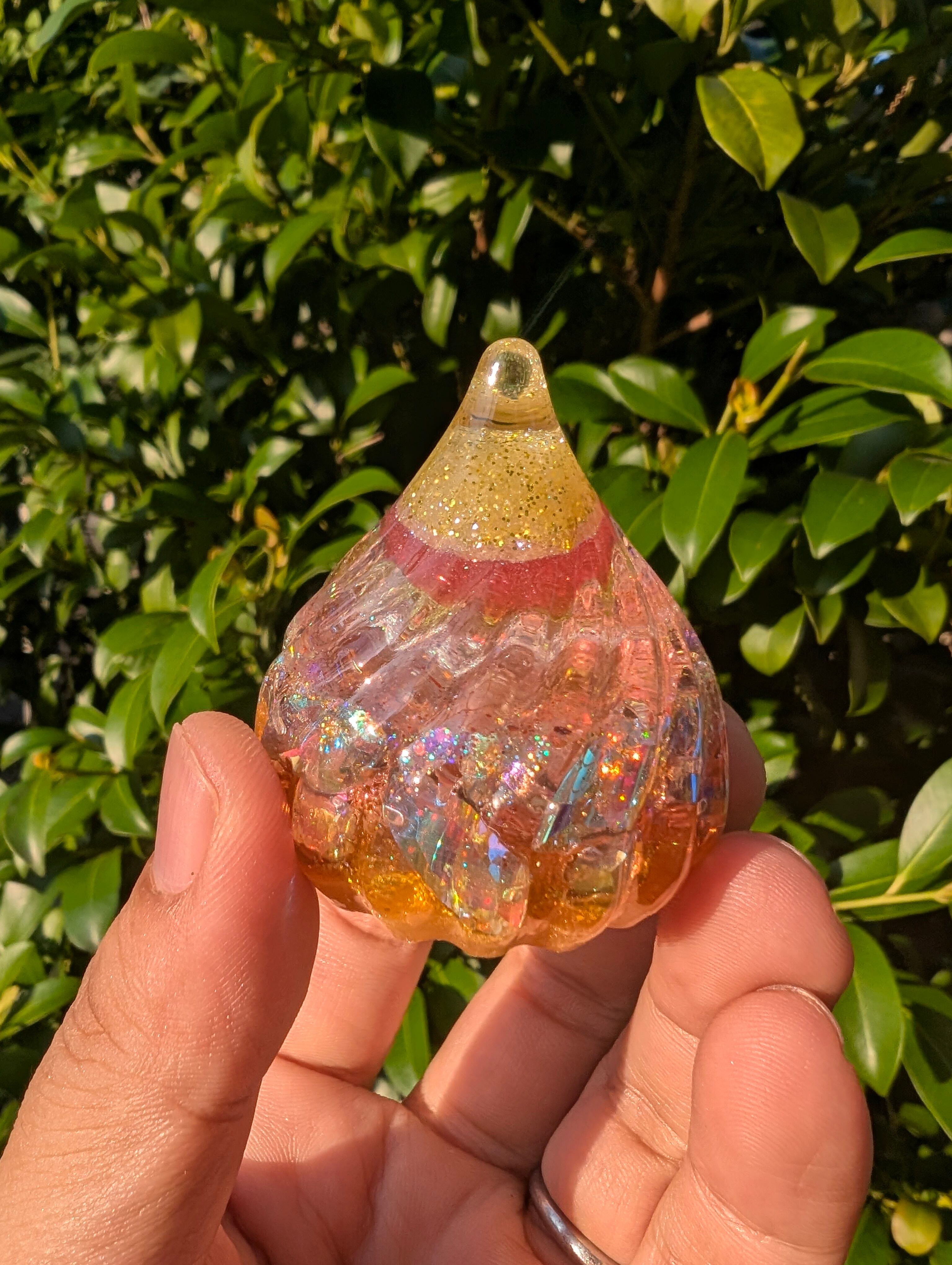 こちらは、弁財天様のエネルギーを込めた、黄金に輝く盛り塩オルゴナイトです。