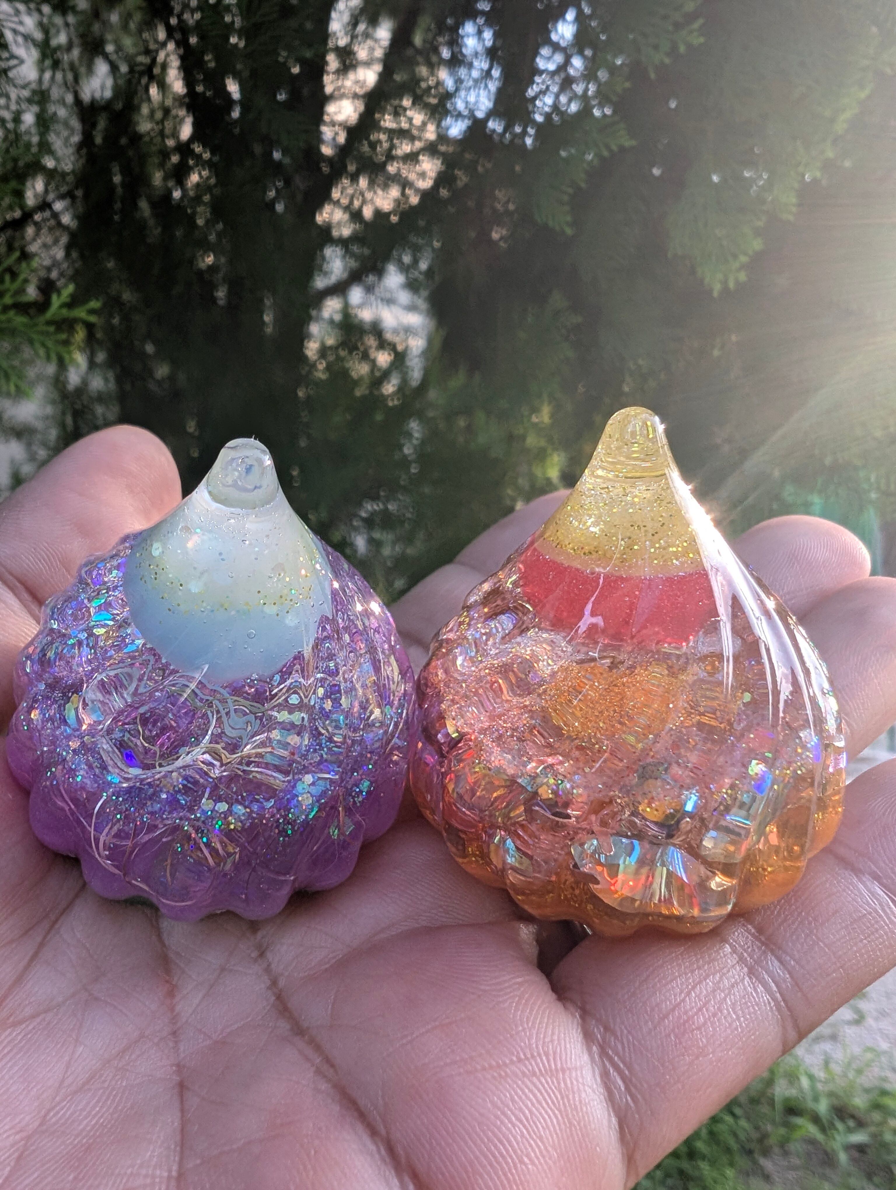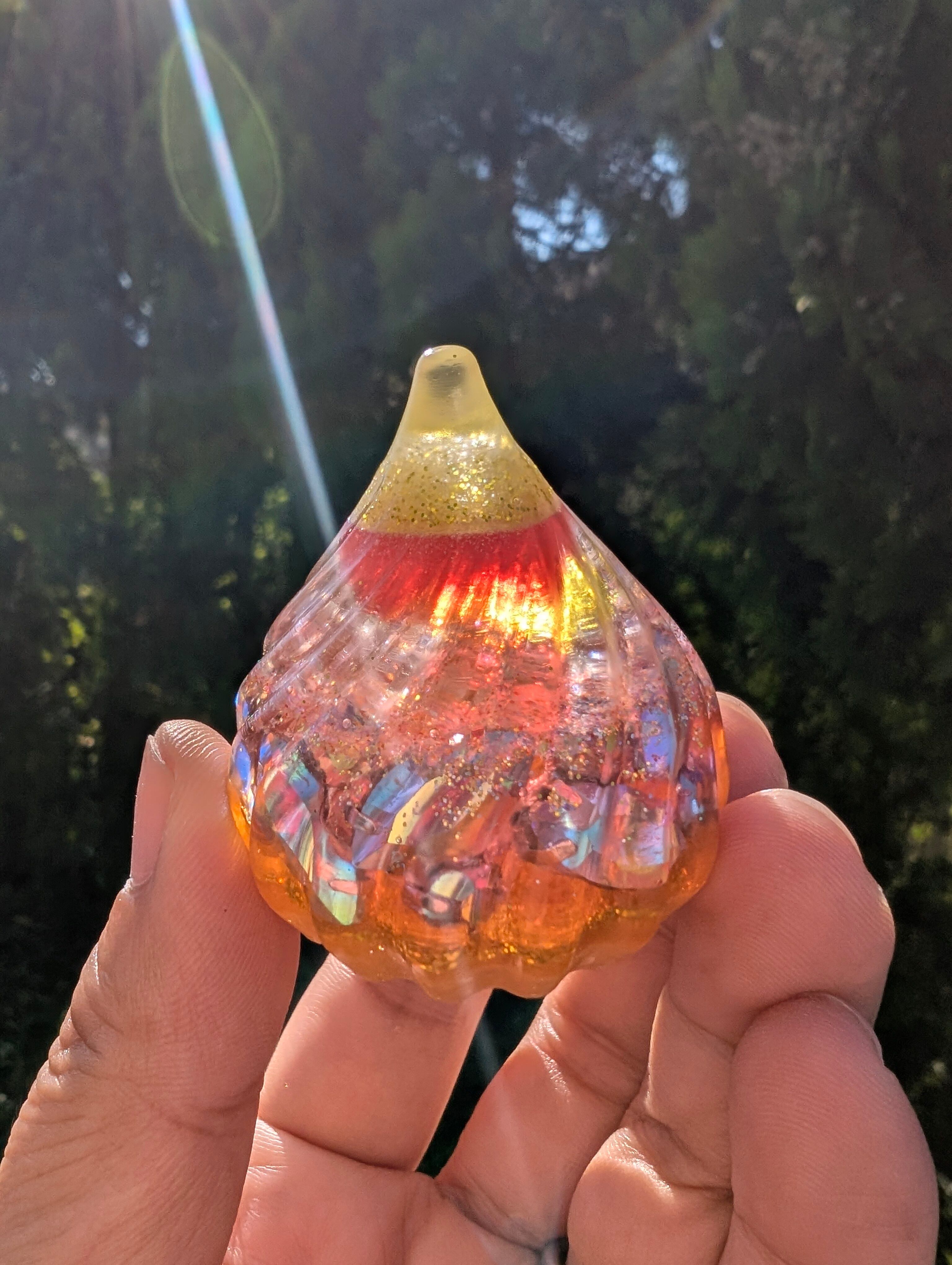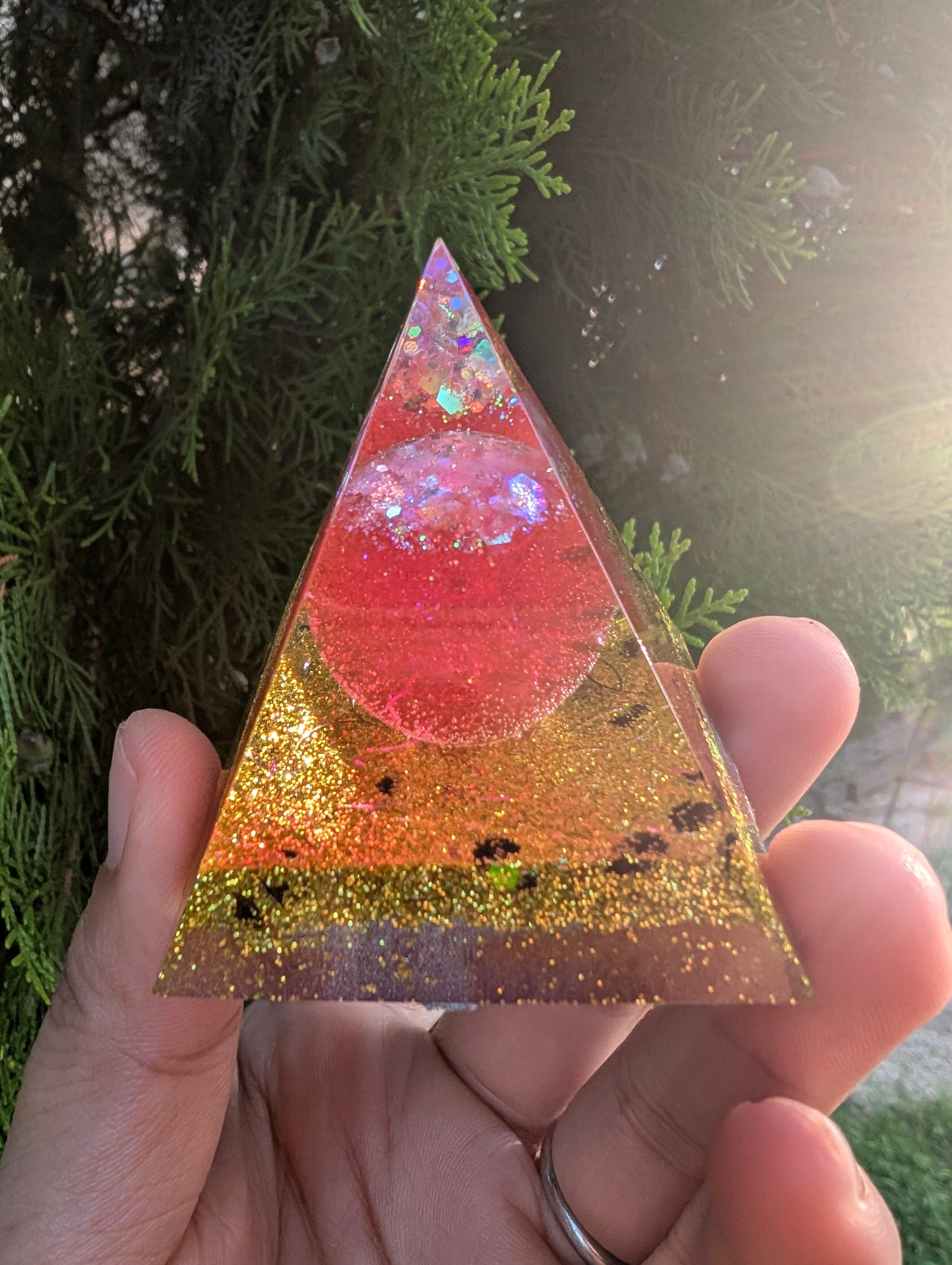 こちらは、弁財天様のエネルギーを込めた、黄金に輝く盛り塩オルゴナイトです。