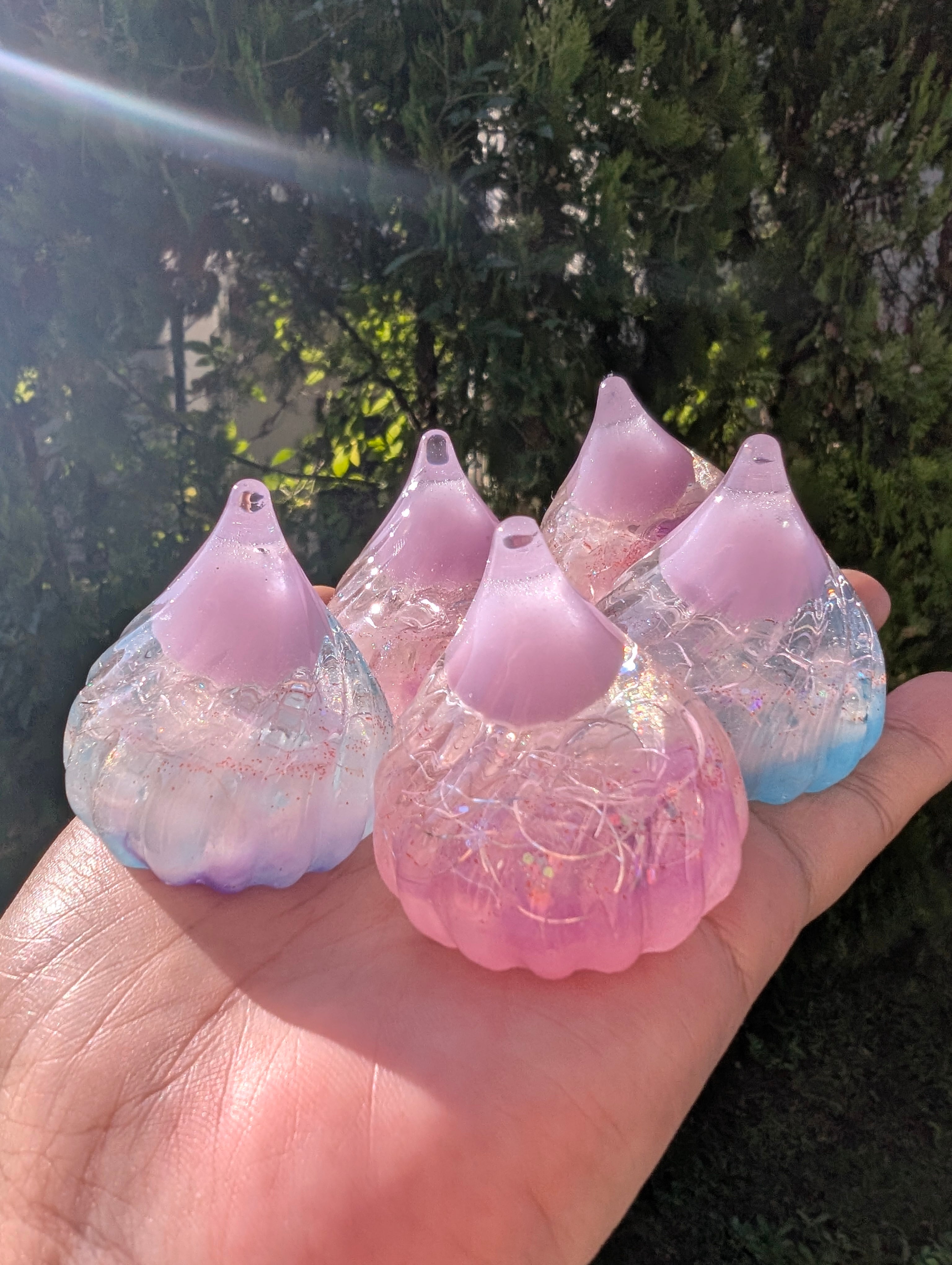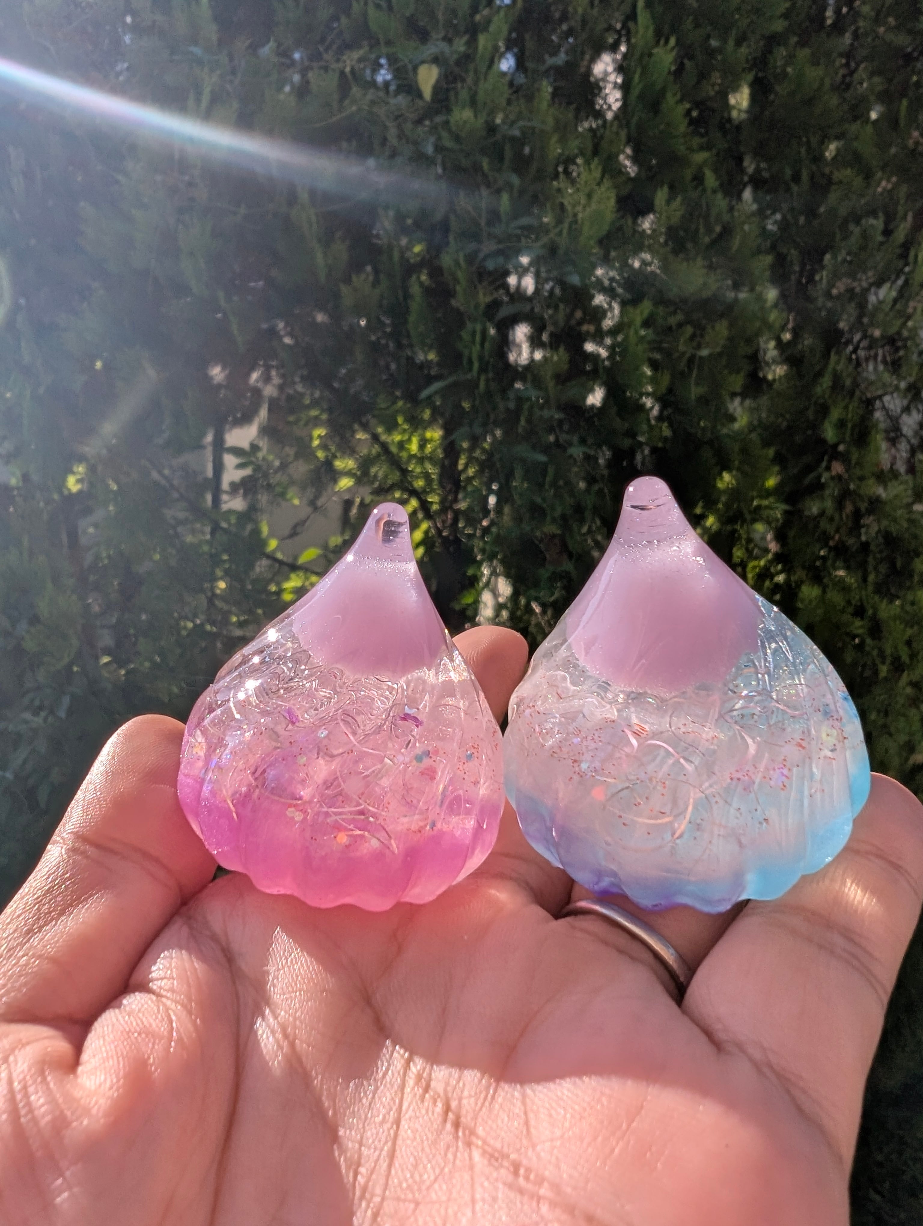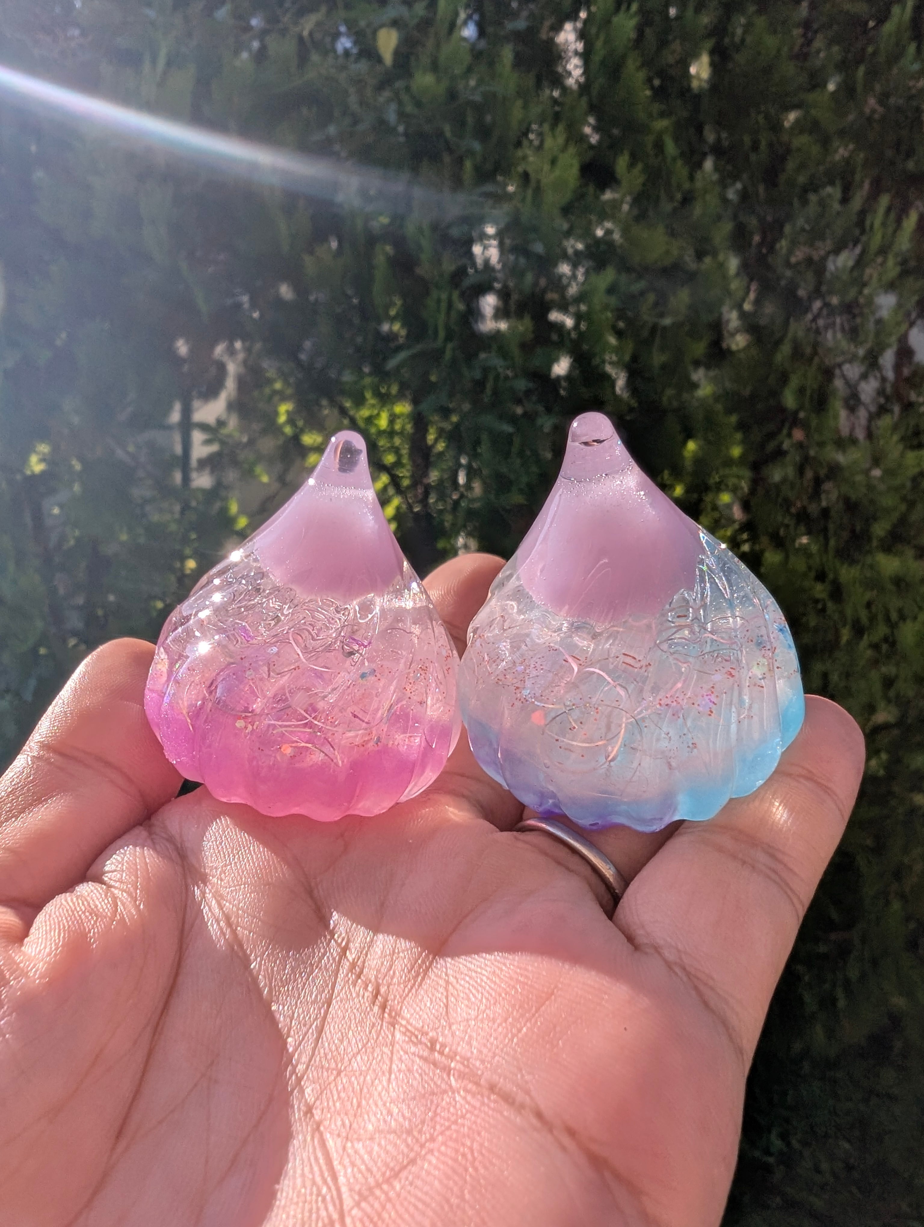 こちらは、木花咲耶姫(コノハナサクヤヒメ)の盛り塩オルゴナイトです✨ピンクは、夜桜を。ブルーは富士山と桜を表現しています。
