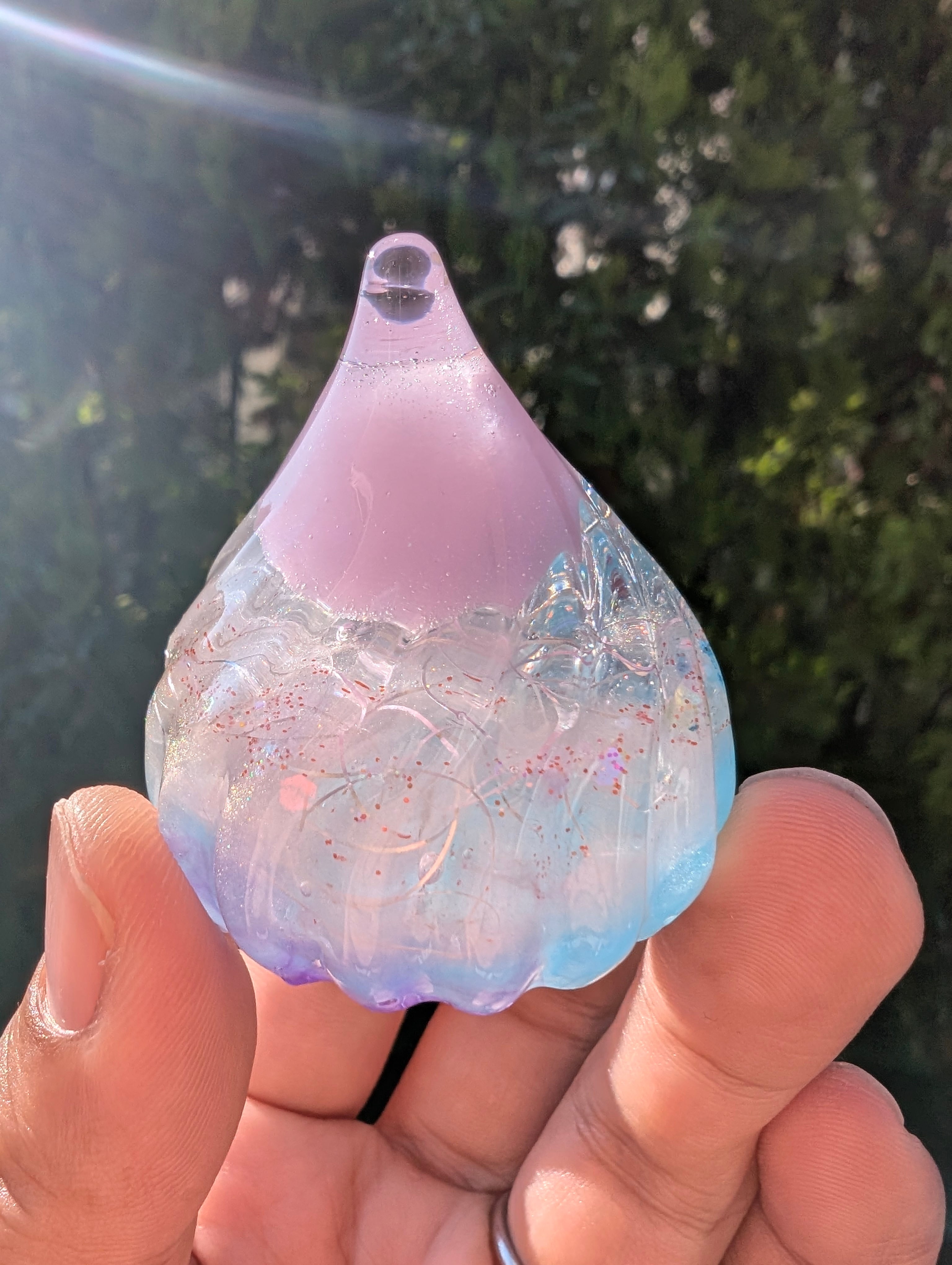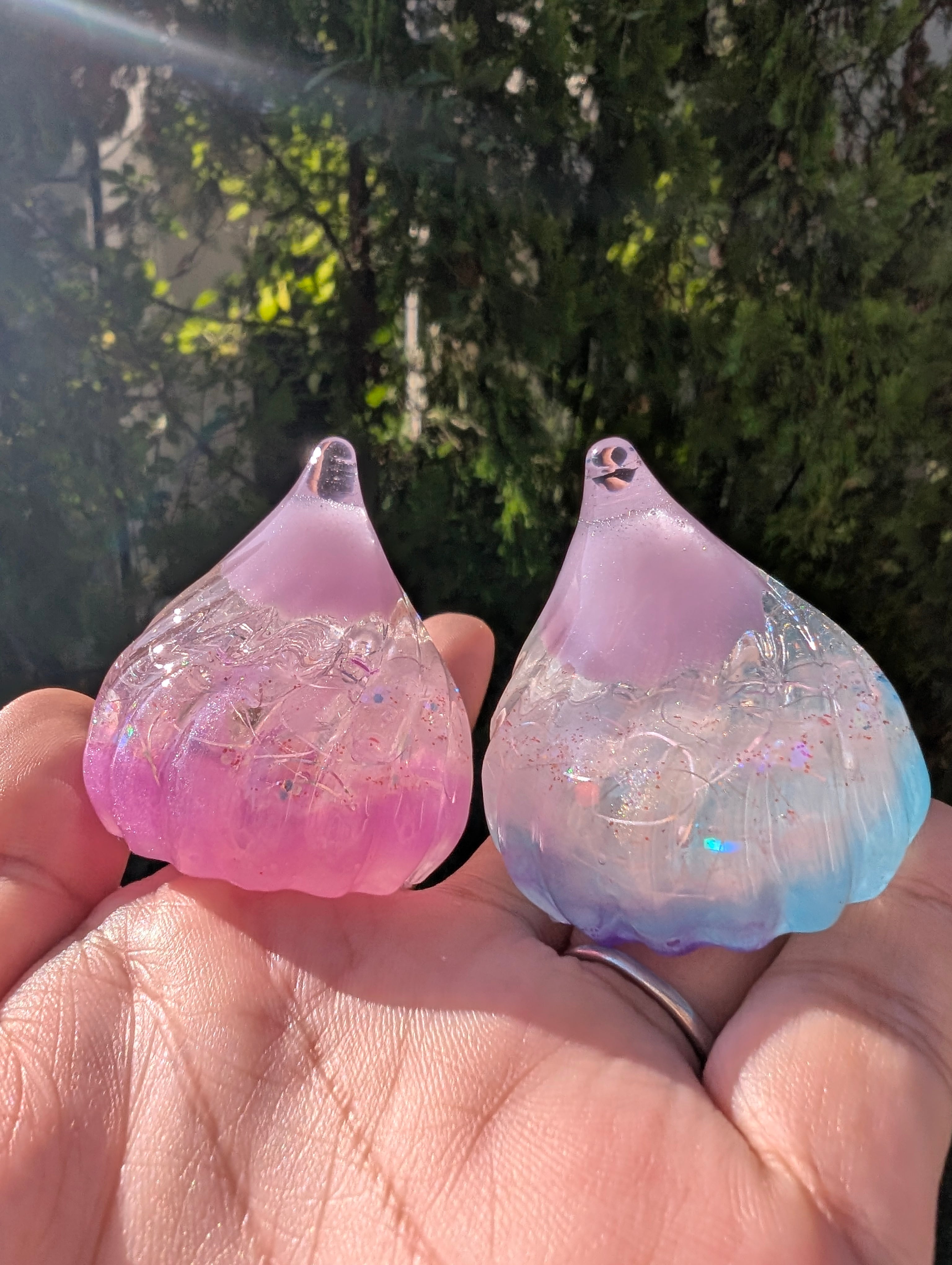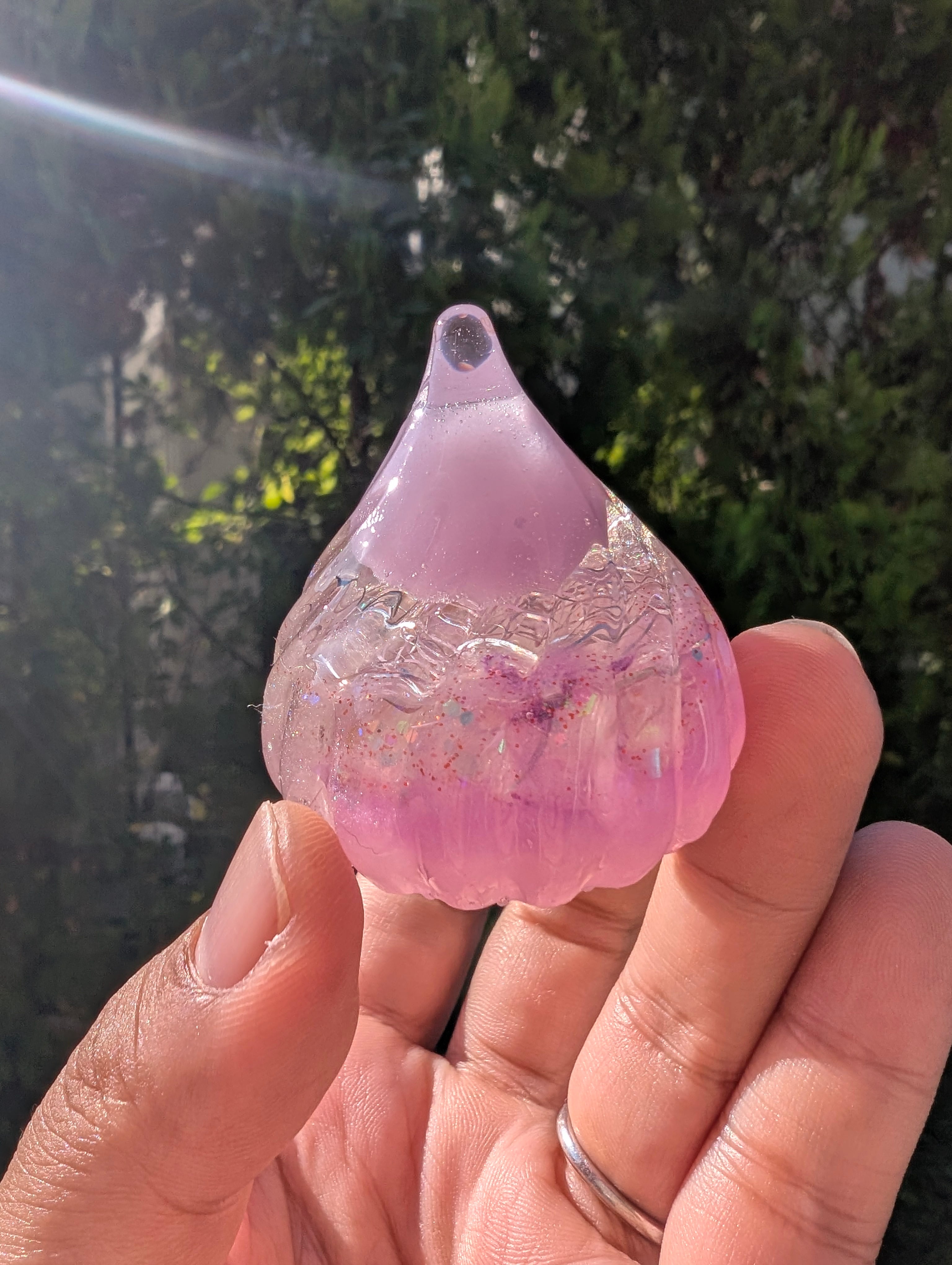 こちらは、木花咲耶姫(コノハナサクヤヒメ)の盛り塩オルゴナイトです✨ピンクは、夜桜を。ブルーは富士山と桜を表現しています。