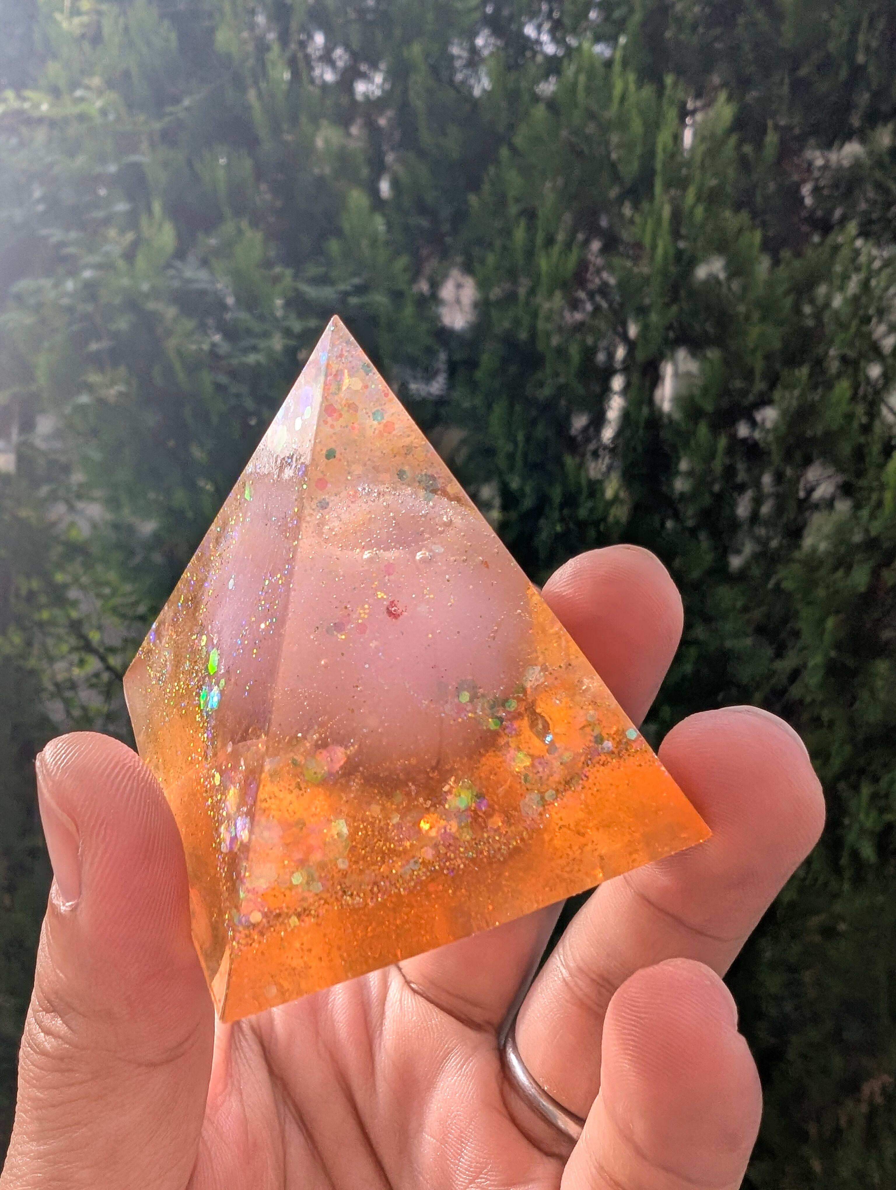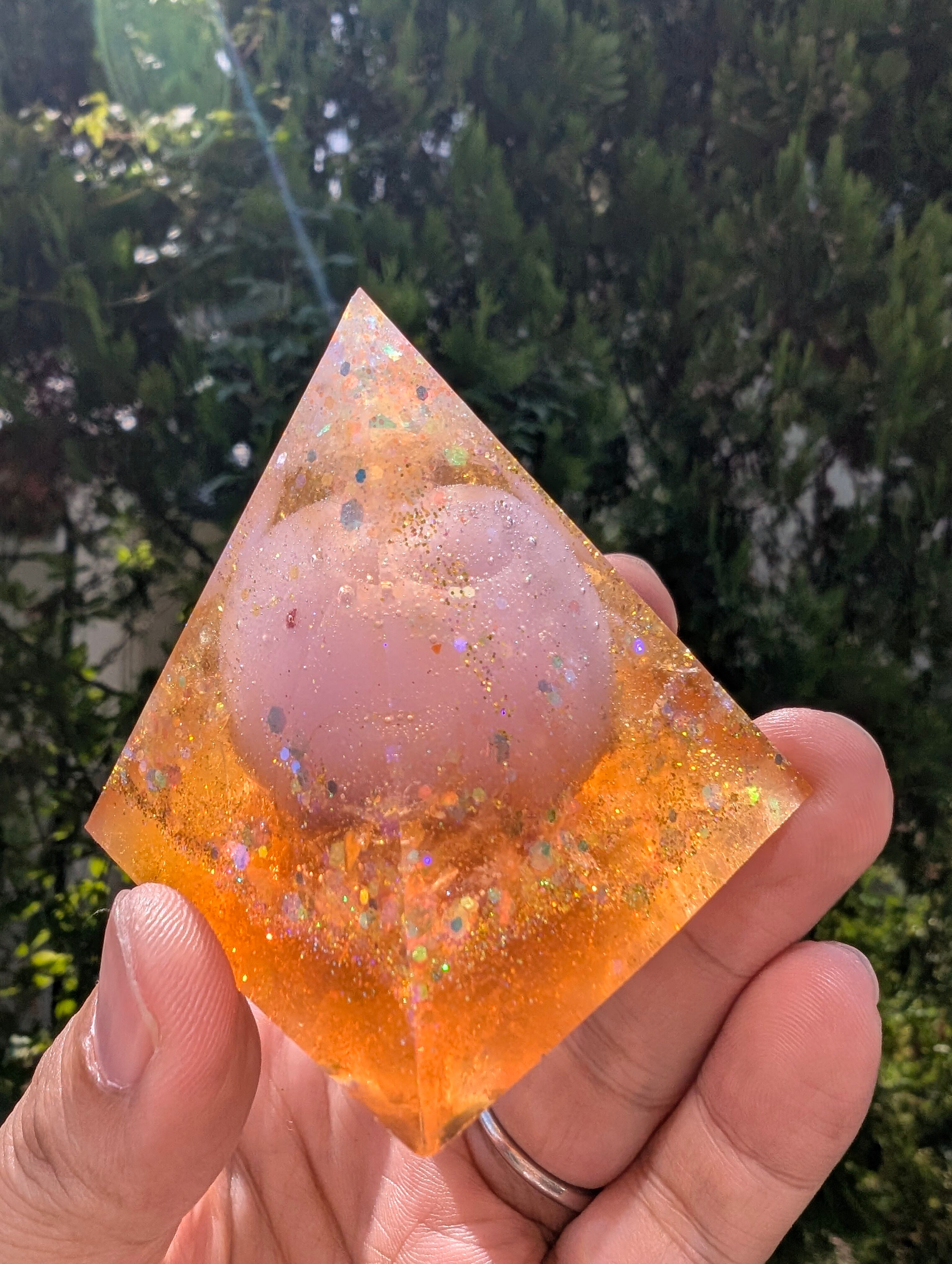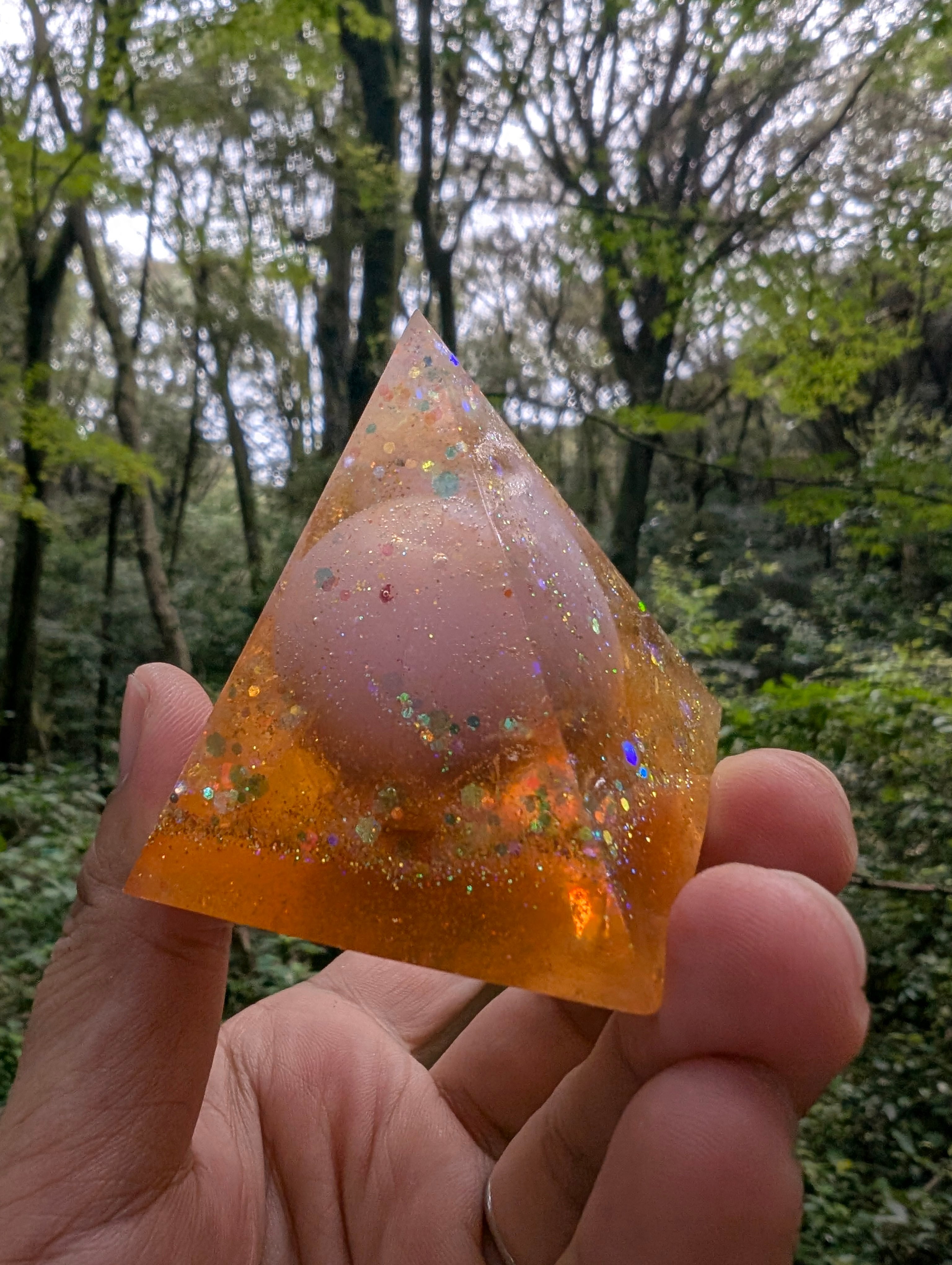 こちらは、太陽の輝きと女神の愛を宿した盛り塩オルゴナイトです。