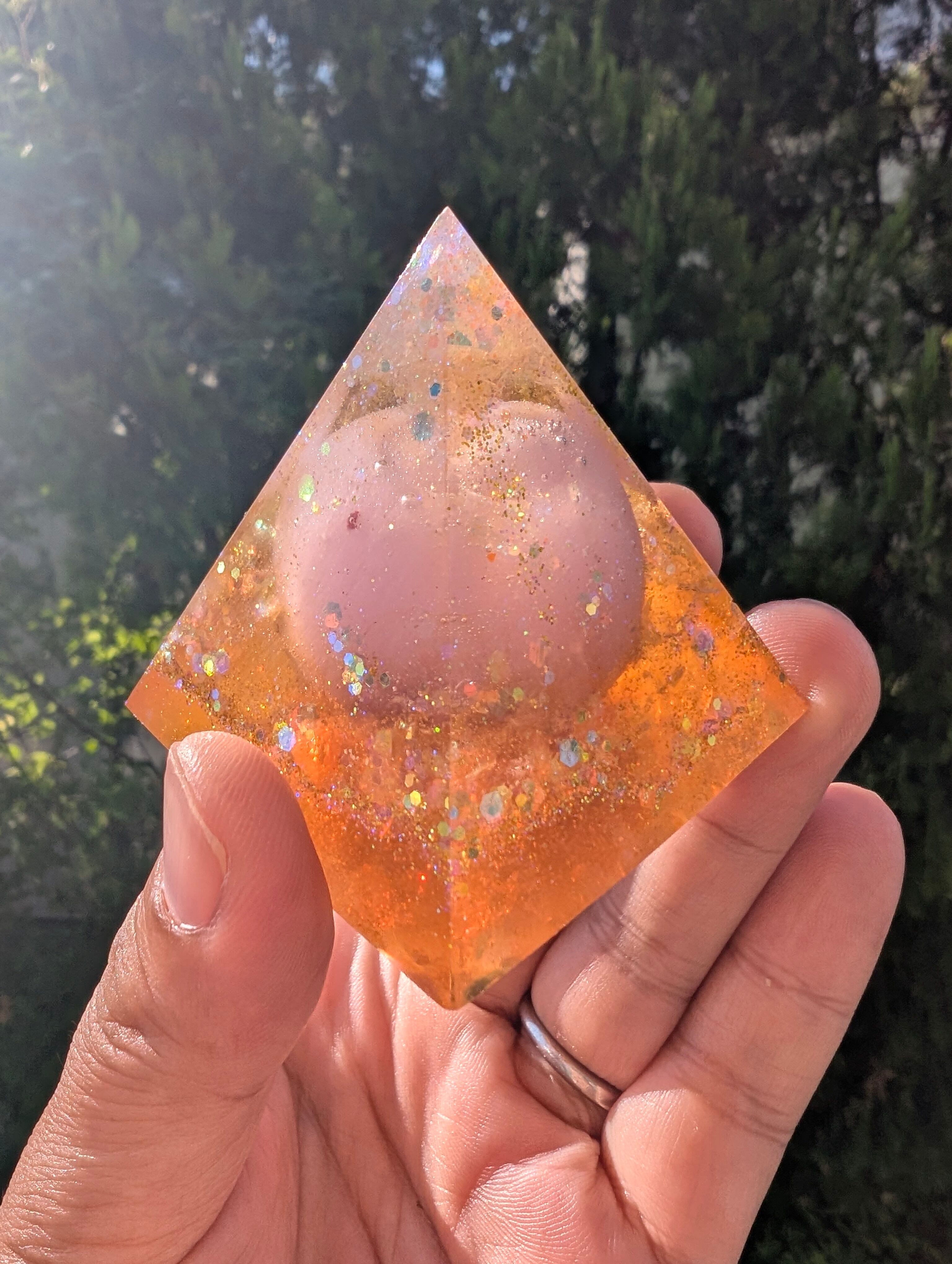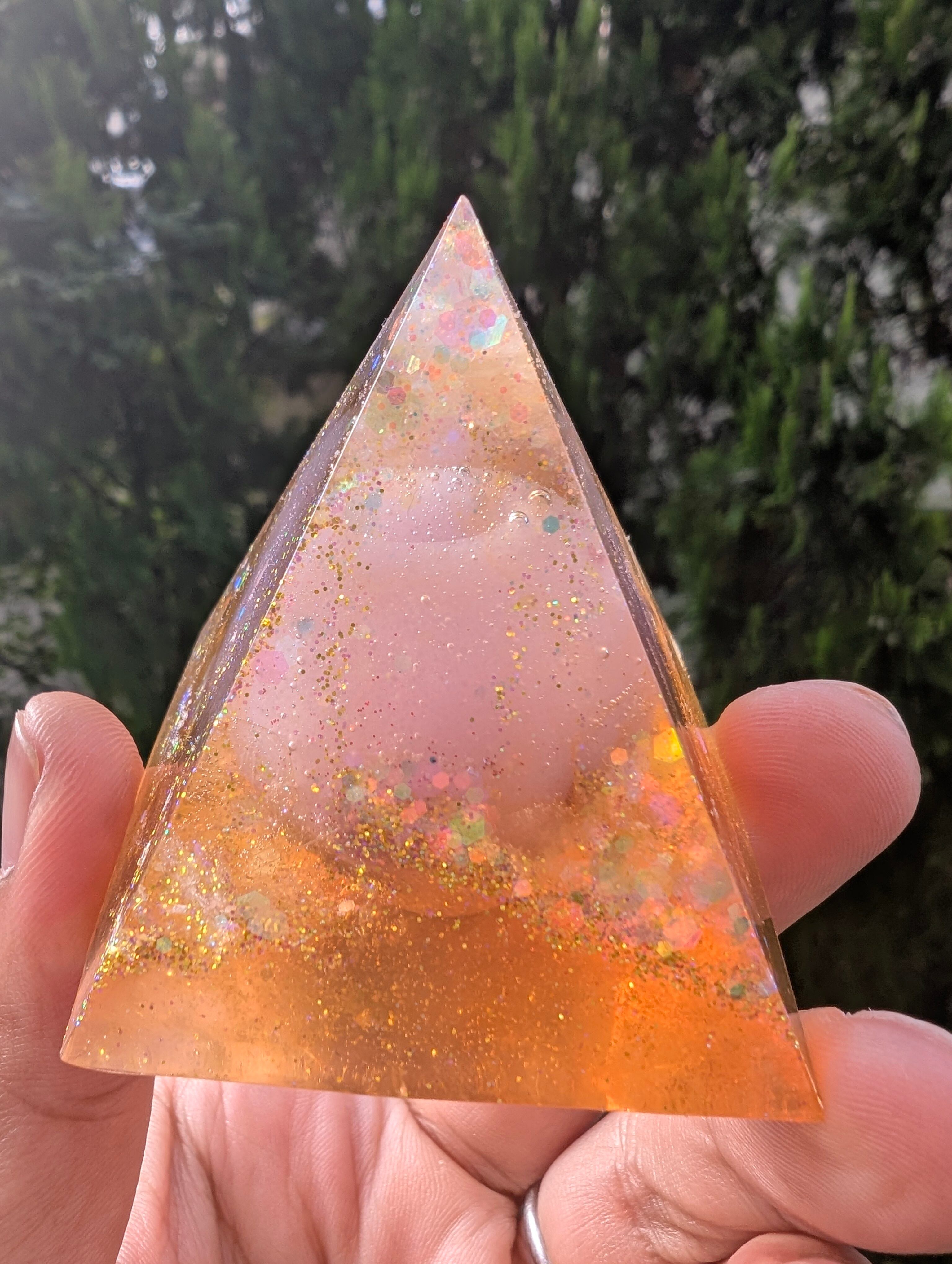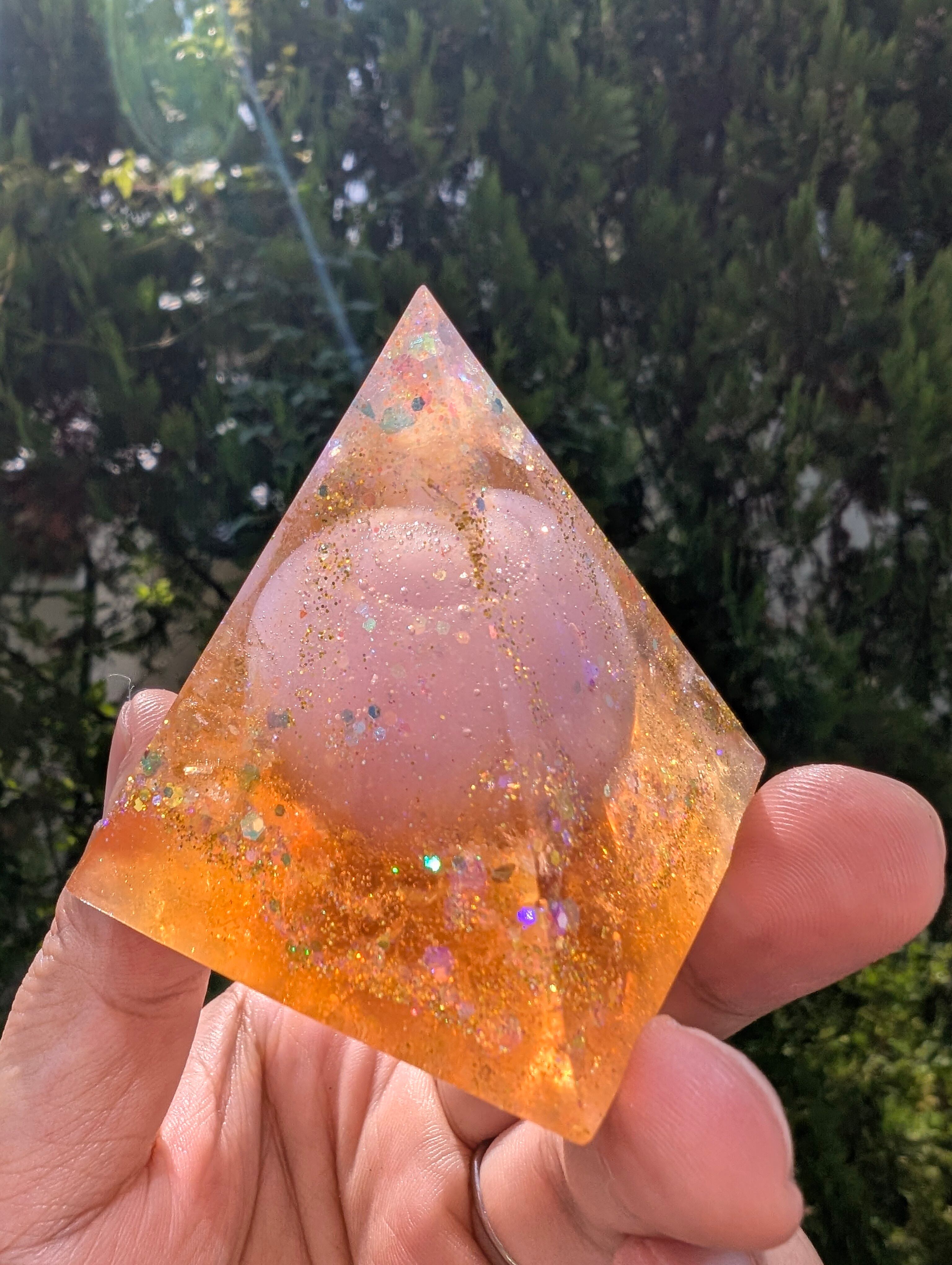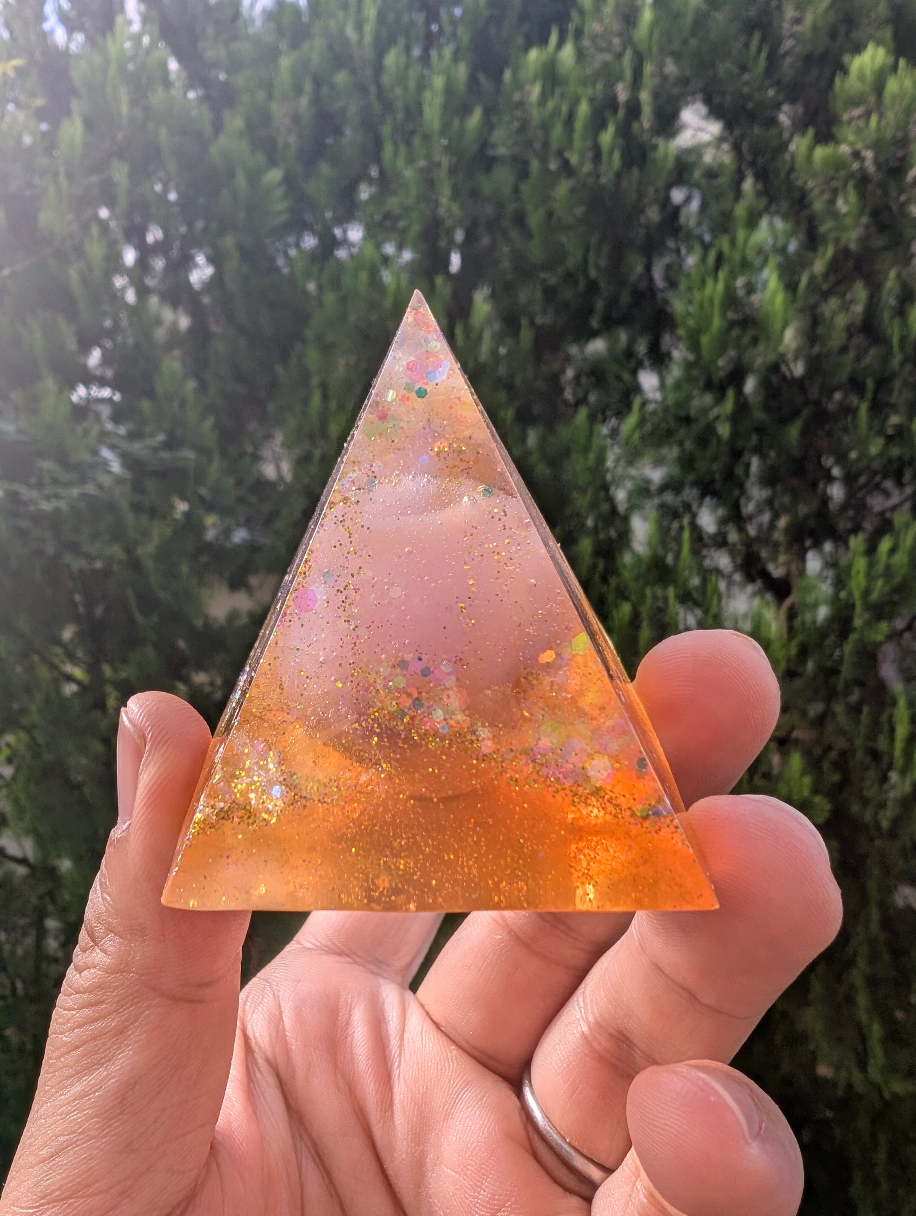 こちらは、太陽の輝きと女神の愛を宿した盛り塩オルゴナイトです。