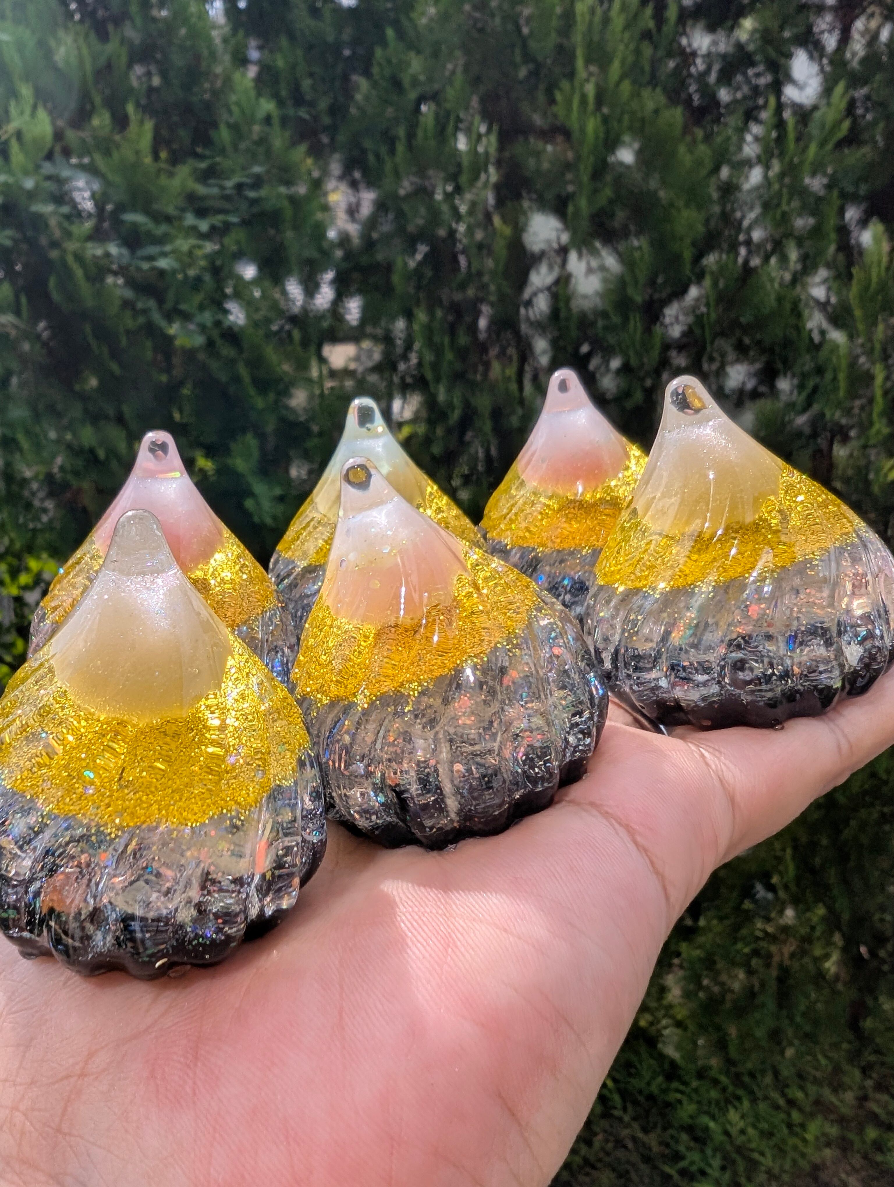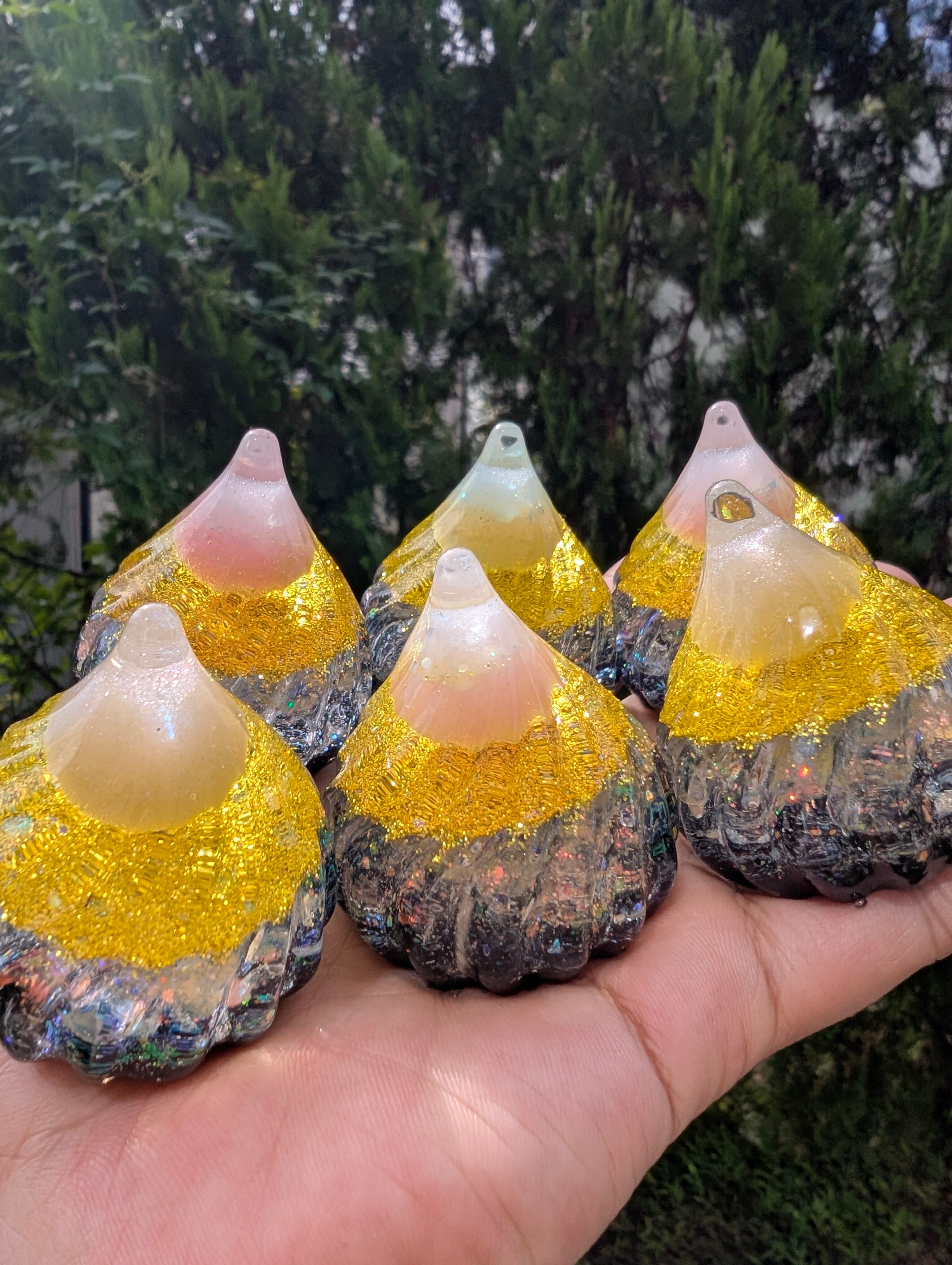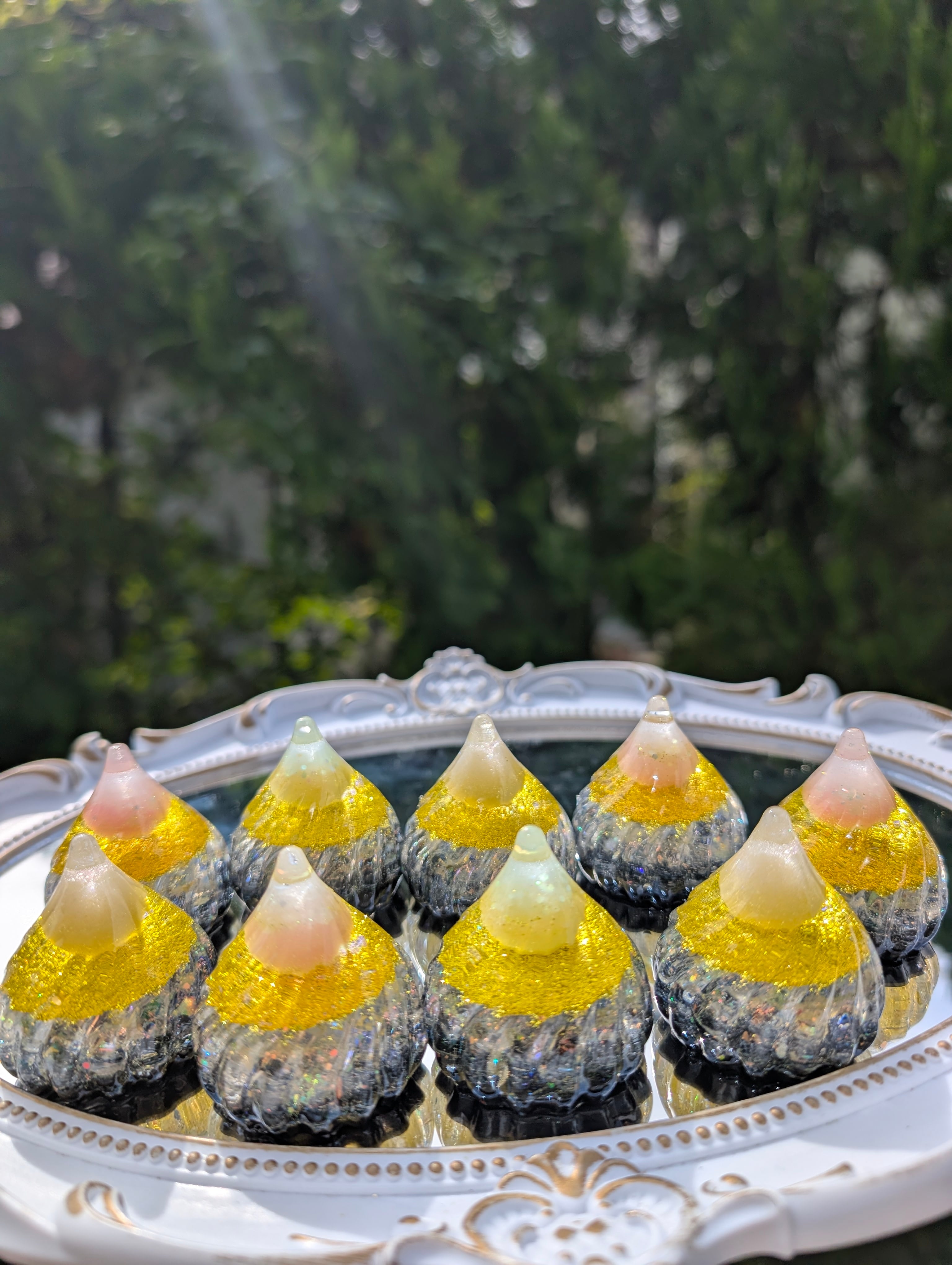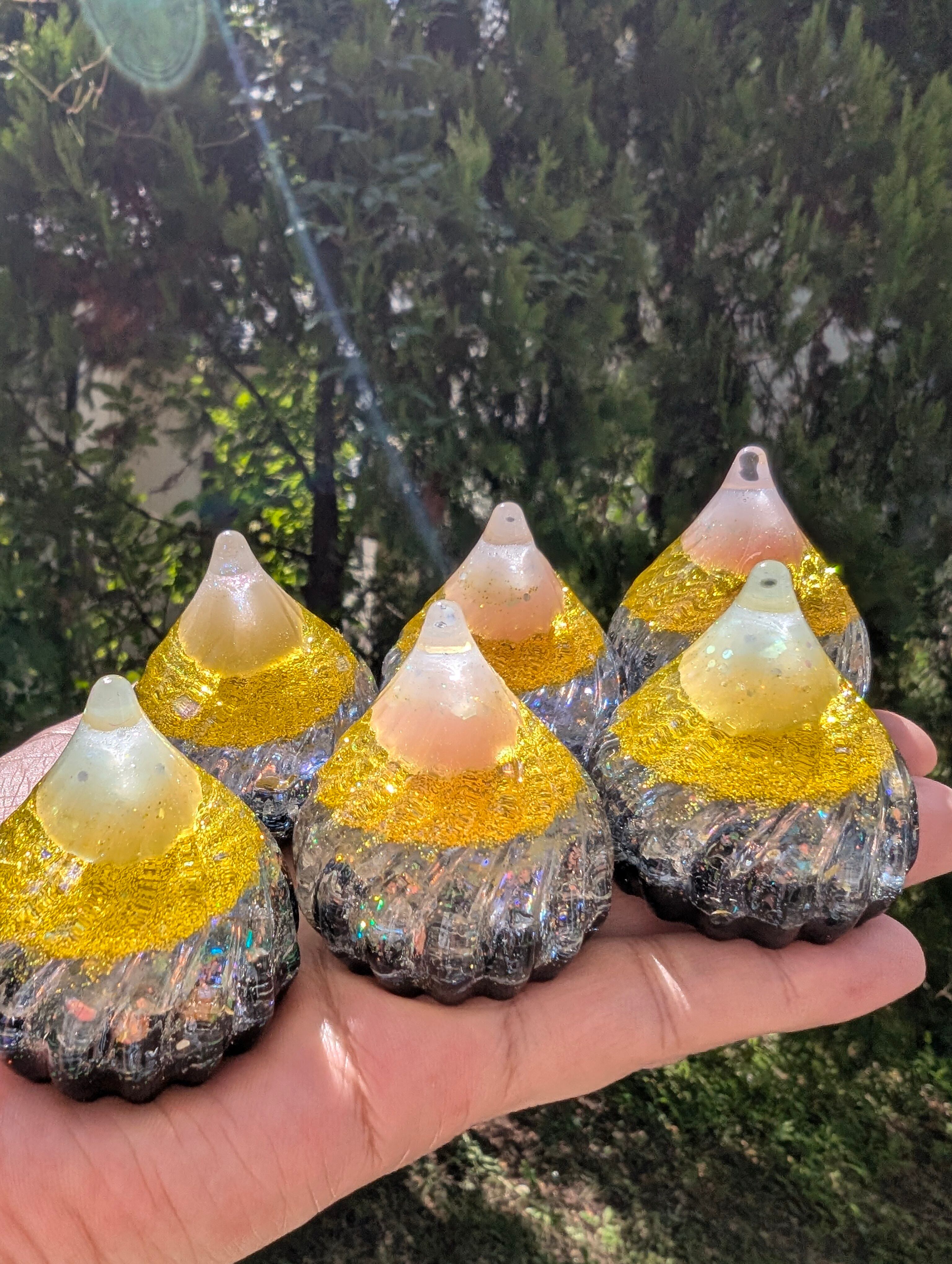 こちらは、オオクニヌシの盛り塩オルゴナイトです。下の黒い部分は宮古島の麻炭を使用しており、宇宙と繋がり、結界もはります!