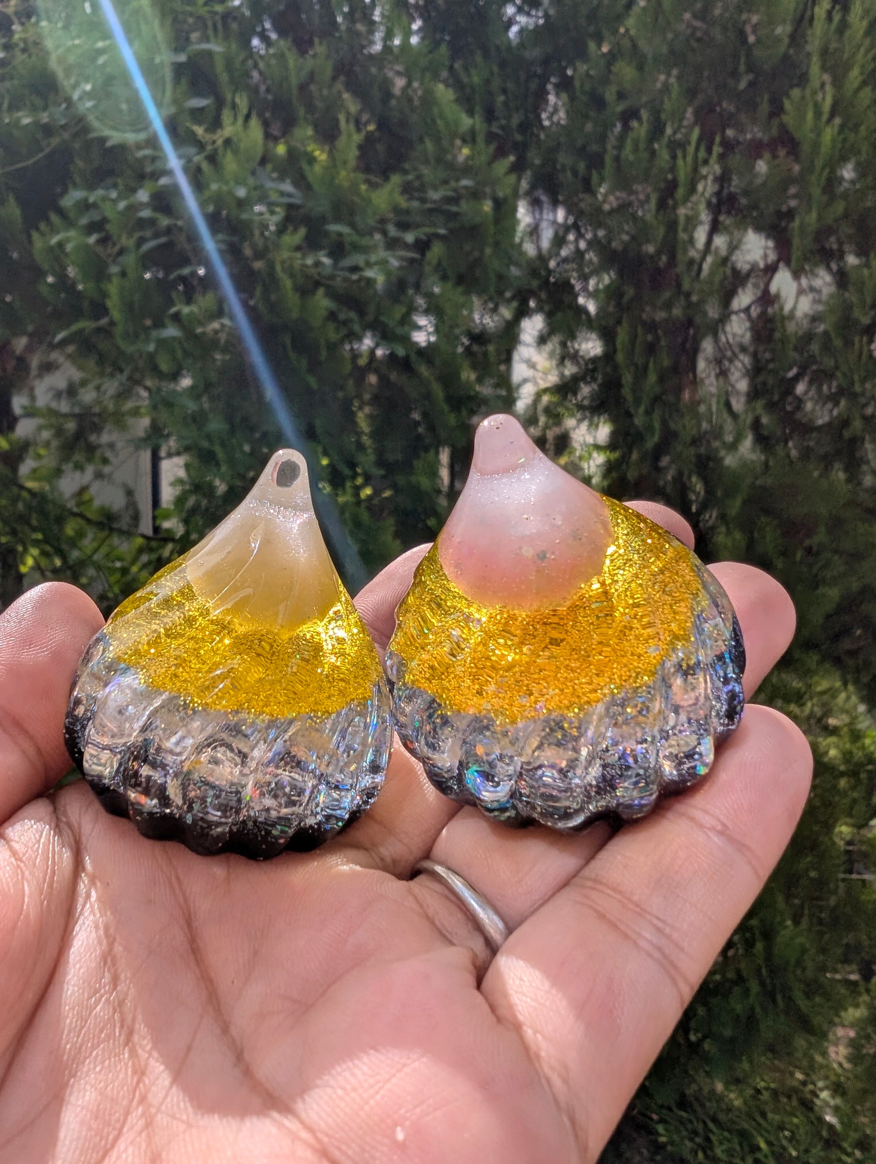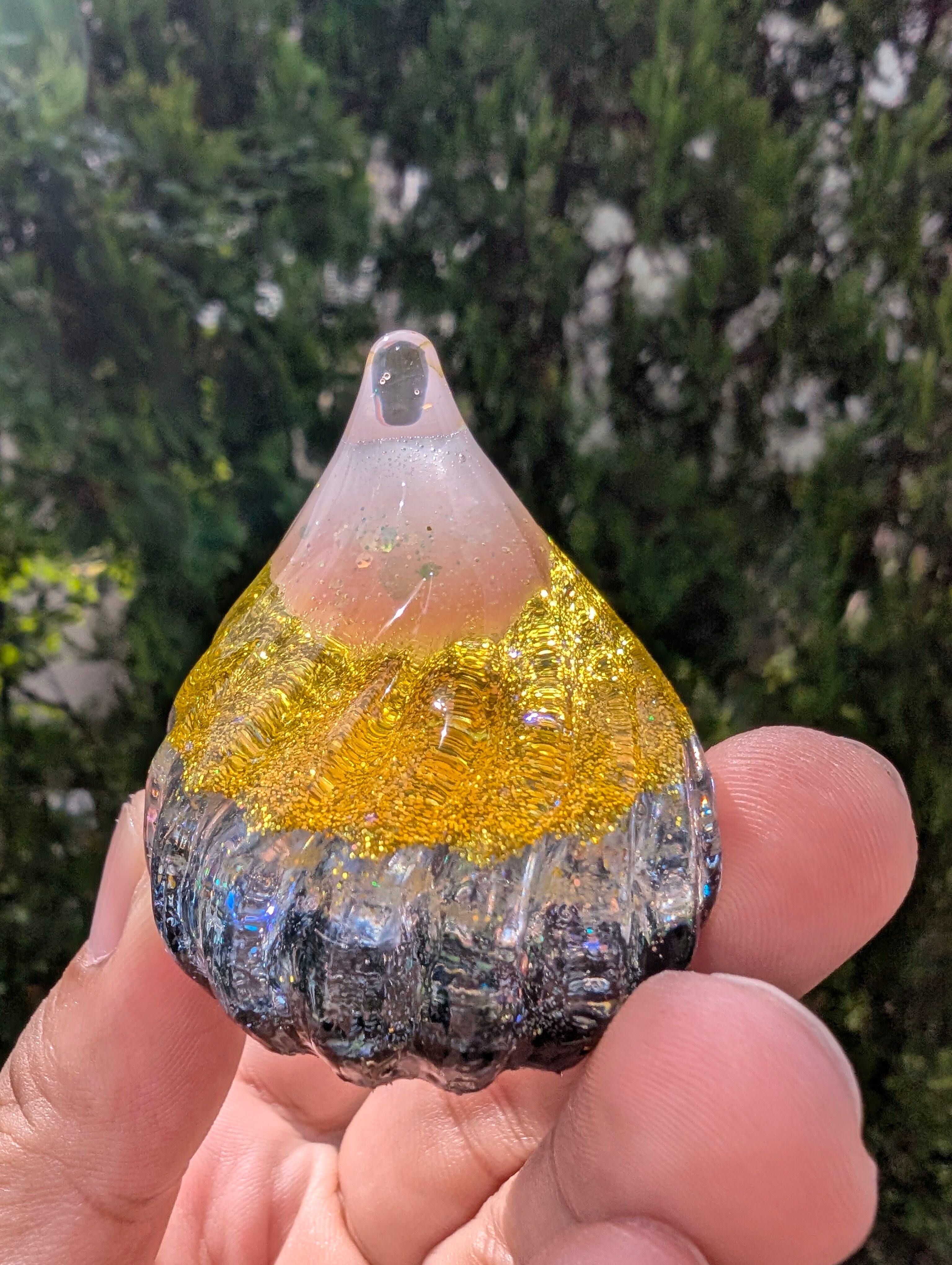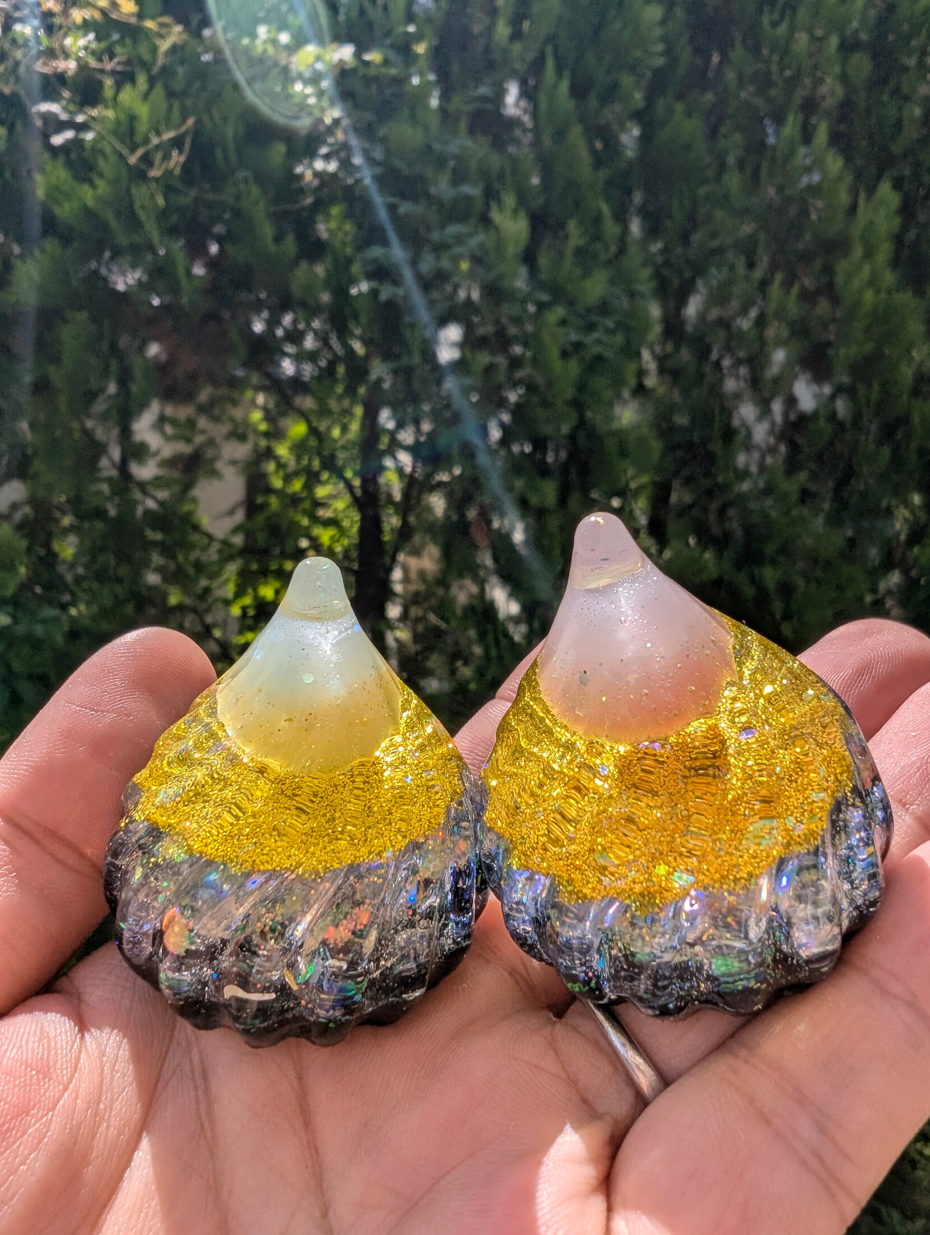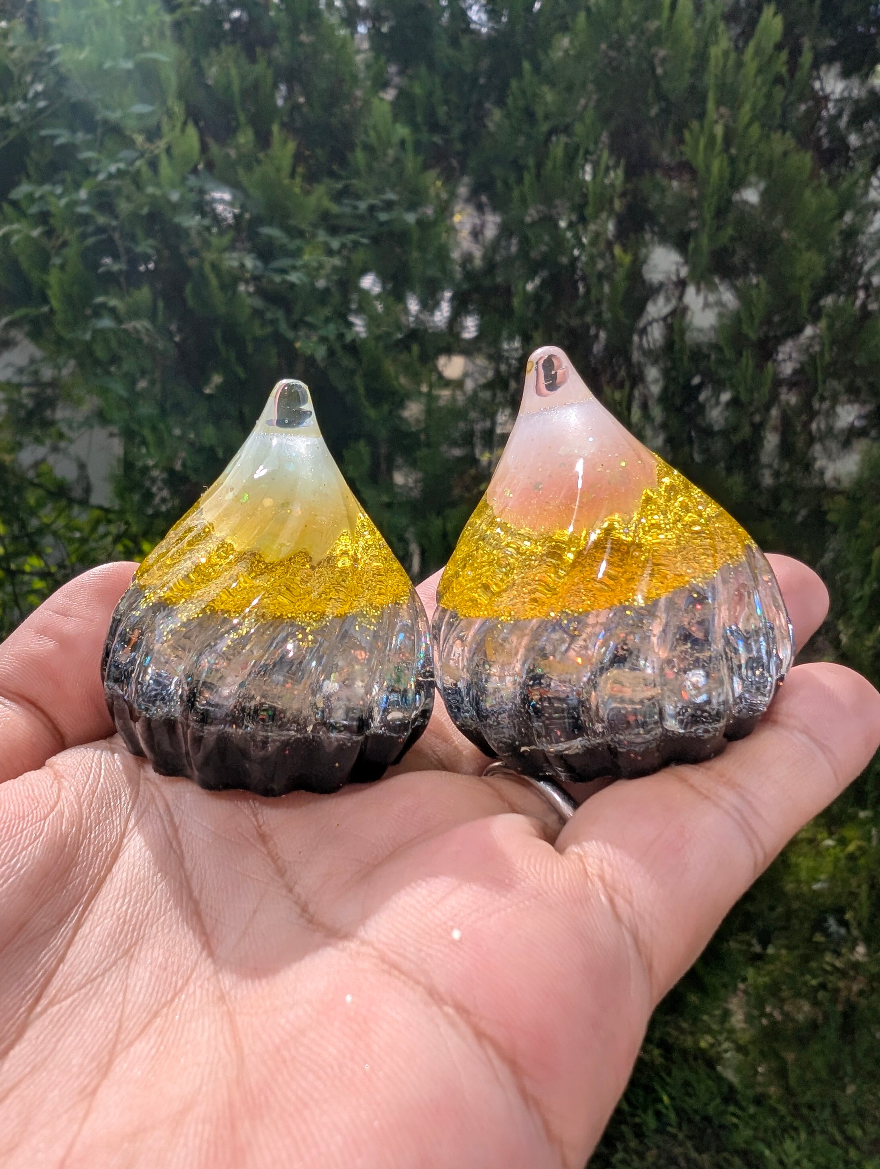 こちらは、オオクニヌシの盛り塩オルゴナイトです。下の黒い部分は宮古島の麻炭を使用しており、宇宙と繋がり、結界もはります!