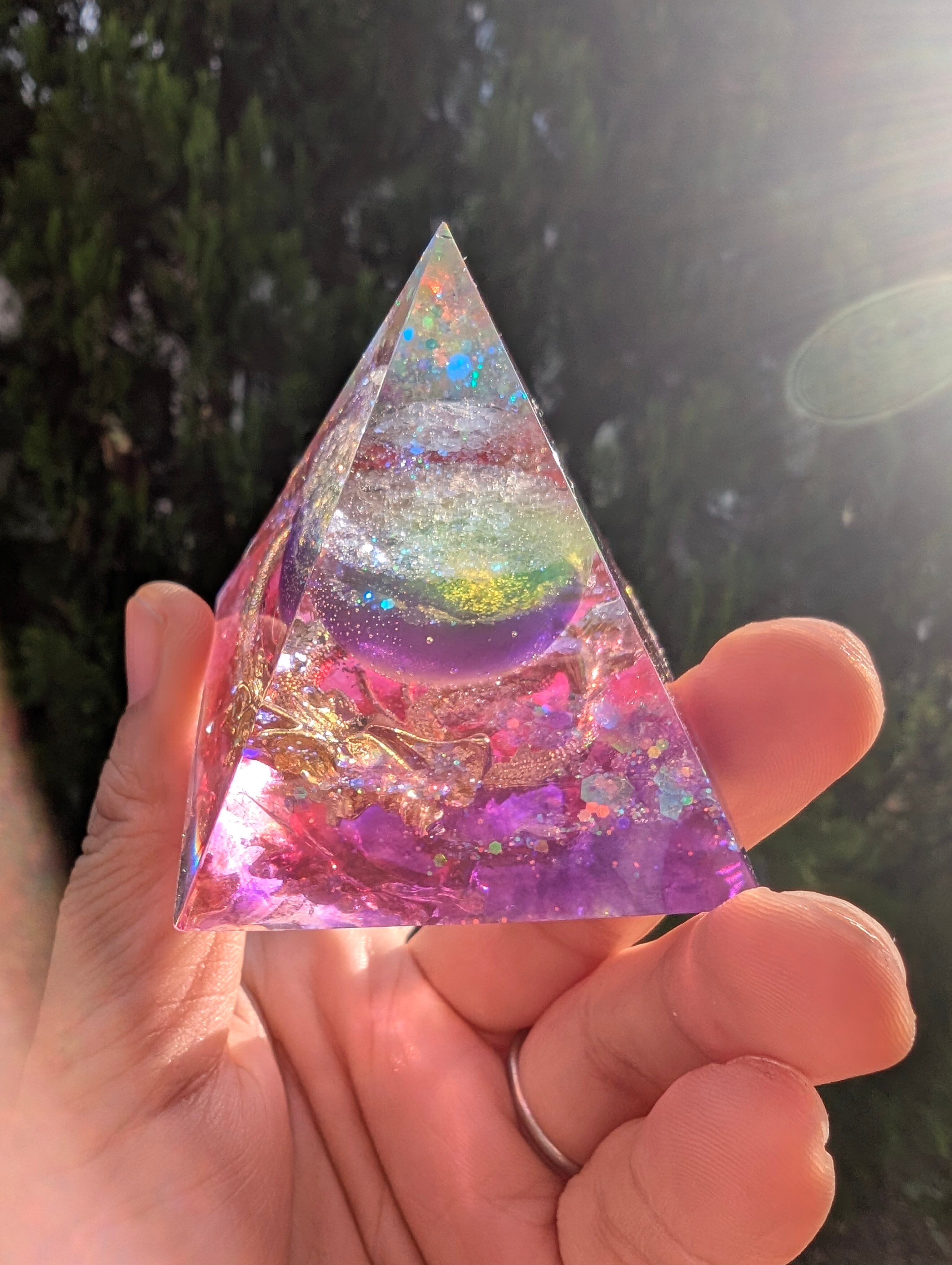 このオルゴナイトは、宇宙が星を生み出す瞬間のエネルギーを象徴しています。