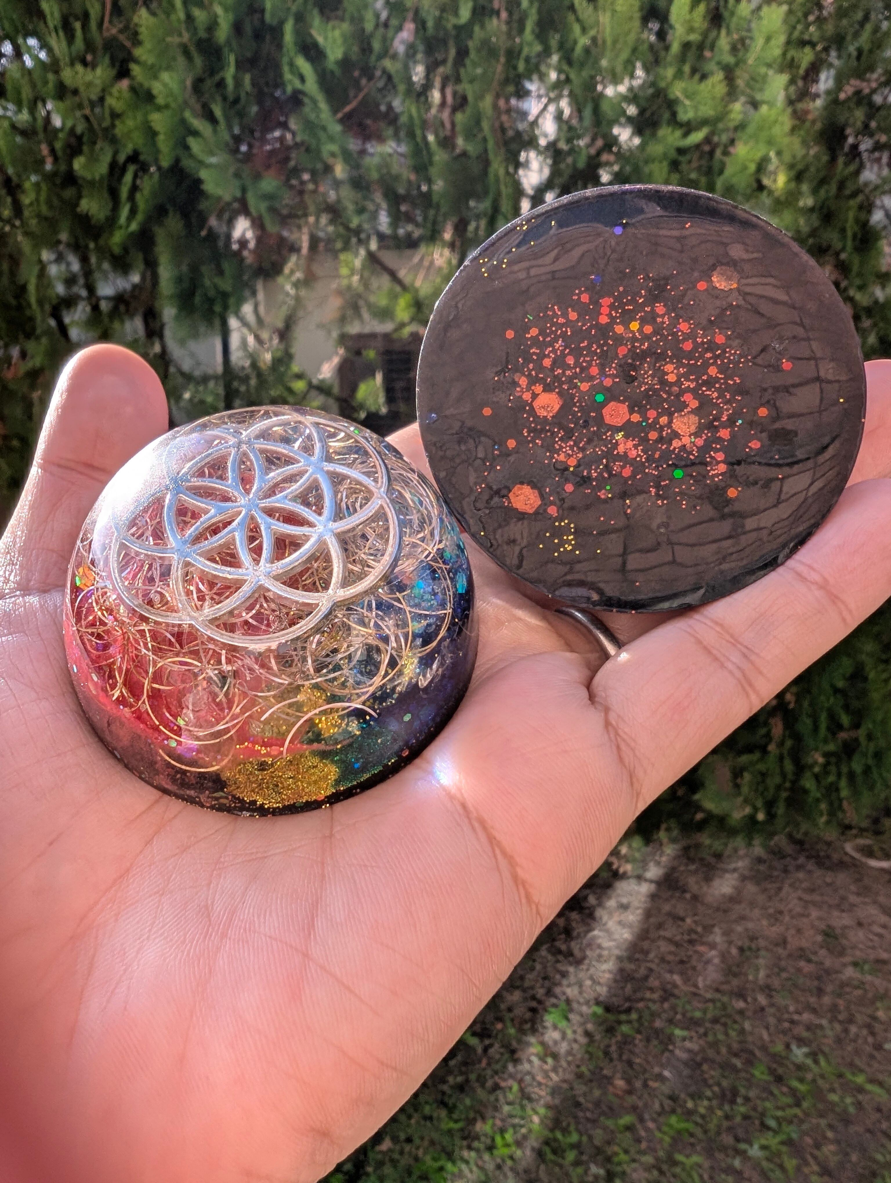 こちらは、新月に制作しましたギベオン隕石入り宇宙意識の目覚めオルゴナイトです✨