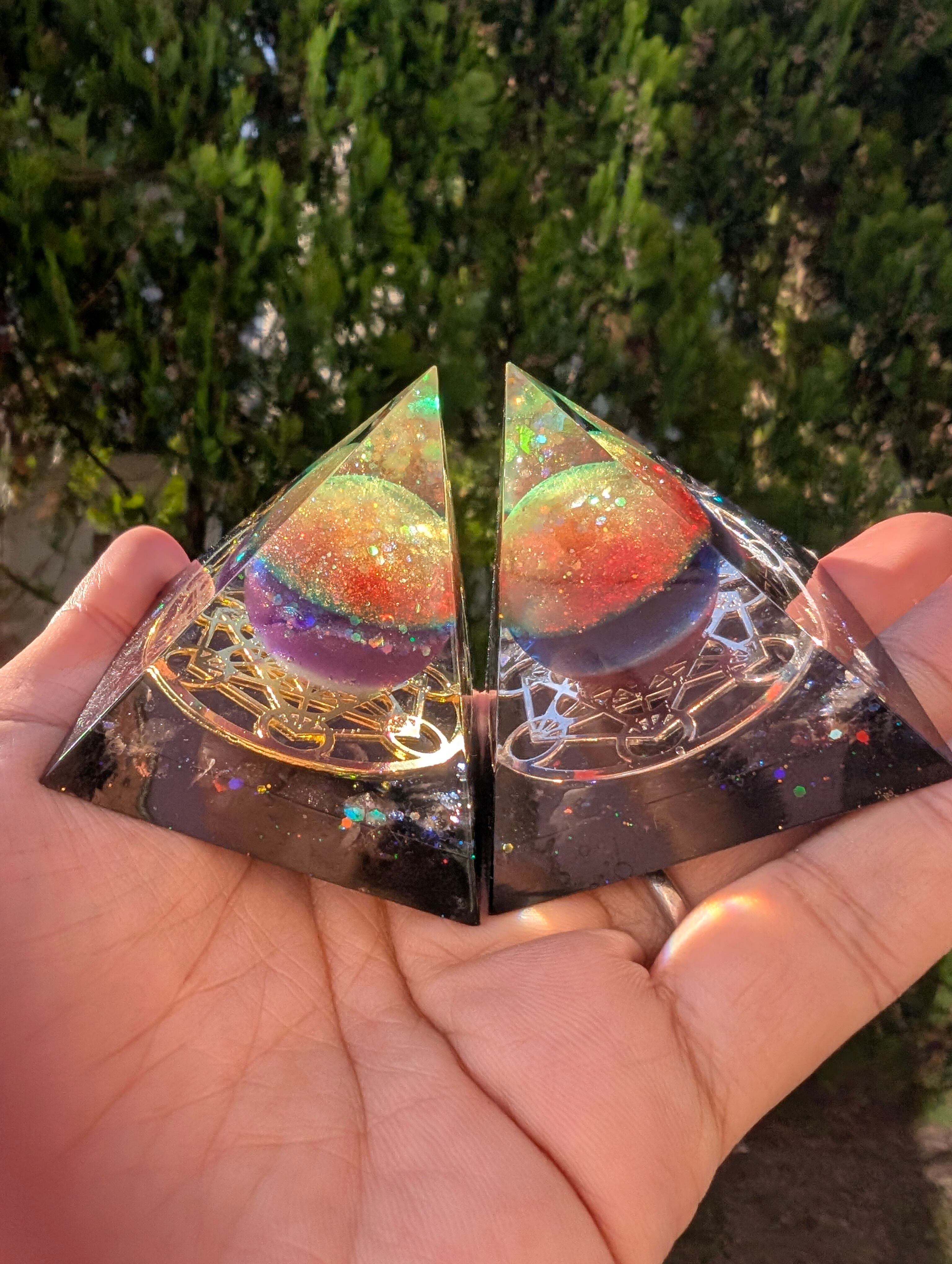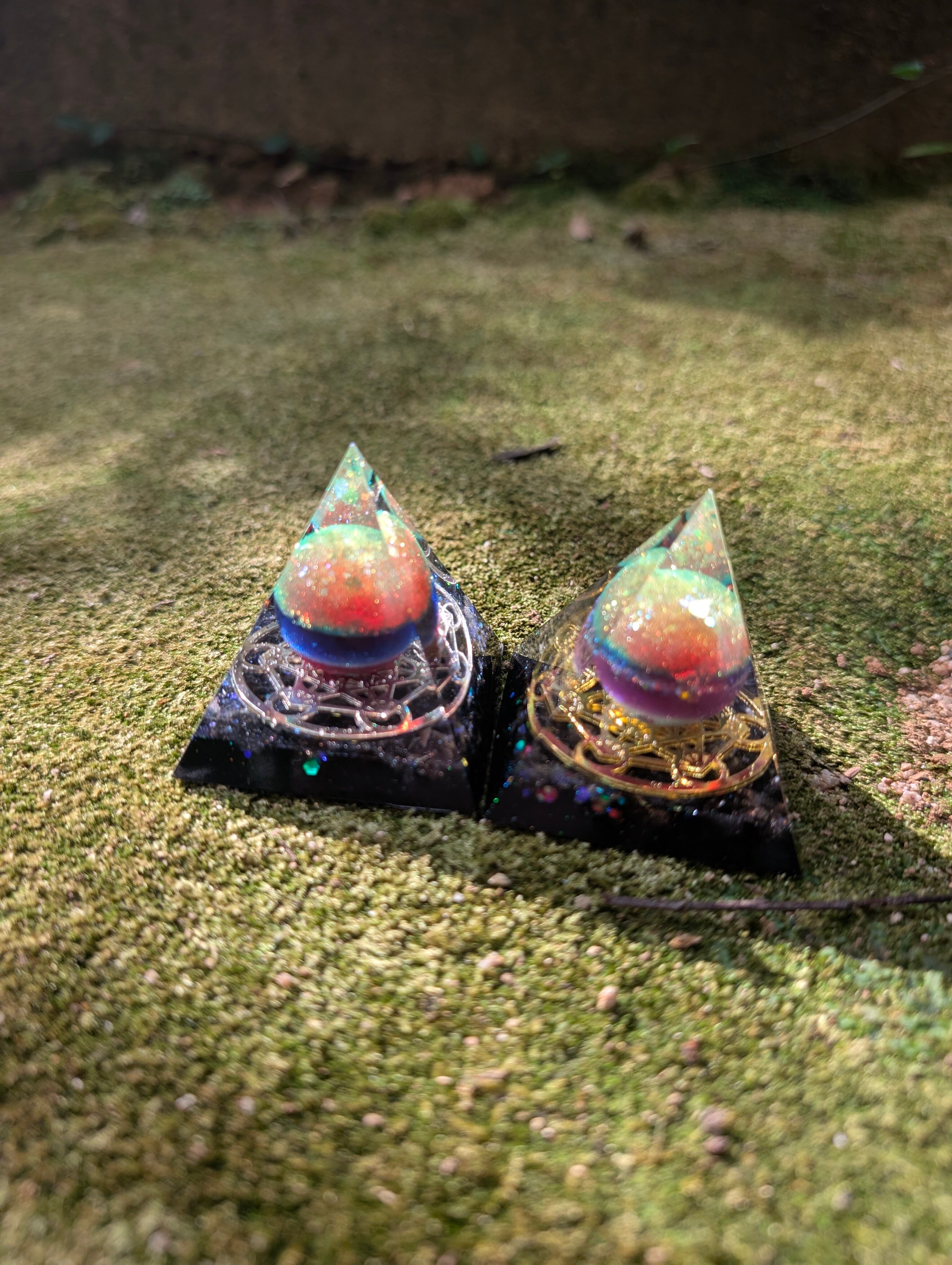 宇宙から舞い降りたギベオン隕石と、地球の浄化を司る宮古島麻炭を融合させたオルゴナイト。