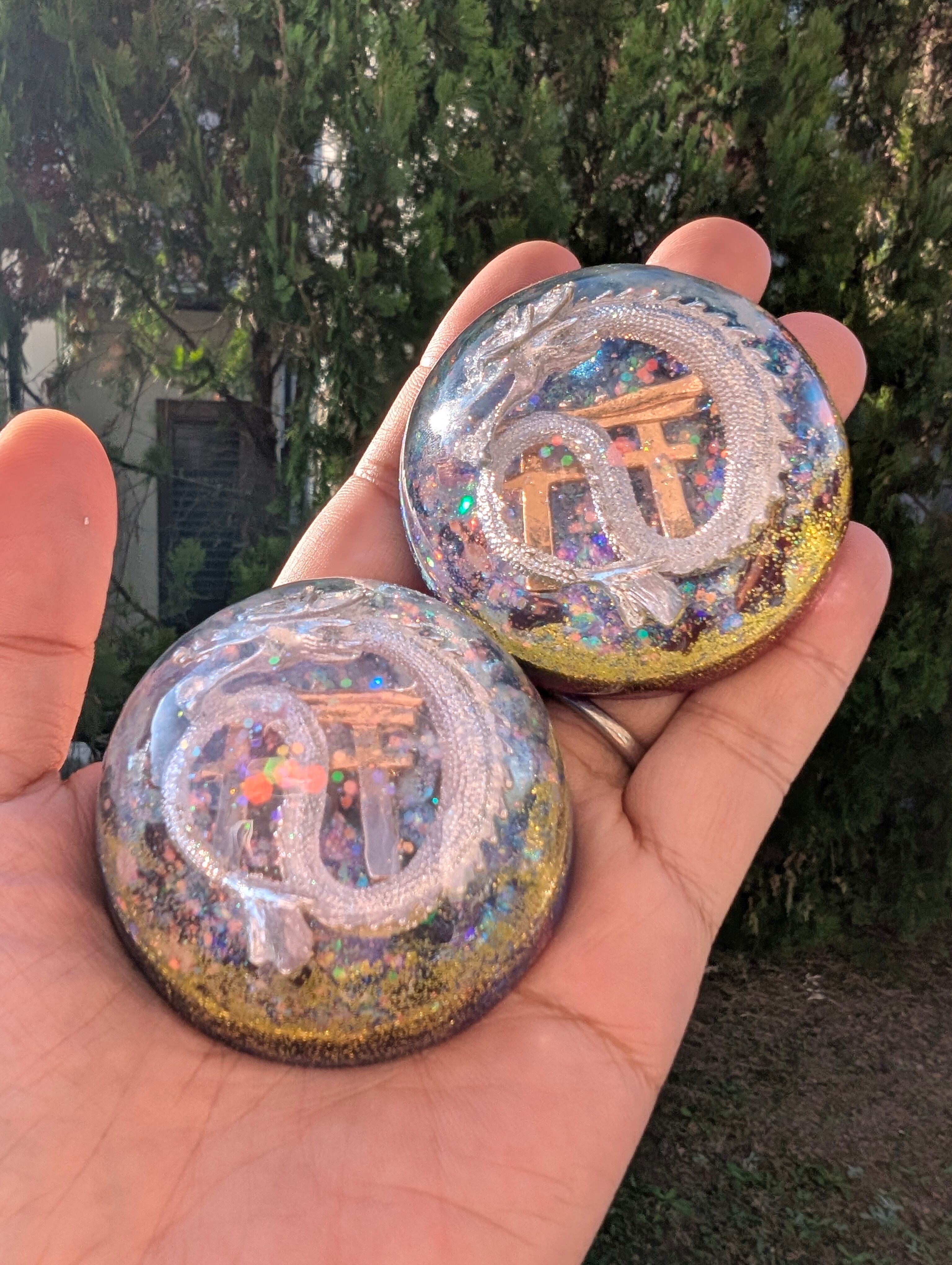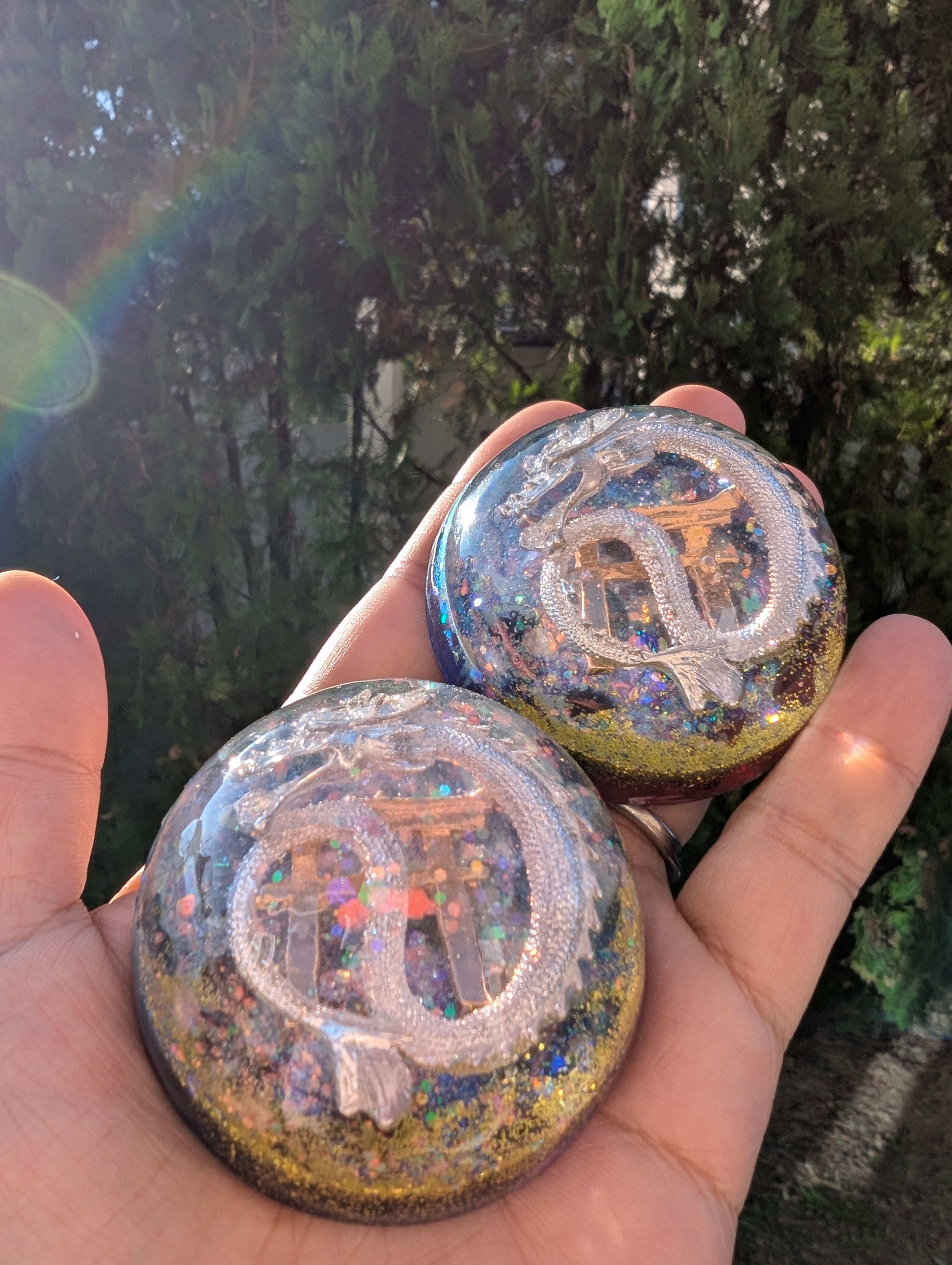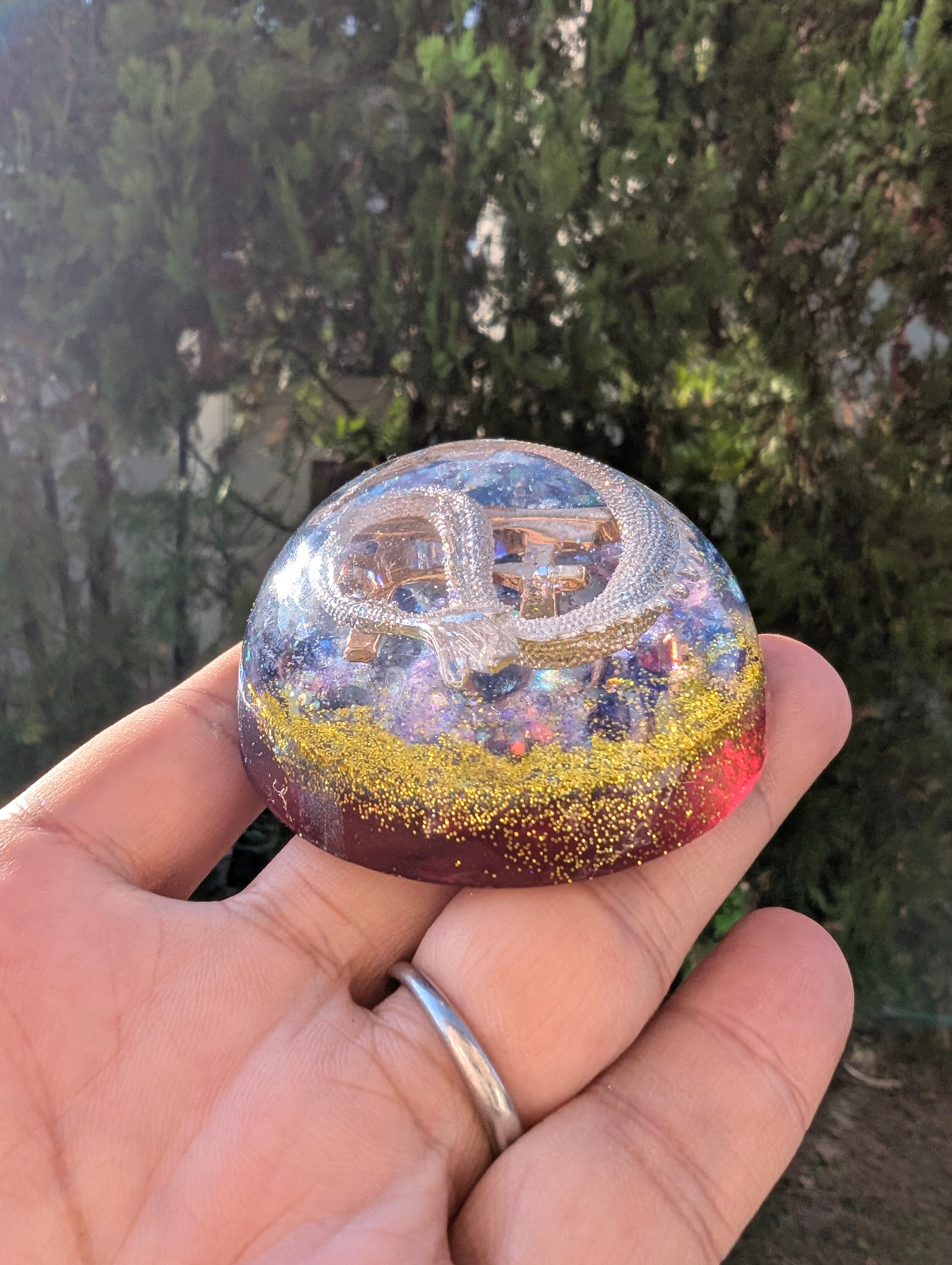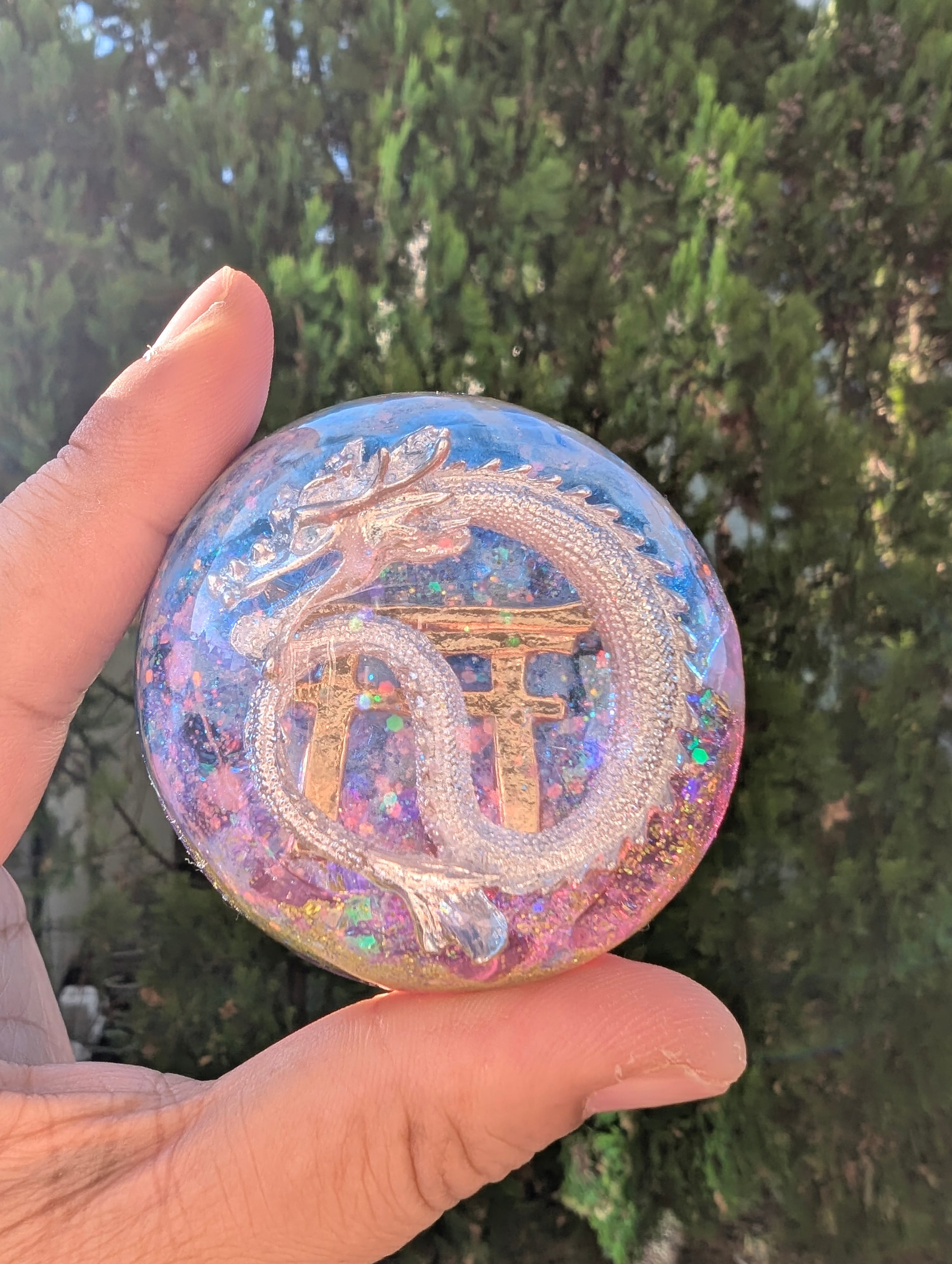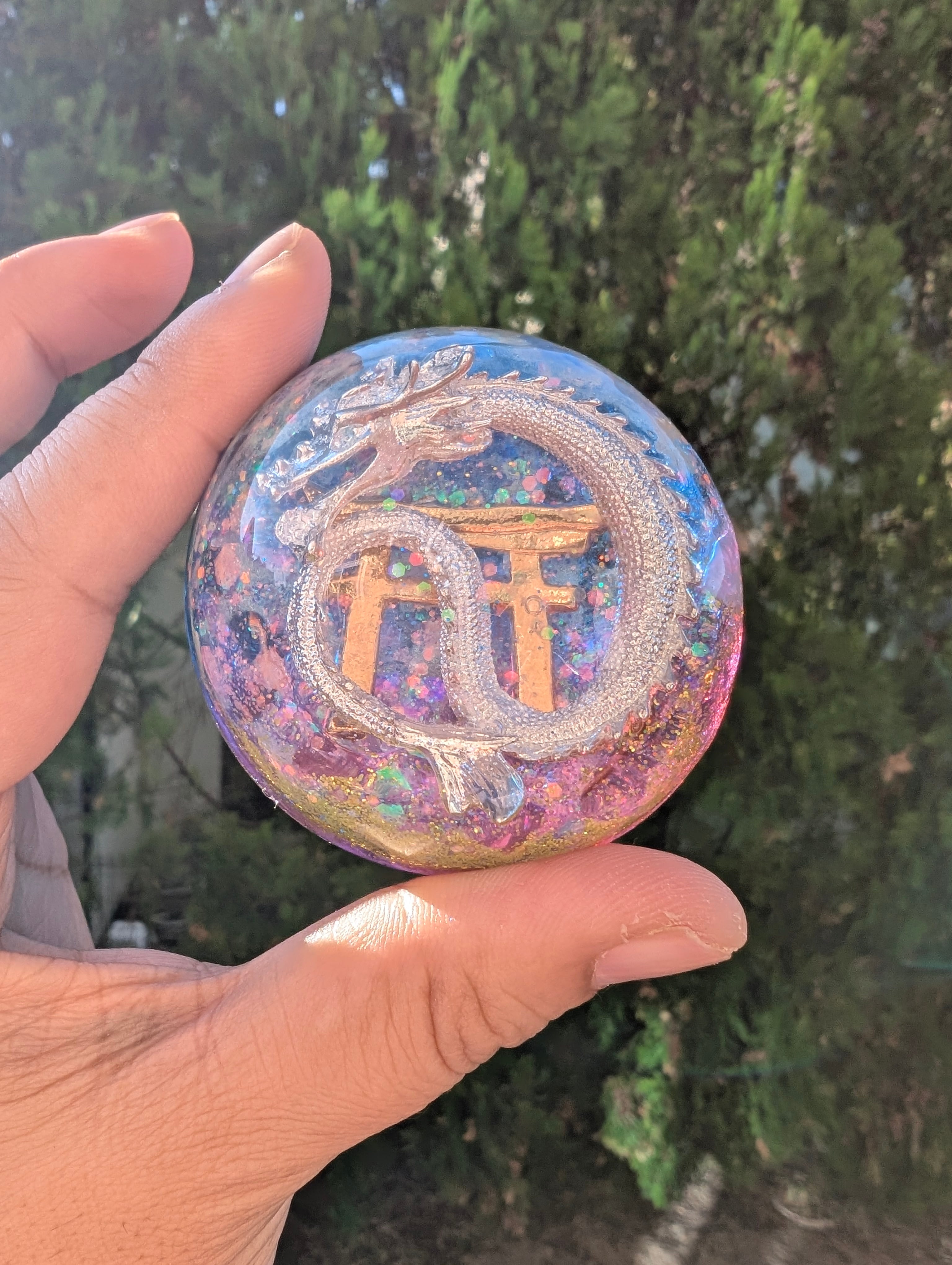 こちらは、満月生まれた龍神門オルゴナイト です!