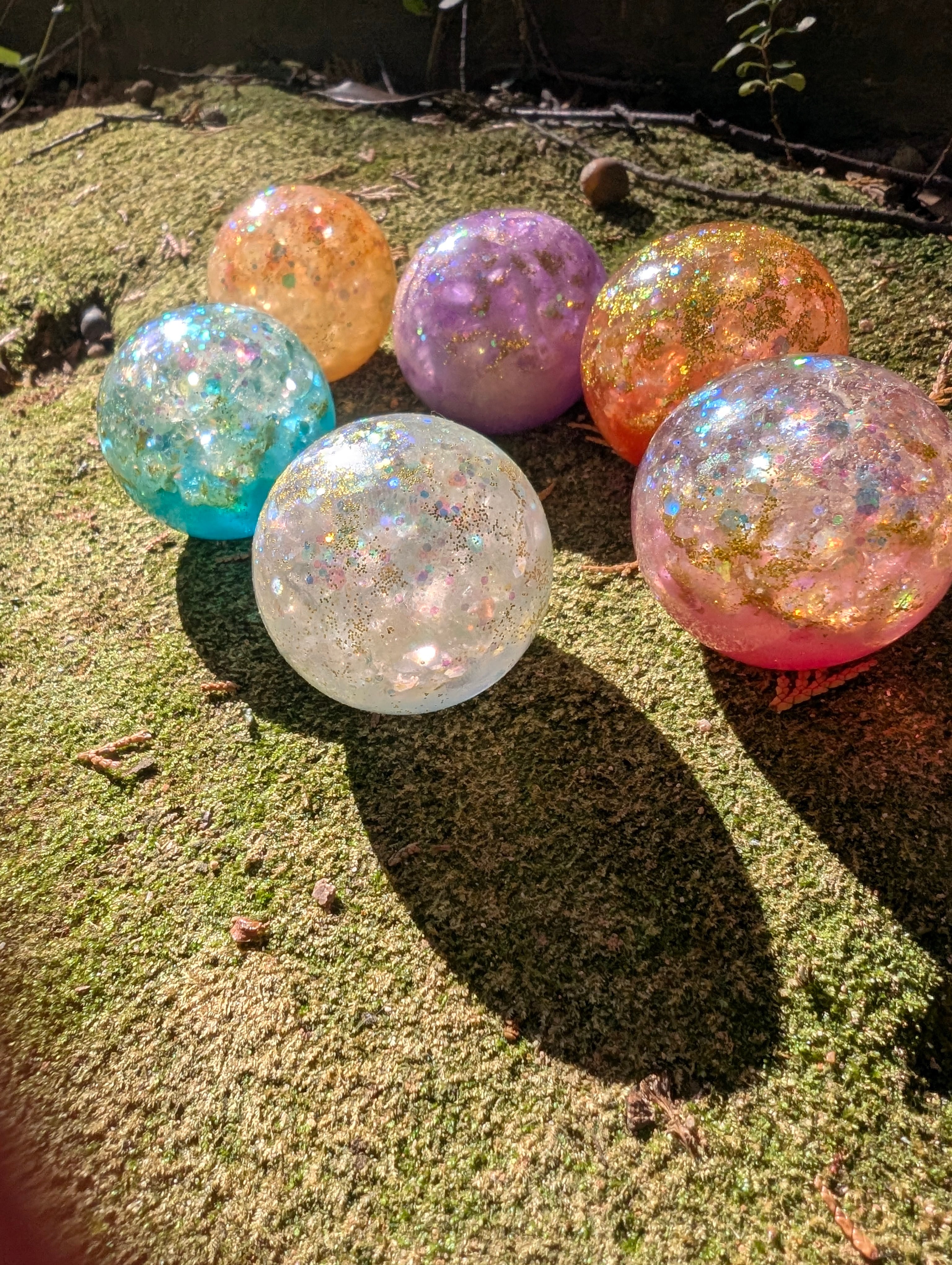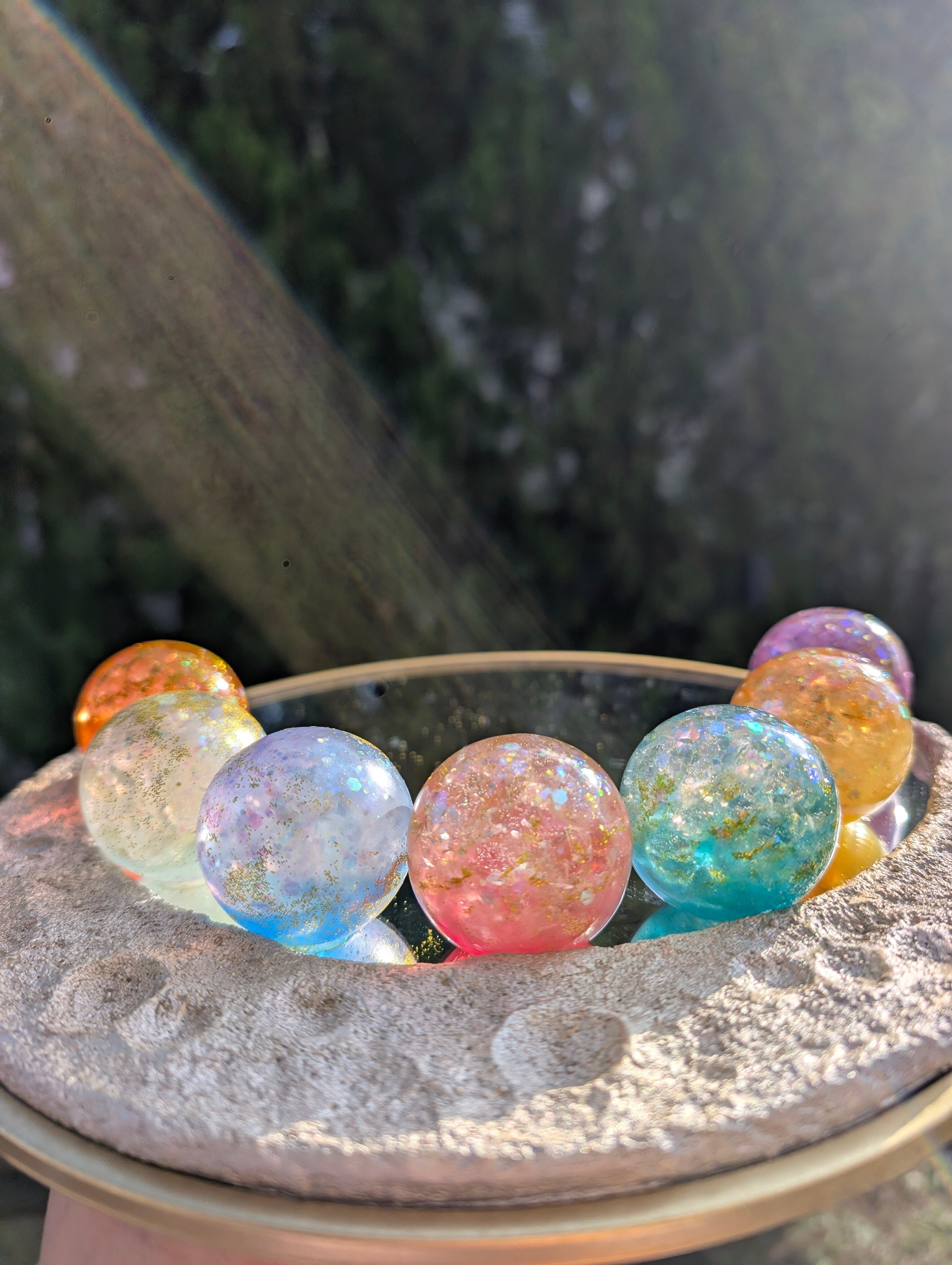 ひとつひとつ光を宿した丸玉オルゴナイトは、
