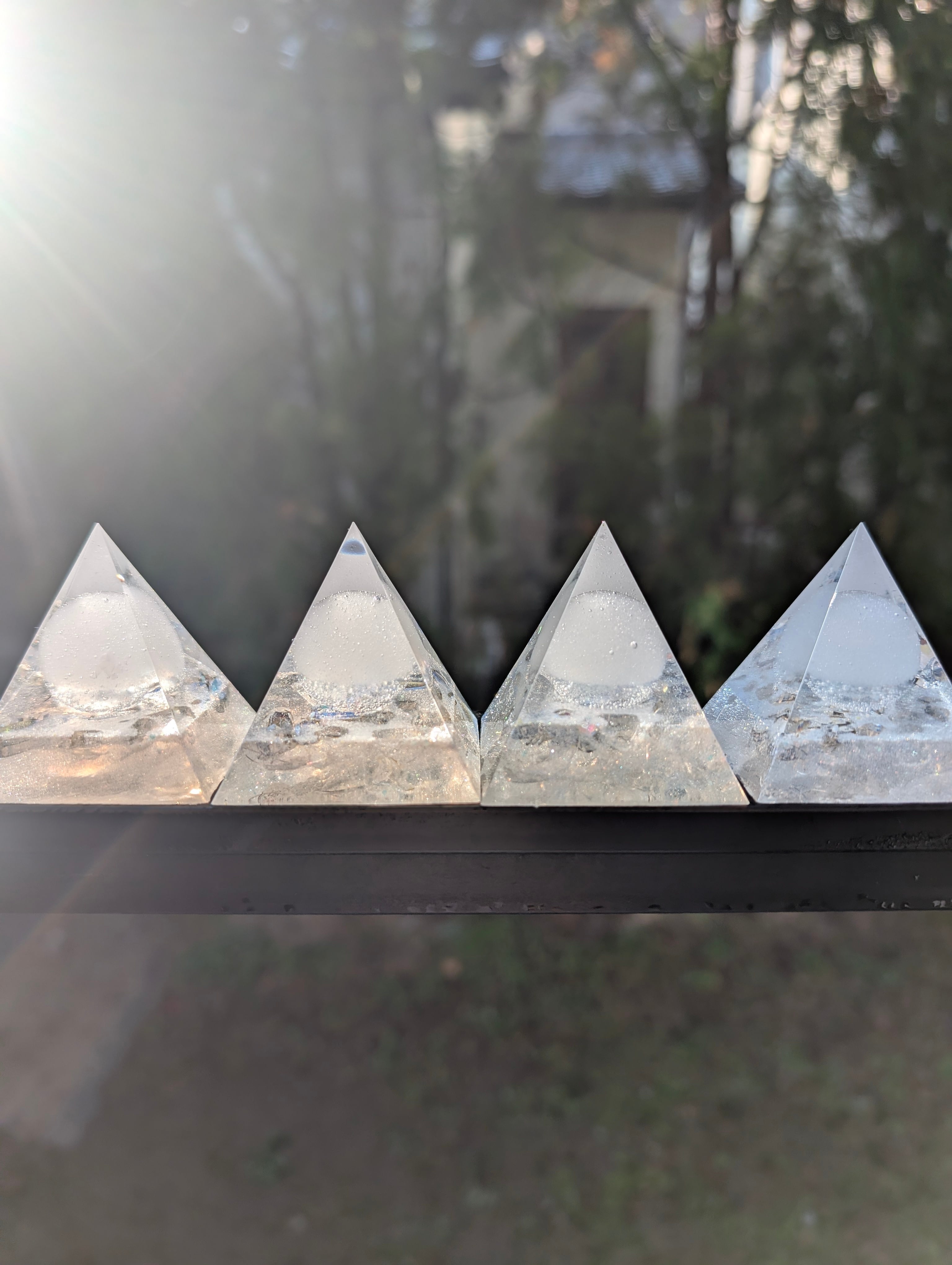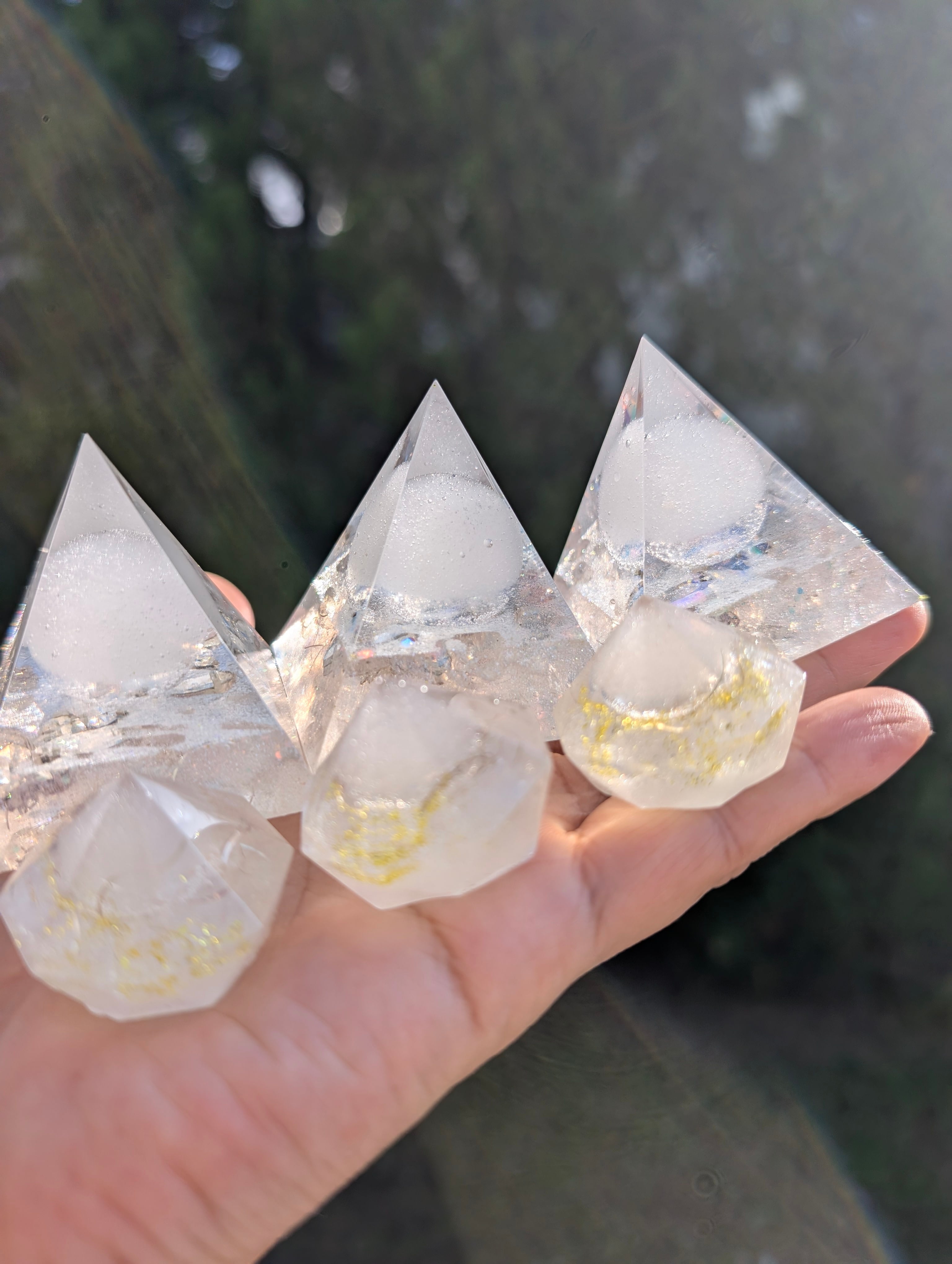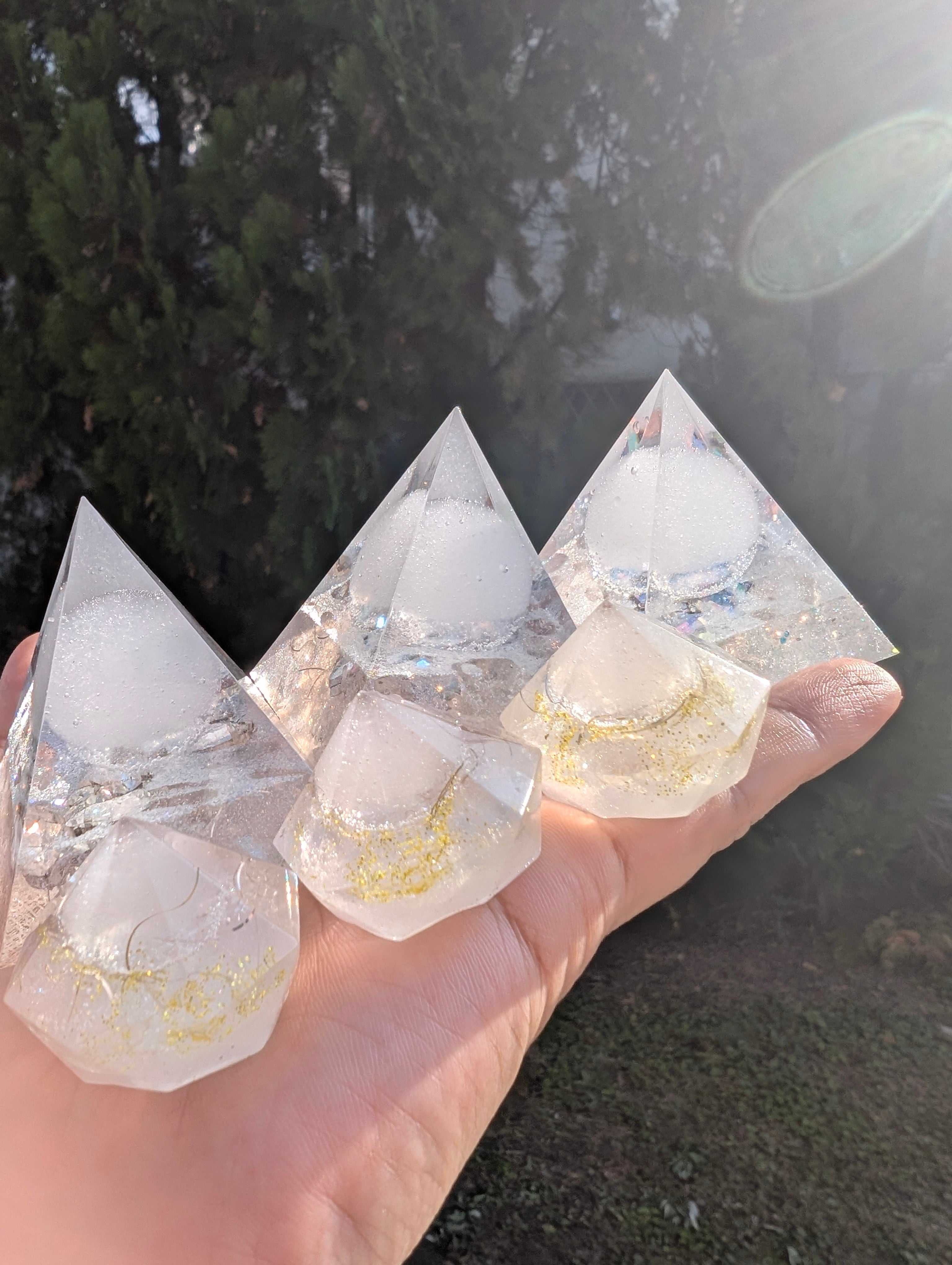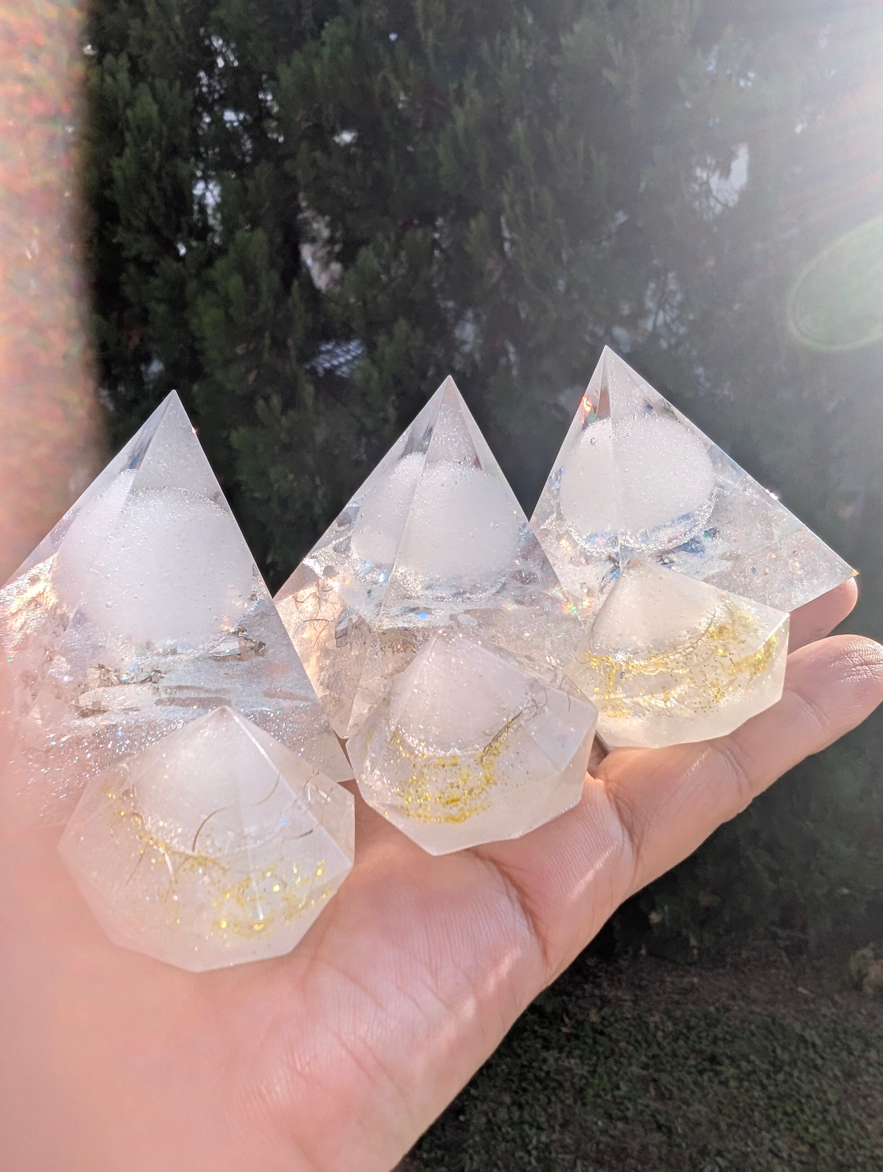 白く澄んだ光を宿したこの盛り塩オルゴナイト。