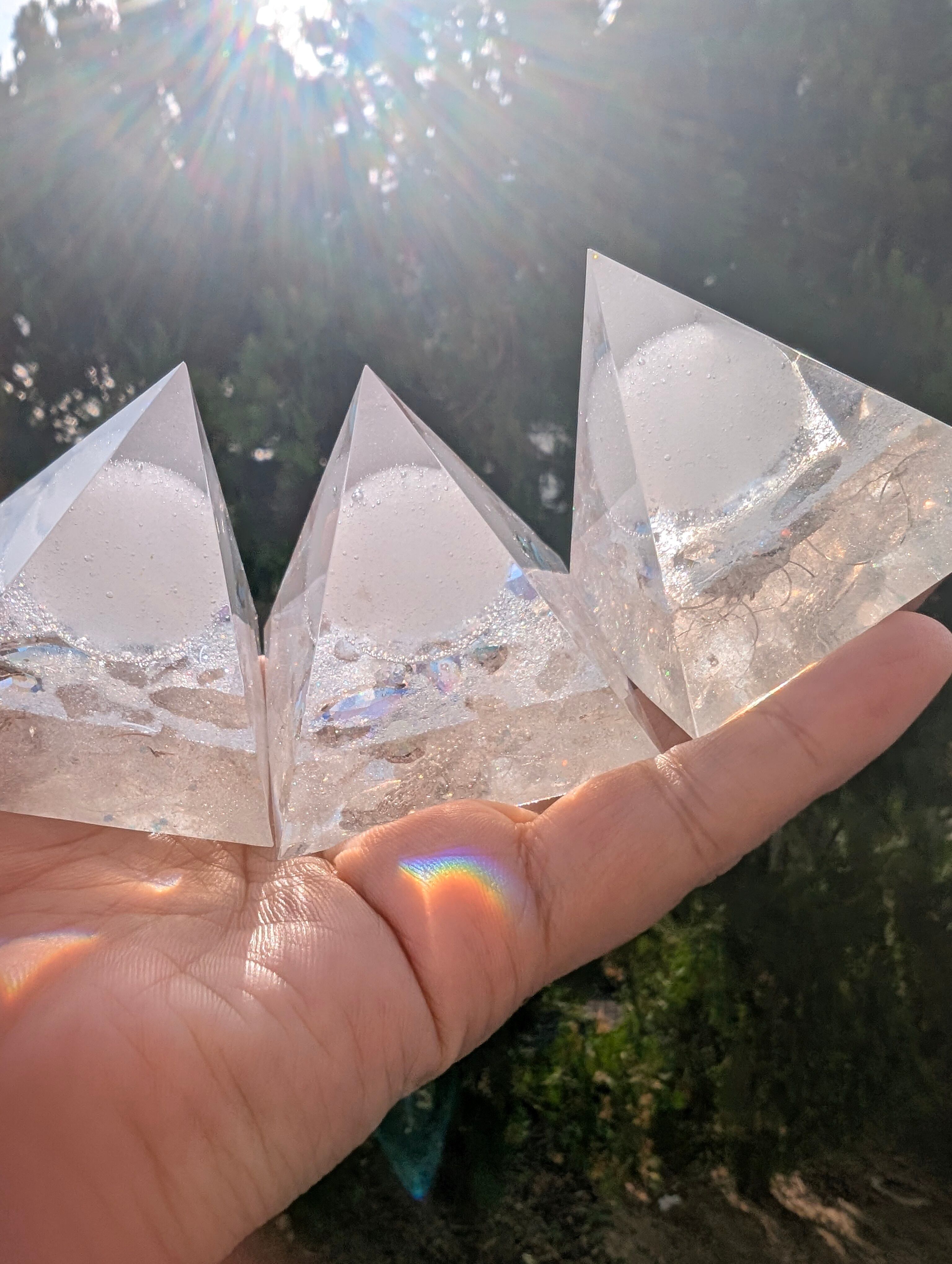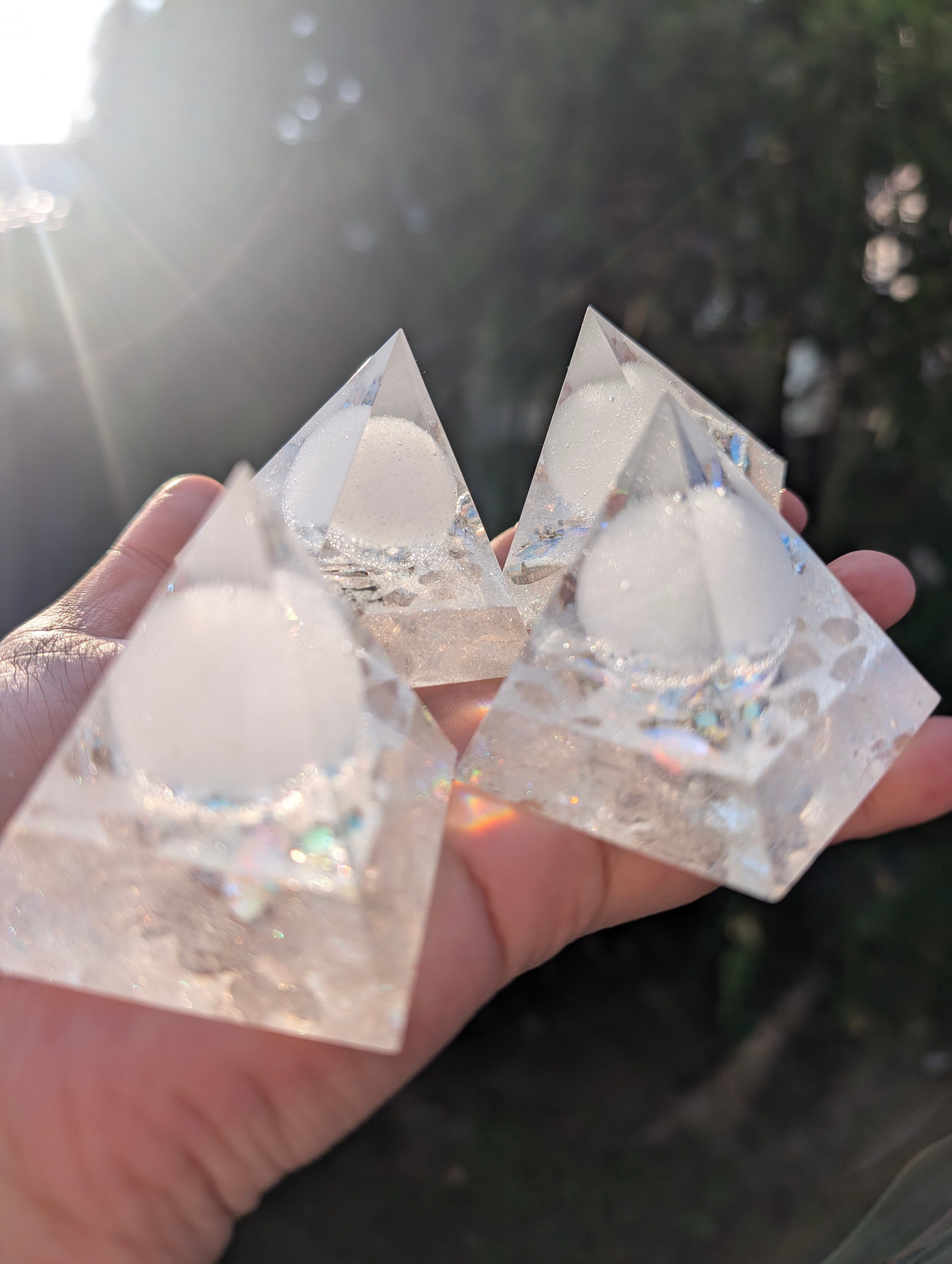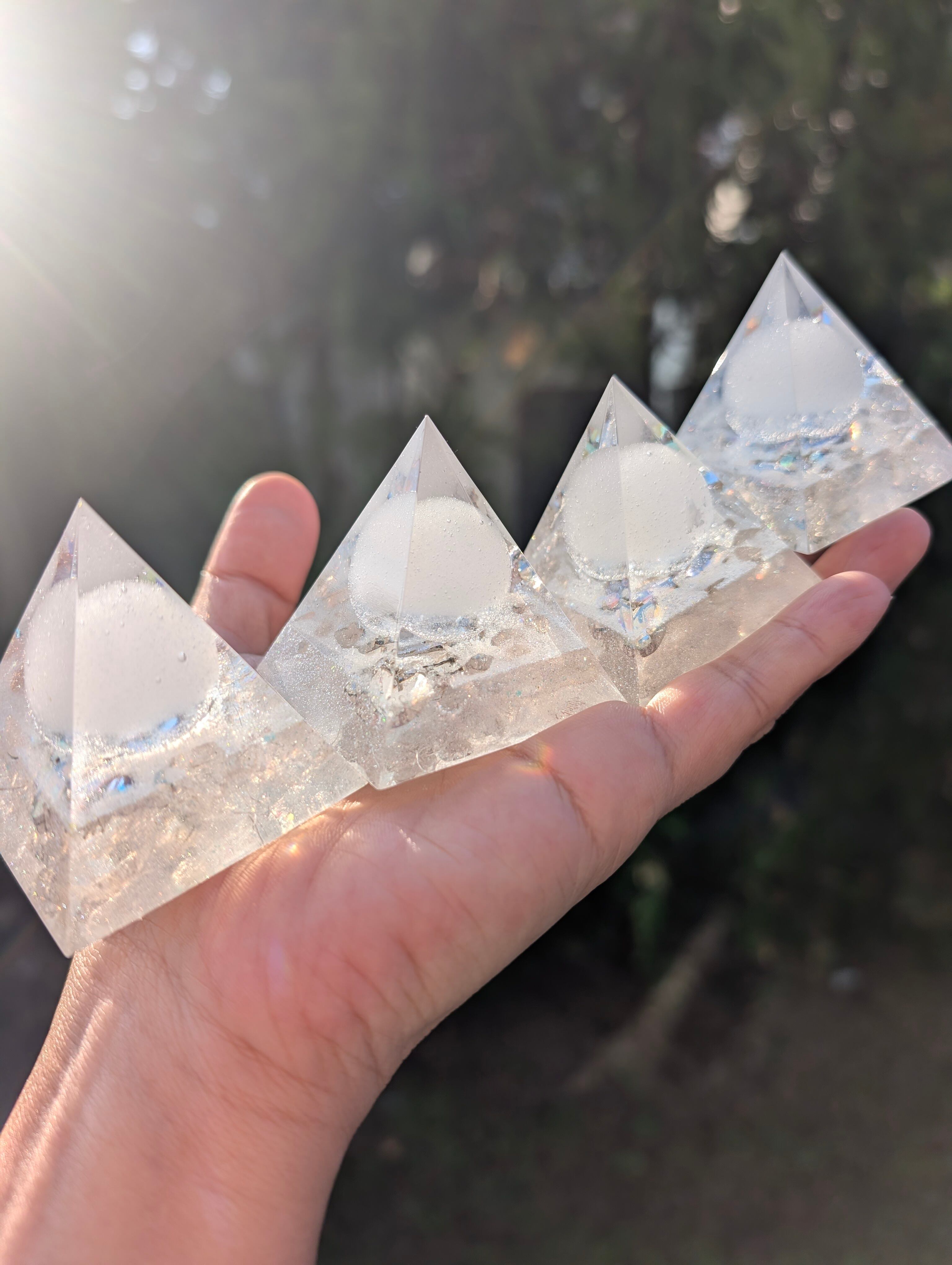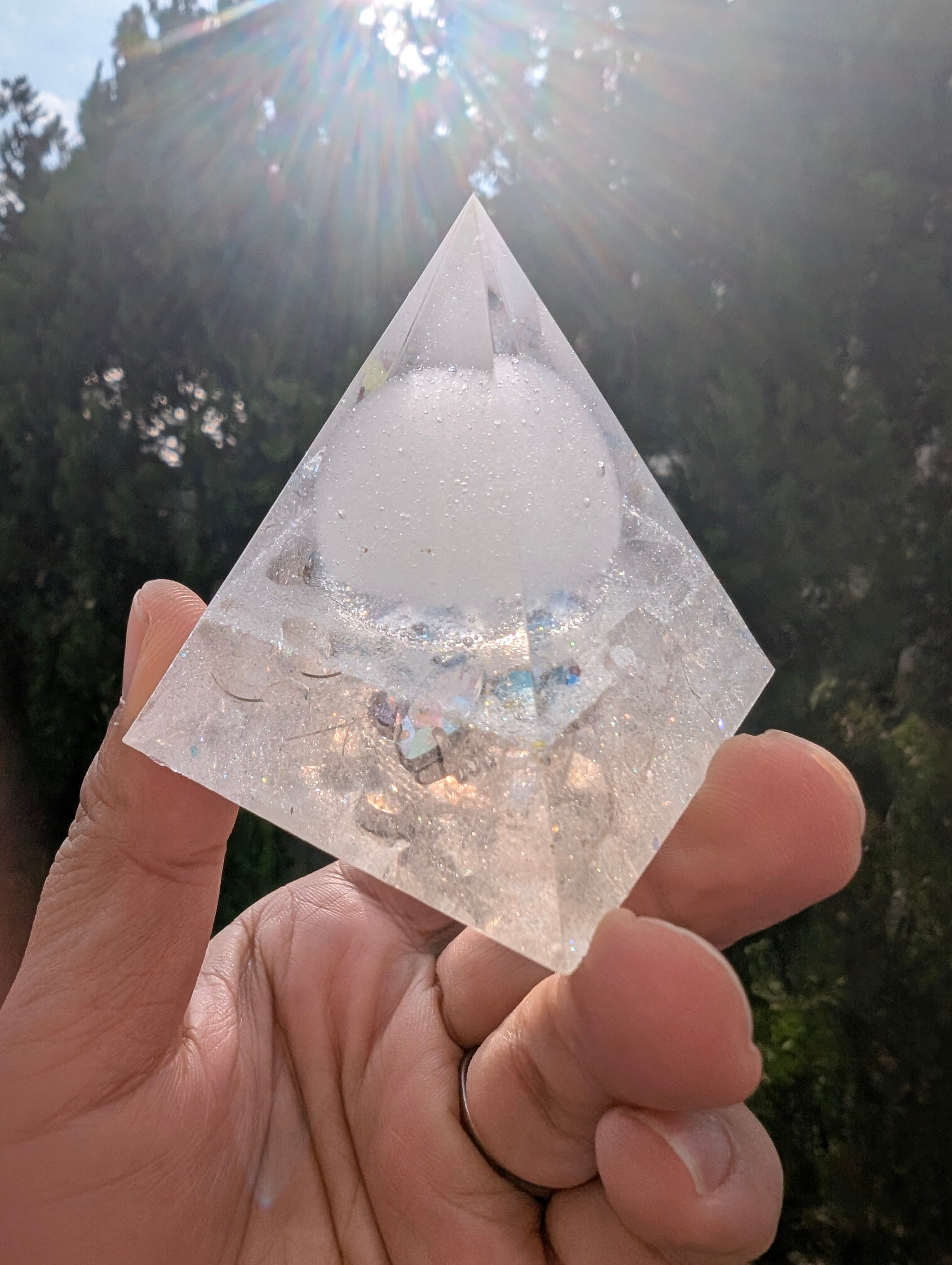 白く澄んだ光を宿したこの盛り塩オルゴナイト。