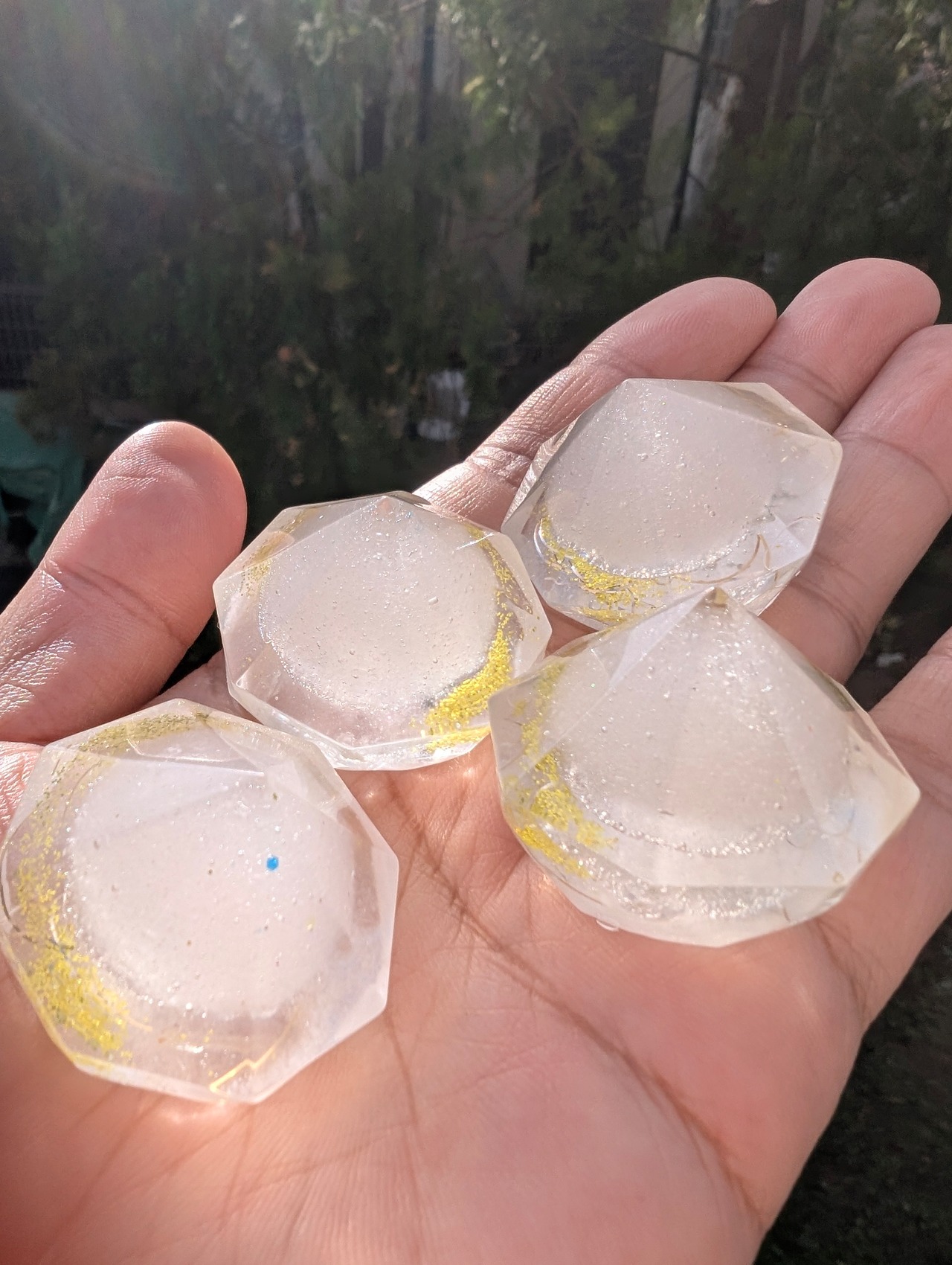白く澄んだ光を宿したこの盛り塩オルゴナイト。