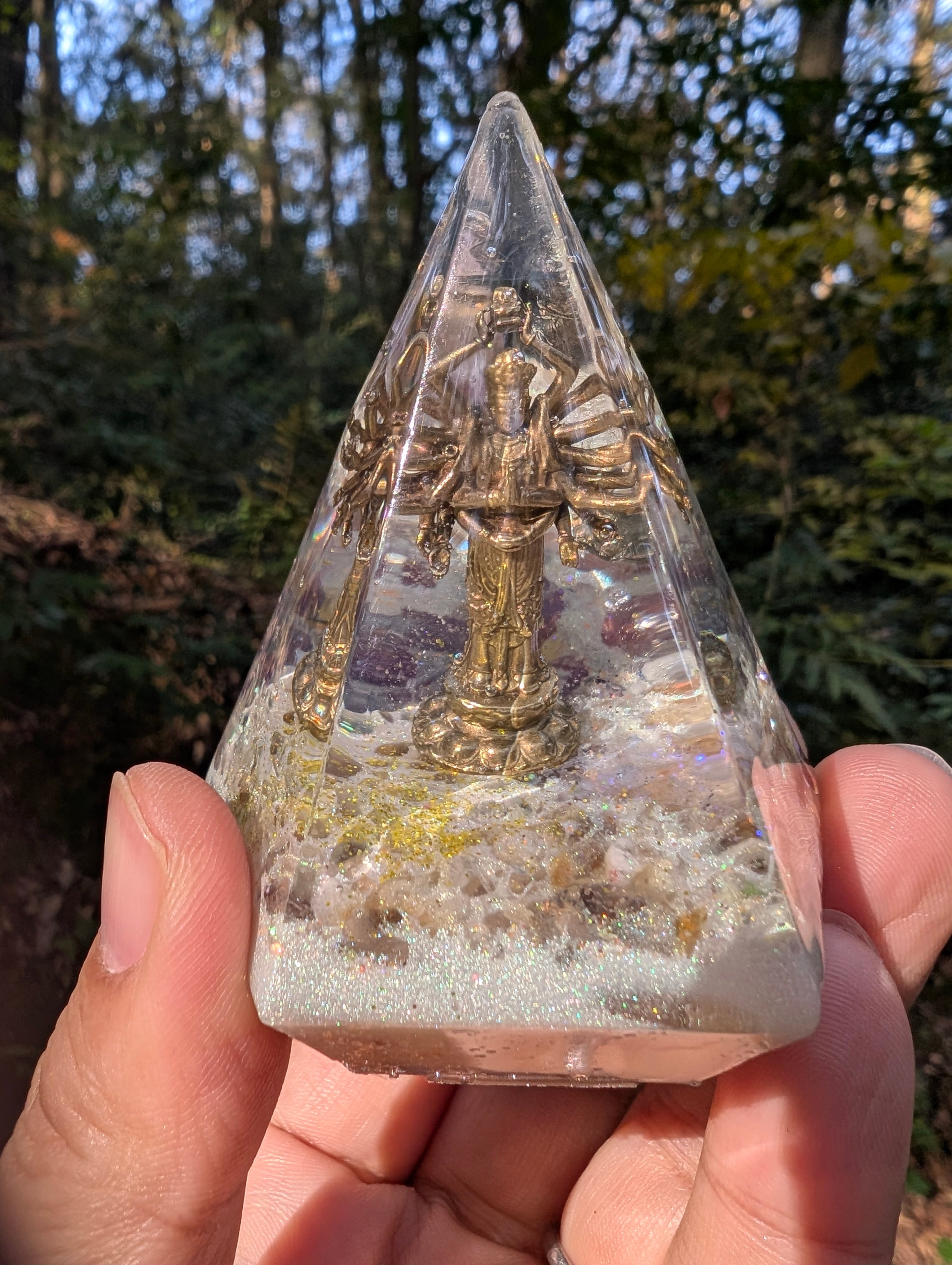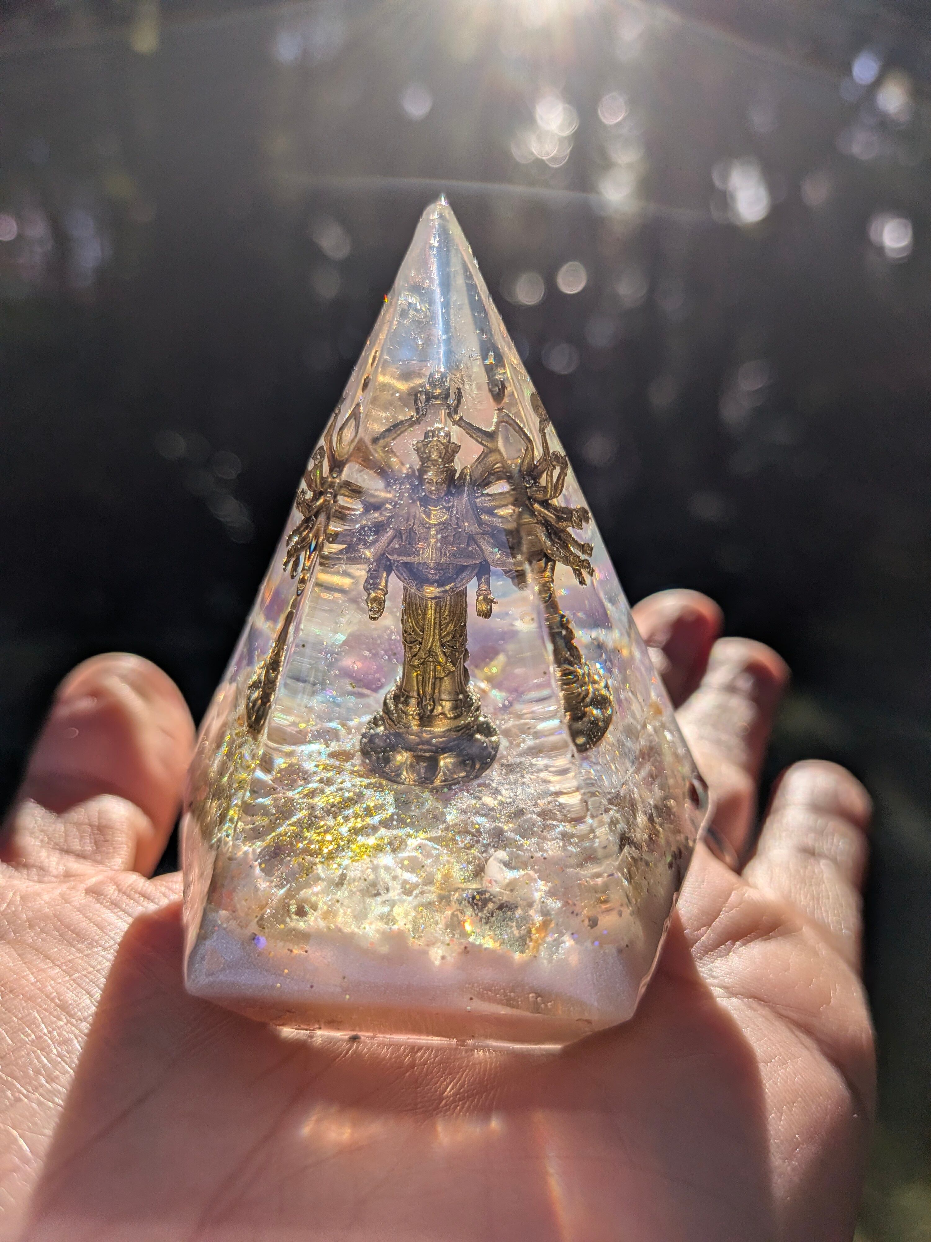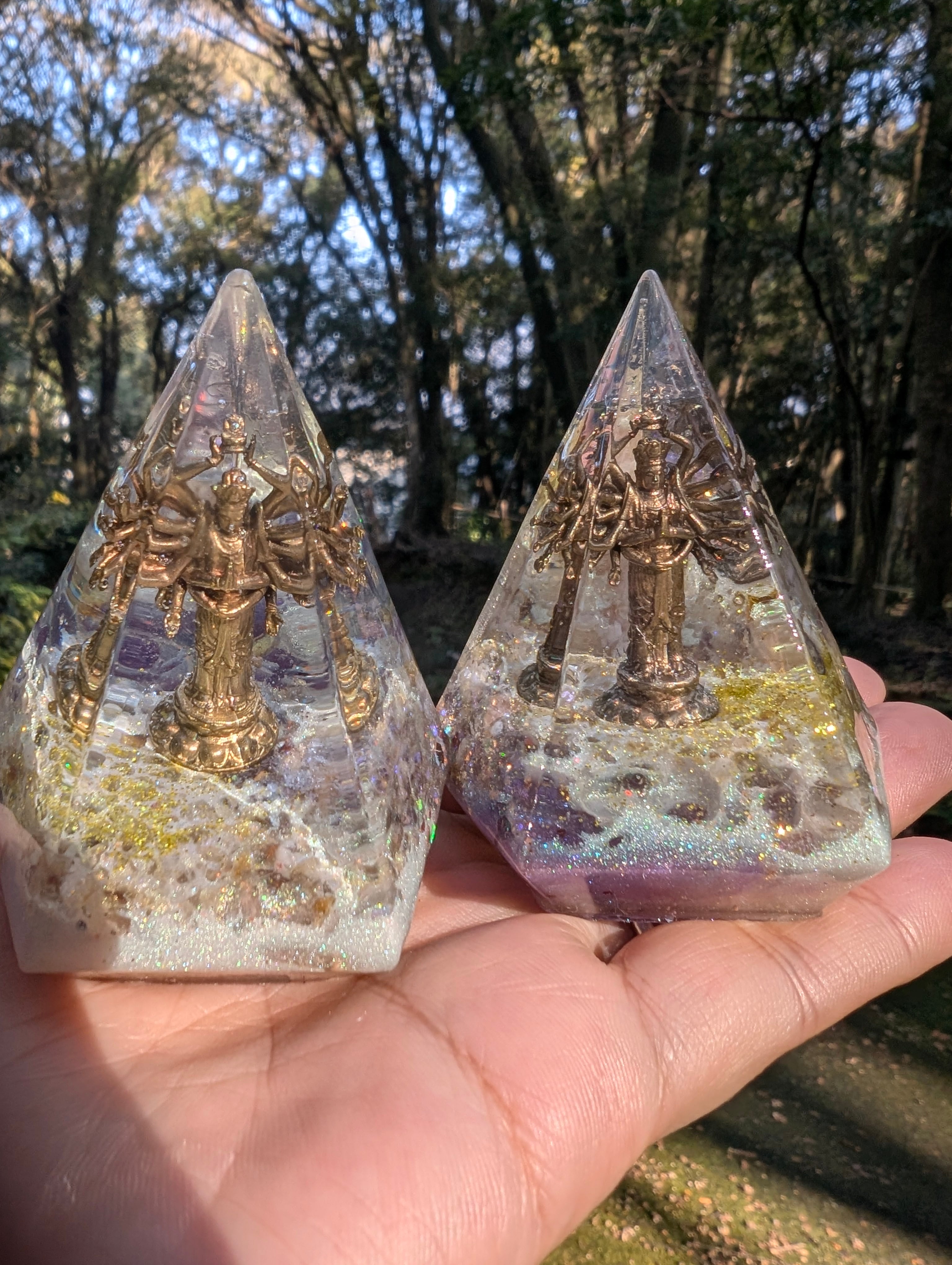 千手観音を中心に封入した、特別なオルゴナイトです。