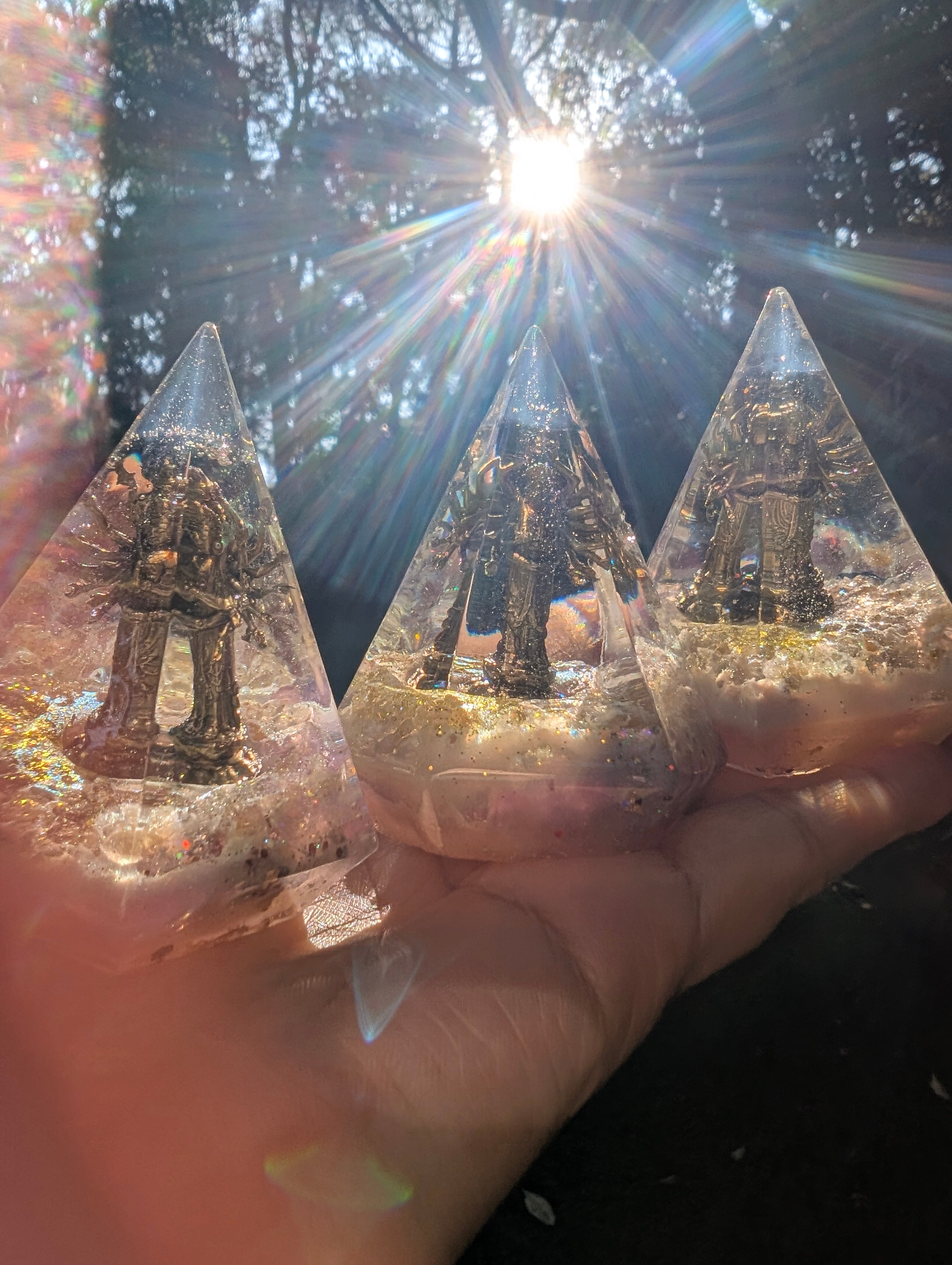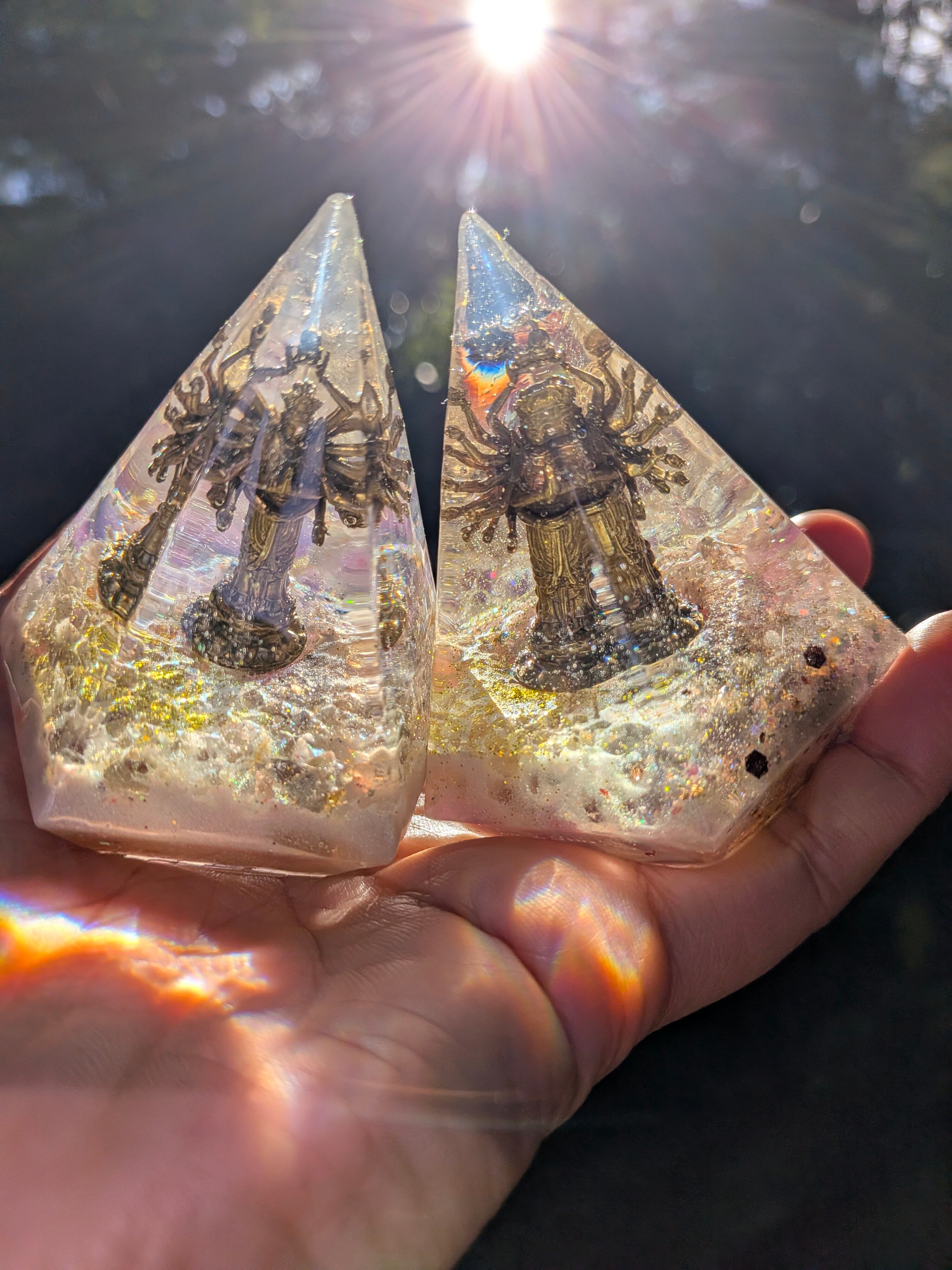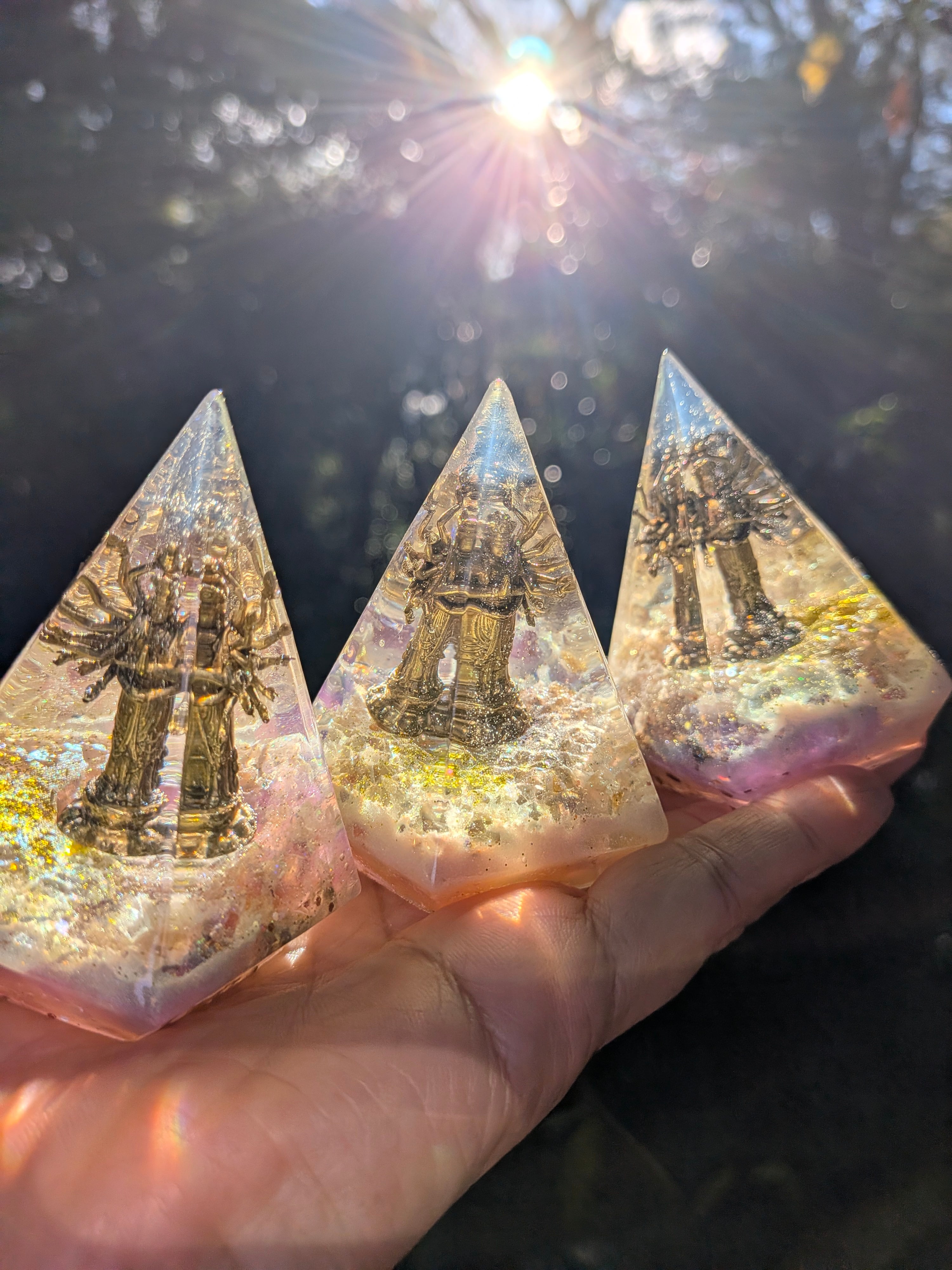 千手観音を中心に封入した、特別なオルゴナイトです。