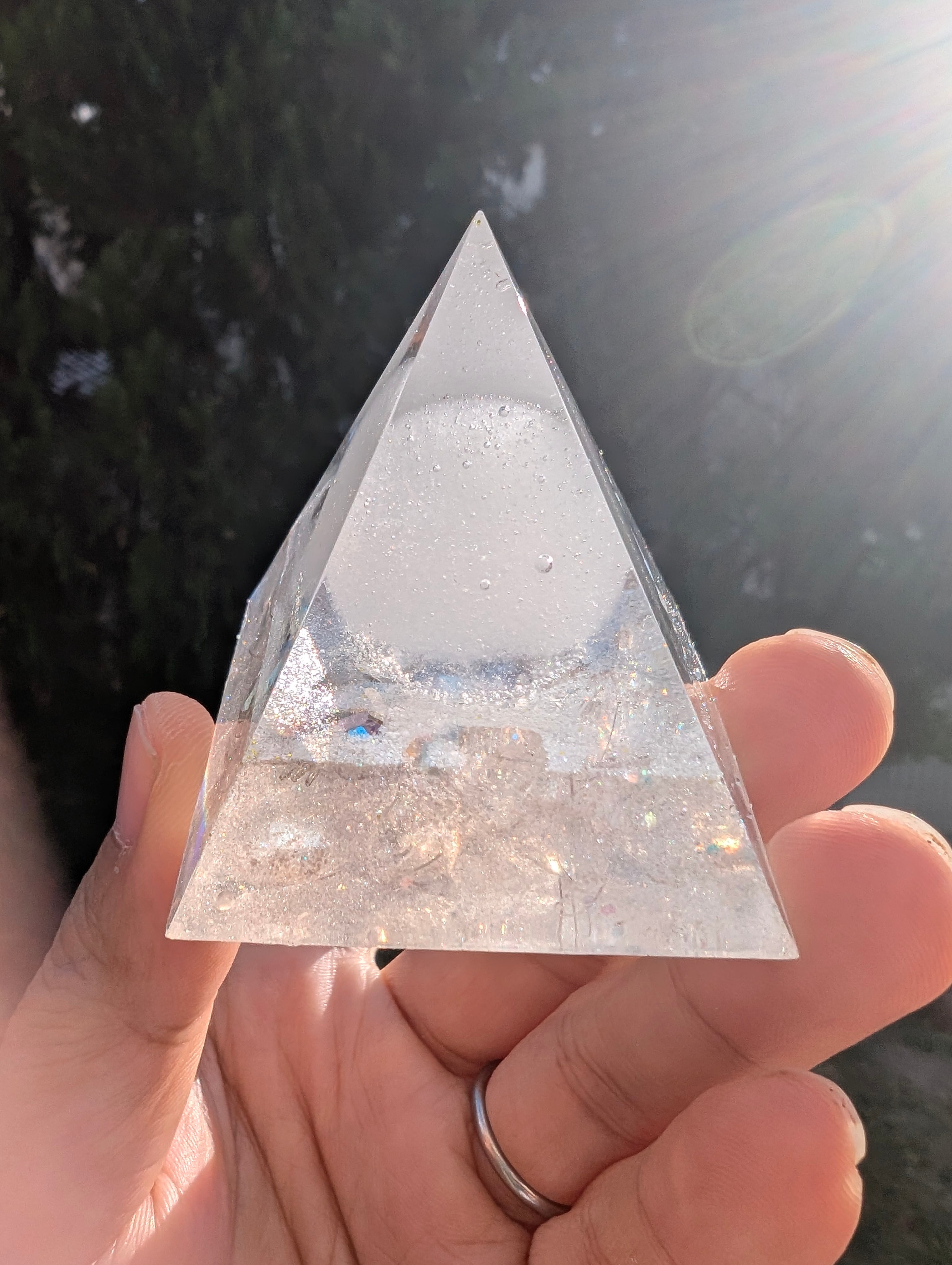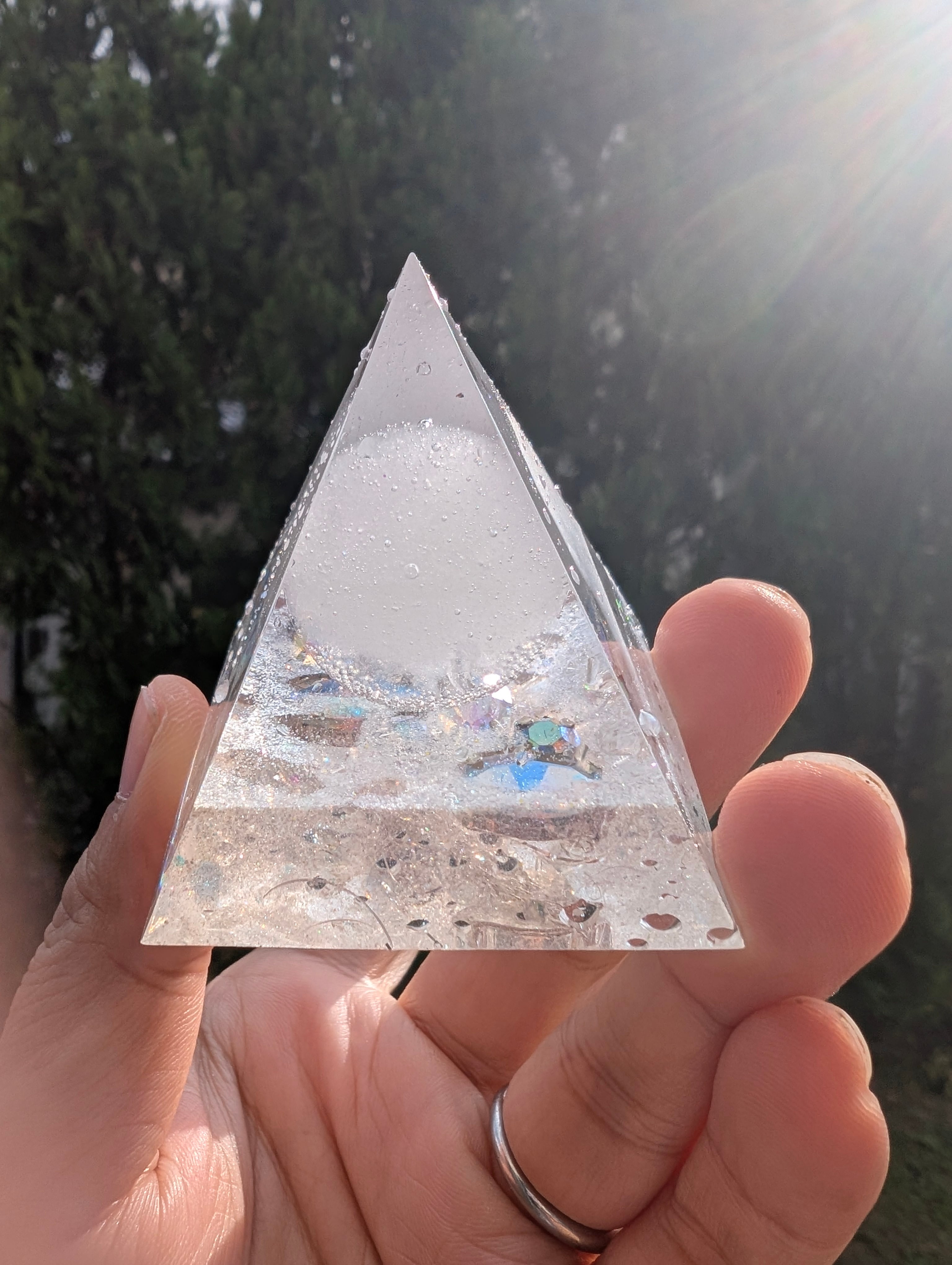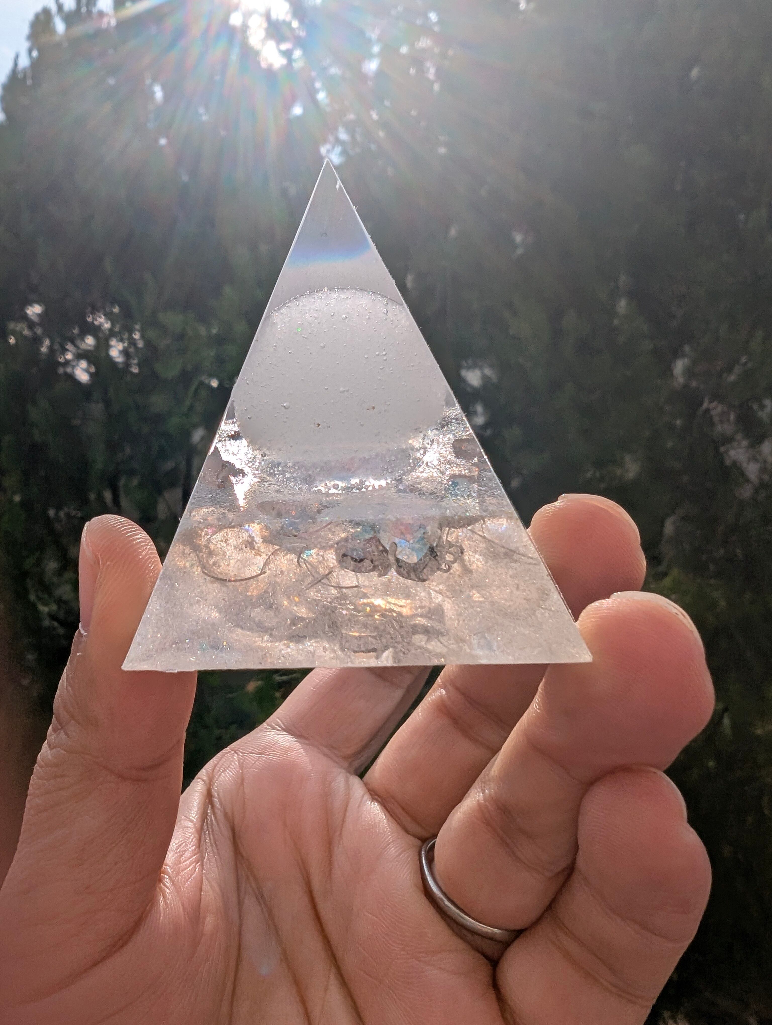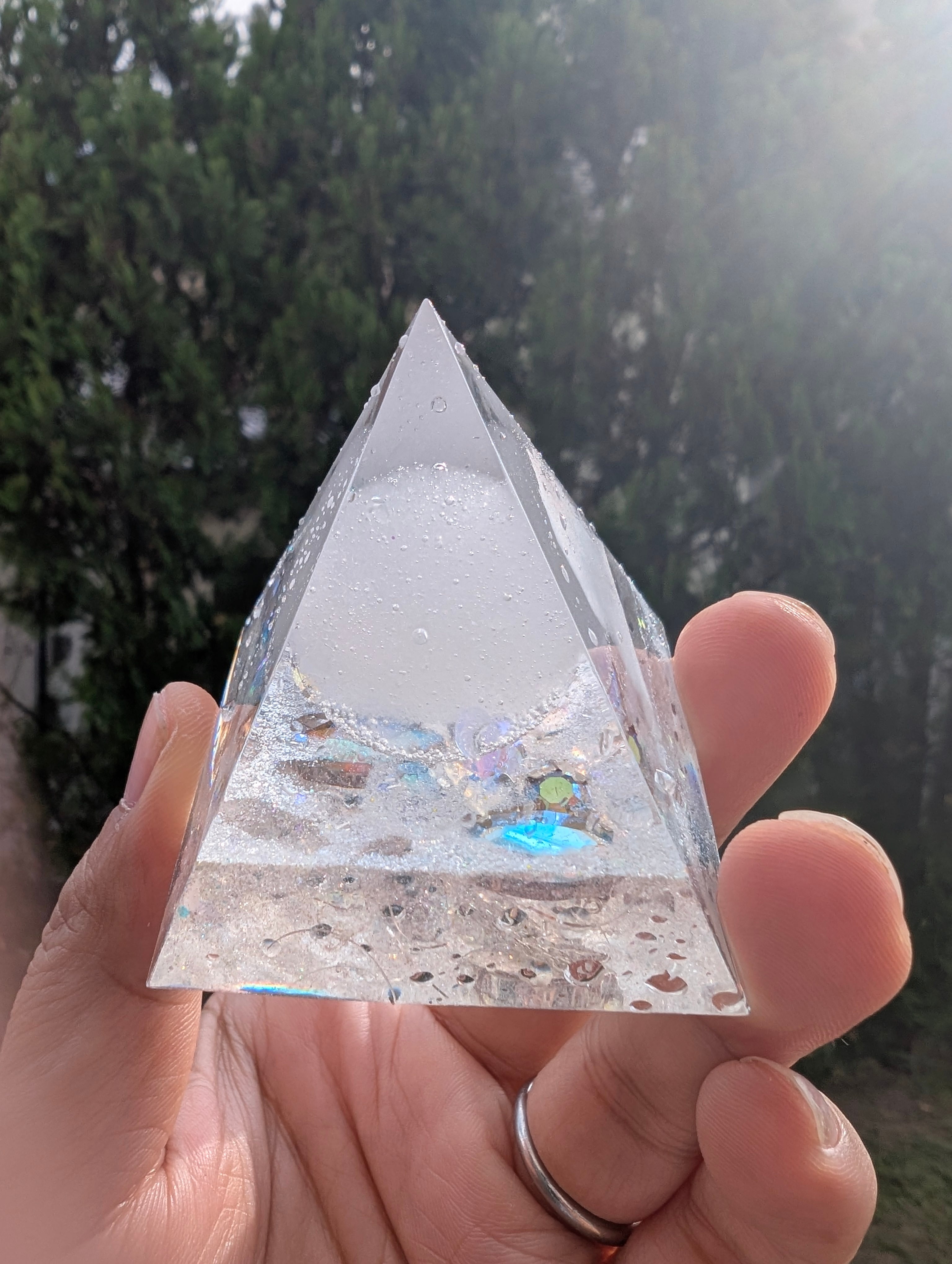 白く澄んだ光を宿したこの盛り塩オルゴナイト。