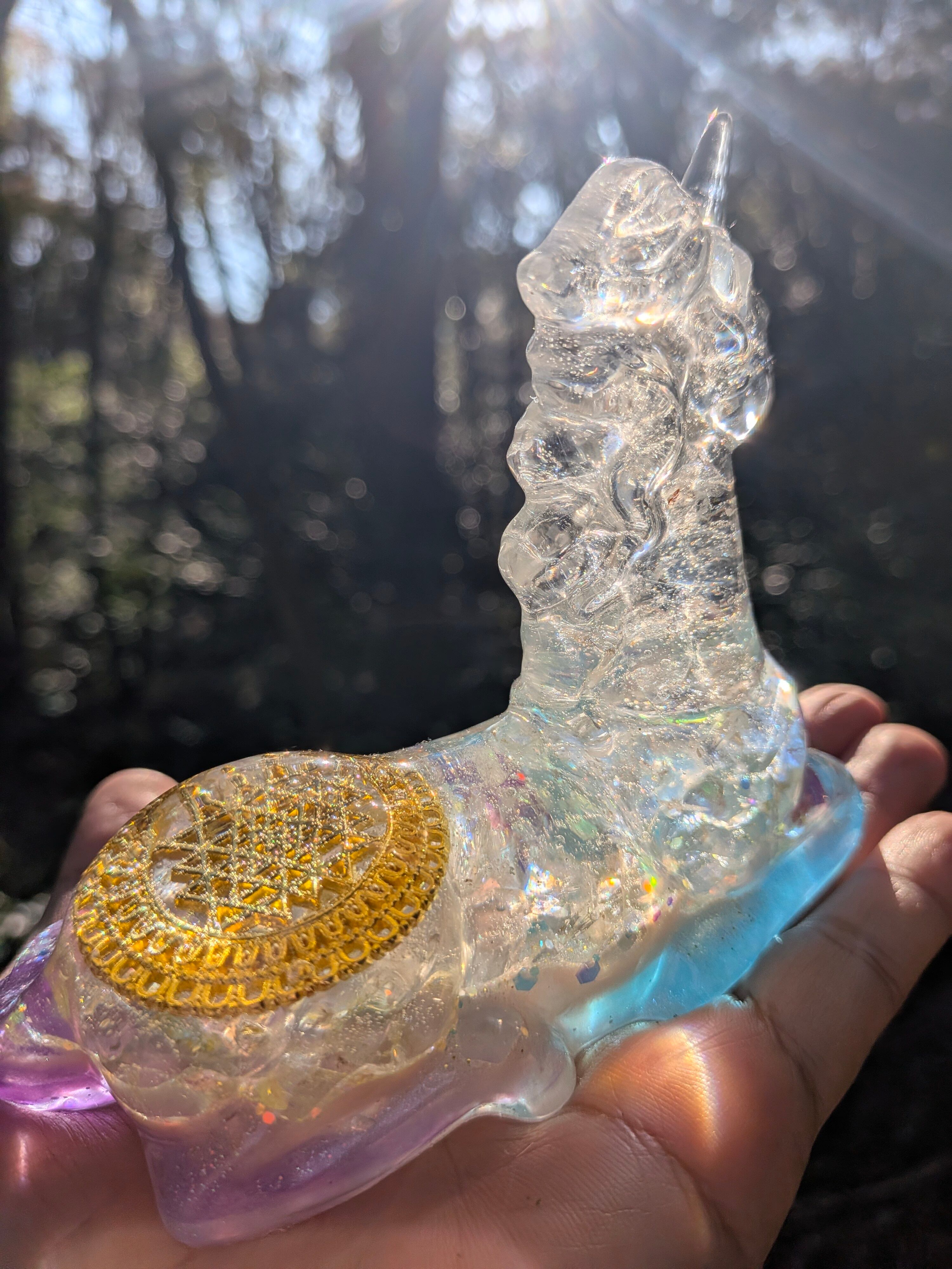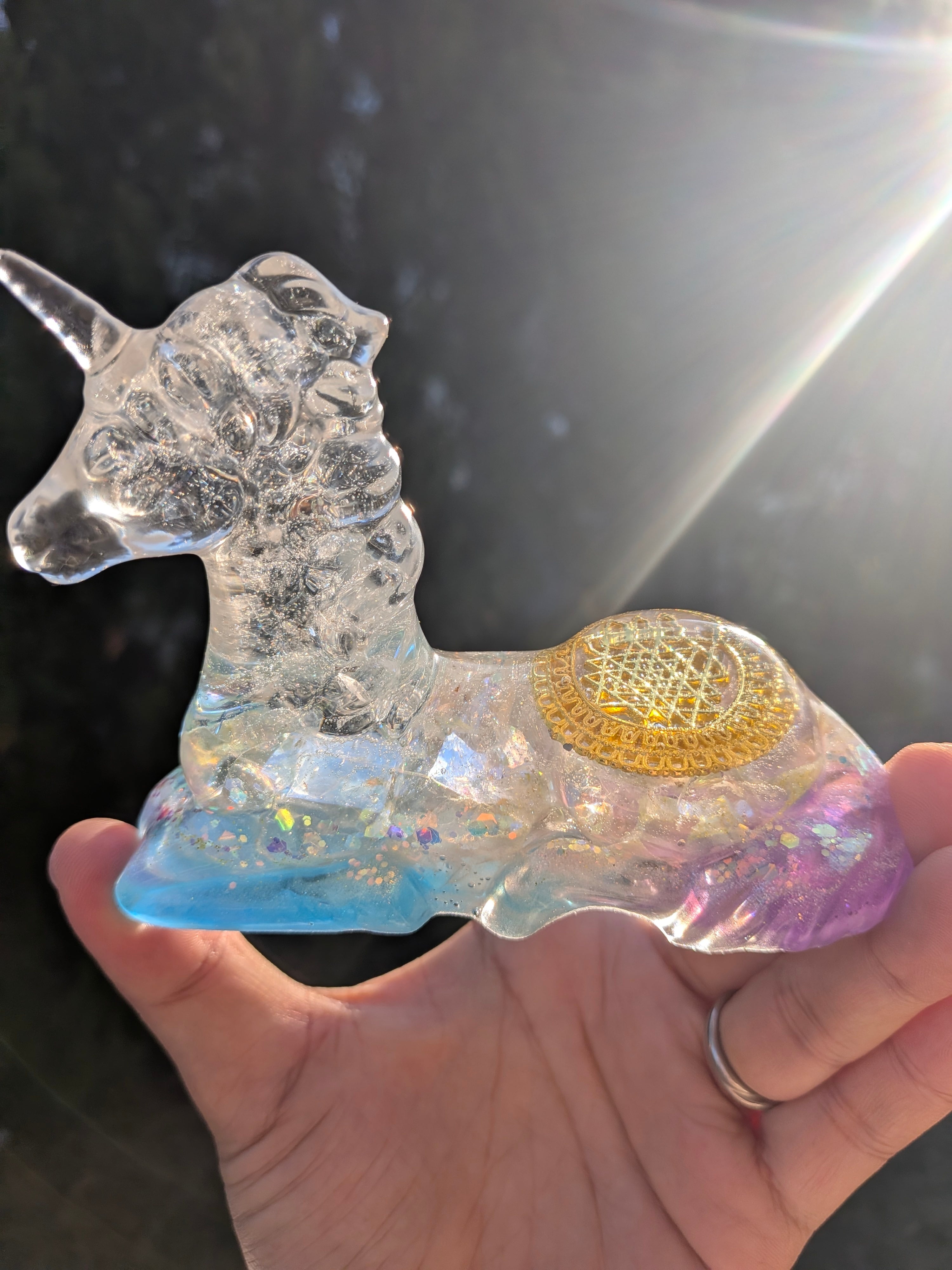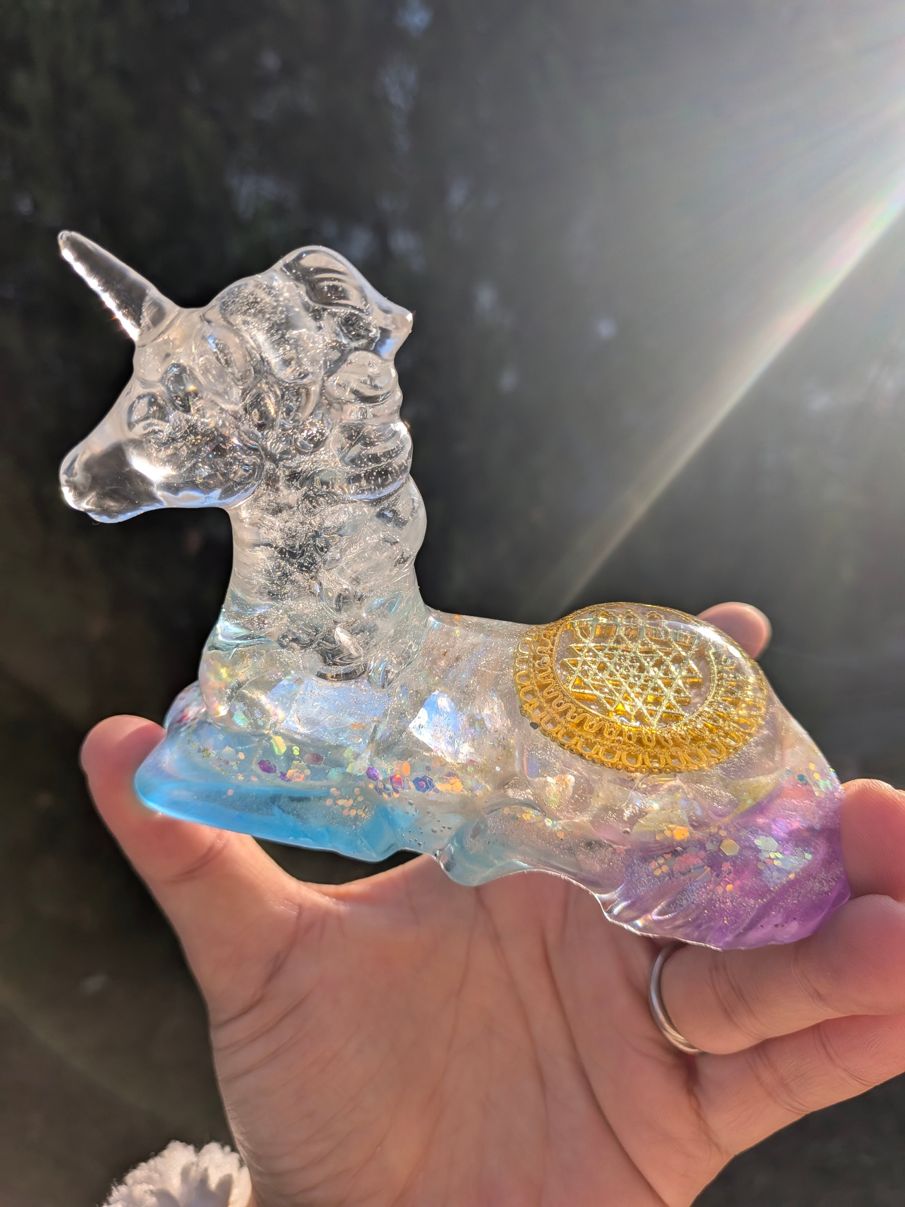 ユニコーンの背中に、宇宙創造の源「シュリーヤントラ」を宿した神聖なエネルギーをもつオルゴナイト♡