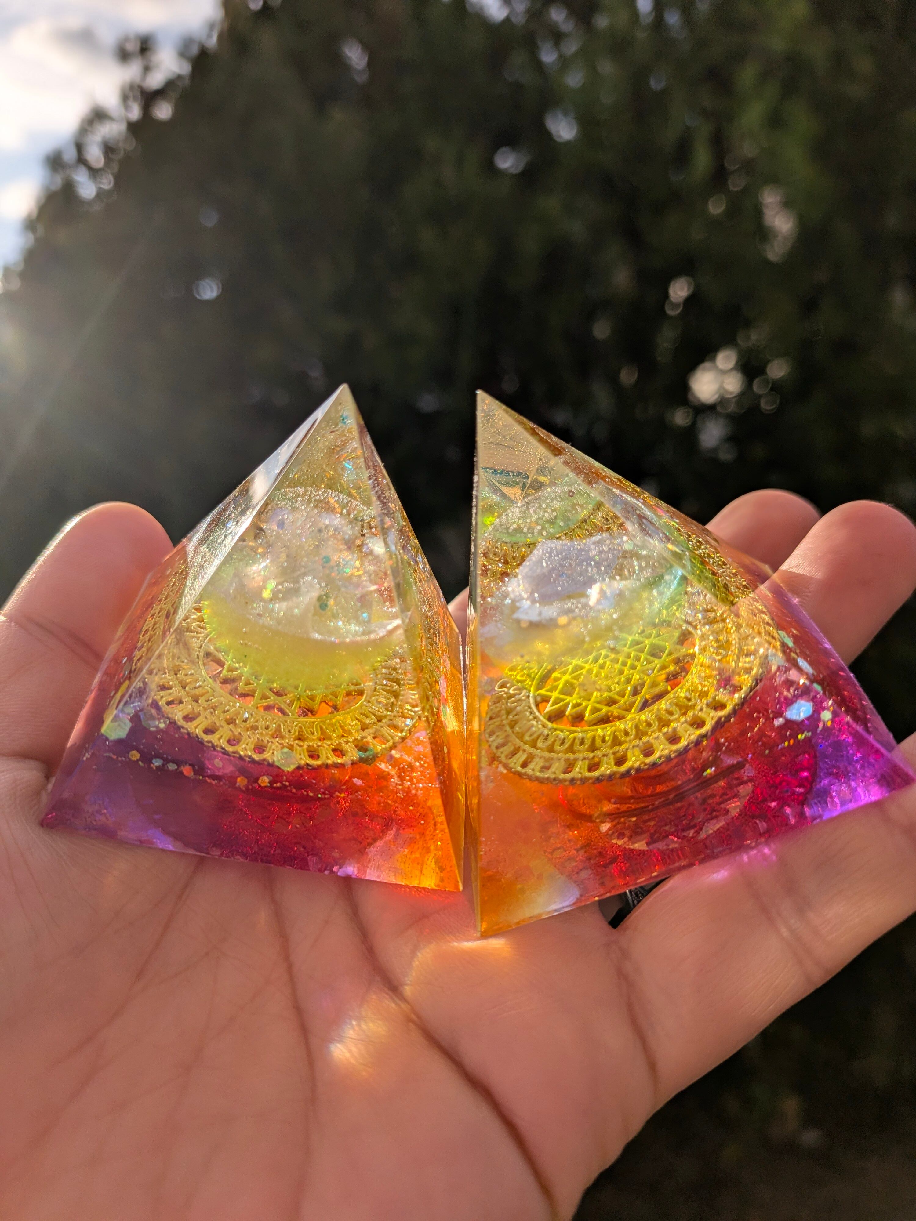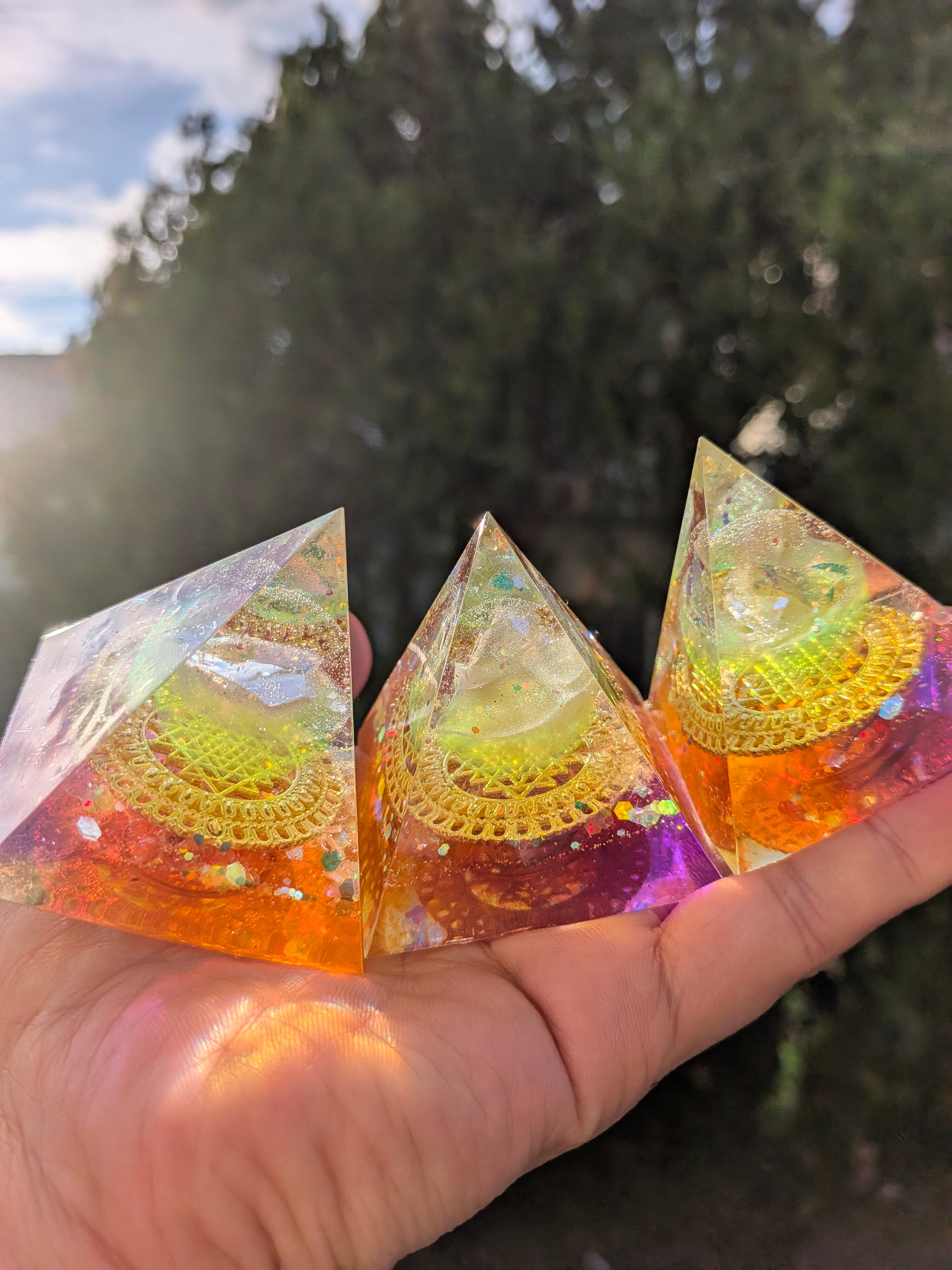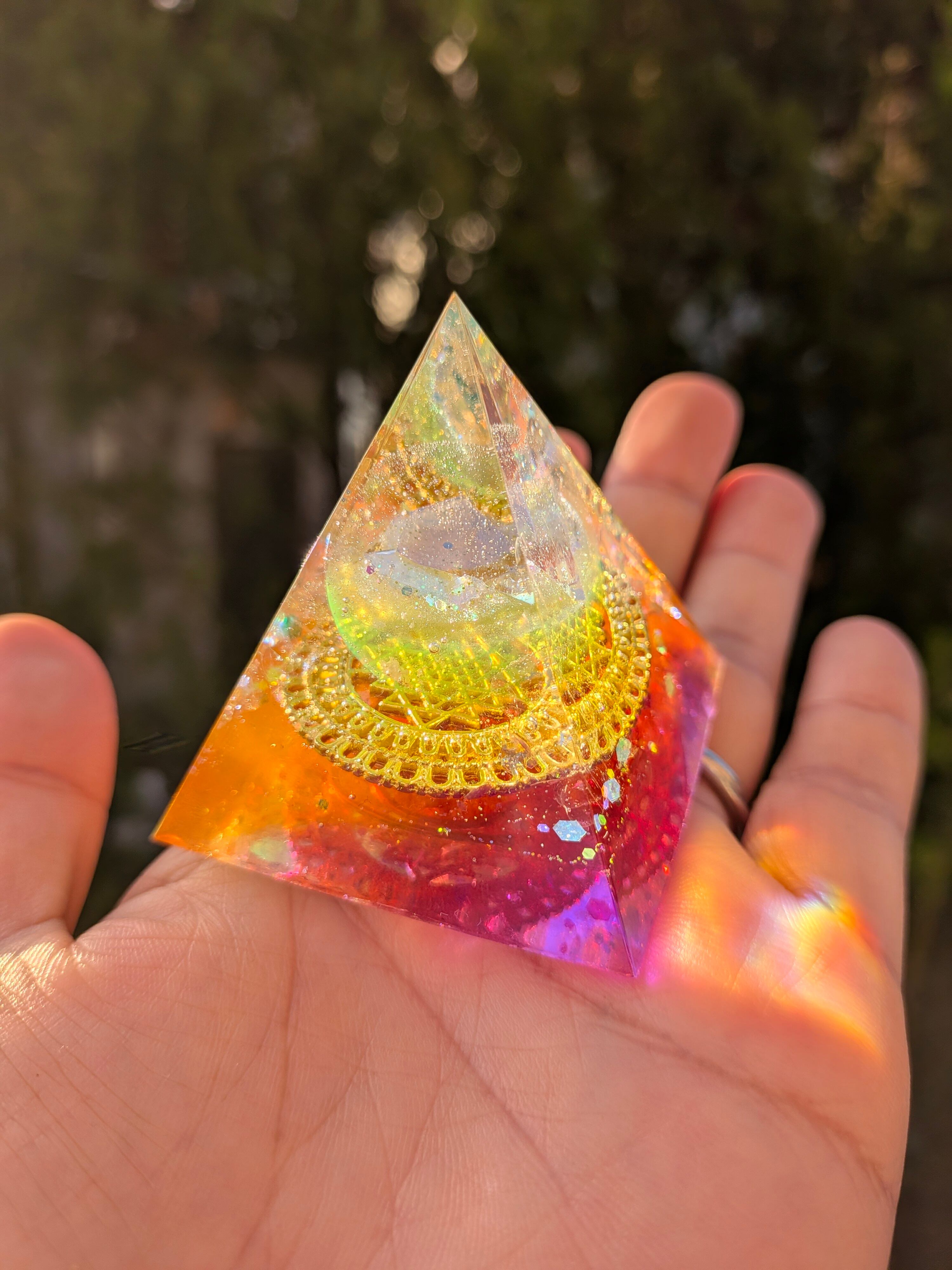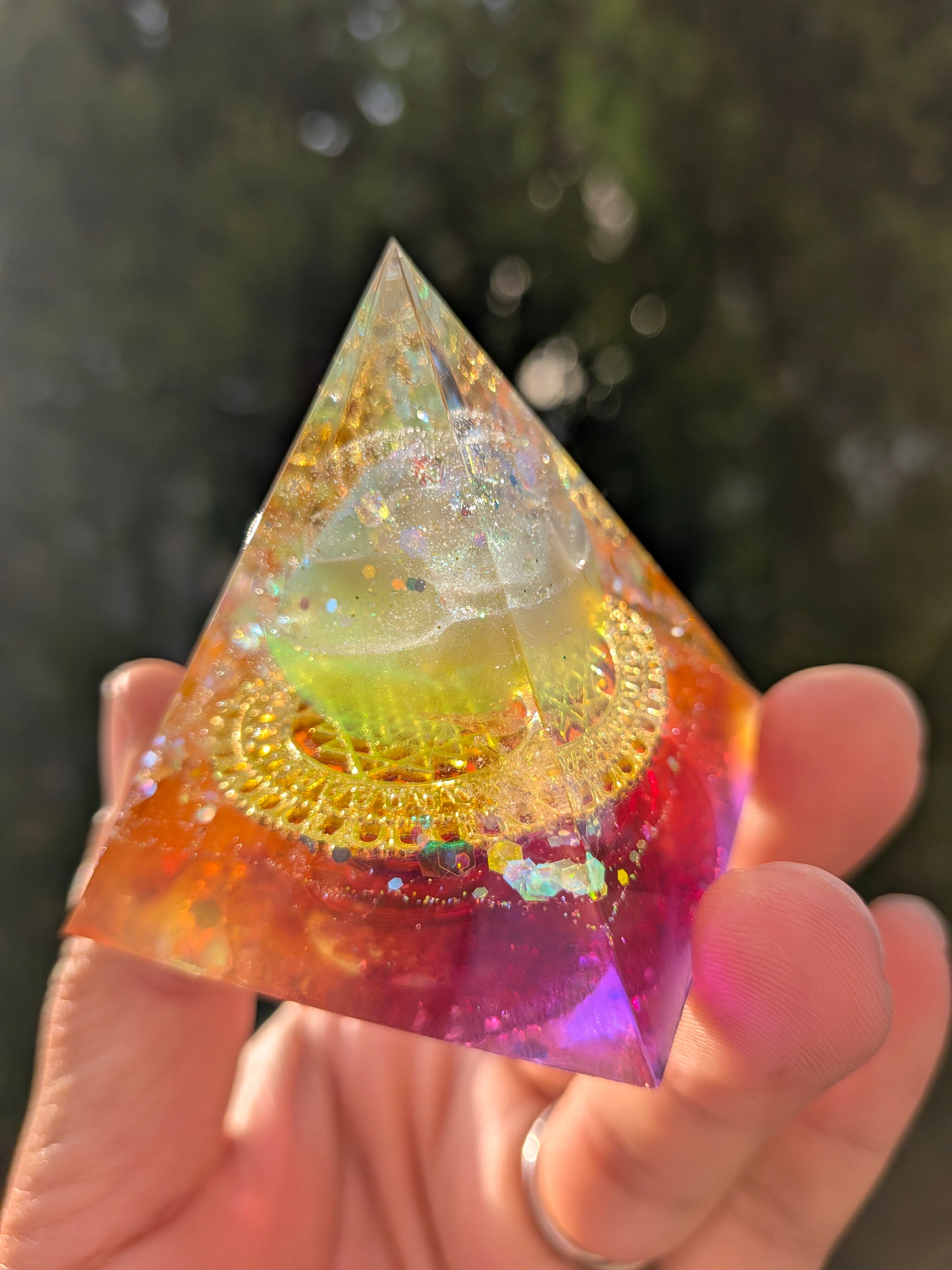 こちらは、あなたの内なる太陽を目覚めさせる、シュリーヤントラ太陽の神殿オルゴナイトです✨