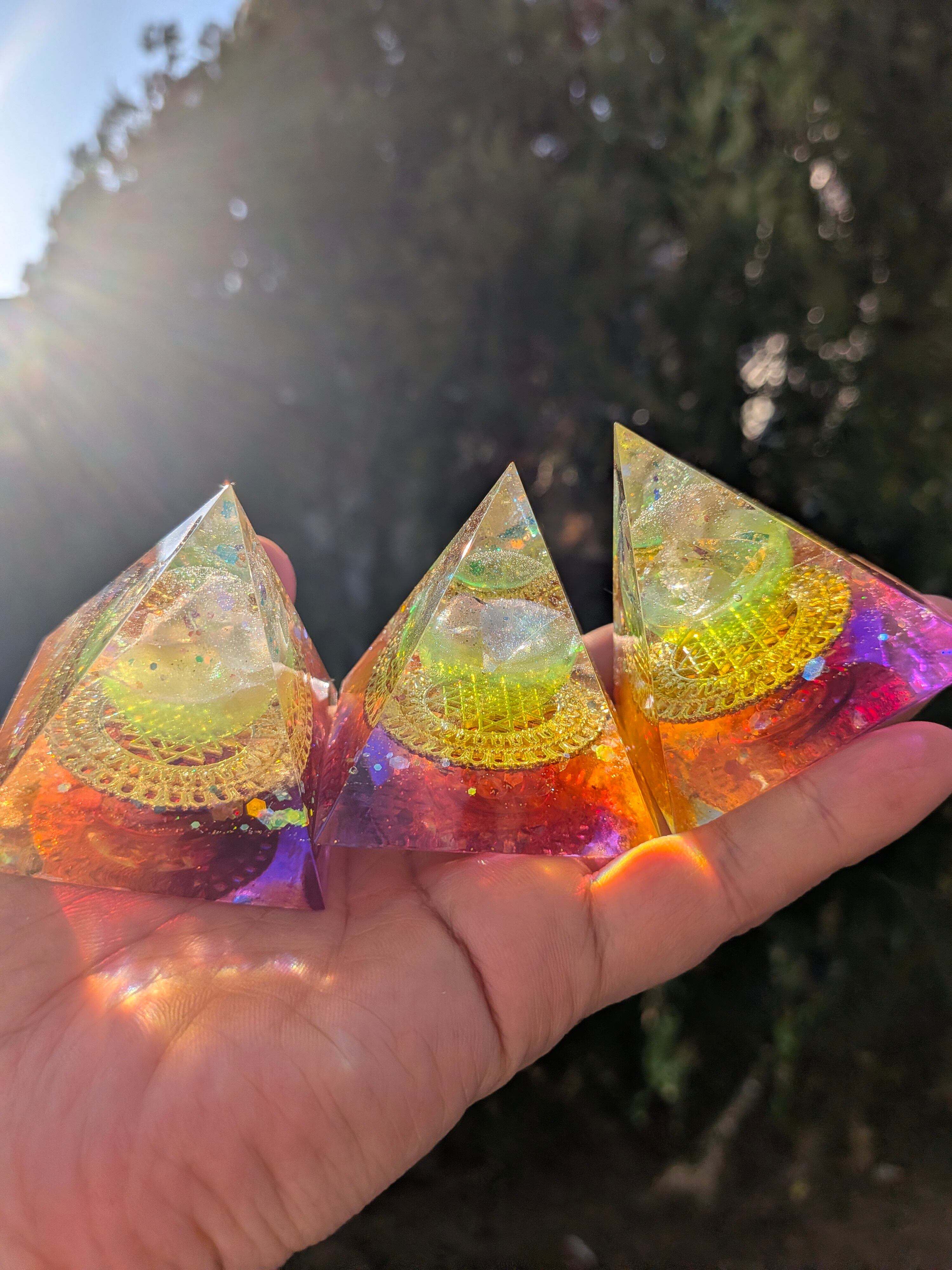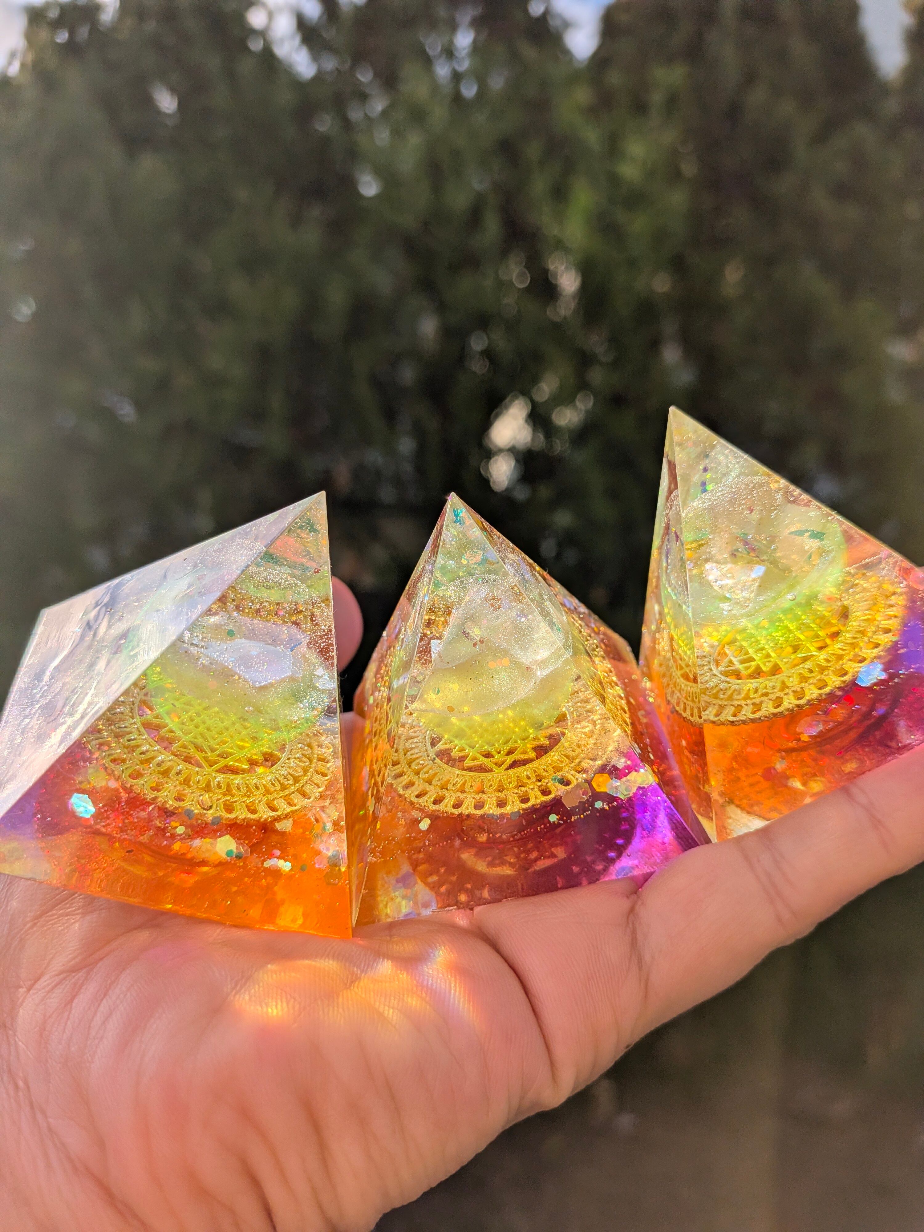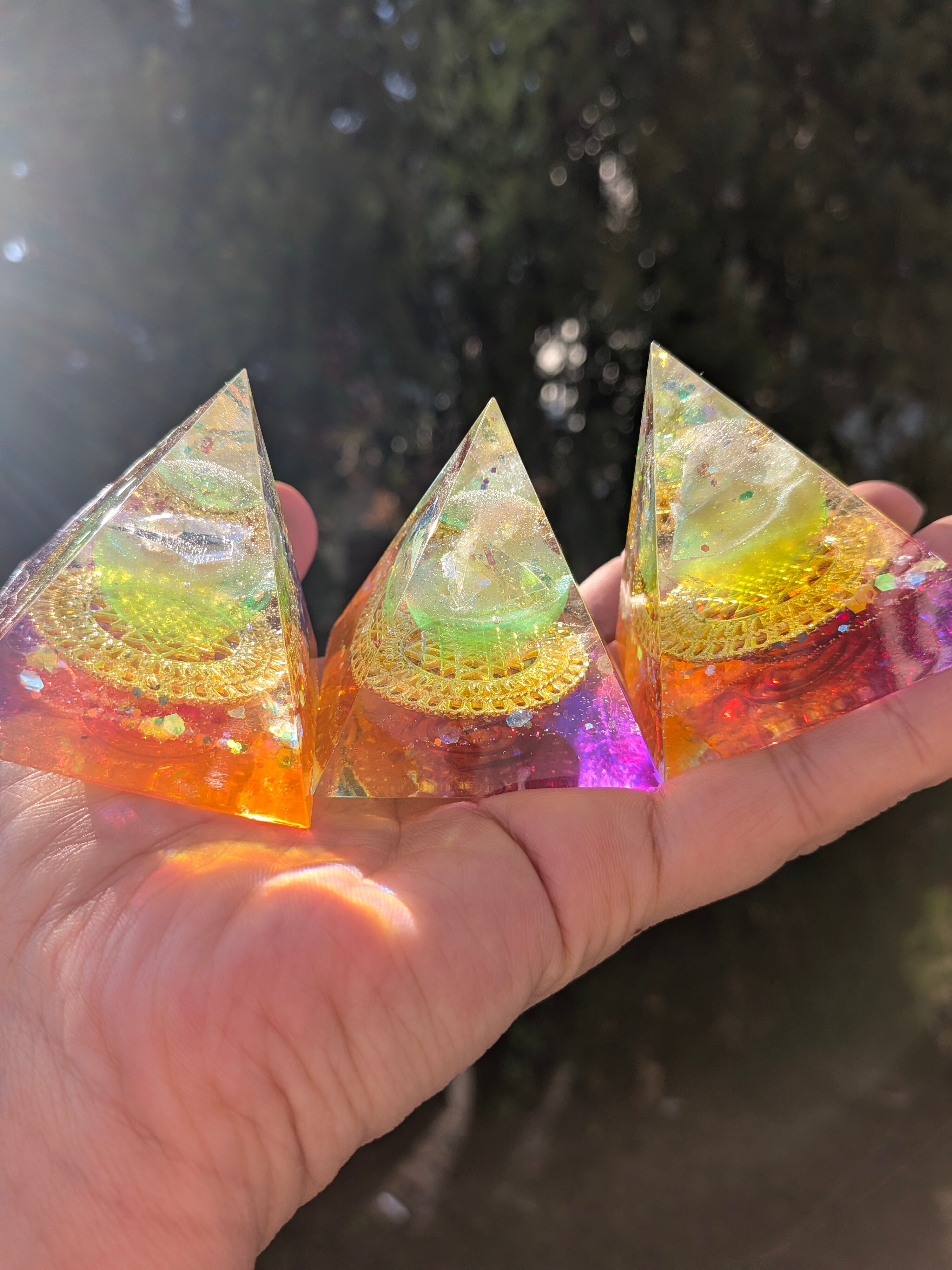 こちらは、あなたの内なる太陽を目覚めさせる、シュリーヤントラ太陽の神殿オルゴナイトです✨