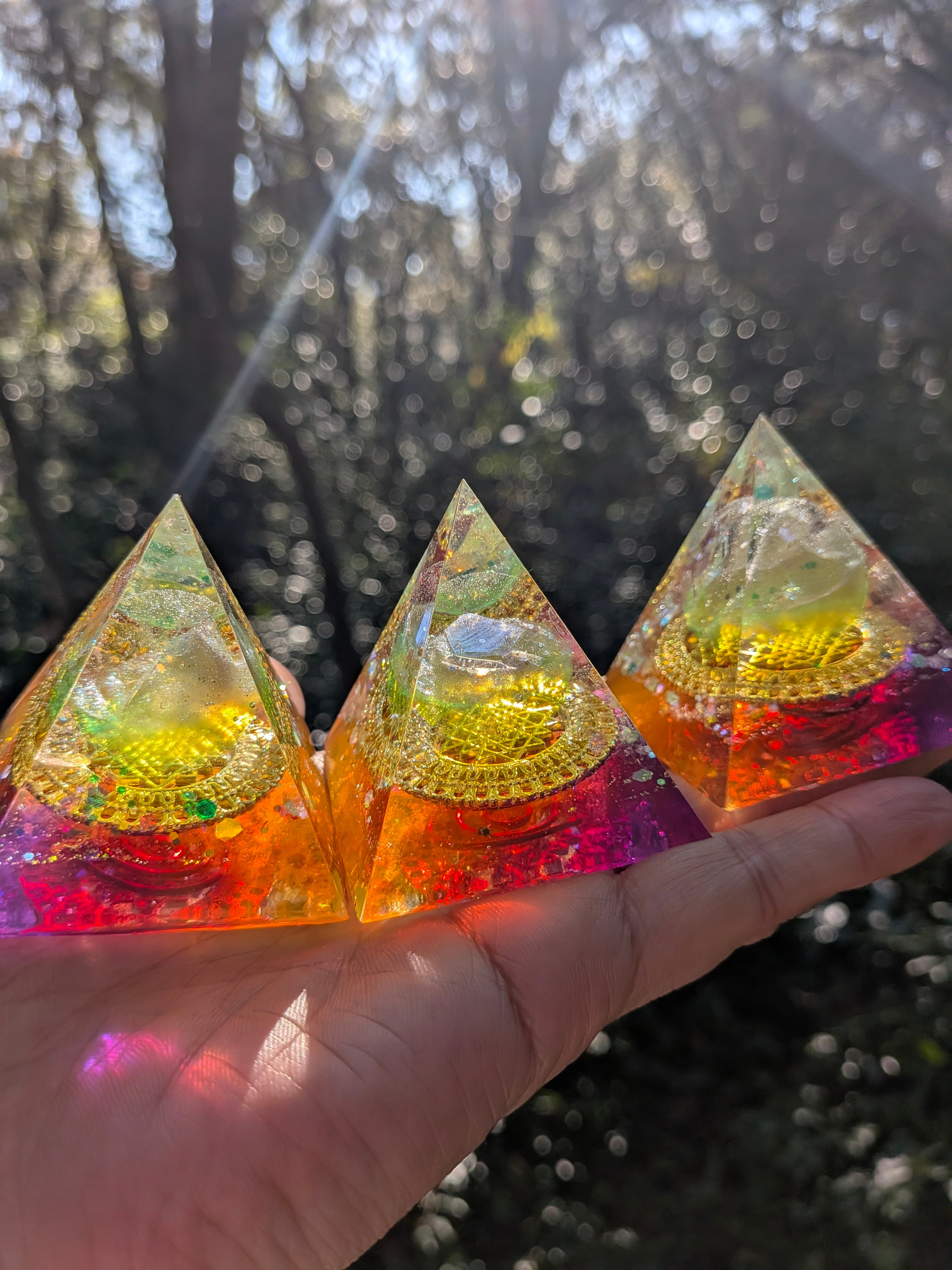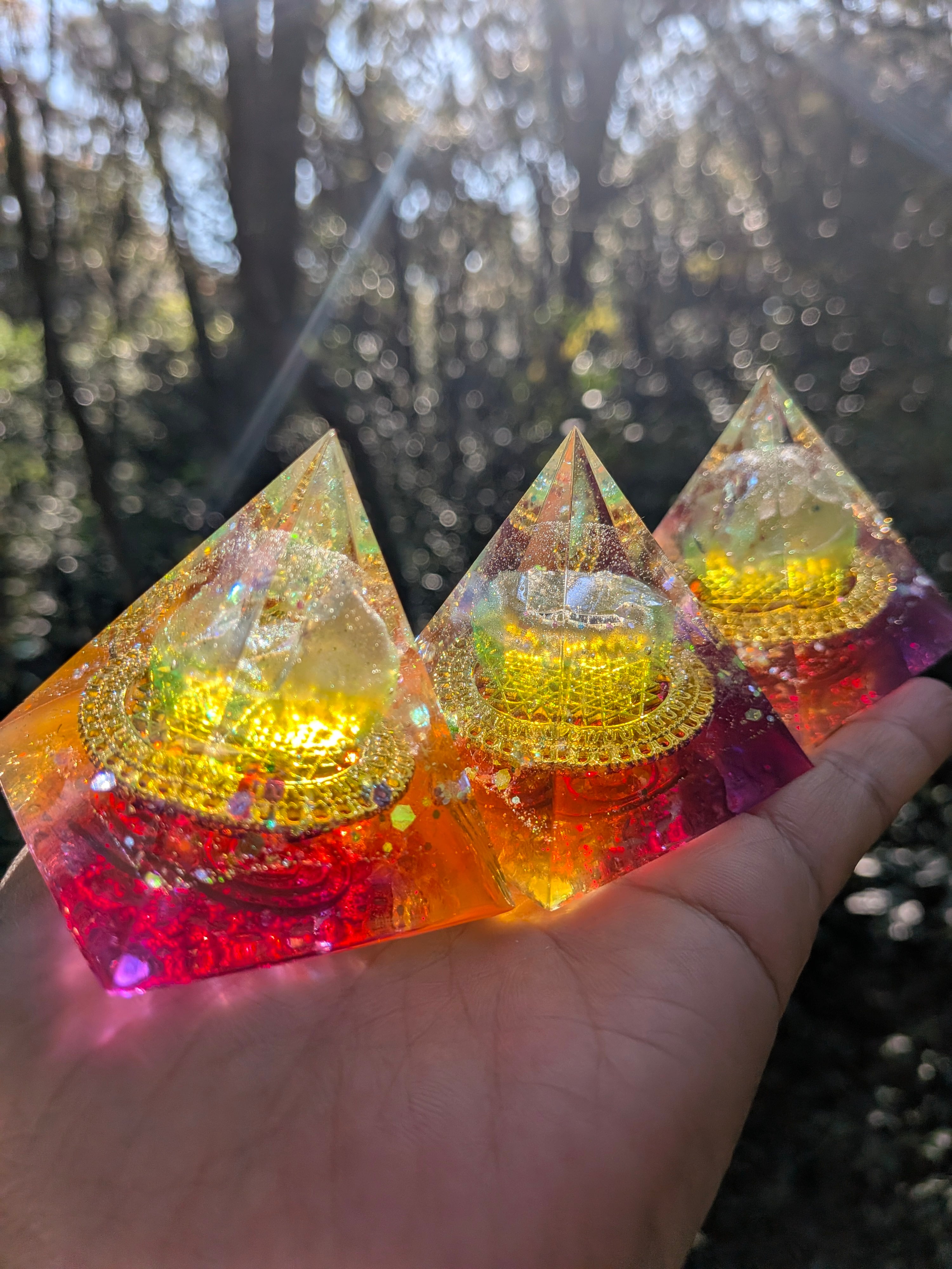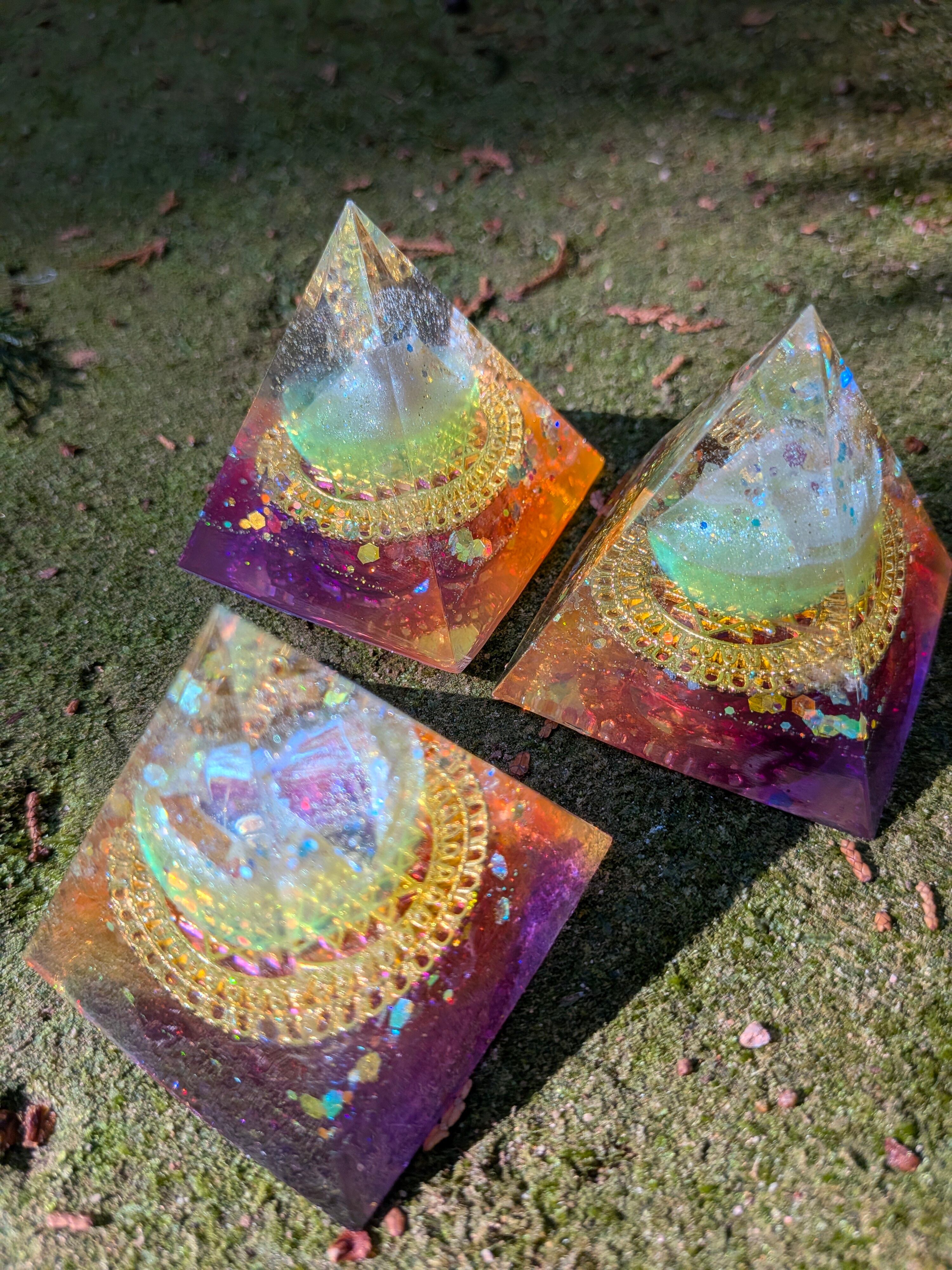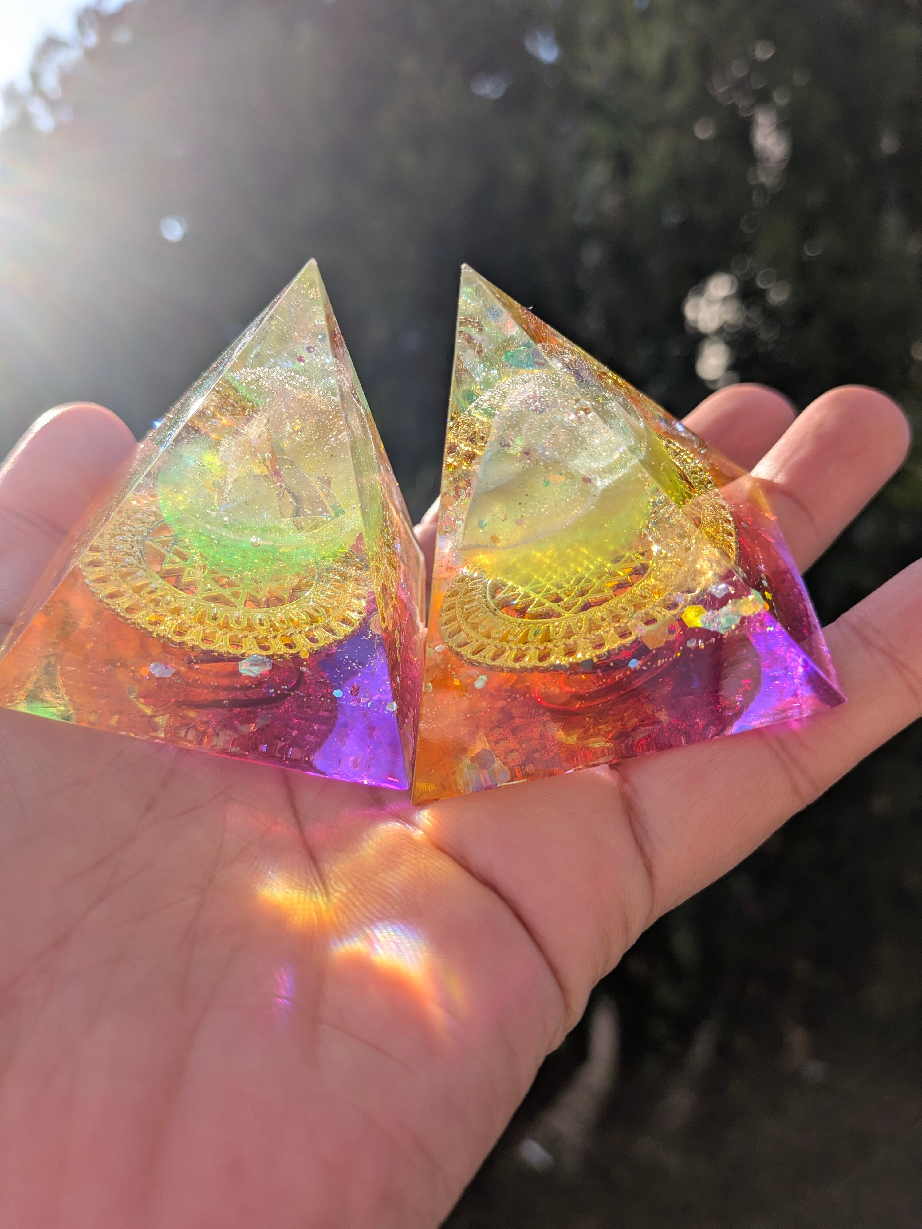 こちらは、あなたの内なる太陽を目覚めさせる、シュリーヤントラ太陽の神殿オルゴナイトです✨