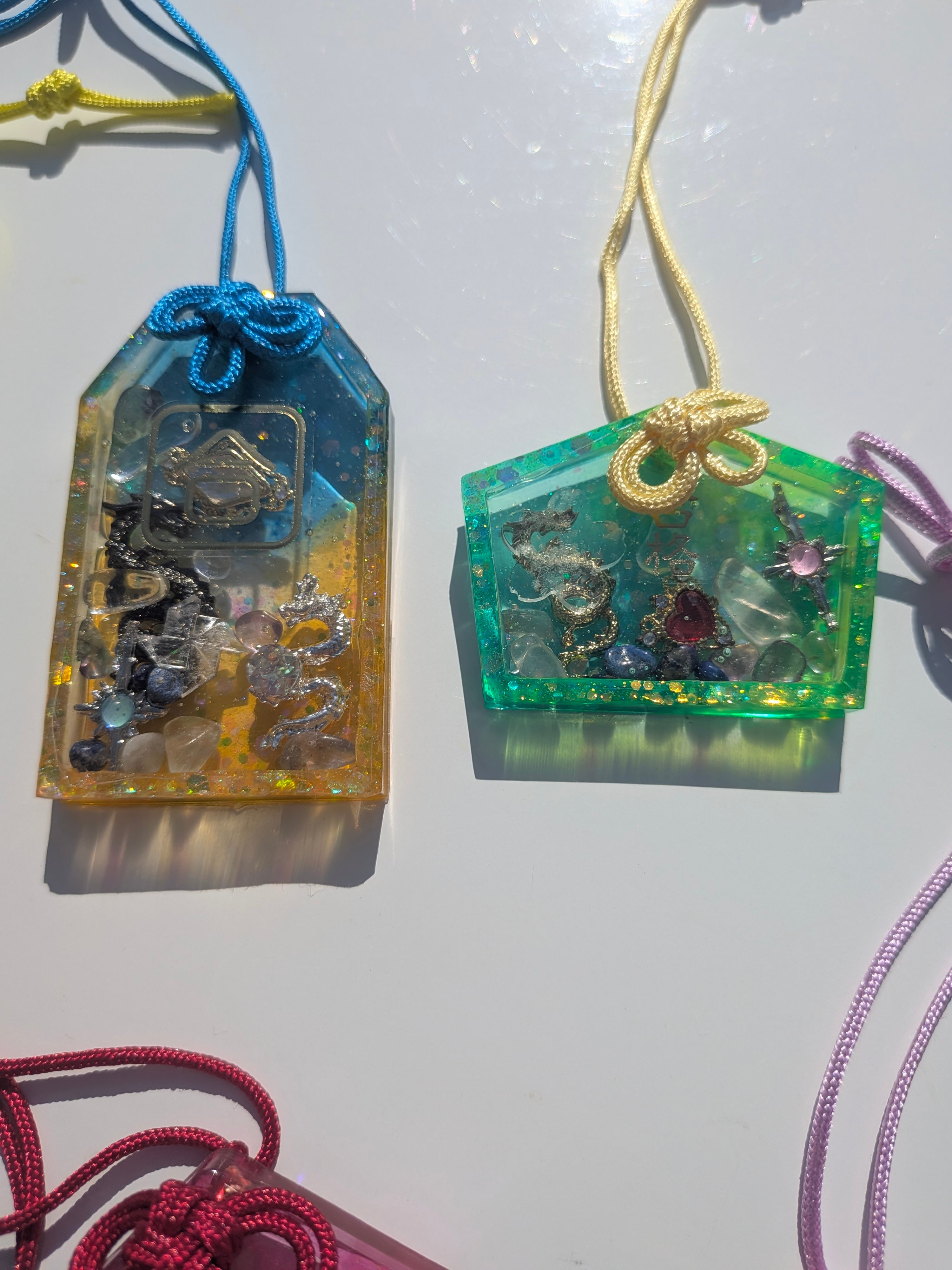中に水晶、高良大社の盛り塩、フローライト、ラピスラズリが入っています。