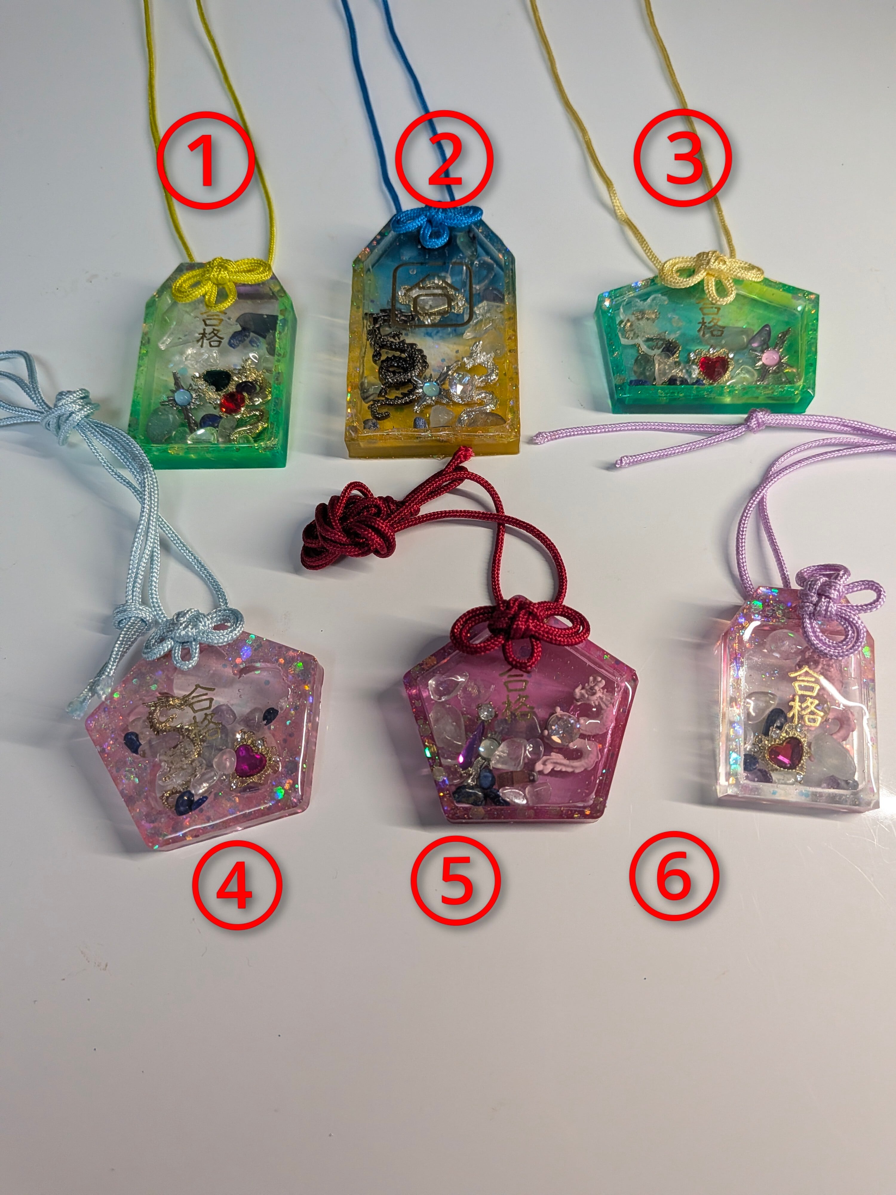 今回①〜⑥まで入っている天然石、お塩は同じです✨盛り塩の形や、チャームが異なります!