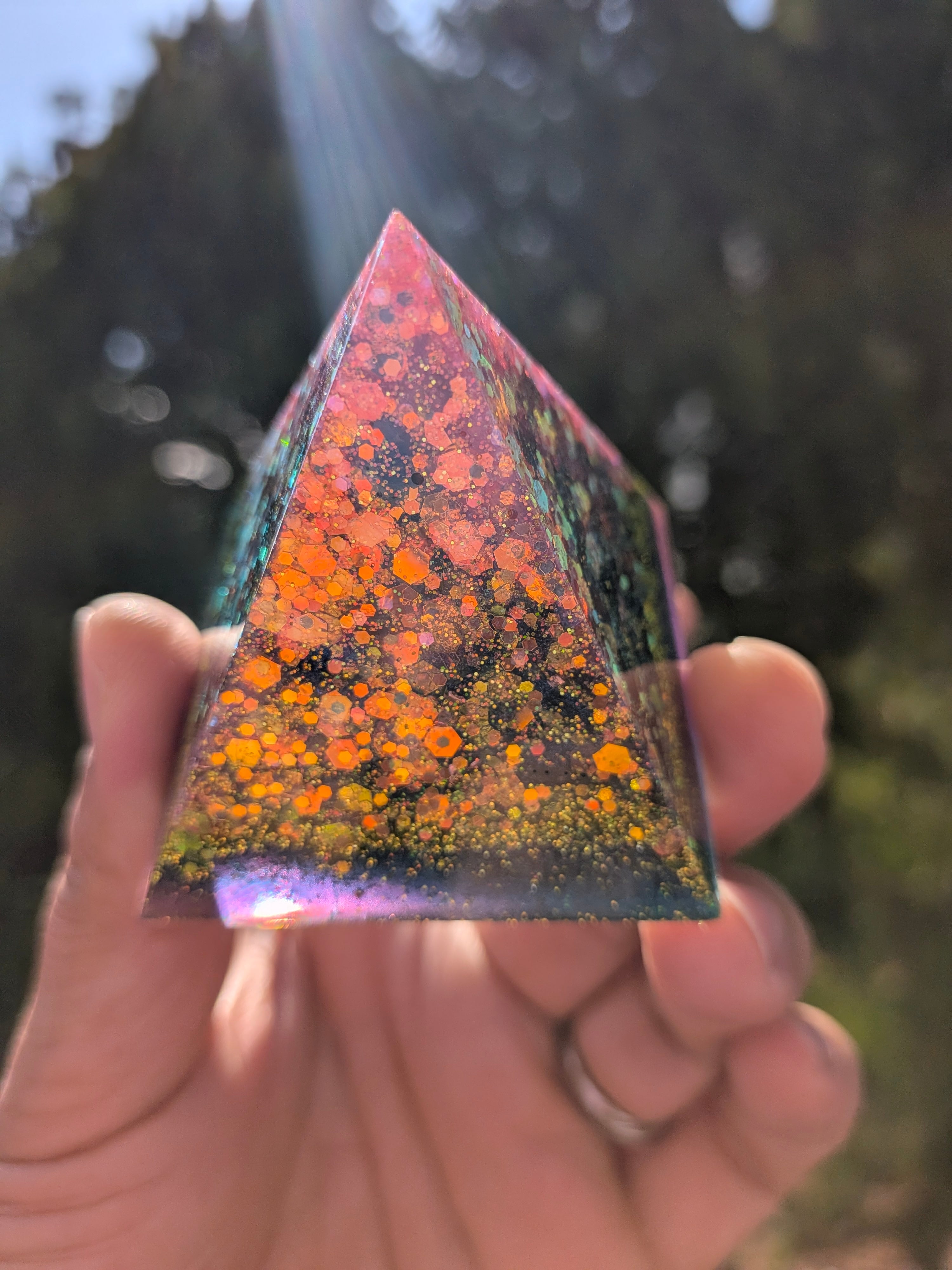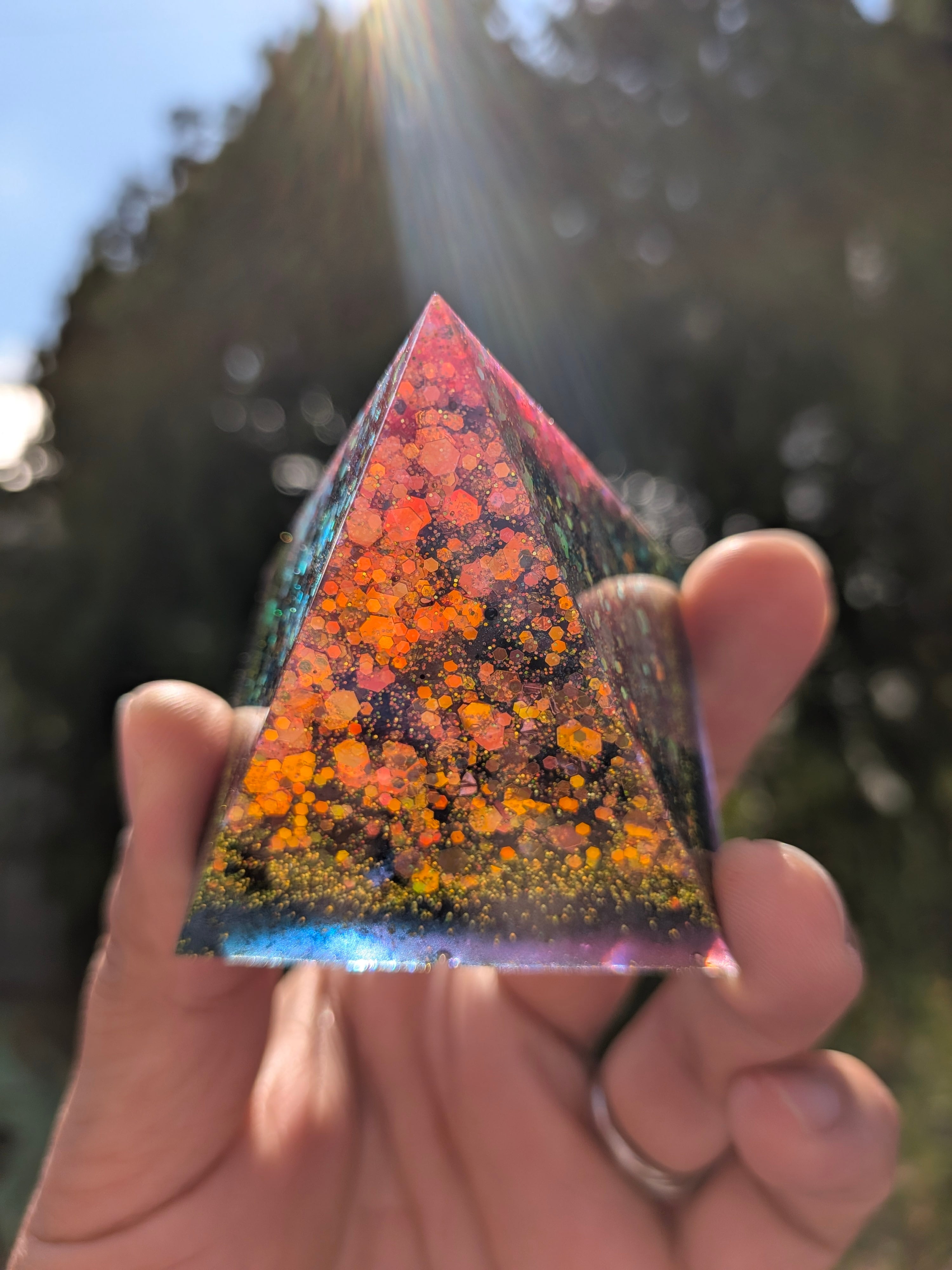 こちらは、モリオンをぎっしり封入した強力な守護の核オルゴナイトです。