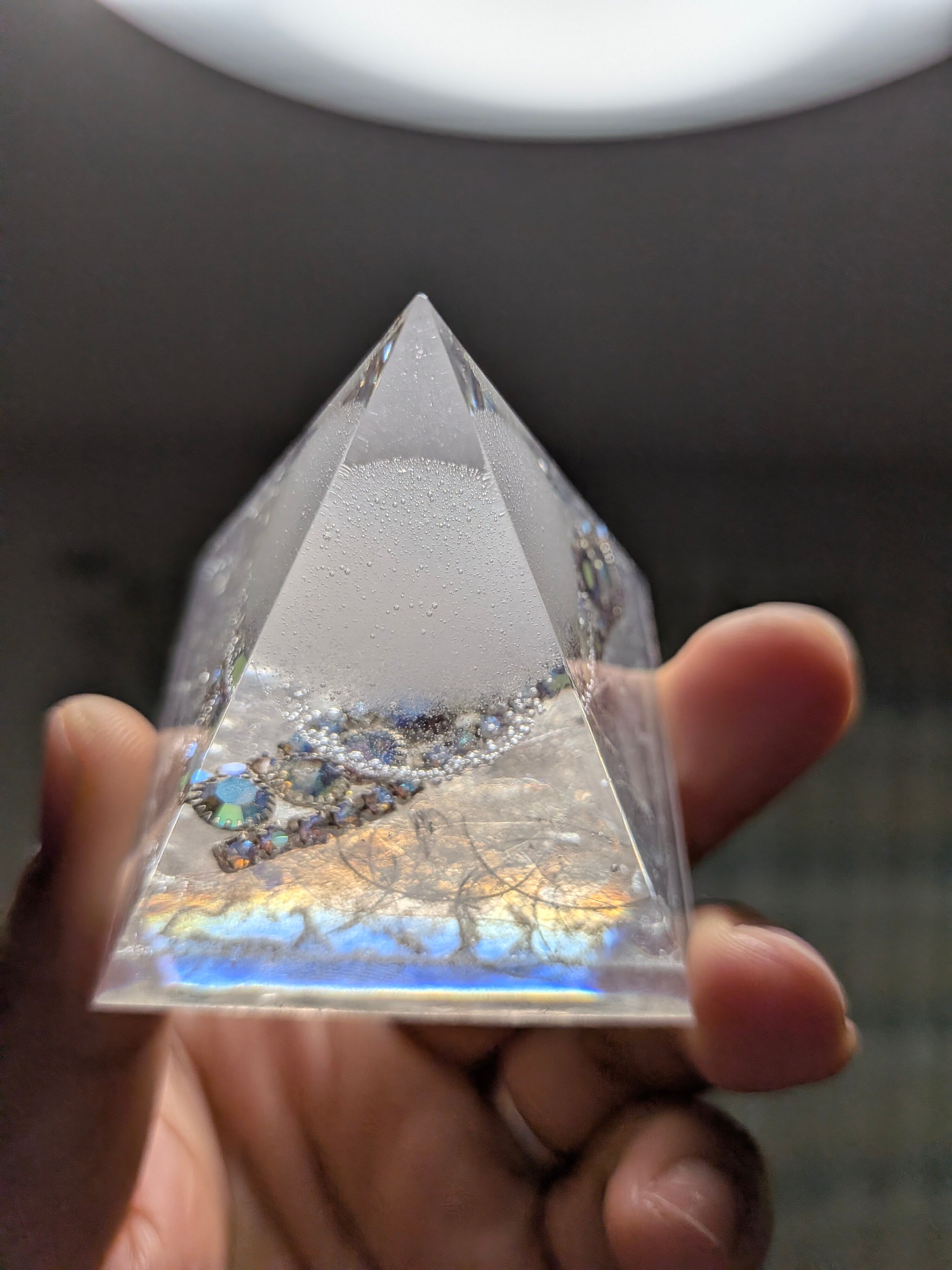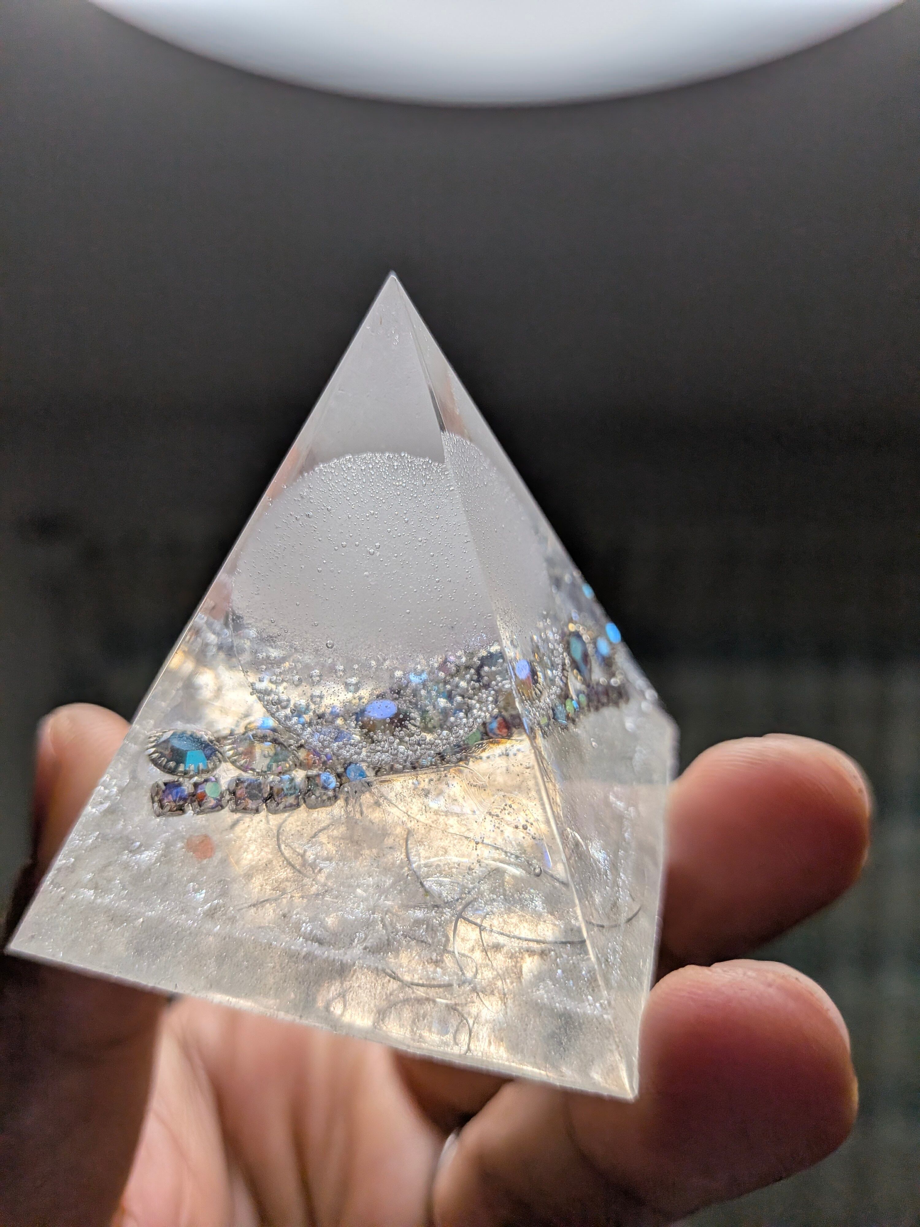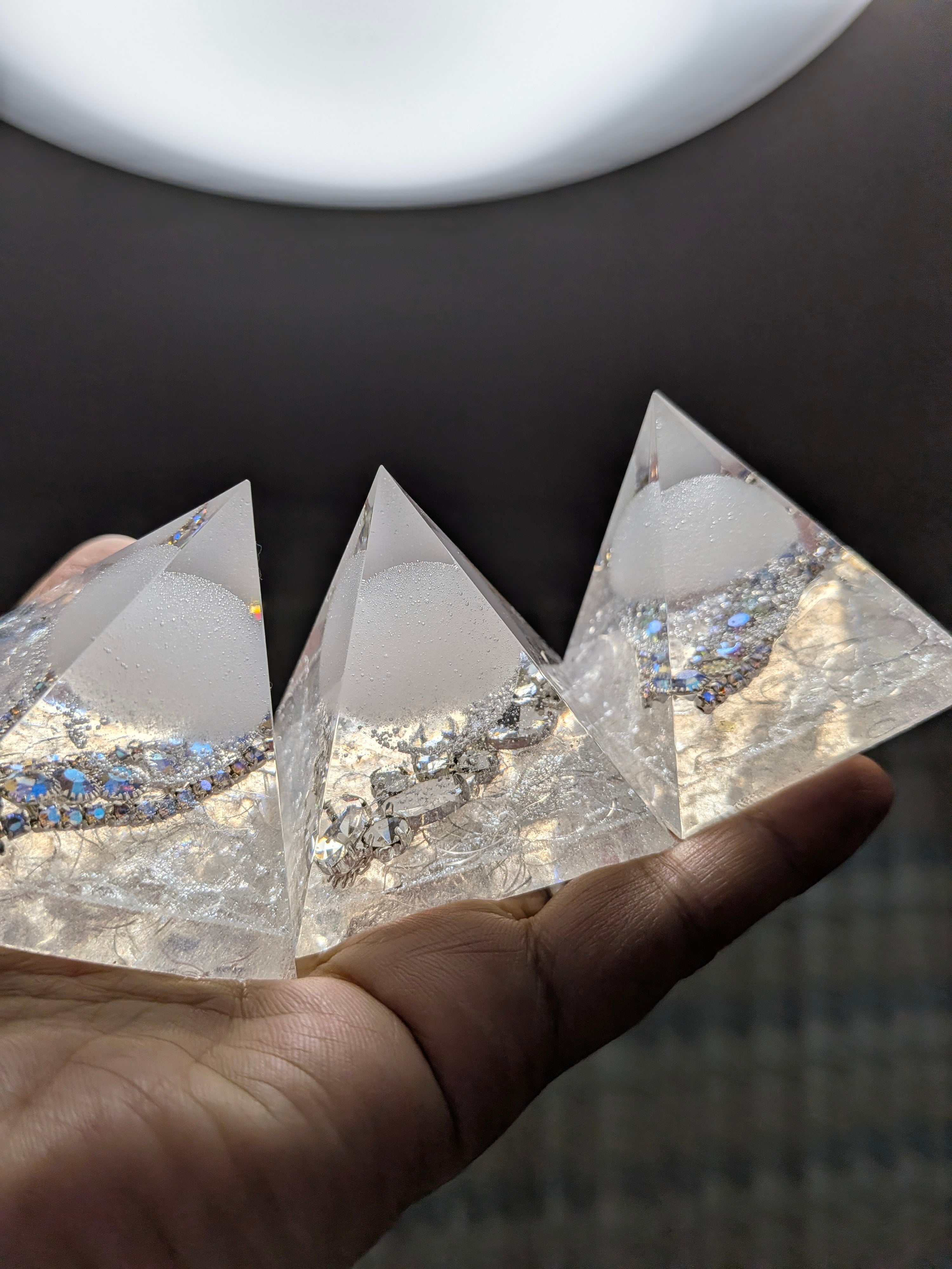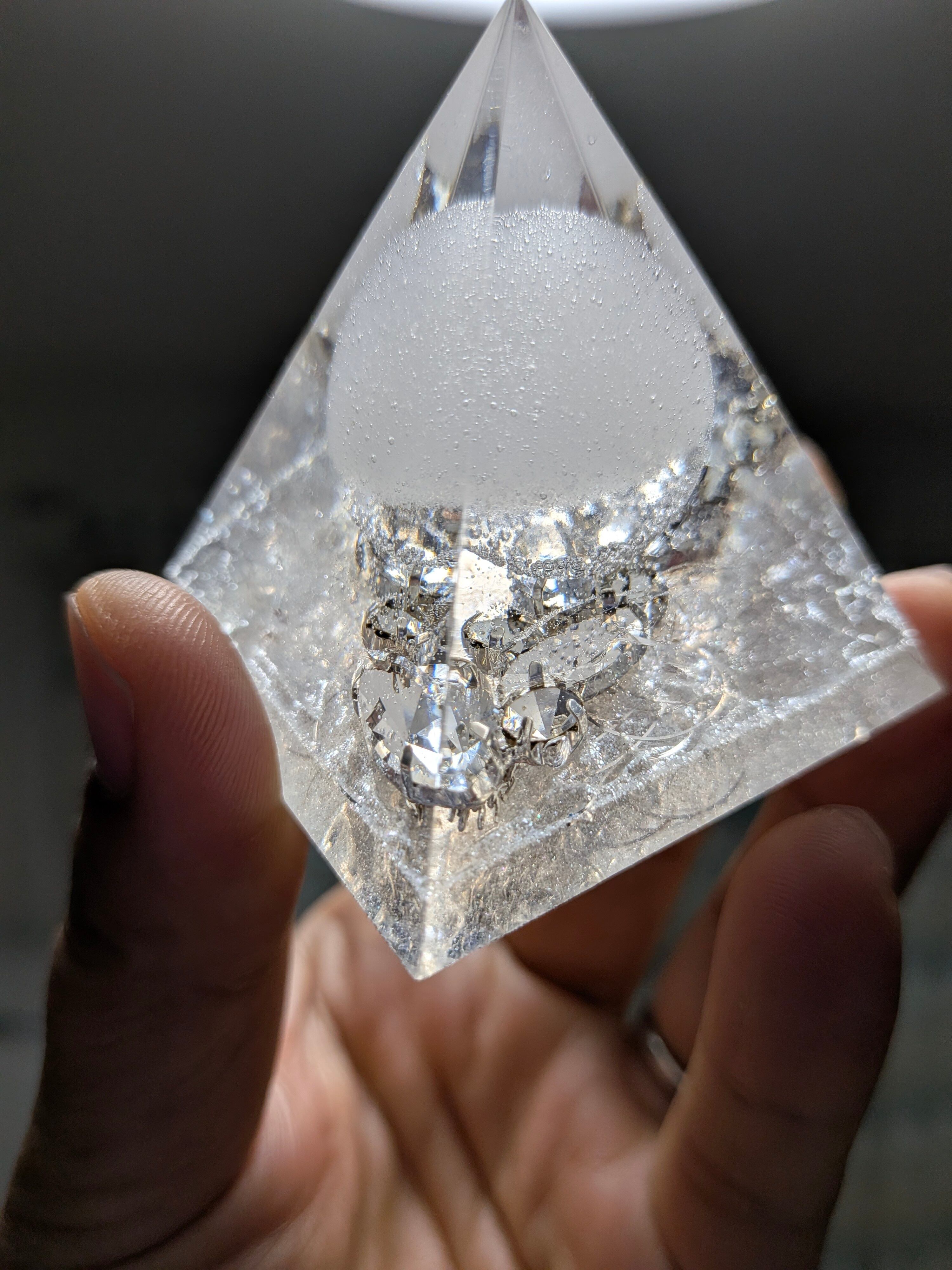 白く澄んだ光を宿したこの盛り塩オルゴナイト。