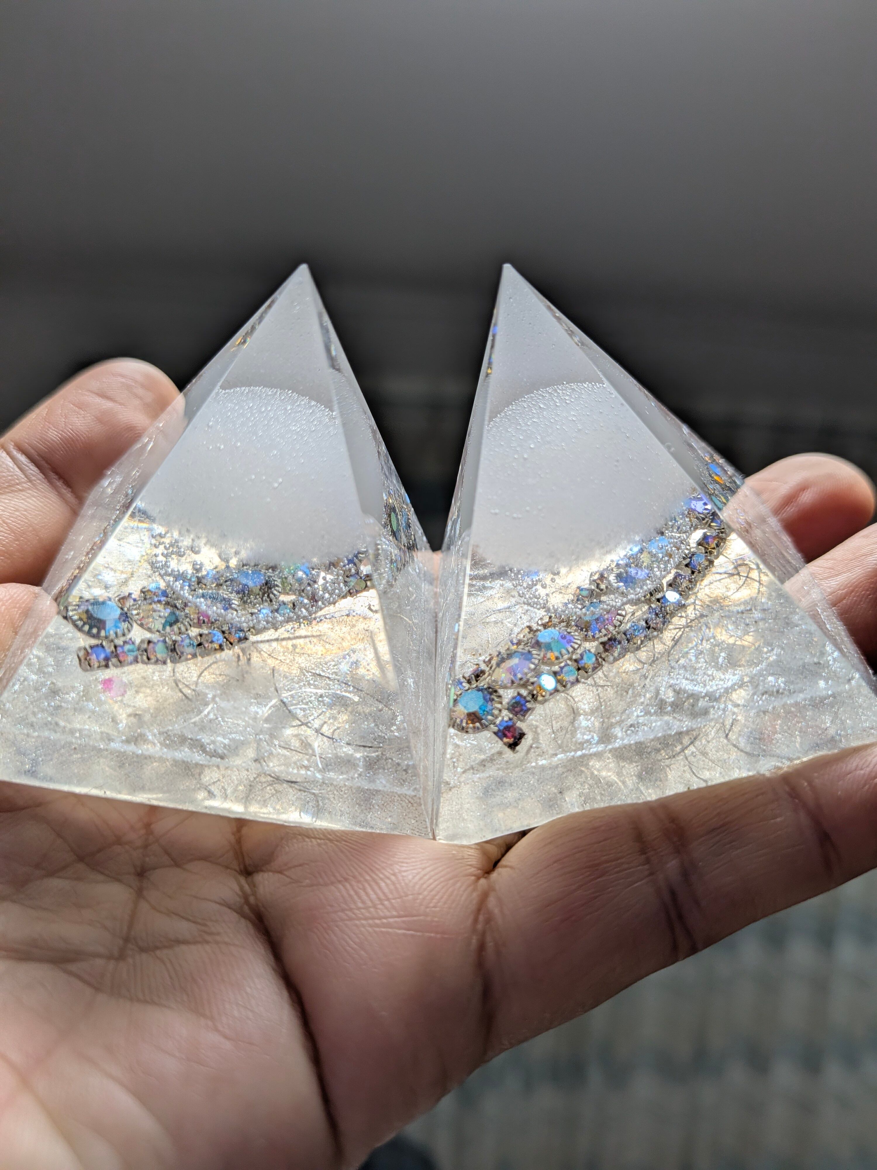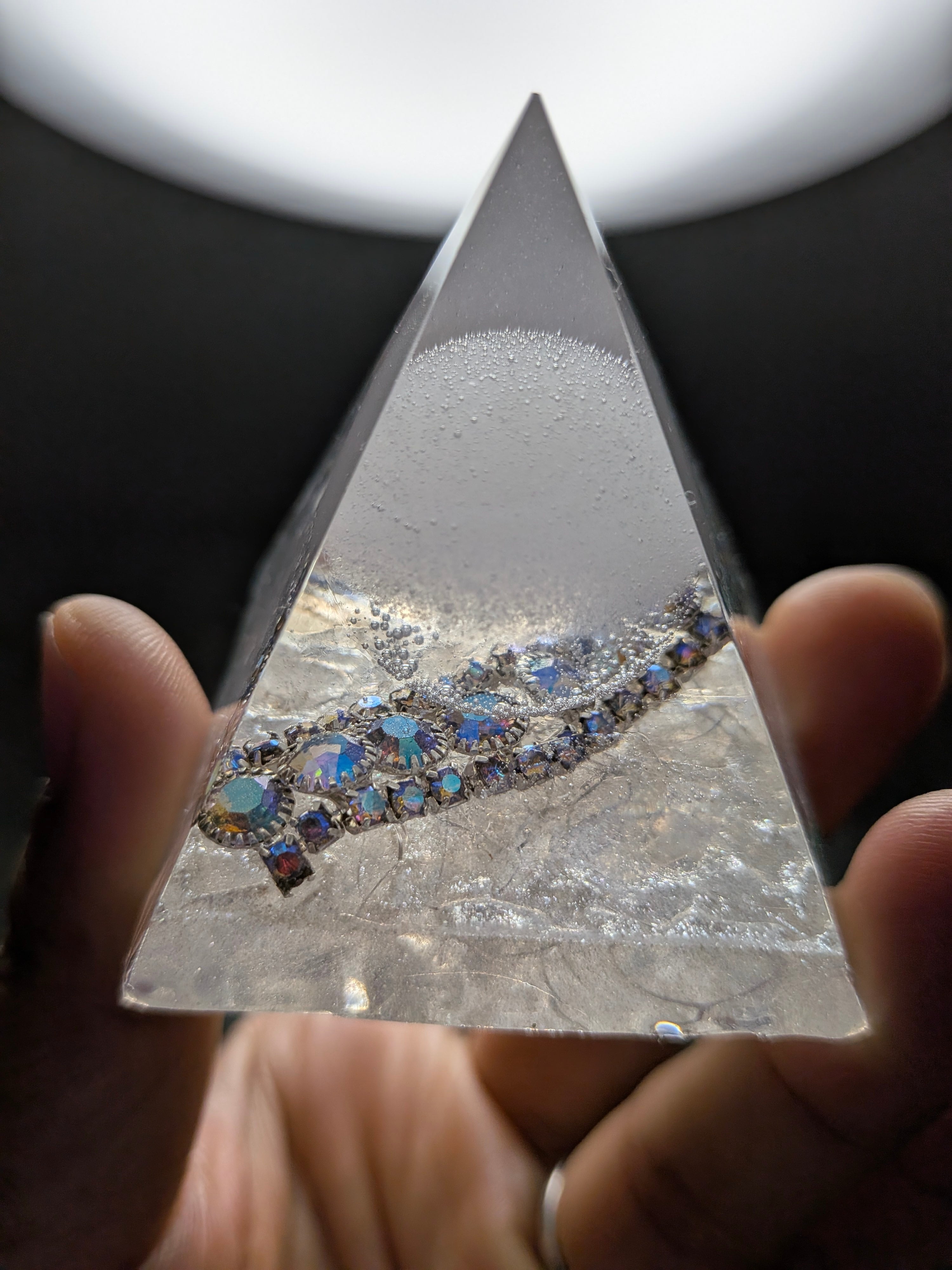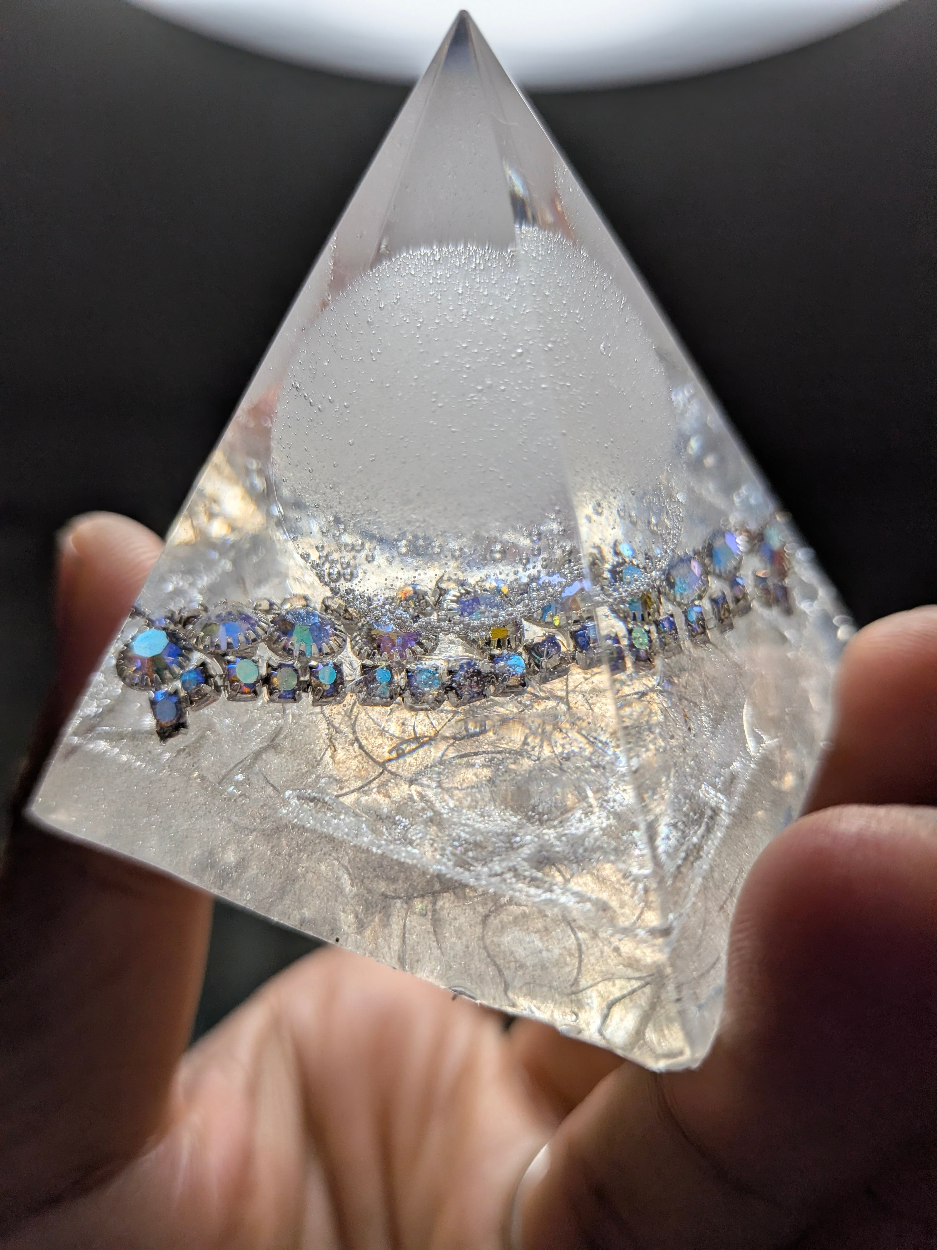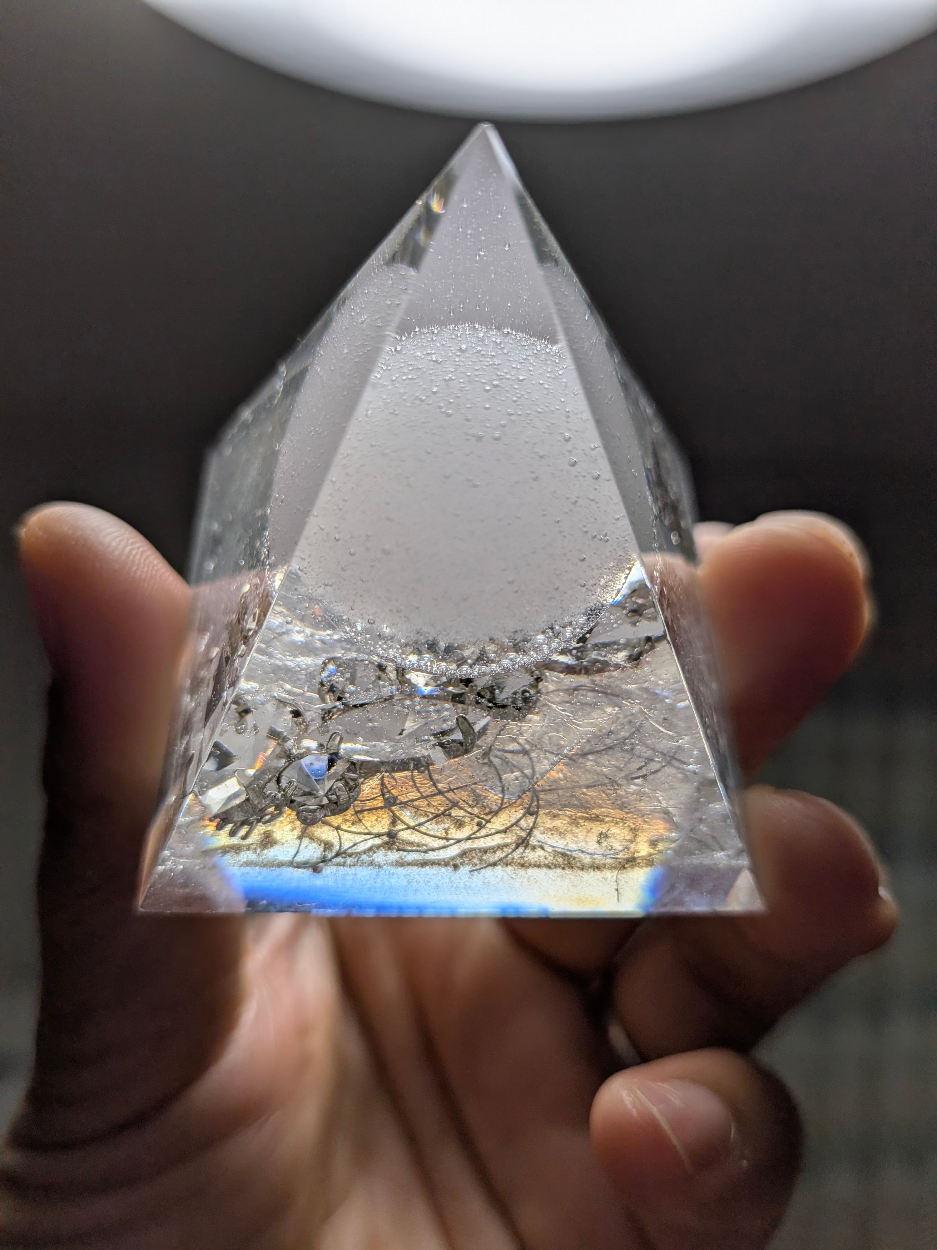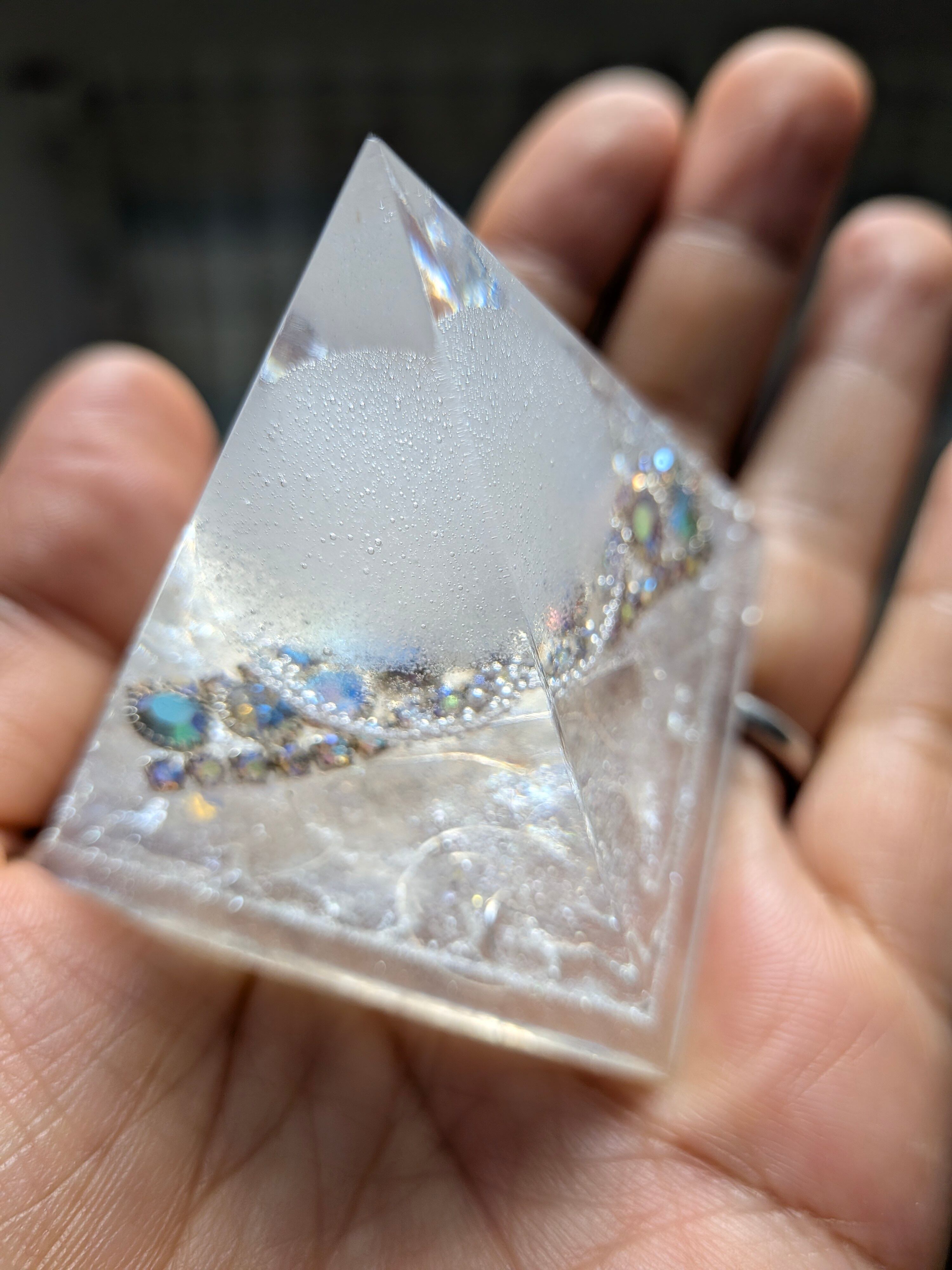 白く澄んだ光を宿したこの盛り塩オルゴナイト。