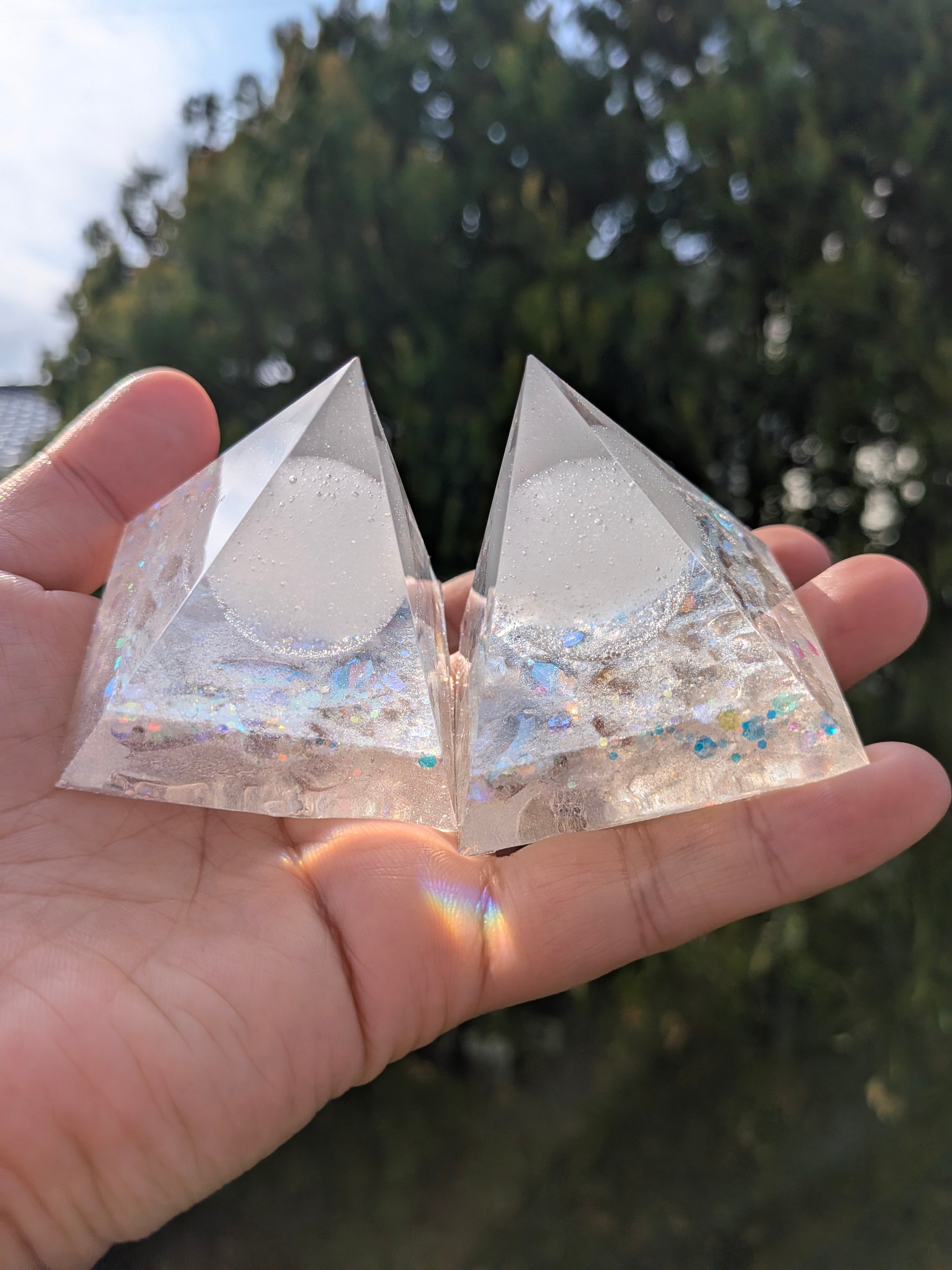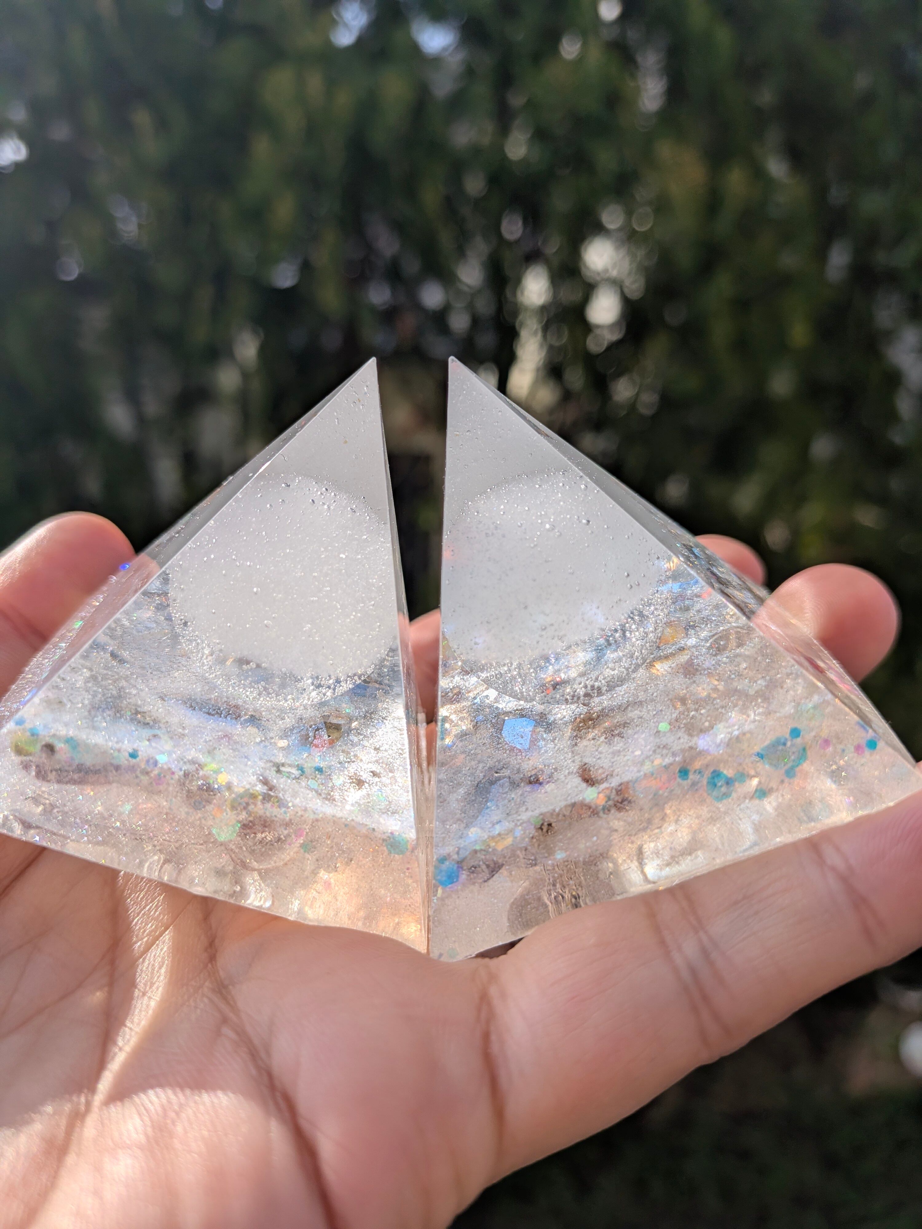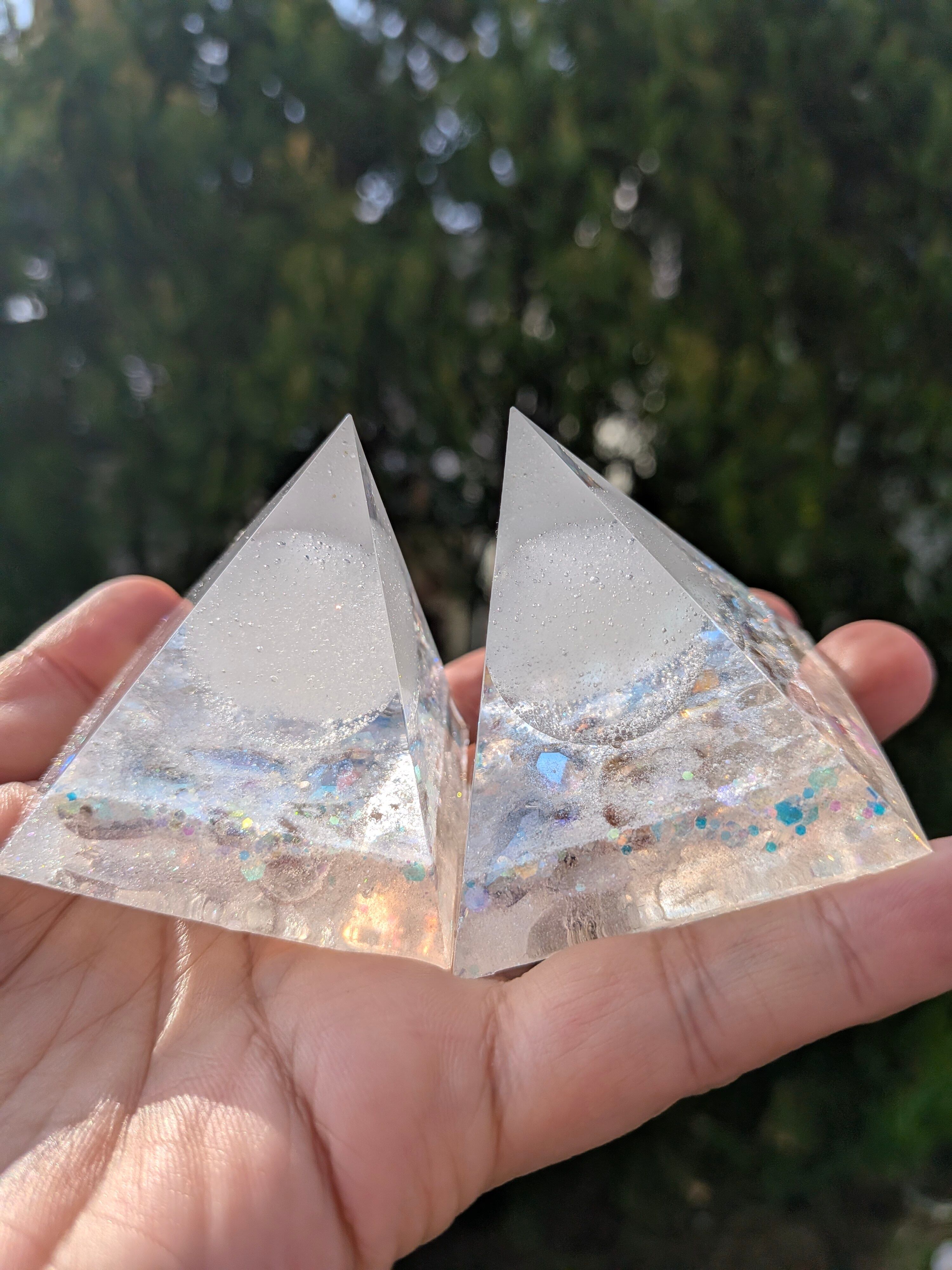 白く澄んだ光を宿したこの盛り塩オルゴナイト。