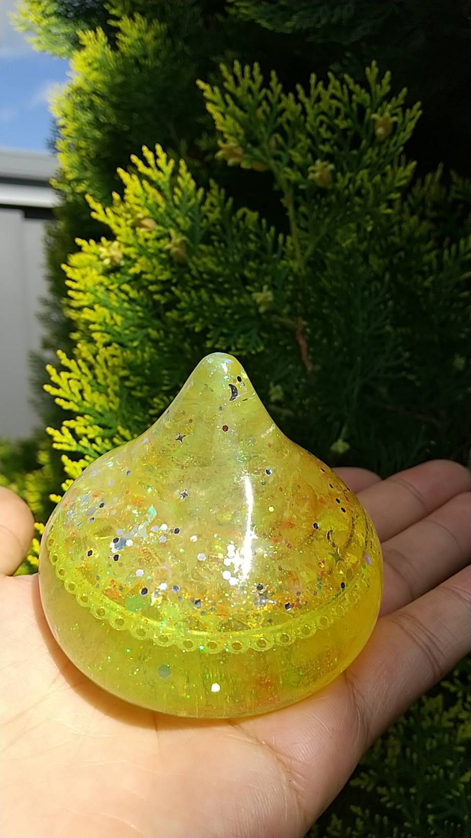 黄金に光輝く艶ありのオルゴナイトです。