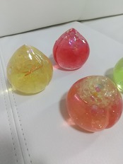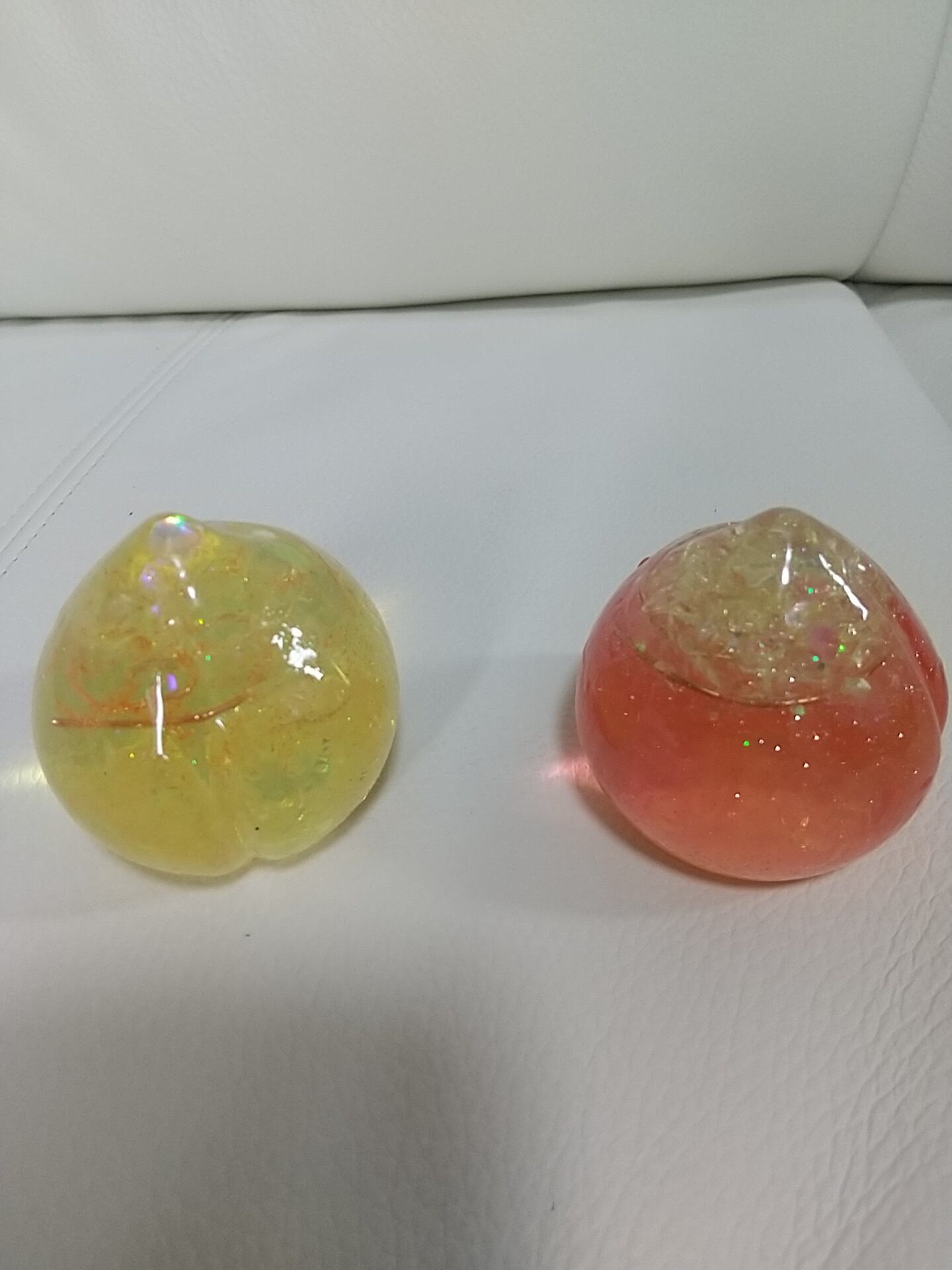 こちらは厄除け桃オルゴナイトもです。みずみずしく、キラキラ輝いています。