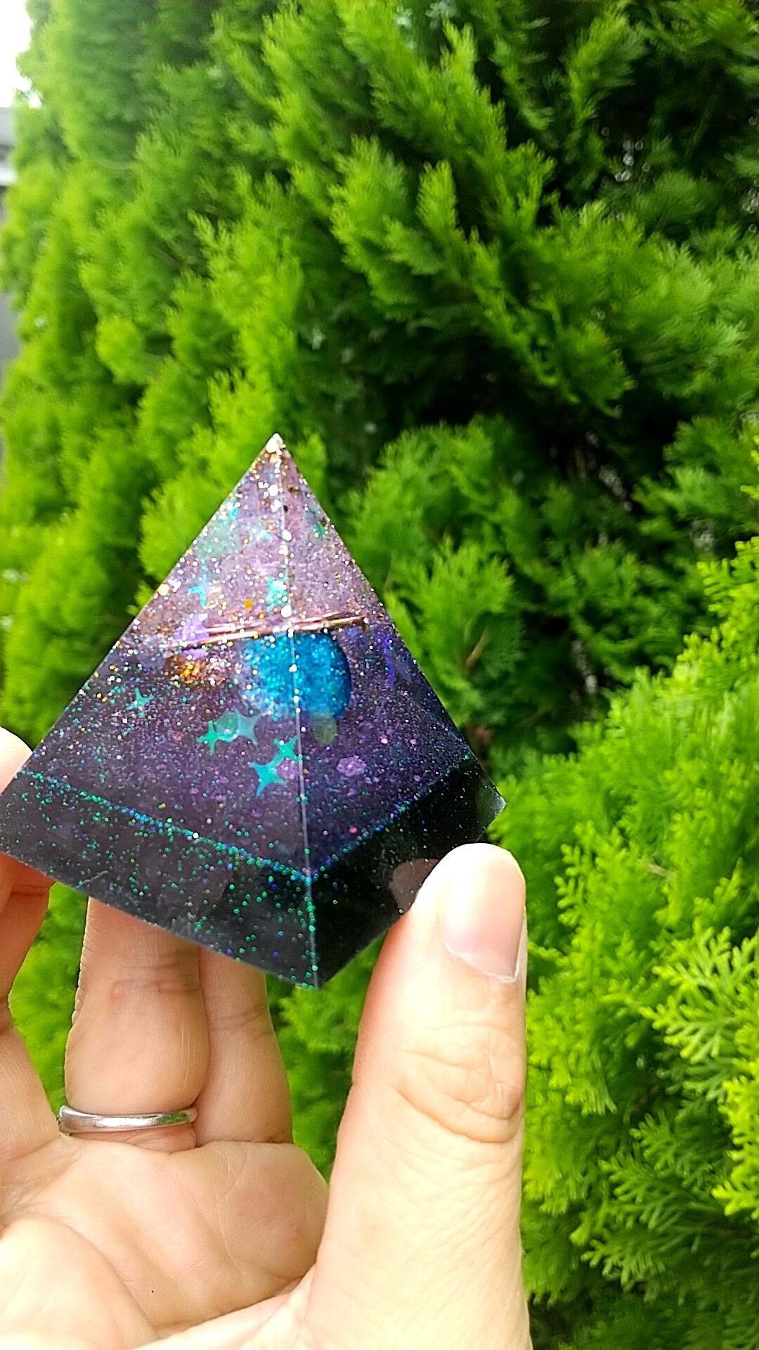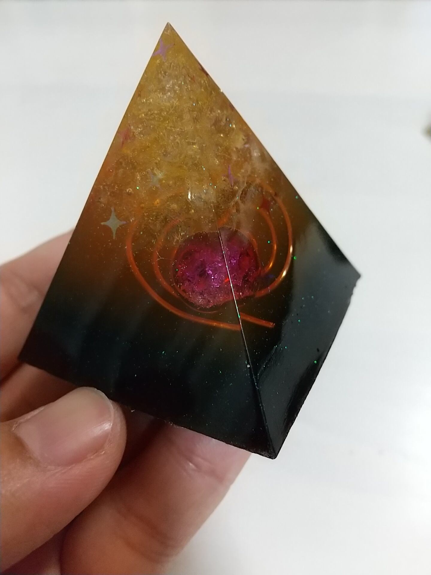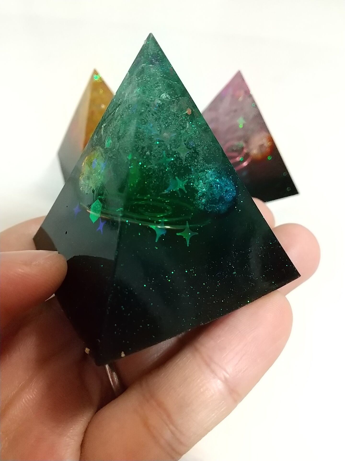 5㎝×5㎝×5㎝のピラミッドオルゴナイトになります。
