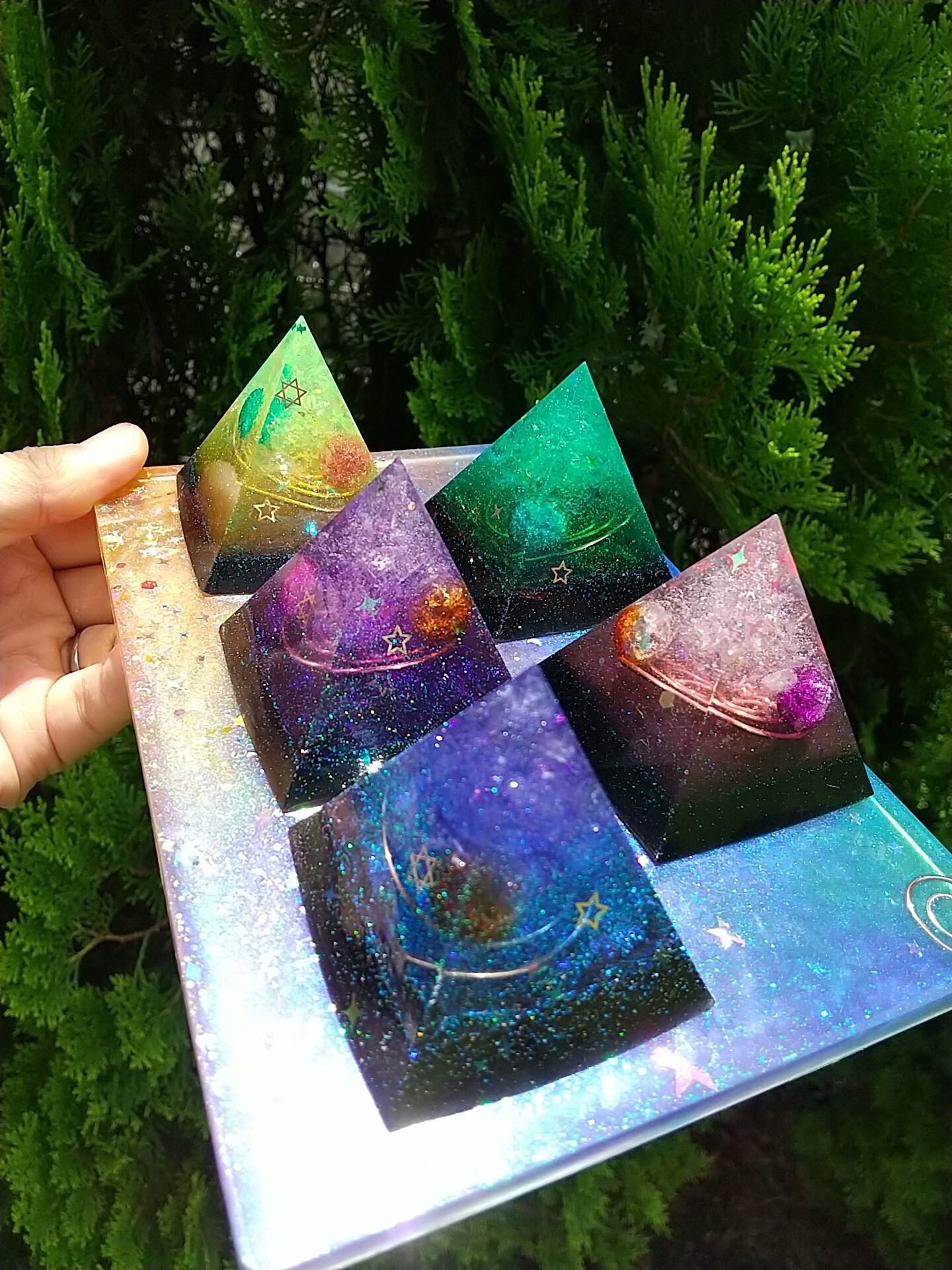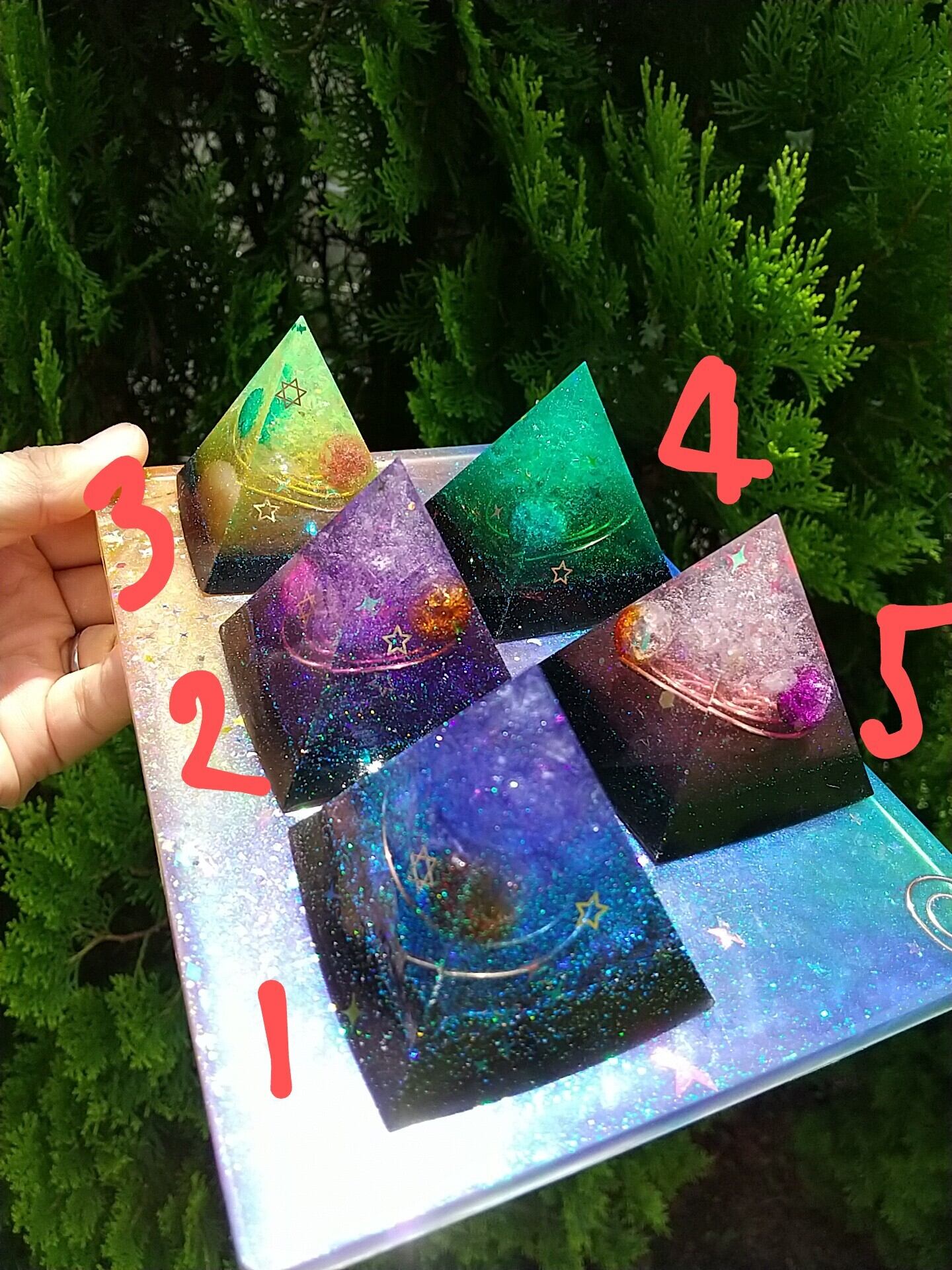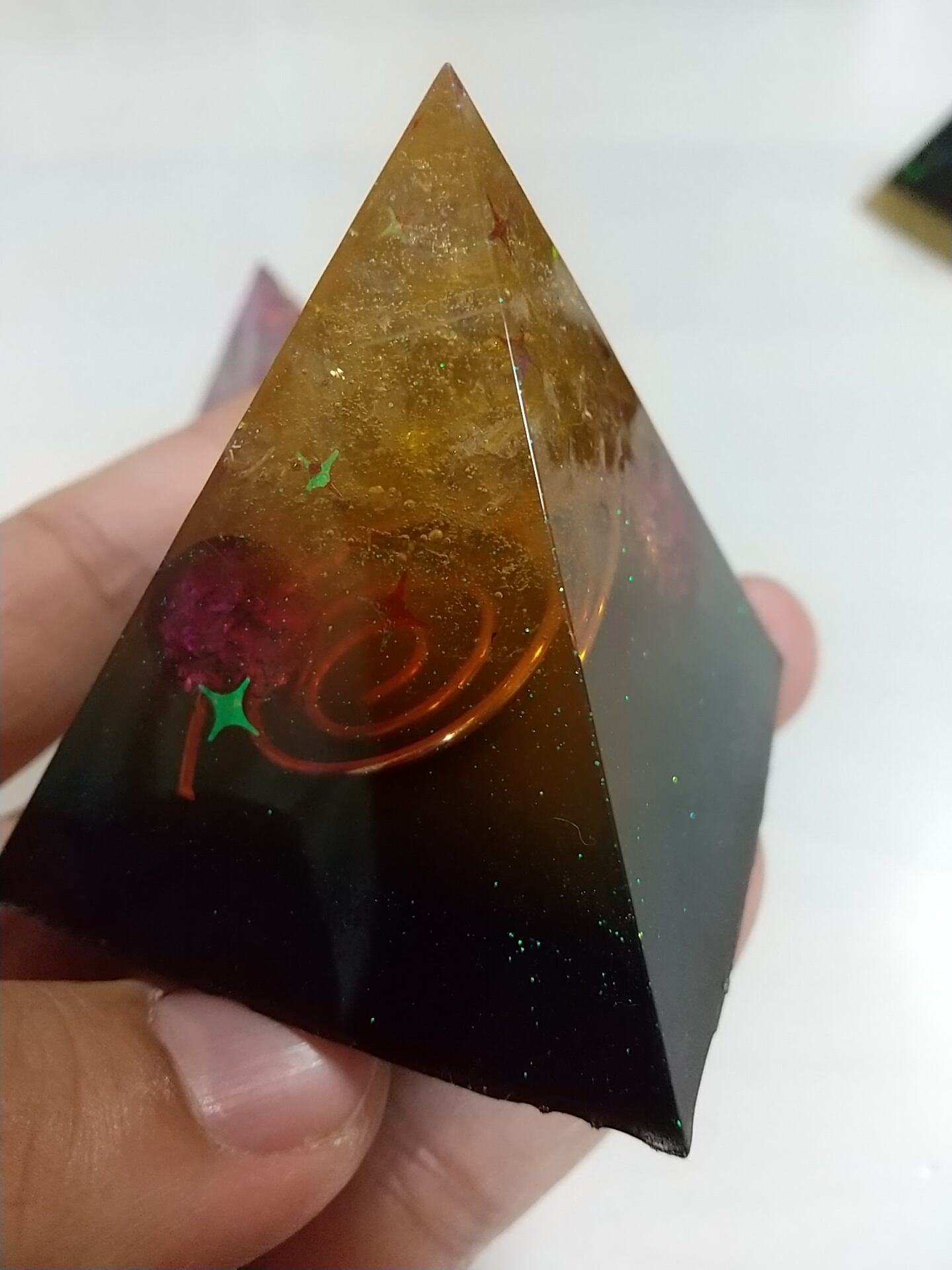5㎝×5㎝×5㎝のピラミッドオルゴナイトになります。
