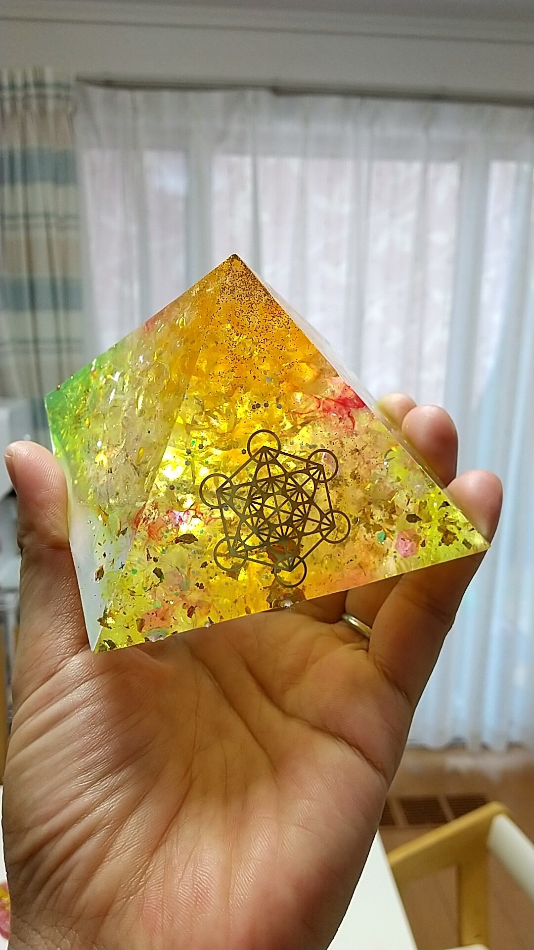 大人気シリーズのメタトロンキューブをあしらったオルゴナイトで、とても活発なエネルギーで、エネルギーを外に発していきます。