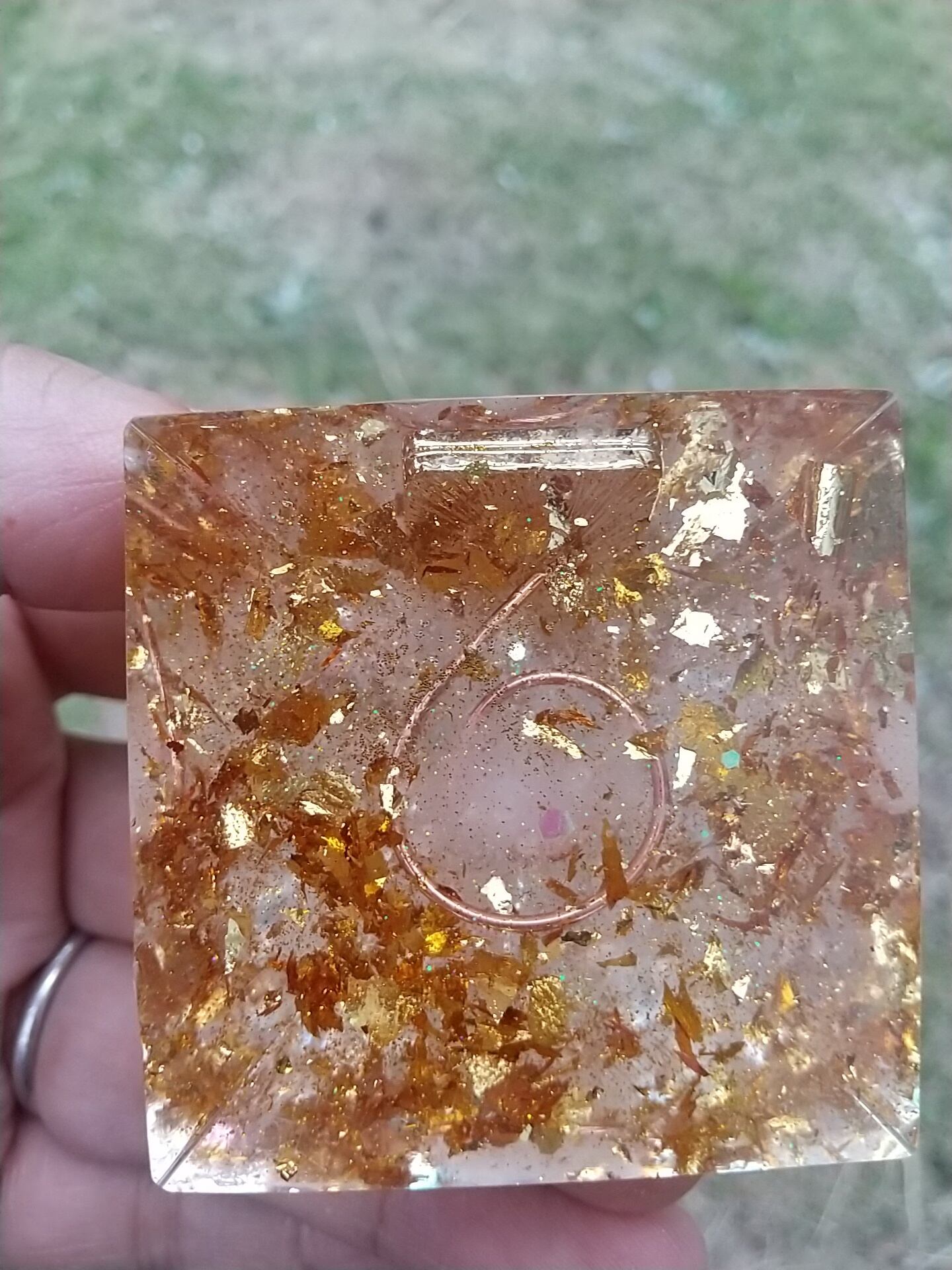 5㎝×5㎝×5㎝のピラミッドオルゴナイトになります。