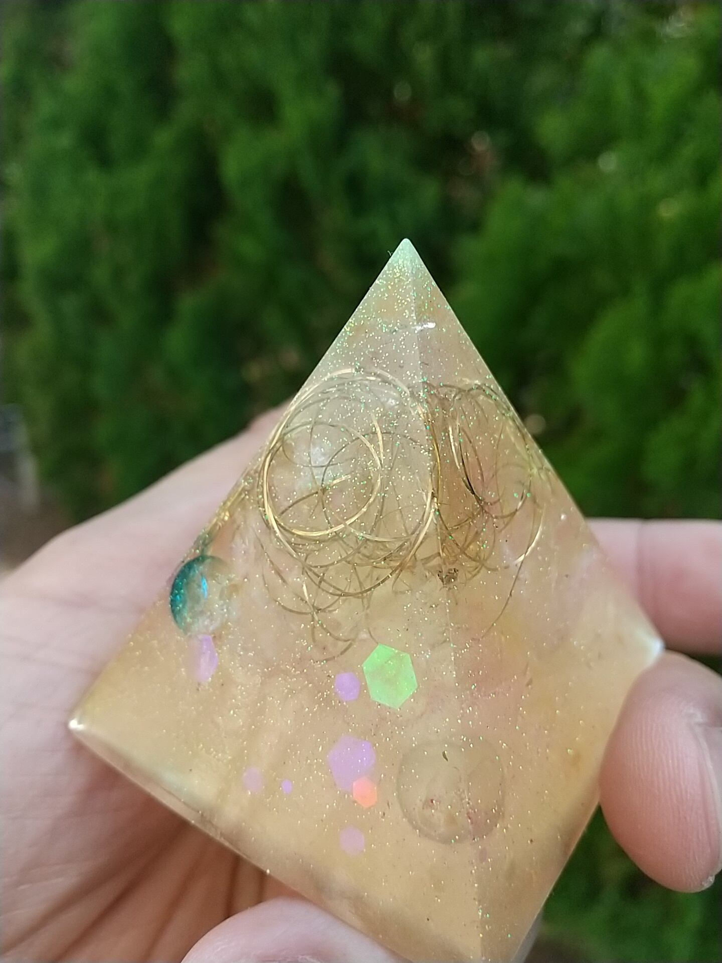 5㎝×5㎝×5㎝のピラミッドオルゴナイトになります。