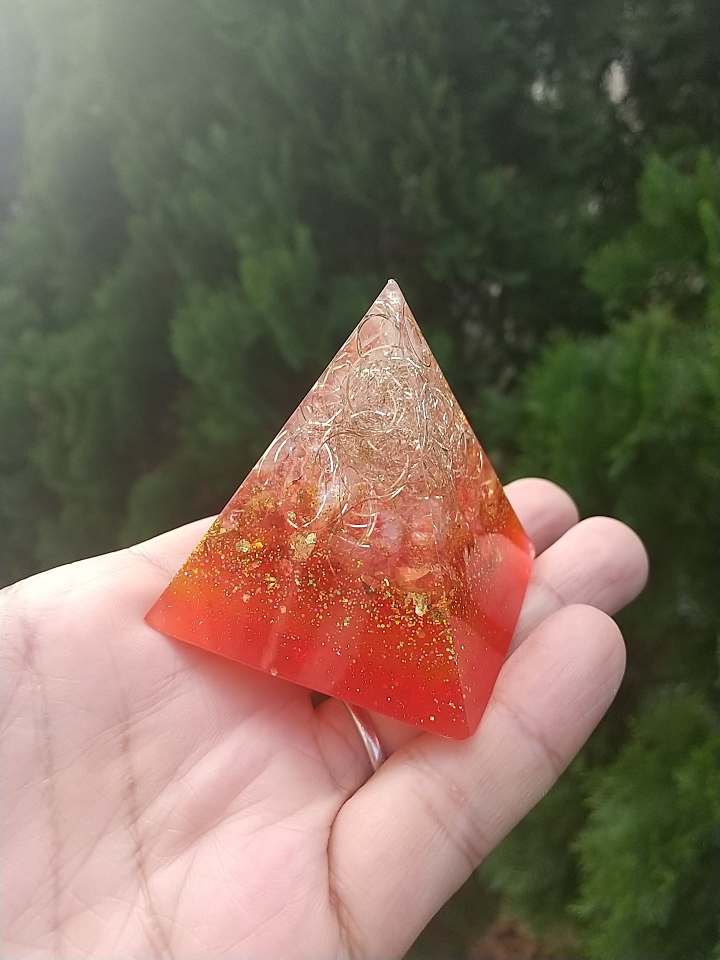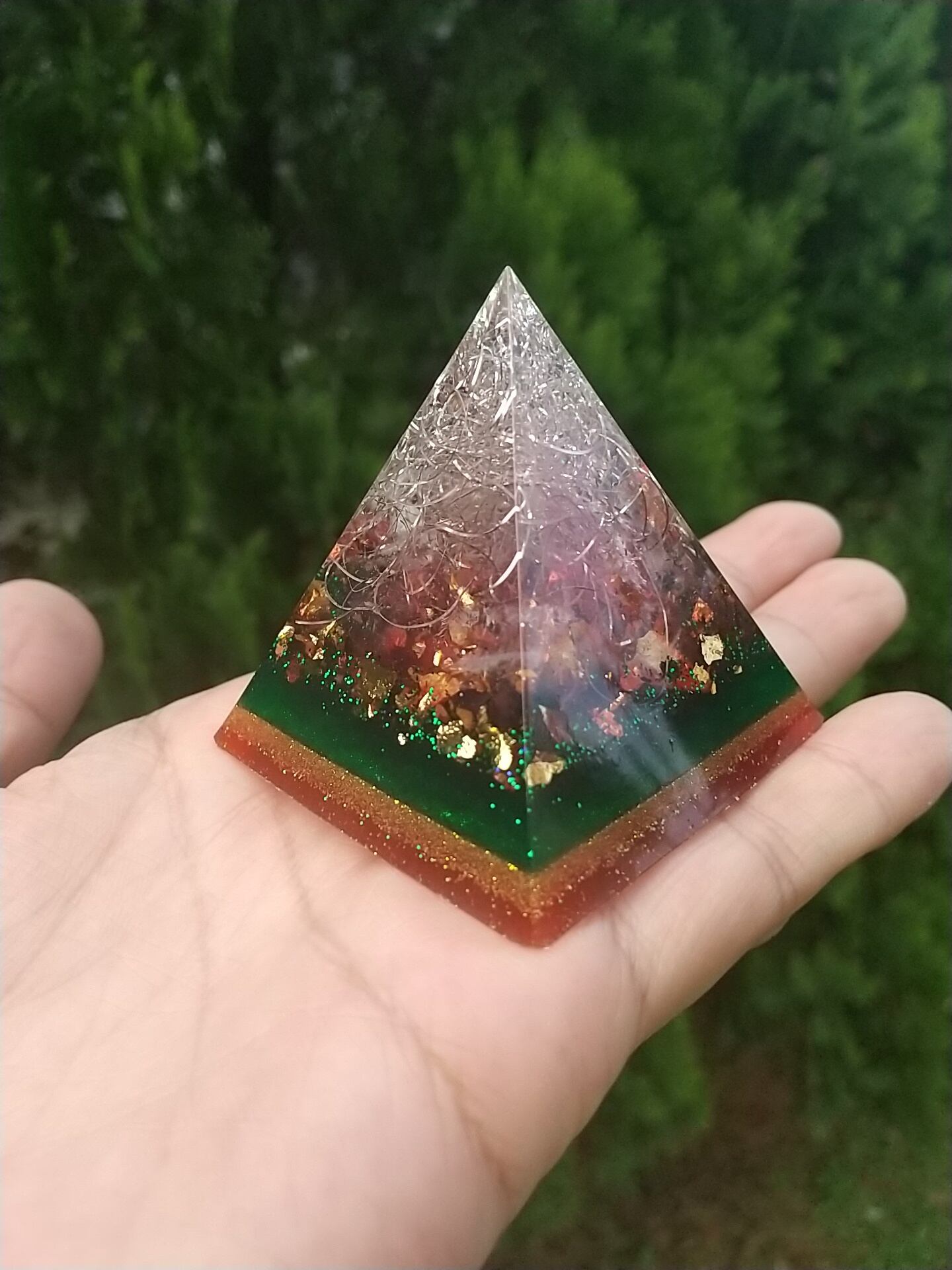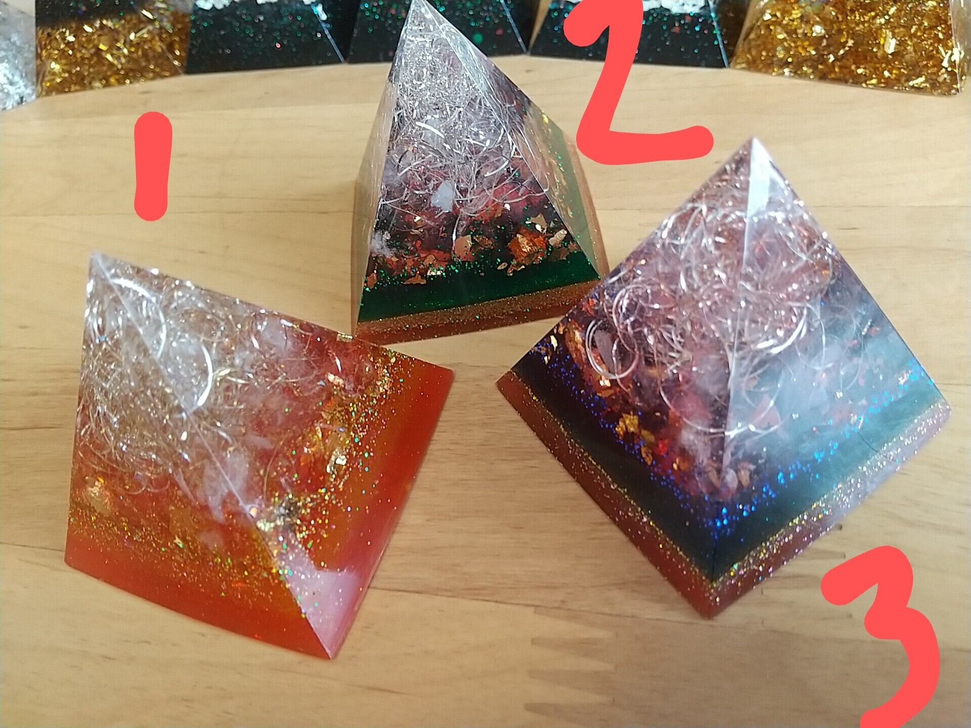 5㎝×5㎝×5㎝のピラミッドオルゴナイトになります。