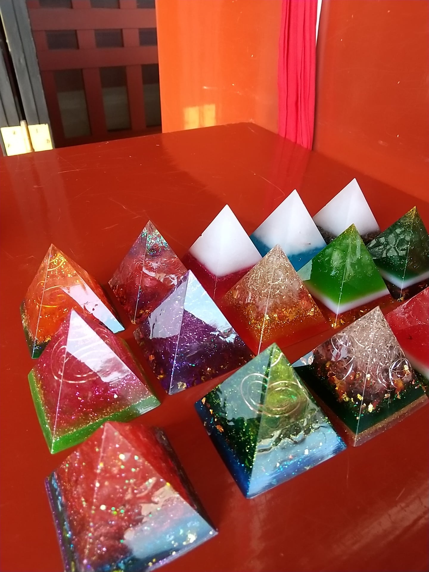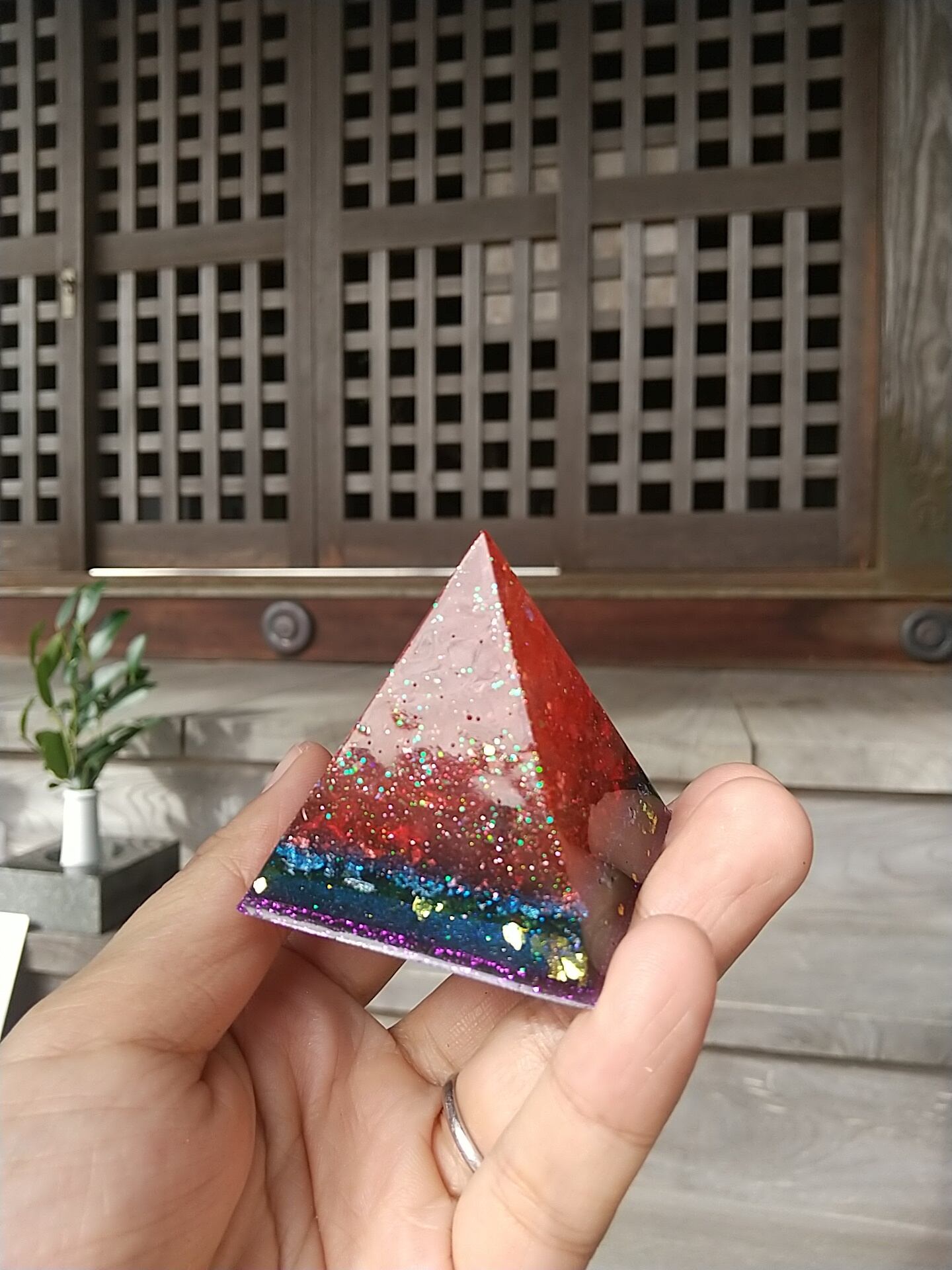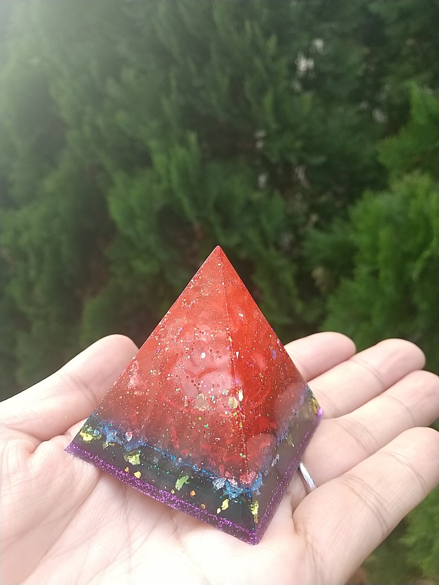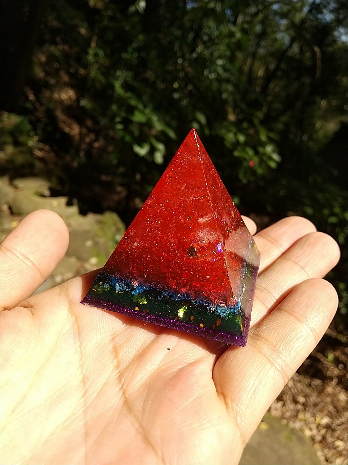 5㎝×5㎝×5㎝のピラミッドオルゴナイトになります。