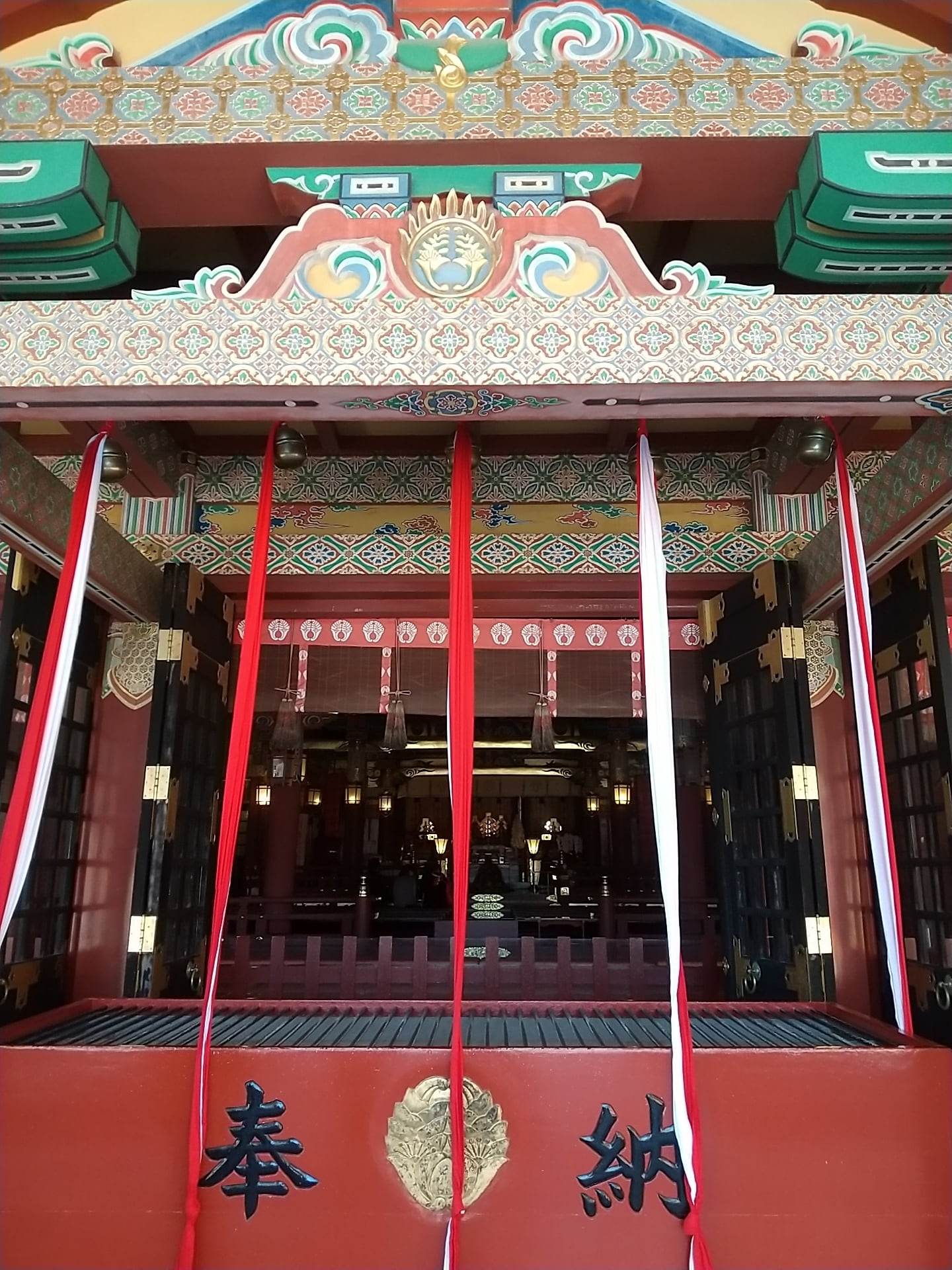 御本殿、御神楽殿、樓門等総漆塗極彩色の宏壮華麗な偉容は、鎮西日光と称され、観光倉稲魂大神(ウガノミタマノオオカミ)一般に稲荷大神と呼称され、衣食住を司り生活全般の守護神として尊崇されておられます。