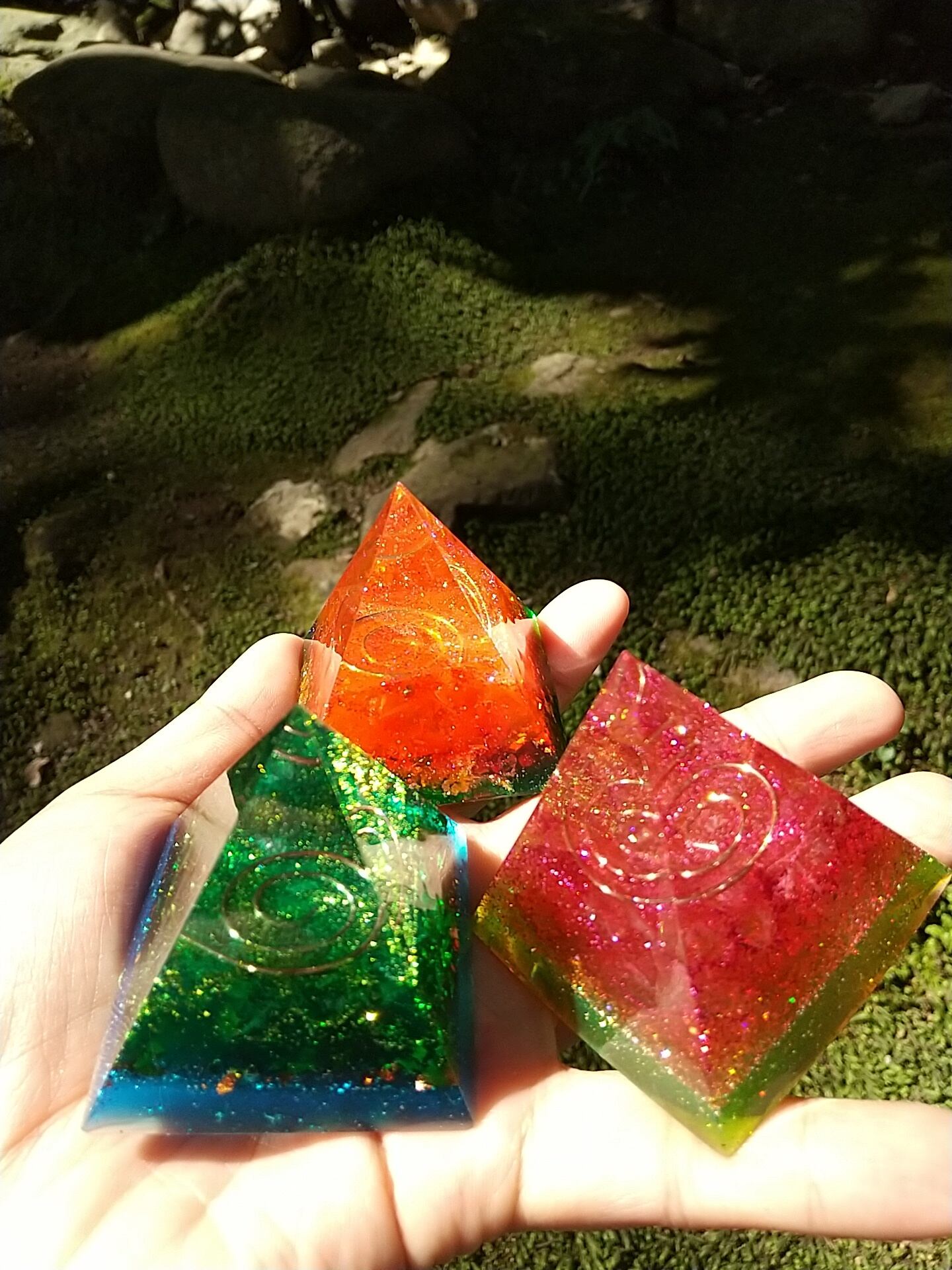 5㎝×5㎝×5㎝のピラミッドオルゴナイトになります。