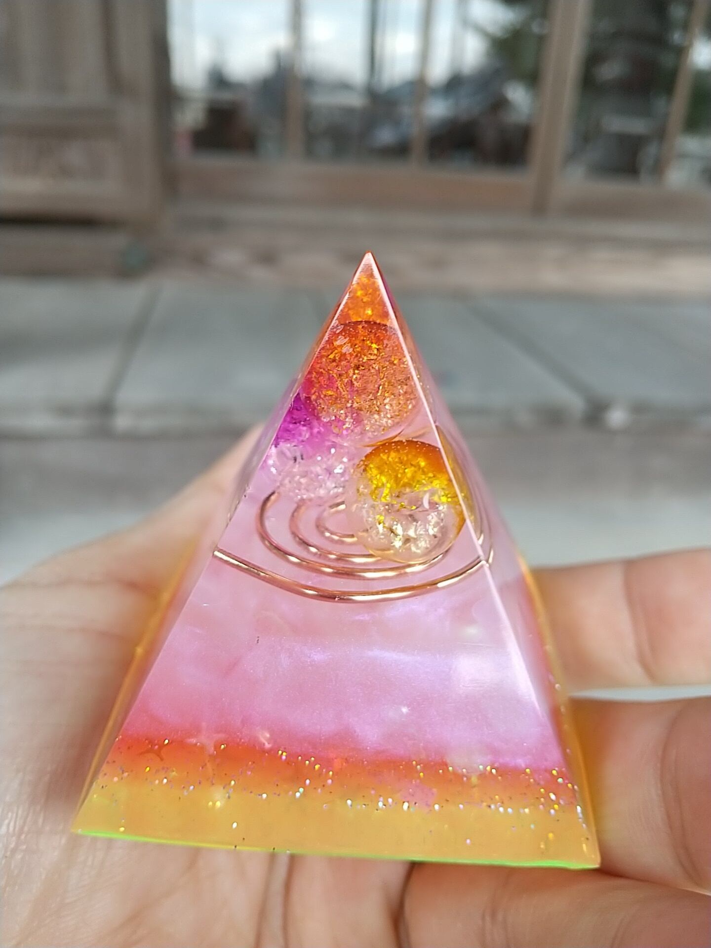 5㎝×5㎝×5㎝のピラミッドオルゴナイトになります。